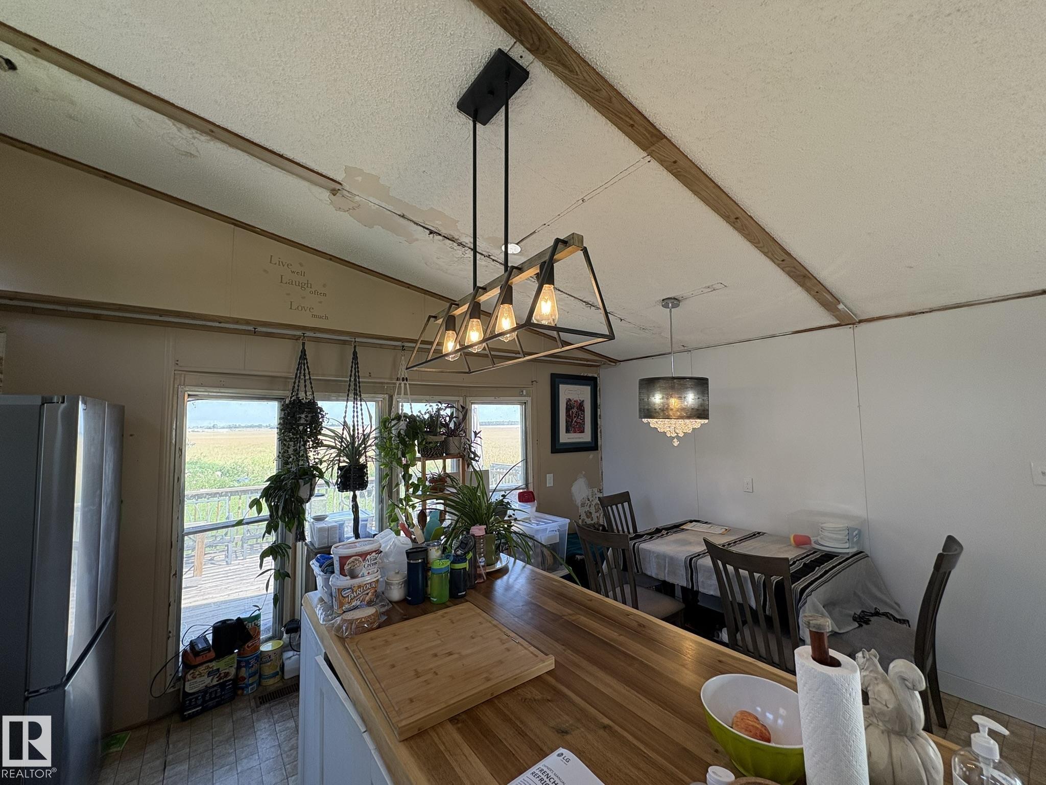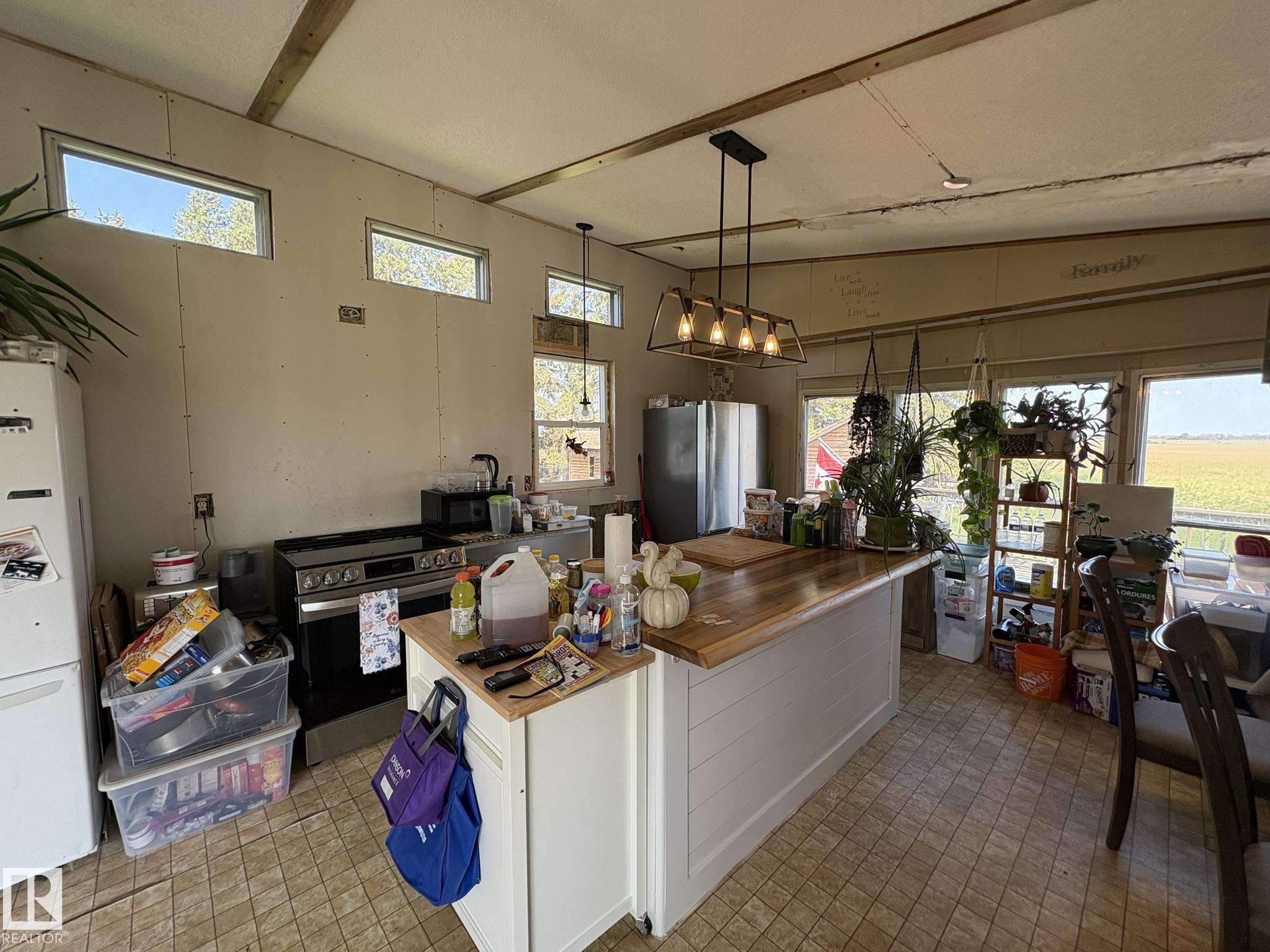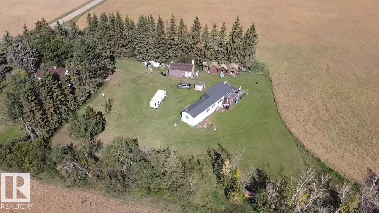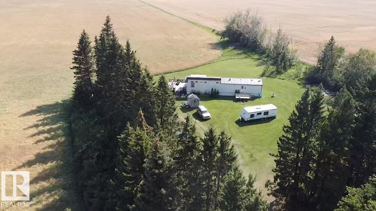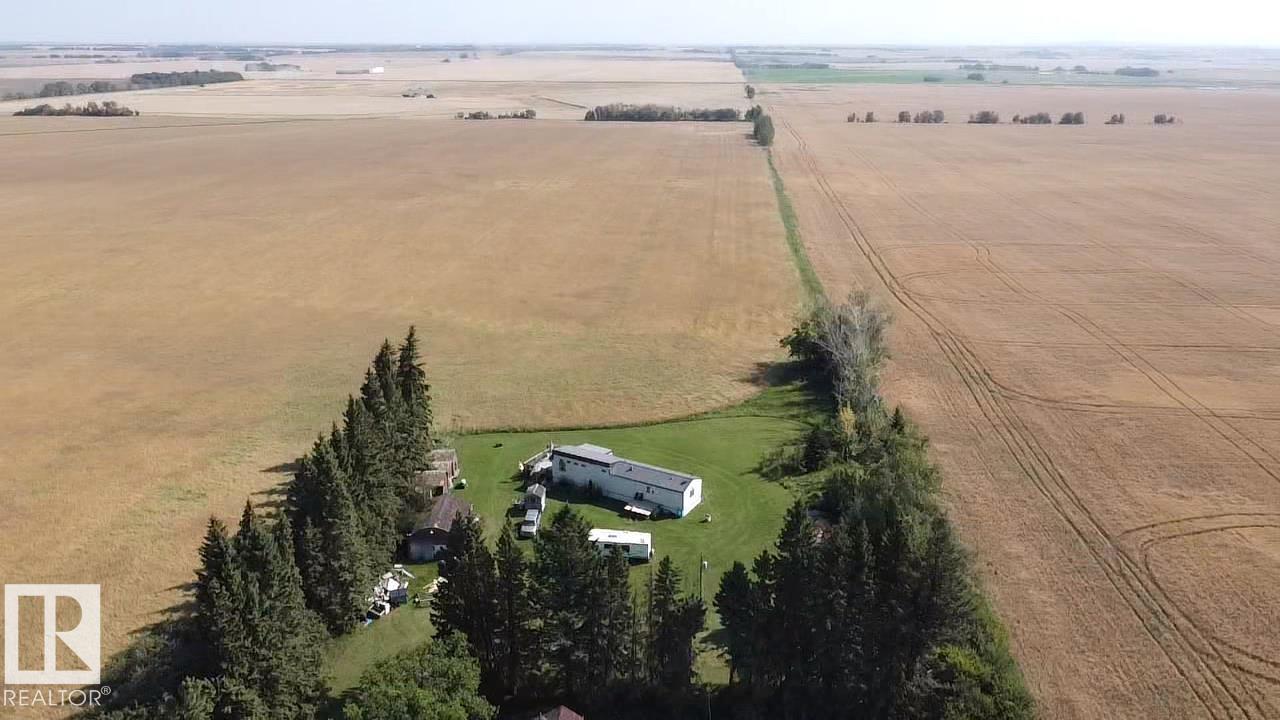 Gorgeous and peaceful acreage north of the town of Andrew. This 2.59 acre property offers its occupants a great lifestyle away from city noise. The home consists of a mobile which has been modified and updated with a bright and open living area boasting high cathedral ceiling in the kitchen and living room. There are 3 generous size bedrooms and an upgraded full bath all on this floor. The home has a new steel roof and is also equipped with central air conditioning and features a huge deck overlooking the property and unobstructed vastness of county farmland as well as a second deck at the front of the home. The land also includes an older garage and some outbuildings. The yard is landscaped and inviting and provides tons of opportunities for having fun with family and friends and enjoying country life at its best!