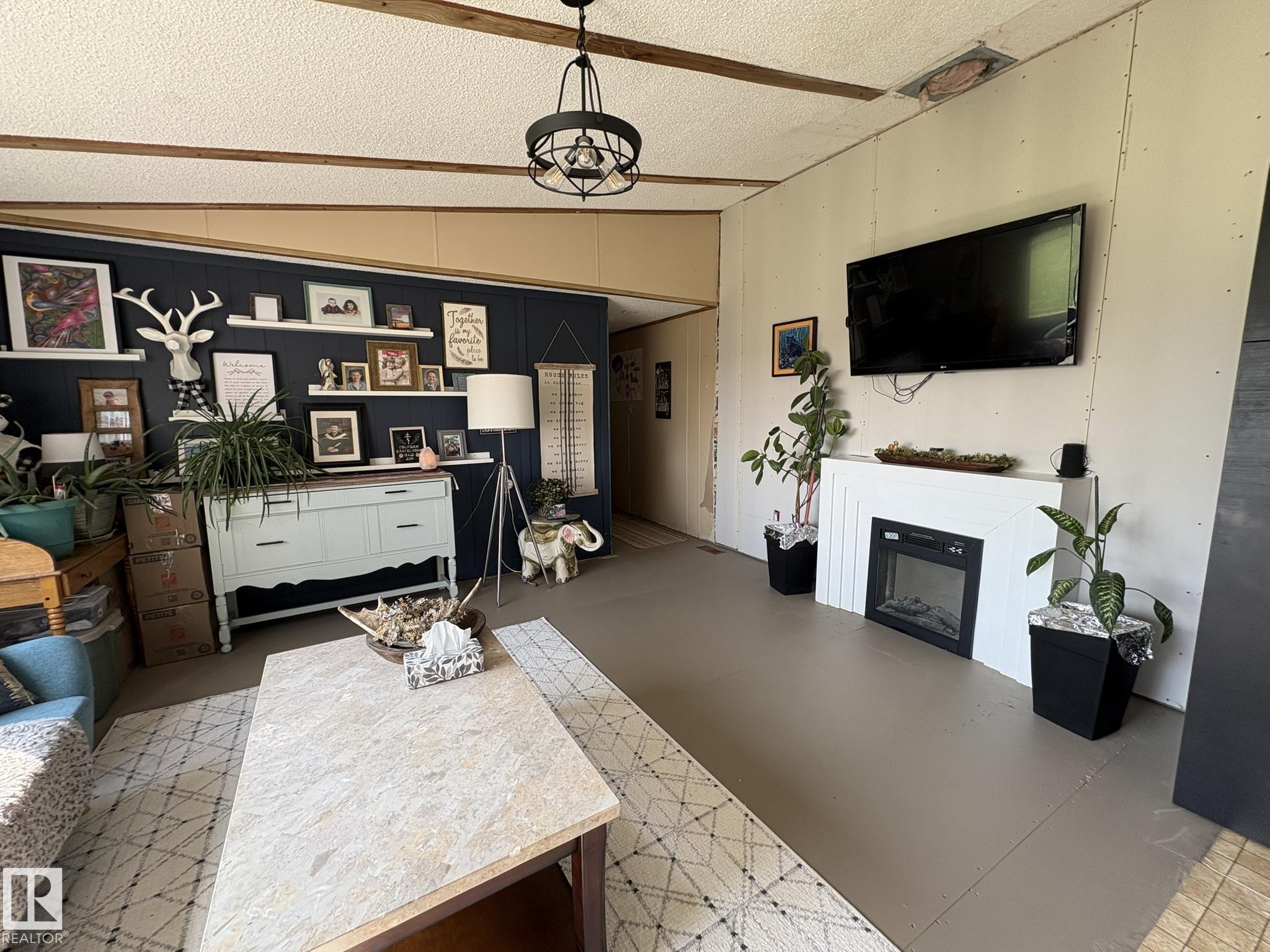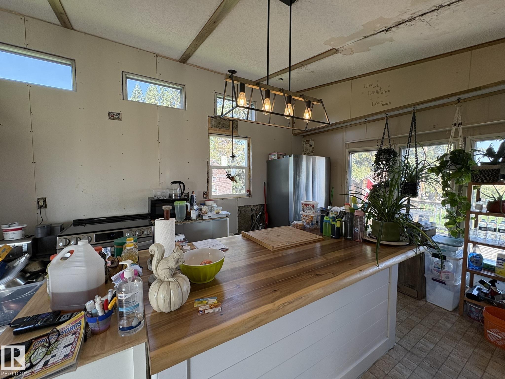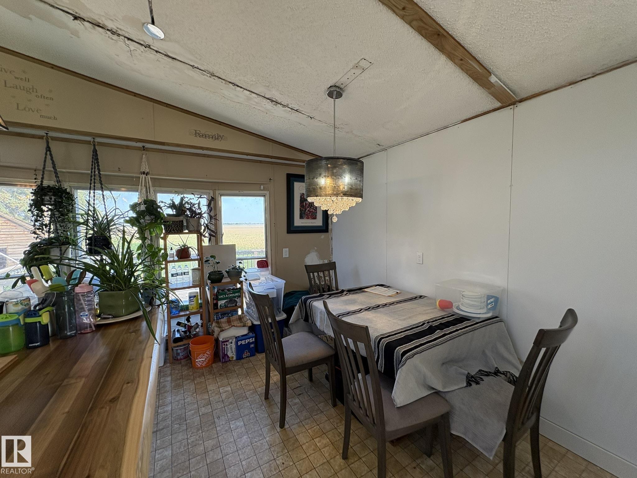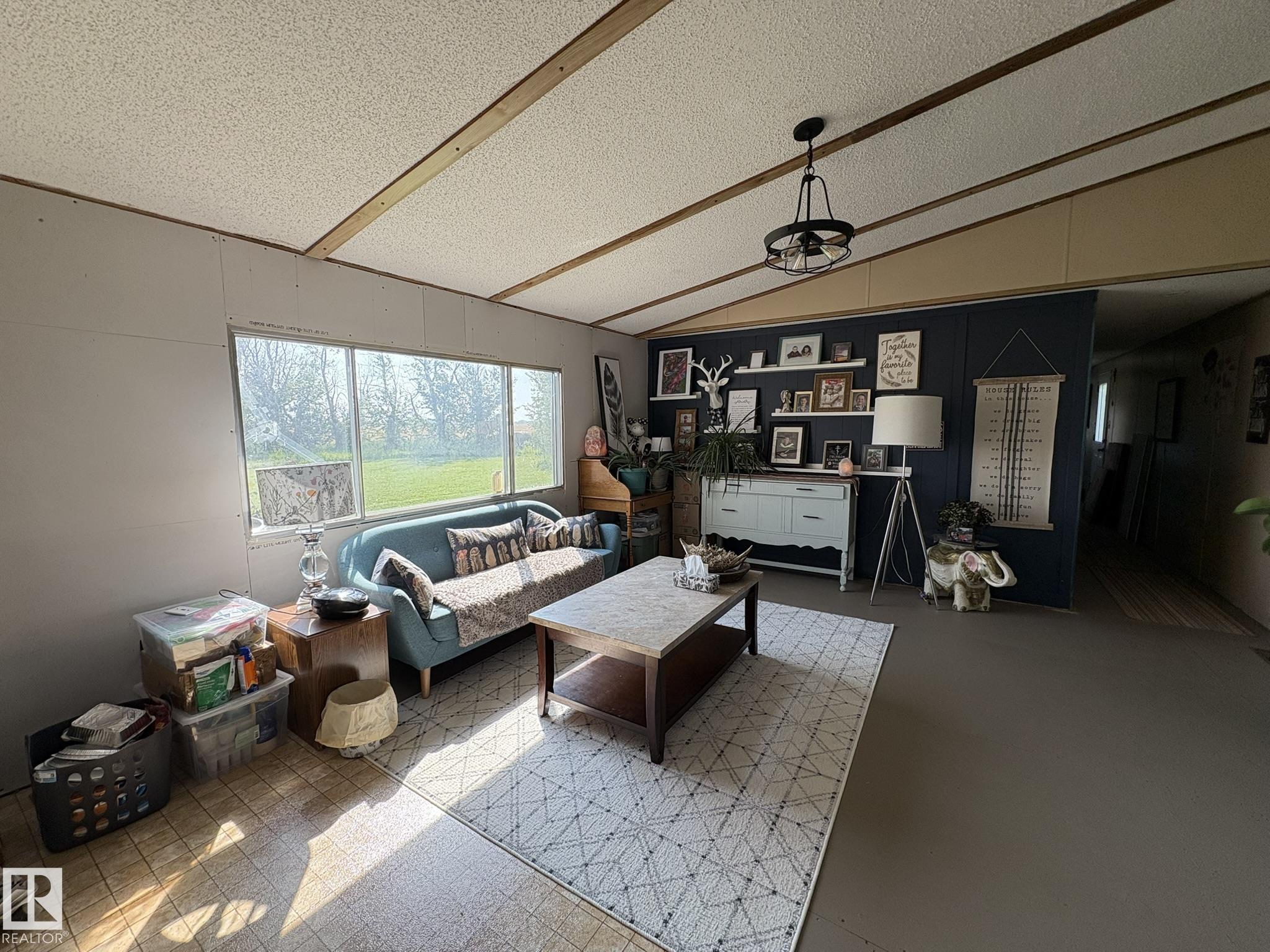 Gorgeous and peaceful acreage north of the town of Andrew. This 2.59 acre property offers its occupants a great lifestyle away from city noise. The home consists of a mobile which has been modified and updated with a bright and open living area boasting high cathedral ceiling in the kitchen and living room. There are 3 generous size bedrooms and an upgraded full bath all on this floor. The home has a new steel roof and is also equipped with central air conditioning and features a huge deck overlooking the property and unobstructed vastness of county farmland as well as a second deck at the front of the home. The land also includes an older garage and some outbuildings. The yard is landscaped and inviting and provides tons of opportunities for having fun with family and friends and enjoying country life at its best!