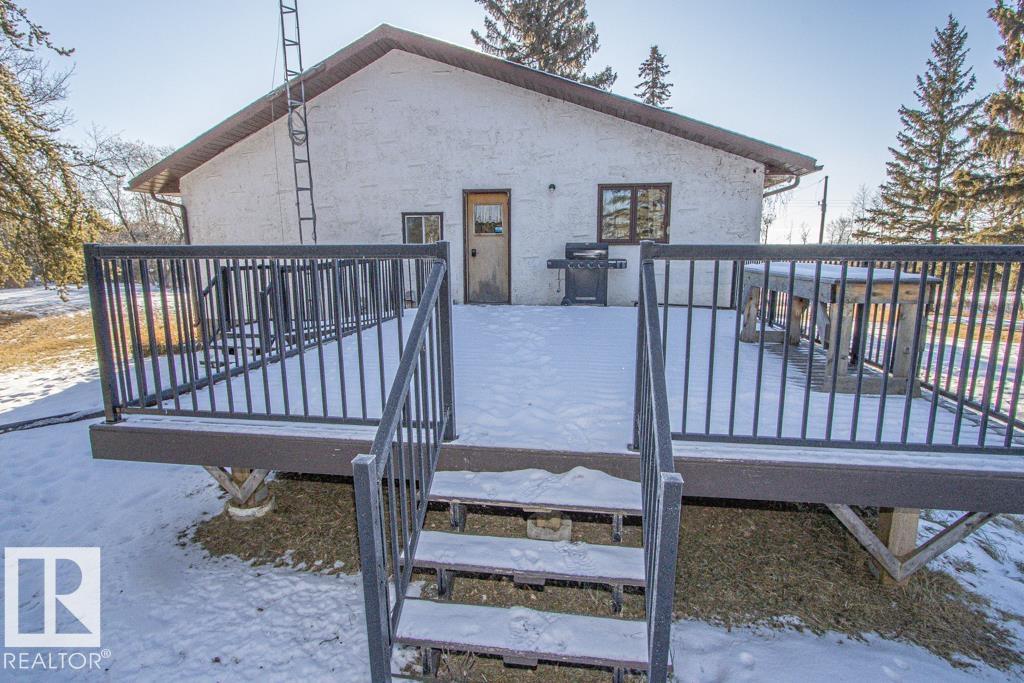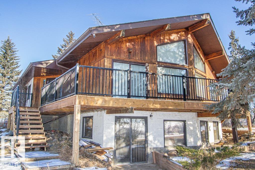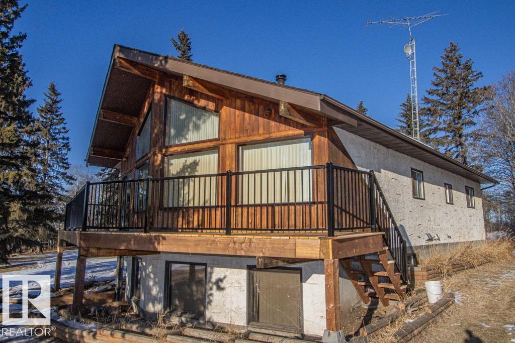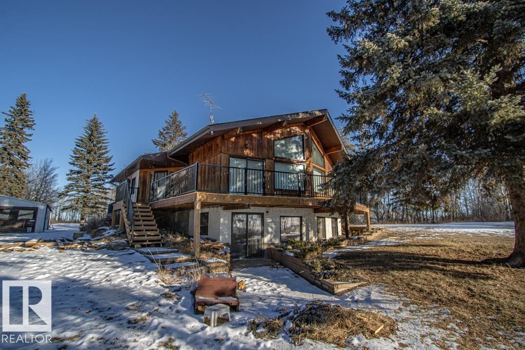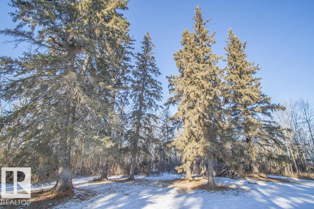 Located in a private setting along a peaceful country road, this character-filled home is tucked among towering spruce trees and offers inviting warmth and natural charm. The living room features a striking rock fireplace, vaulted ceilings, and large windows that showcase the surrounding forested landscape. The main level includes two bedrooms and a full bathroom, while the lower level offers an additional bedroom, a second bathroom, generous storage, and flexible space for recreation or entertaining. The walkout basement leads to a secluded outdoor setting, creating a seamless connection to the property's natural surroundings.