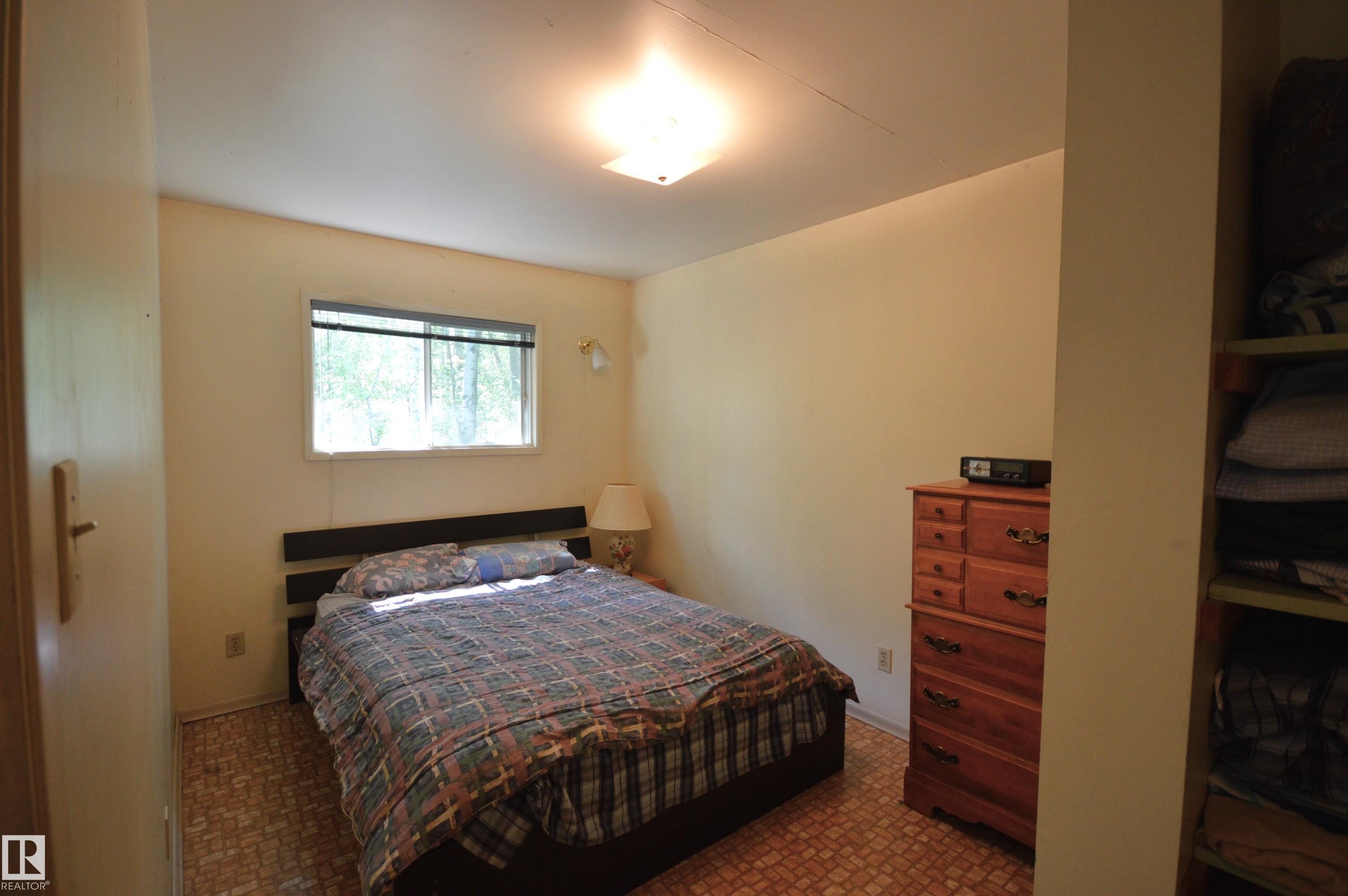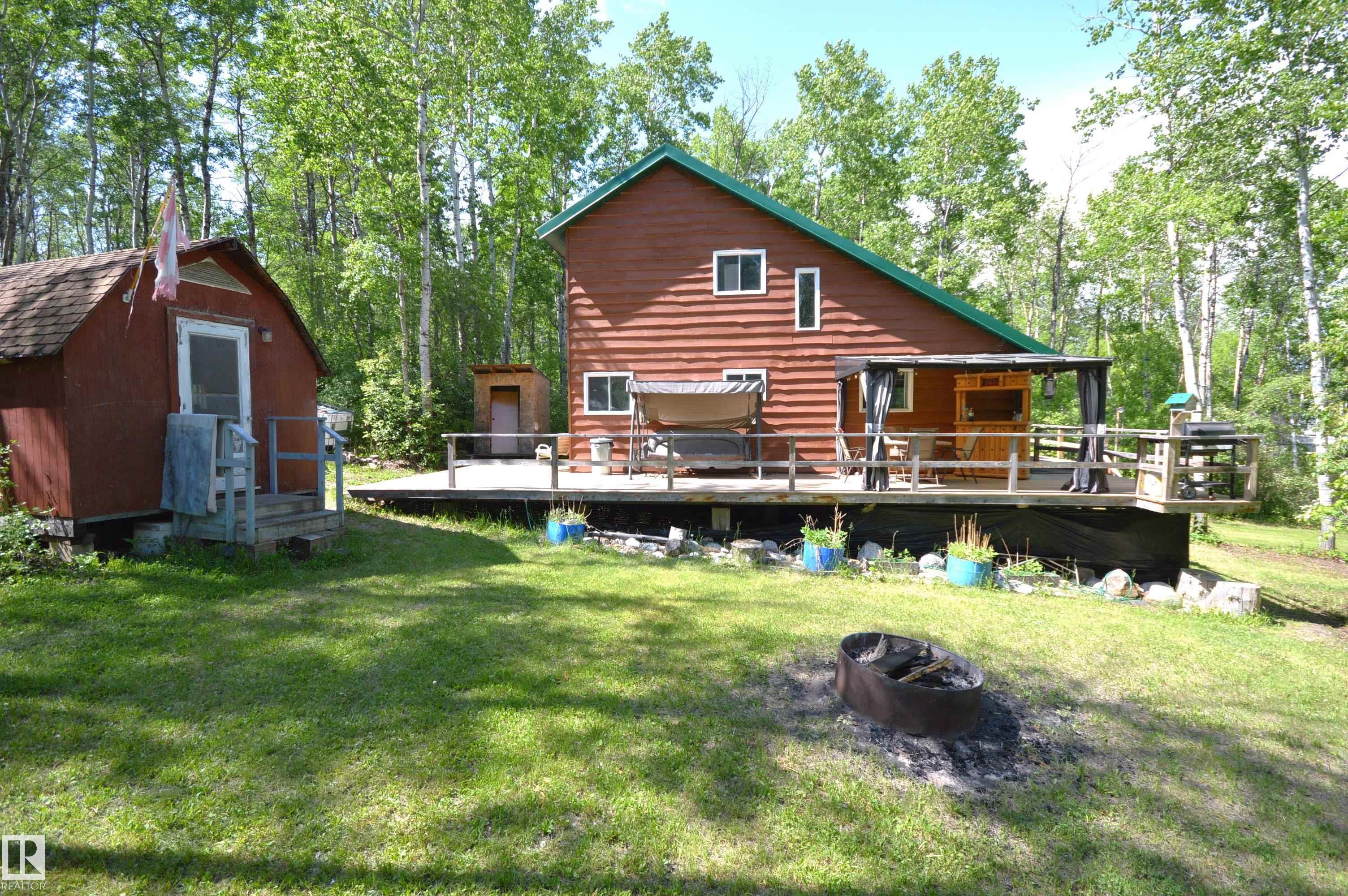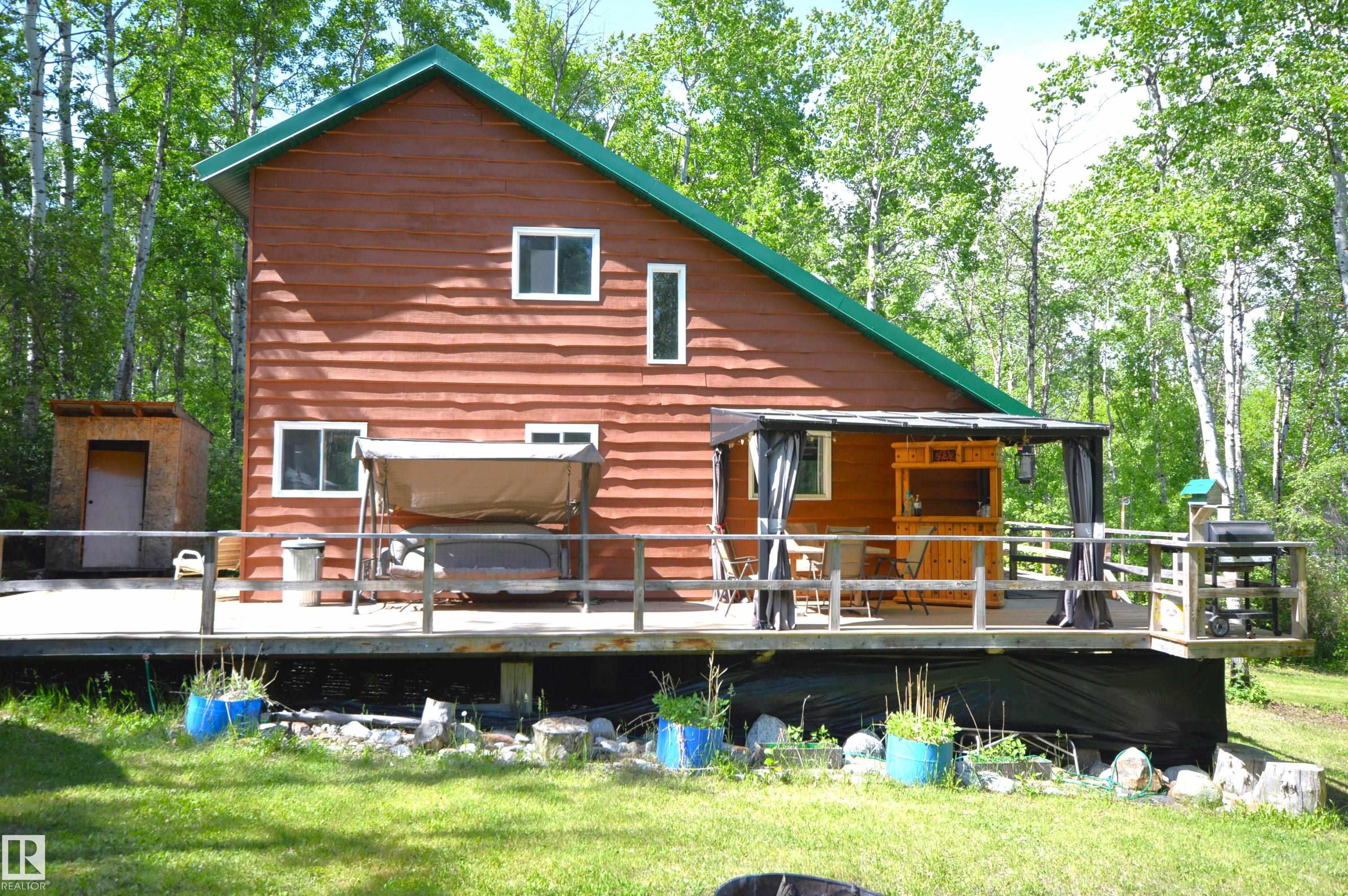 Recreational Cabin Retreat. ALL ITEMS STAY. Escape to nature, this charming 1.5-storey cabin, nestled on a private treed half-acre lot on the south side of Muriel Lake, just 2.5 hours NE Edmonton & 25 minutes south of Bonnyville. Built in 1980, offers rustic charm with modern comforts including power, a cistern water system, holding septic tank, and outhouse. Heated with the wood stove or electric space heaters. Inside you'll find a open concept full kitchen-family room, 1 main floor bedroom, bathroom, 2 upper-level bedrooms, all set under a vaulted cedar-shiplap ceiling that enhances the cabin's cozy atmosphere. Enjoy the expansive deck, tiki bar & table, with views of lake & treeD enclosed yard where there is a fire pit, room for campers/RVs, perfect for hosting family & friends! The lake's waterline has receded over the years, creating a 100-ft beachy area! POTENTIAL! The cabin sits on concrete pilings with easy crawlspace access, making it ideal for future winterization and YEAR ROUND LIVING.