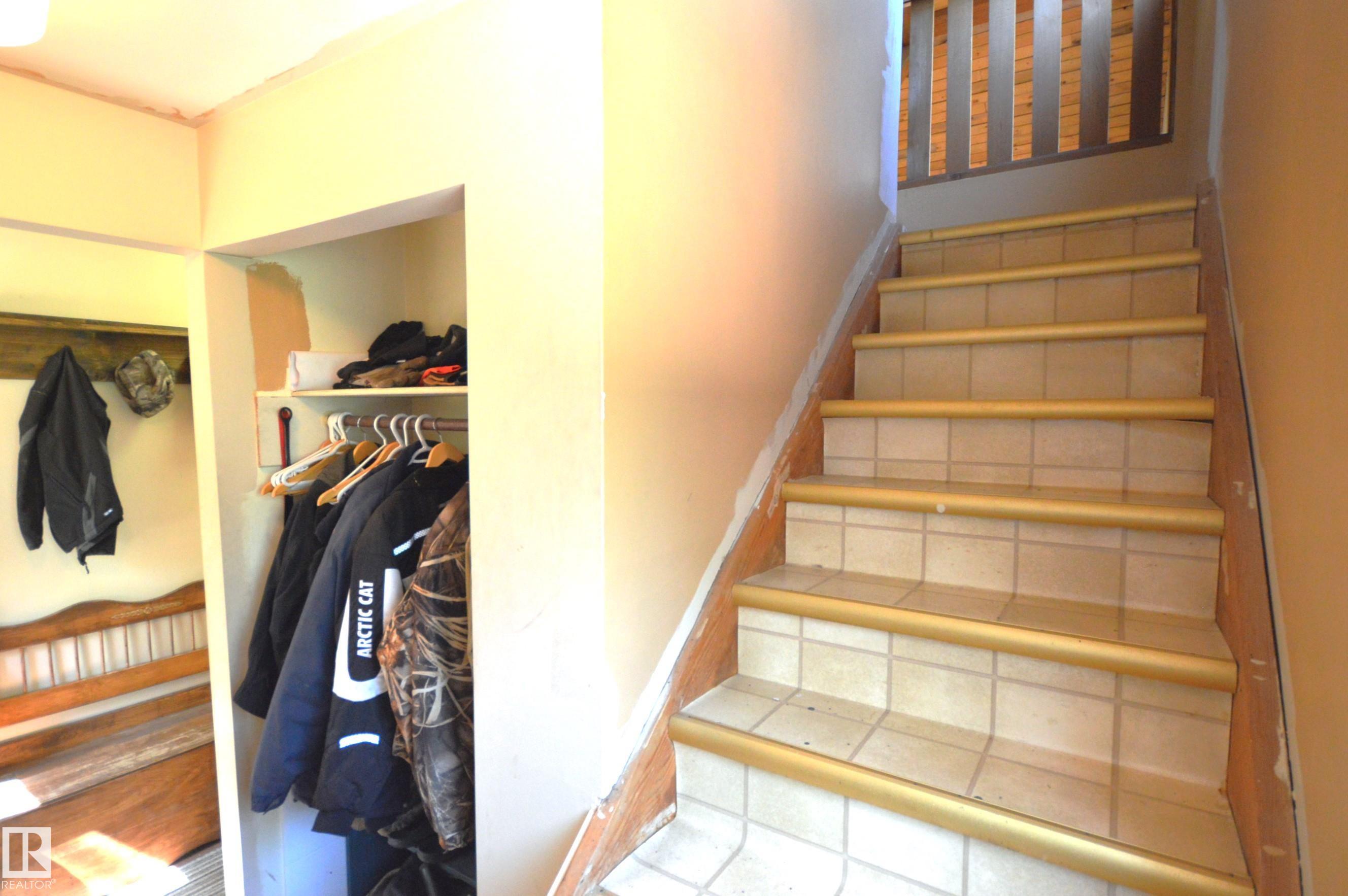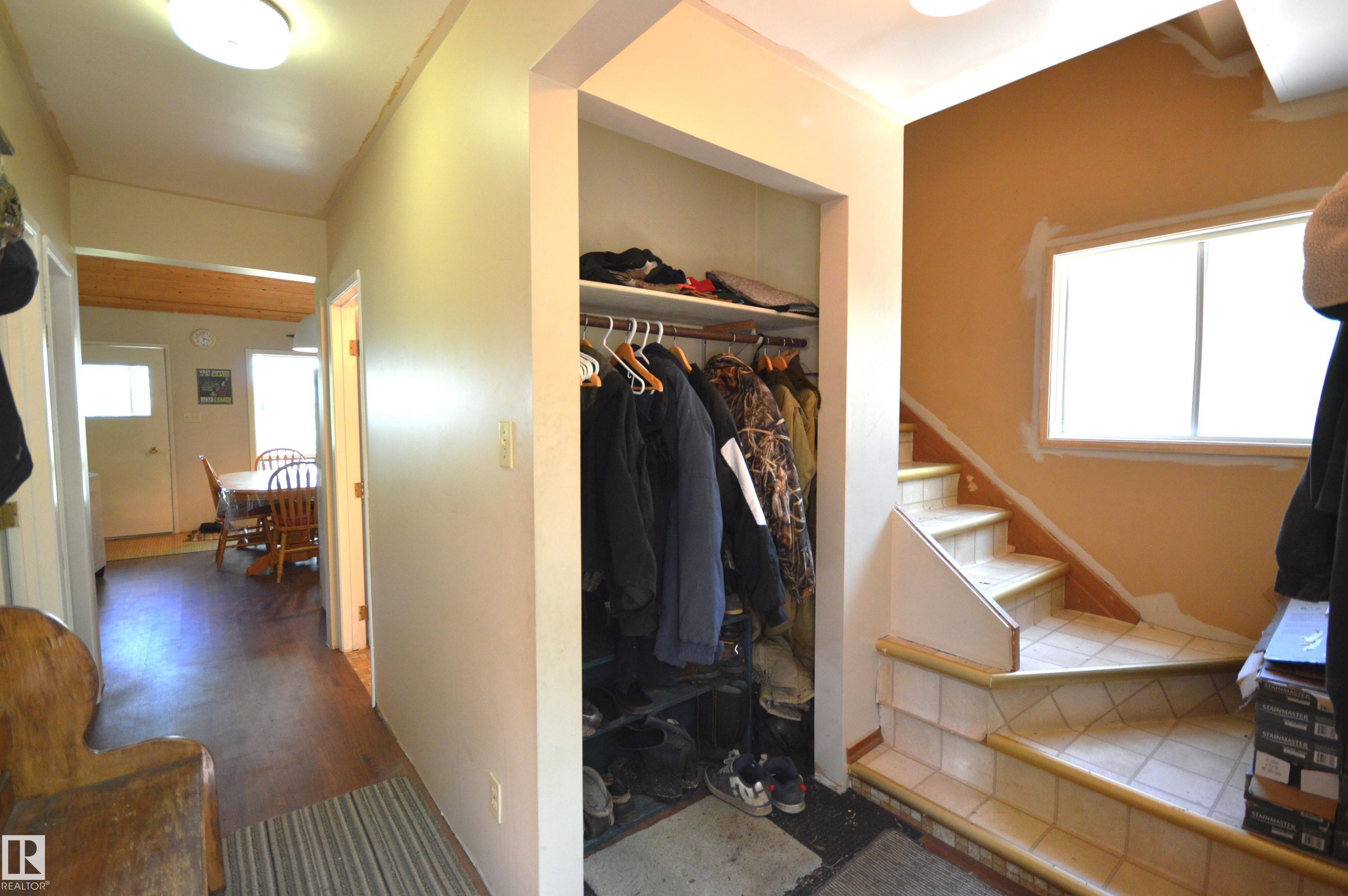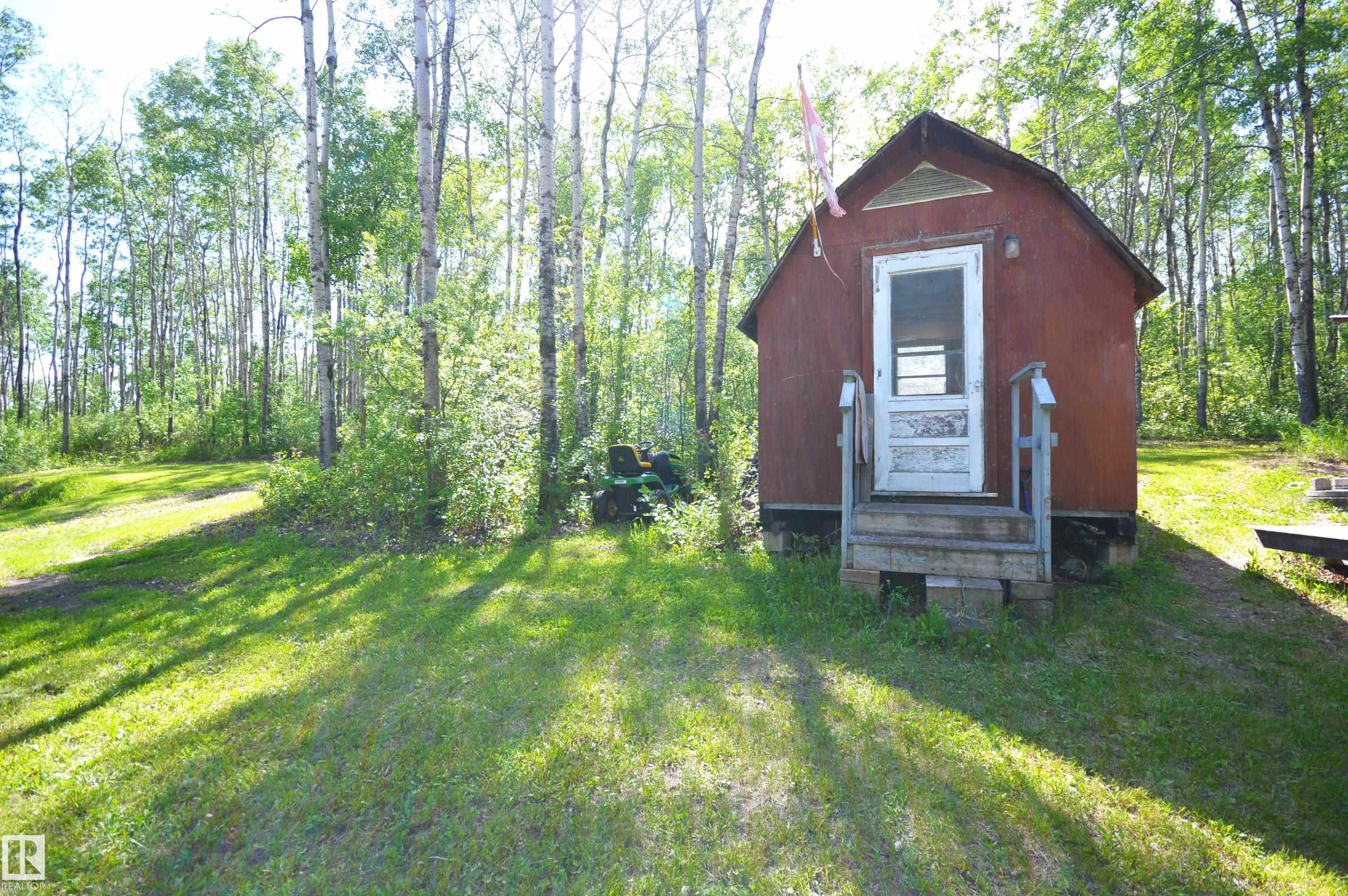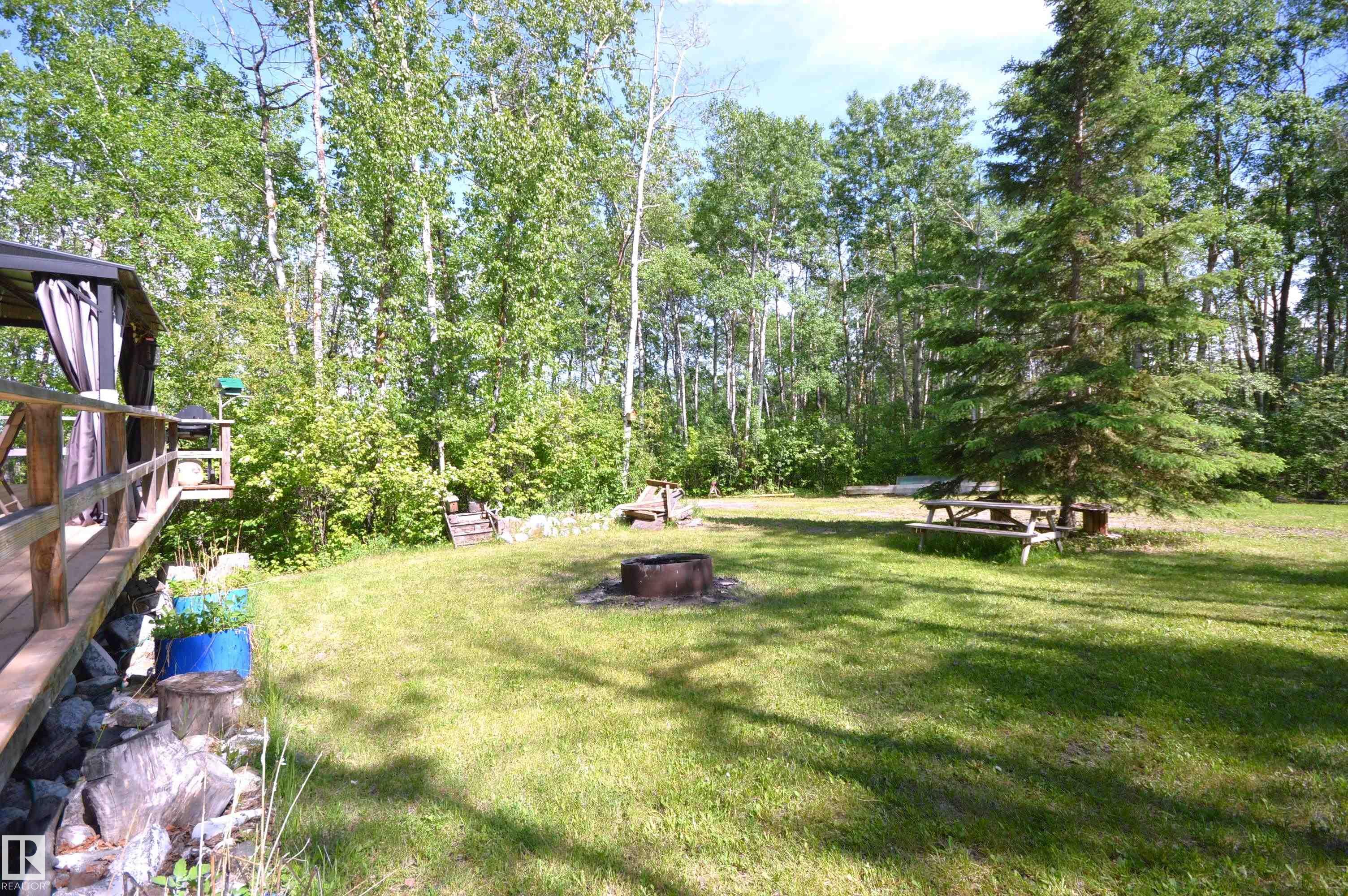 Recreational Cabin Retreat. ALL ITEMS STAY. Escape to nature, this charming 1.5-storey cabin, nestled on a private treed half-acre lot on the south side of Muriel Lake, just 2.5 hours NE Edmonton & 25 minutes south of Bonnyville. Built in 1980, offers rustic charm with modern comforts including power, a cistern water system, holding septic tank, and outhouse. Heated with the wood stove or electric space heaters. Inside you'll find a open concept full kitchen-family room, 1 main floor bedroom, bathroom, 2 upper-level bedrooms, all set under a vaulted cedar-shiplap ceiling that enhances the cabin's cozy atmosphere. Enjoy the expansive deck, tiki bar & table, with views of lake & treeD enclosed yard where there is a fire pit, room for campers/RVs, perfect for hosting family & friends! The lake's waterline has receded over the years, creating a 100-ft beachy area! POTENTIAL! The cabin sits on concrete pilings with easy crawlspace access, making it ideal for future winterization and YEAR ROUND LIVING.