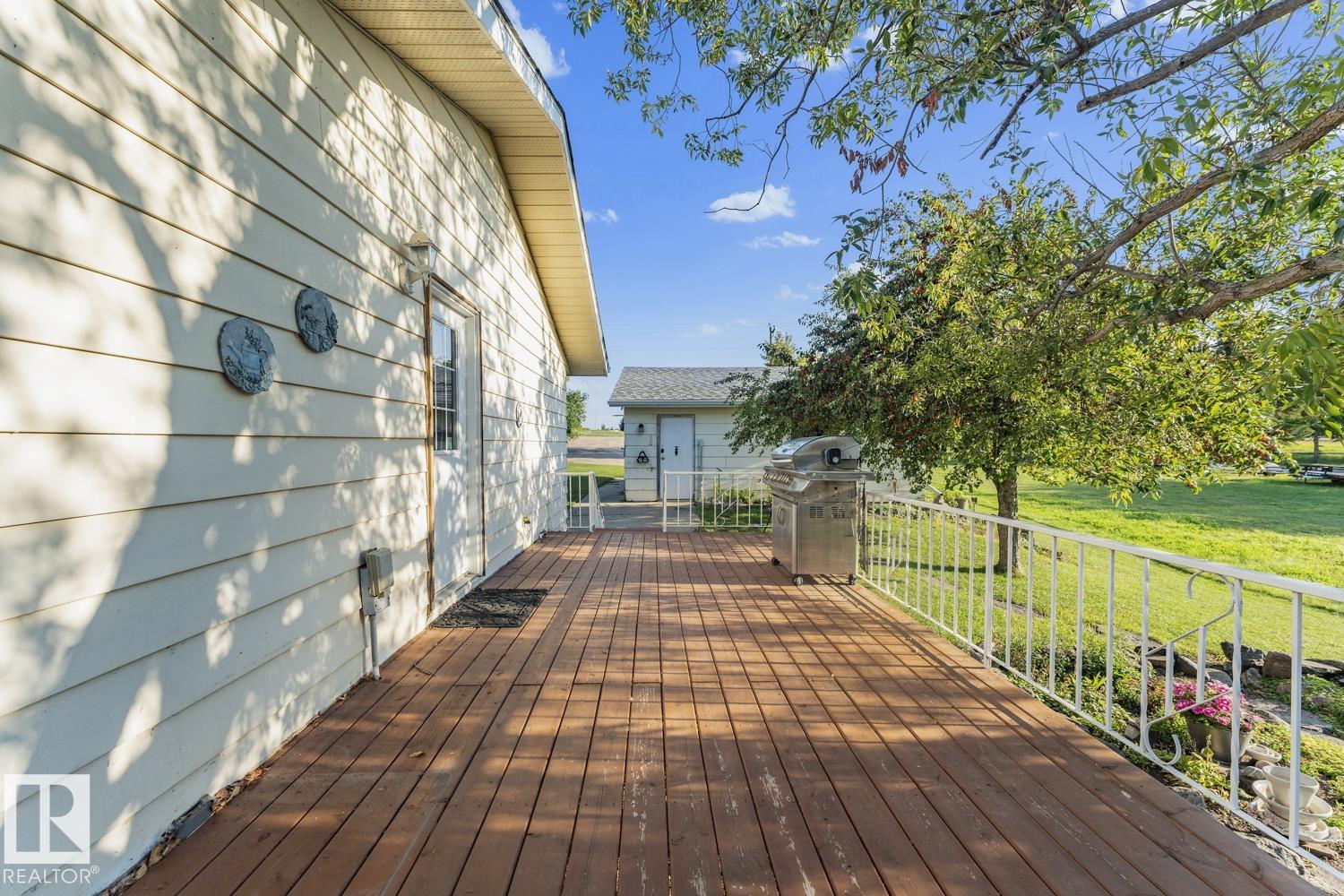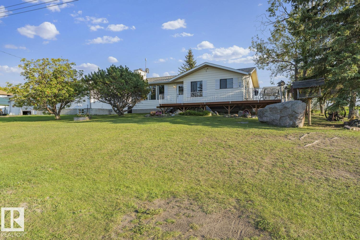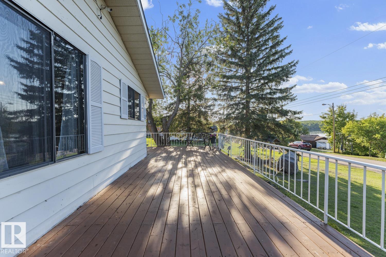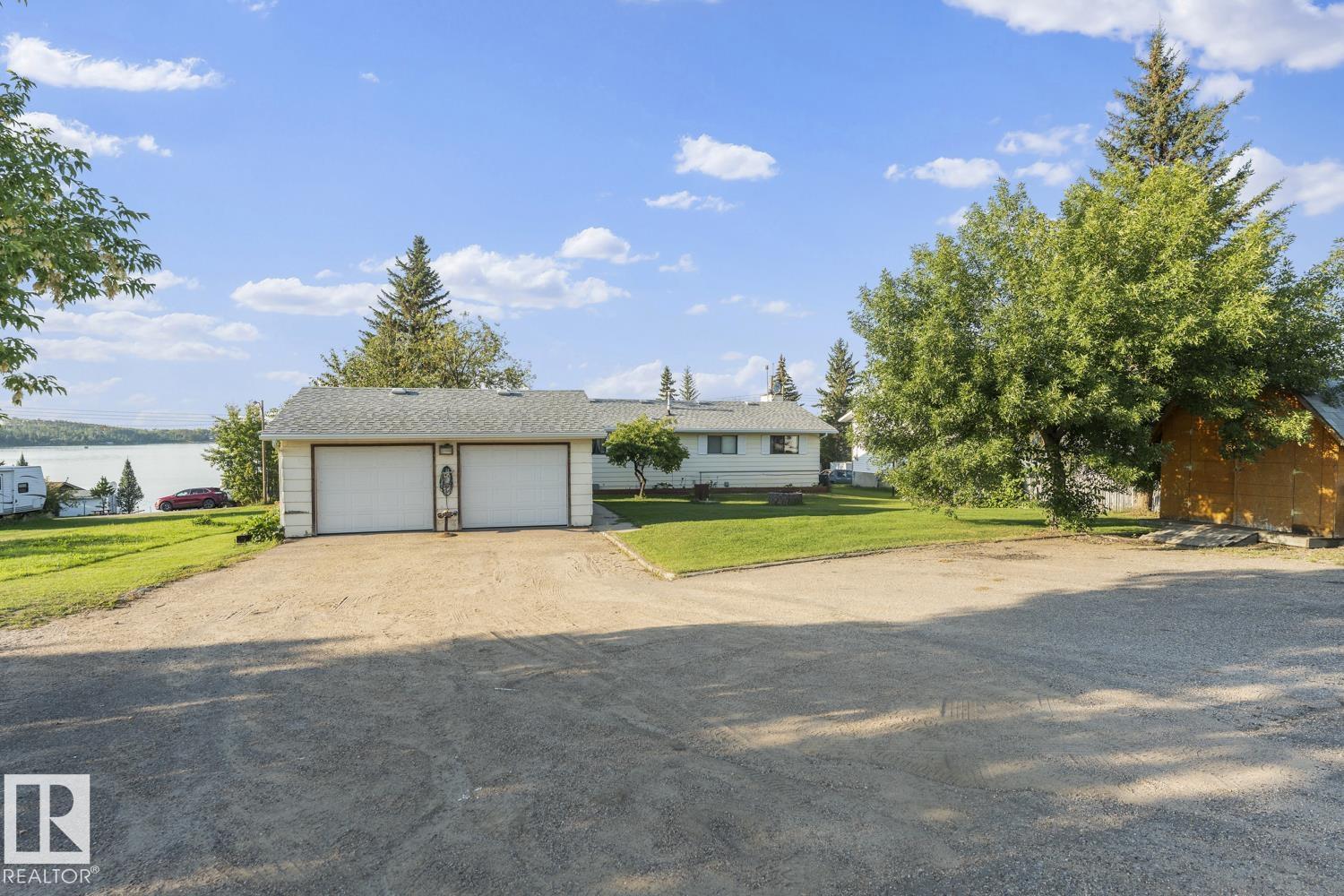 Embrace the Lake Life at Vezeau Beach- Moose Lake! Cute and cozy bungalow features an inviting open-concept layout. A spacious mudroom with main floor laundry, countertop space and sink. Bright living room offers large lake-facing windows and a faux stone-faced wood fireplace, perfect for chilly evenings. Good-sized dining area, custom rod iron railings and updated kitchen is ready for your culinary creations. 2 Bedrooms and a full 4-piece bath. The partially developed basement includes a large rec room, 2 other rooms previously used as bedrooms and ample storage. Outside enjoy a wrap-around deck with lake views and a gas BBQ hookup, ideal for entertaining. Nicely landscaped yard includes flower beds, firepit area, a powered shed and a detached heated garage with 220 power. Located just steps away from the golf course, park, picnic area, public lake access, beach and walking/biking trails. Golf, Swim, Fish, Boat, Relax and Repeat!