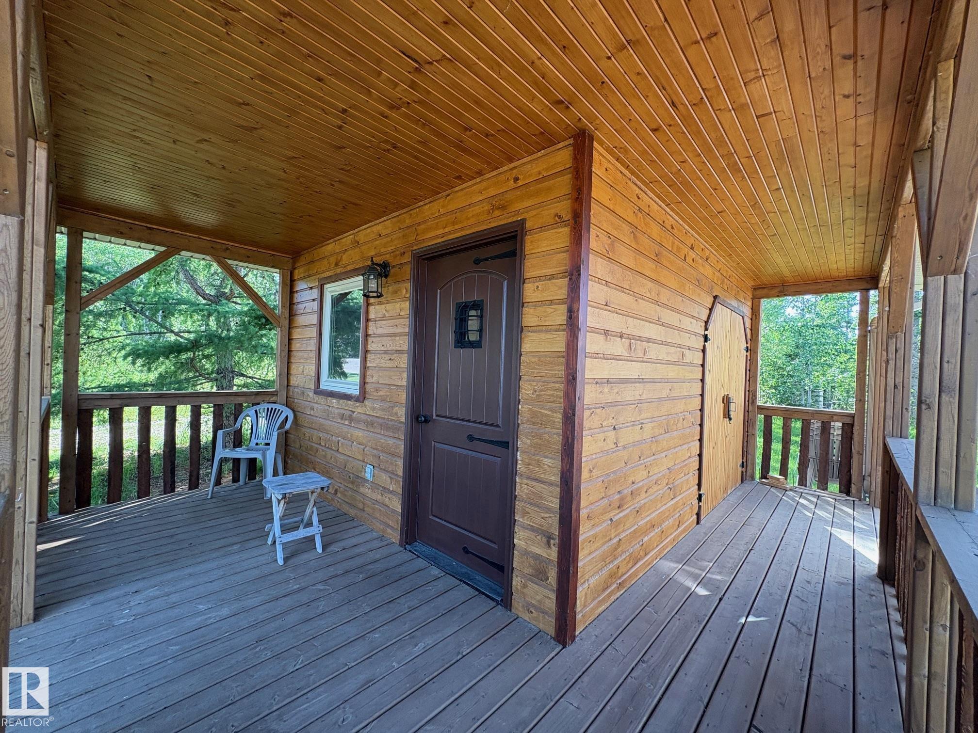 Welcome To Wood Creek Resort at Moose Lake! This park model is in new condition with many additional amenities. Fully equipped with all the comforts of being at home including central heating & air conditioning system, central vac, built in speaker system, vaulted ceilings throughout & built in cabinetry. The main living space is open & spacious, the living room is complete with a gas fireplace, patio door onto the deck & the kitchen is sure to impress! Fitted with a full appliance package, fridge, gas stove & dishwasher. Outside you will find a huge maintenance free sun deck, an amazing flagstone fire pit & picnic area complete with built in bar. The rustic bunkhouse gives room for occasional visitors. Features a 750 gal cistern, a 750 gal septic holding tank, 100 amp electrical service & paved parking pad! Located in a gated, lakefront community with all the amenities; playground, walking trails, boat & swim piers, paved roads & only 10 minutes from Bonnyville! Live the lake lifestyle this summer!
