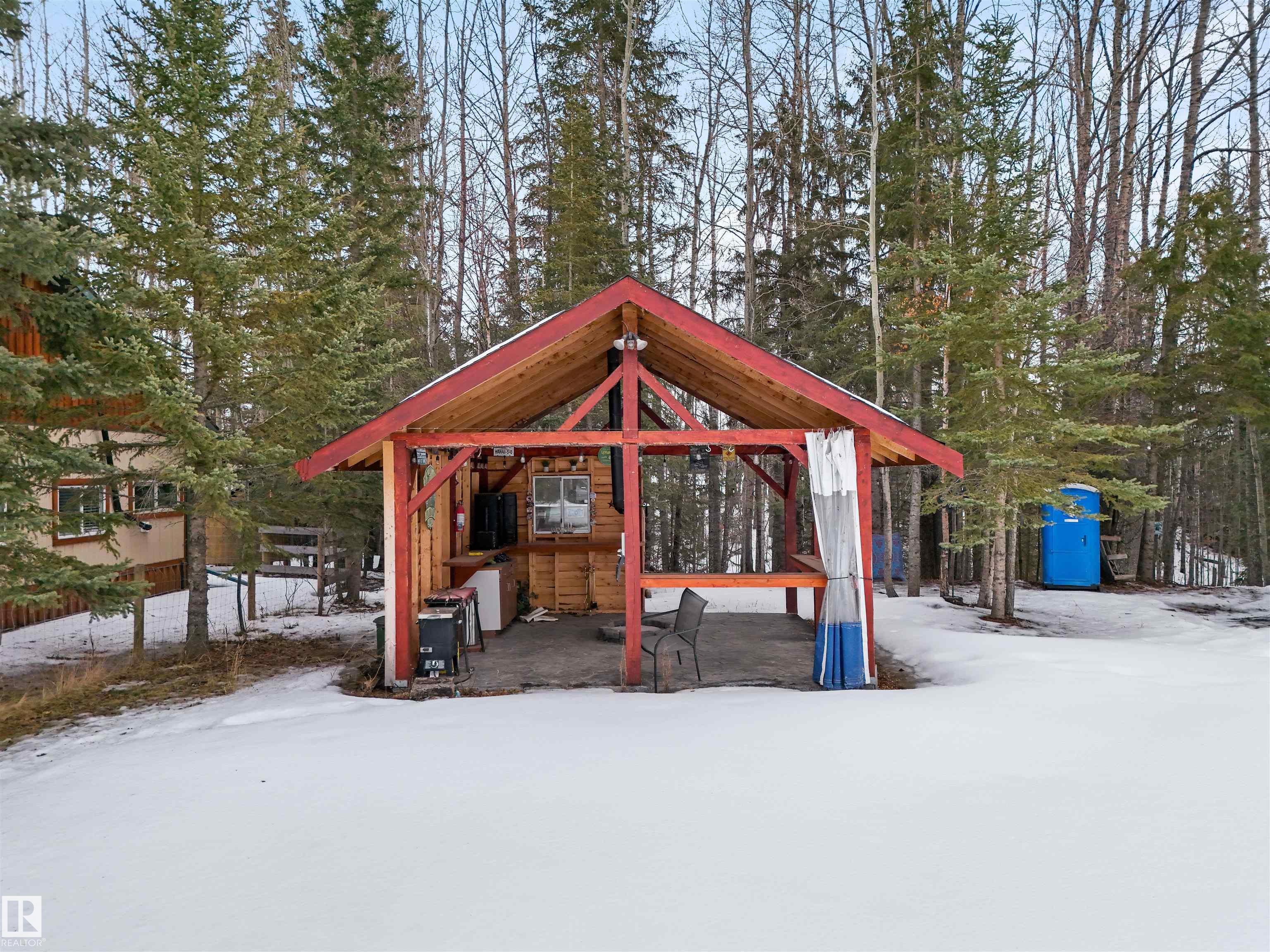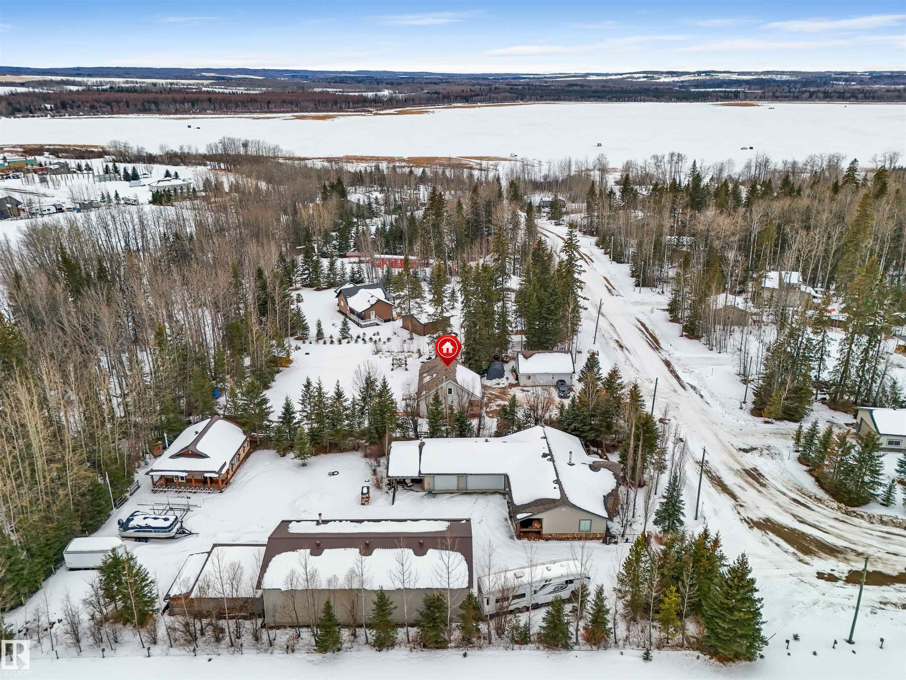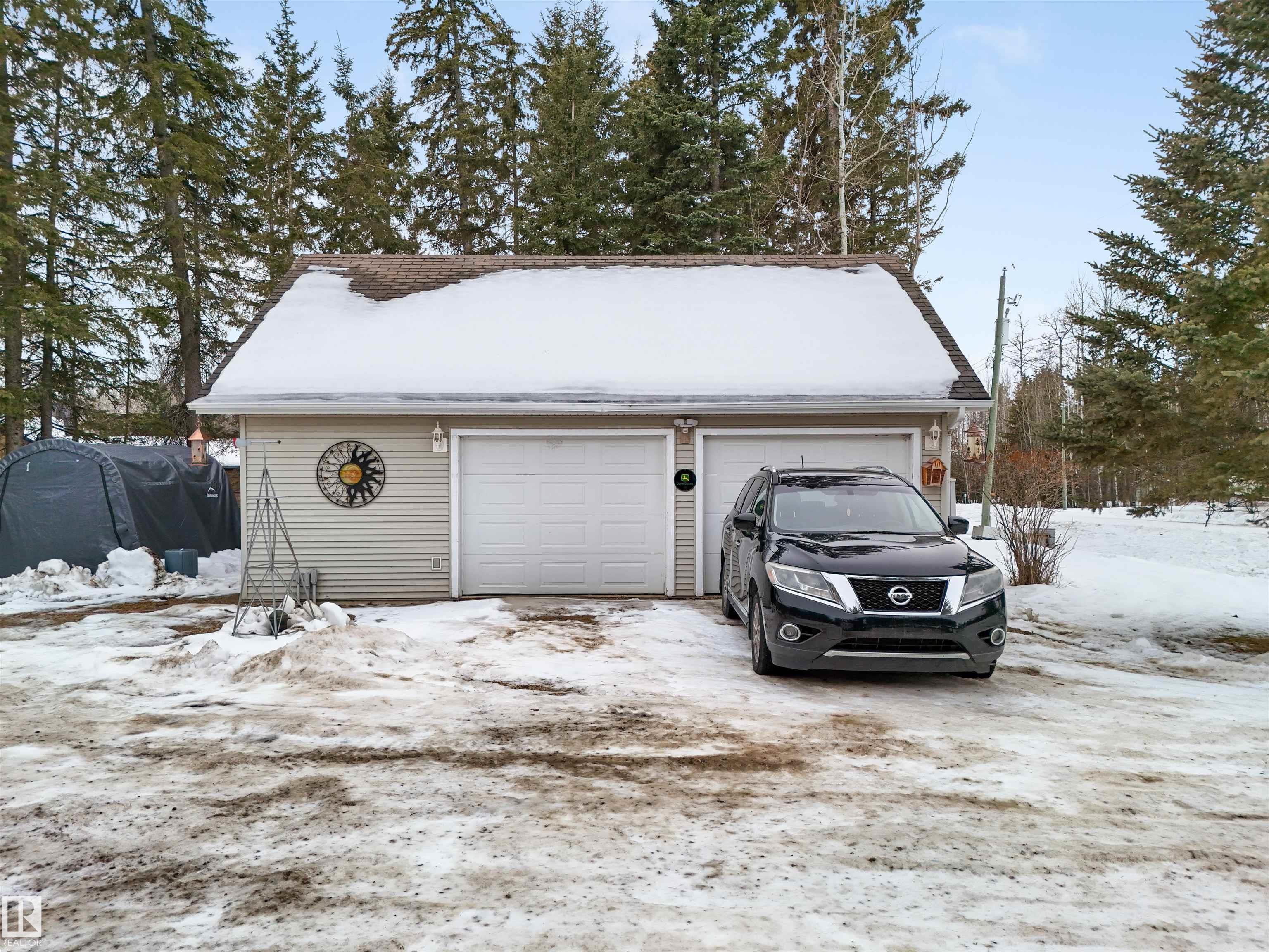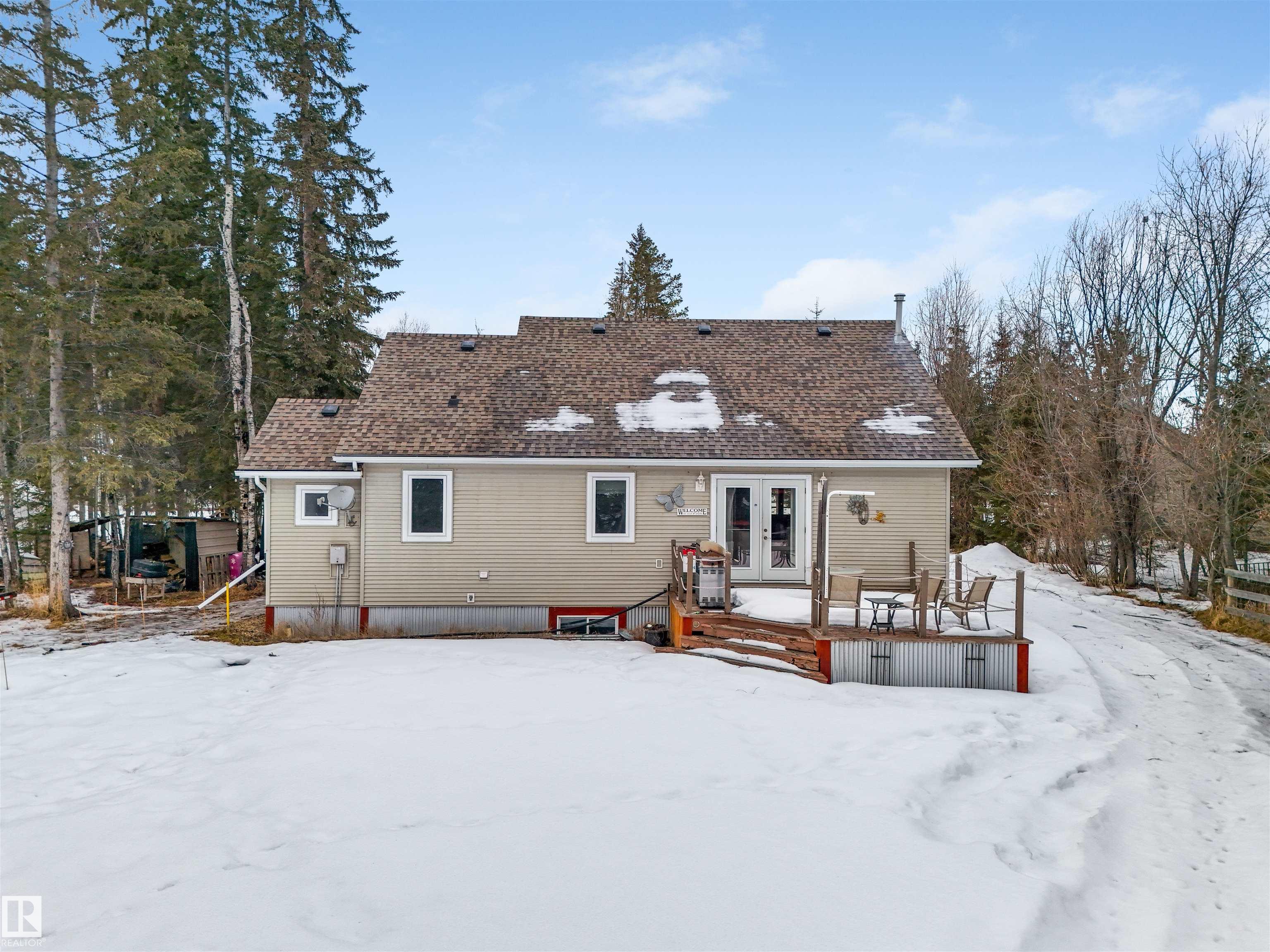 Beautiful 1.5 storey home in Evergreen Estates, Buck Lake is an ideal retirement home or weekend getaway. An attractive covered front porch leads you into a warm interior including maple flooring, an efficient 'U' shaped kitchen with hickory cabinets, 2 main floor bedrooms, laundry room, back porch and 4 piece bath. The upper loft (420sq.ft. excluded from total floor area is just under 7ft. high) has 2 other rooms and an alcove/office area. A full unfinished basement is ready to be completed to meet your needs. 24'x30' oversized double garage. The septic is a three phase system. The property borders a treed ravine with a small seasonal creek, designated as environmental reserve. Sure, summer is the traditional time to buy a cottage, when you've got the sun, the water, the trees & the birds all around you. If you think about it, though, a winter cottage getaway has the potential to recharge you even better or enjoy winter activities like ice fishing, snowmobilling, etc... Check out this home at the lake!