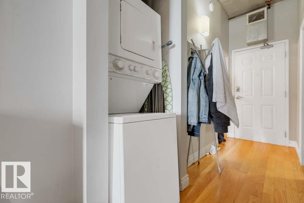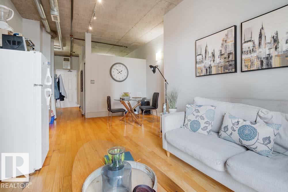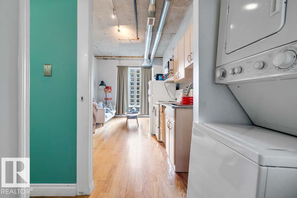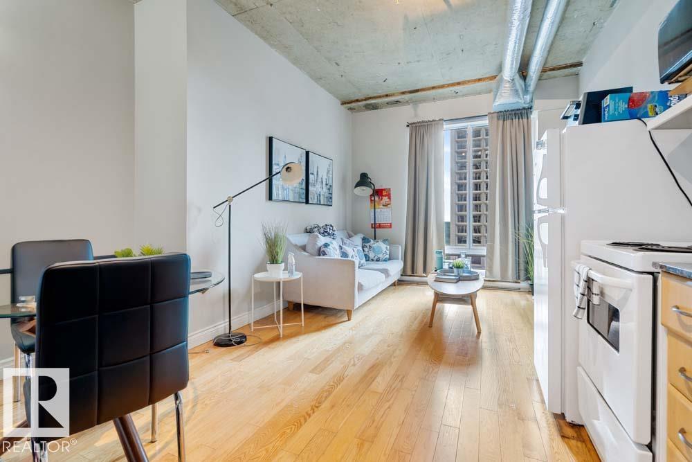 LIVE THE DOWNTOWN LIFESTYLE WITH TRUE LOFT VIBES! This 1 BEDROOM condo combines STYLE, LOCATION, and VALUE in the heart of Edmonton. Soaring EXPOSED CONCRETE CEILINGS, warm HARDWOOD FLOORS, and an OPEN-CONCEPT design create the perfect blend of character and function. The bright living and dining area is filled with NATURAL LIGHT, while the sleek, efficient kitchen makes every inch count. A spacious bedroom, 4PC BATH, and the bonus of IN-SUITE LAUNDRY check all the boxes for modern convenience. Step outside and you're right on JASPER AVENUE--just minutes to the LRT, trendy caf‚s, nightlife, shopping, the RIVER VALLEY, and the downtown core. Whether you're a FIRST-TIME BUYER, STUDENT, or SAVVY INVESTOR, this property delivers the BEST of URBAN LIVING at an AFFORDABLE PRICE!
