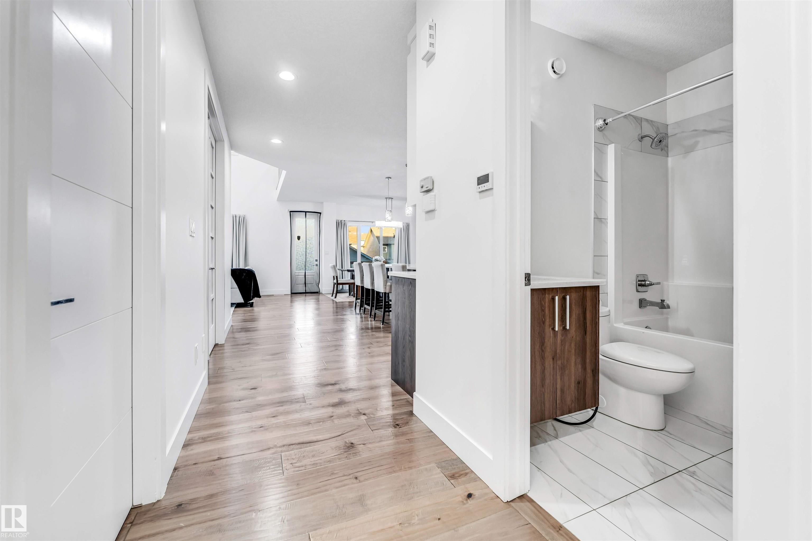 Welcome to Graydon Hill, a serene southwest community surrounded by nature yet minutes from city conveniences. This beautifully maintained home offers over 2,700 sq.ft. plus a fully finished basement with a side entrance. Enjoy natural light throughout w/ soaring windows & a vaulted living room. Gorgeous kitchen features a walk through pantry, upgraded appliances (incl. gas stove), Air Condition & reverse osmosis. Open concept kitchen, dining, living room + MAIN FLOOR BATH & DEN/BDRM. Upstairs find huge primary walk-in & 5pc ensuite. 2 more well-sized bedrooms, 4pc bathroom, laundry & spacious bonus room. Basement offers 2 additional bedrooms, living area & wet bar. Features engineered hardwood, quartz throughout, central vac rough-in, 8' doors, 9' ceilings, new windows, BACK GATE for ADDTL PARKING & new landscaping. Walking trail across the street leading to a naturalized storm pond + large park down the block. Easy access to Henday, Calgary Trail, Currents of Windermere, South Common & more!