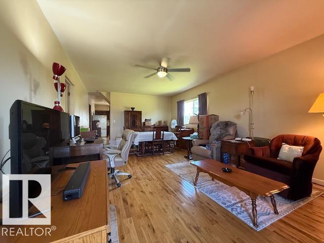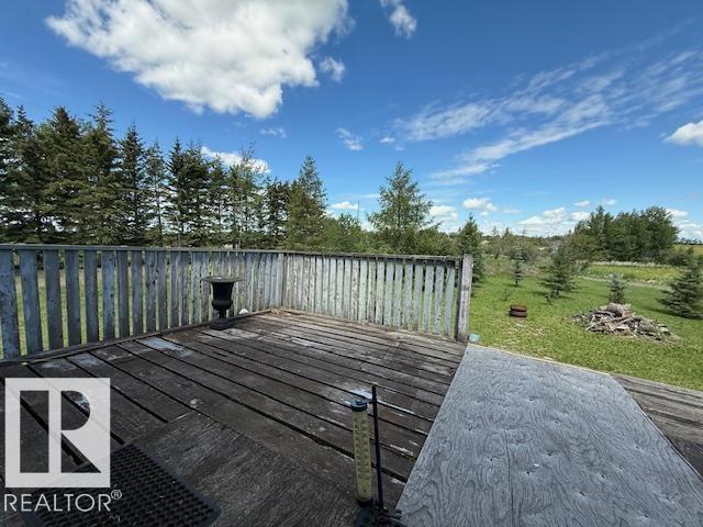 Welcome to this cozy acreage that's just 8 minutes from Lloydminster. This 0.89 acre property offers a pond view, trees, paved range road & lots of opportunity to make it your own. There's a newer septic system a/ mound, well water, a large U turn gravel driveway, & close proximity to Kitscoty (6 min). This bungalow on the main floor offers: 1 bedroom, 1 full bath which functions also as a semi ensuite, the kitchen, a large entry, a spacious dining area as well as the living room. There is access to the back of the home via patio sliding doors. (The deck will need to be removed, and isn't safe to walk on, do not walk on please). Up in the Loft area, there is a landing for storage, and two areas that have a window each; This allows for a great cross breeze. The undeveloped basement has large above ground windows & can be developed into a 2 bedroom plus 1 bathroom, & laundry. (*Please note in the past the home has been smoked; has not been smoked in the past few months.) (Handyman special)(Lot 129' x 298')