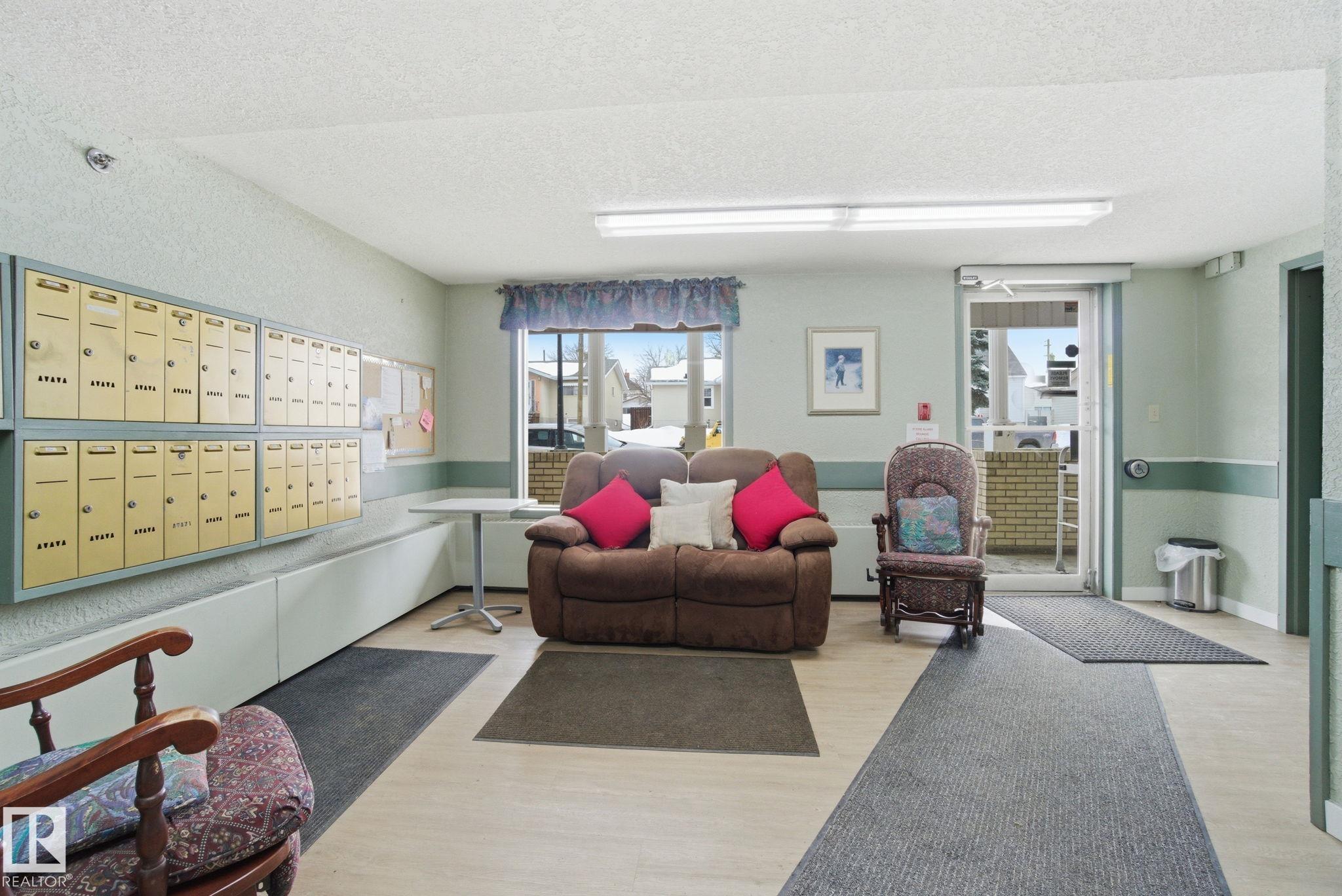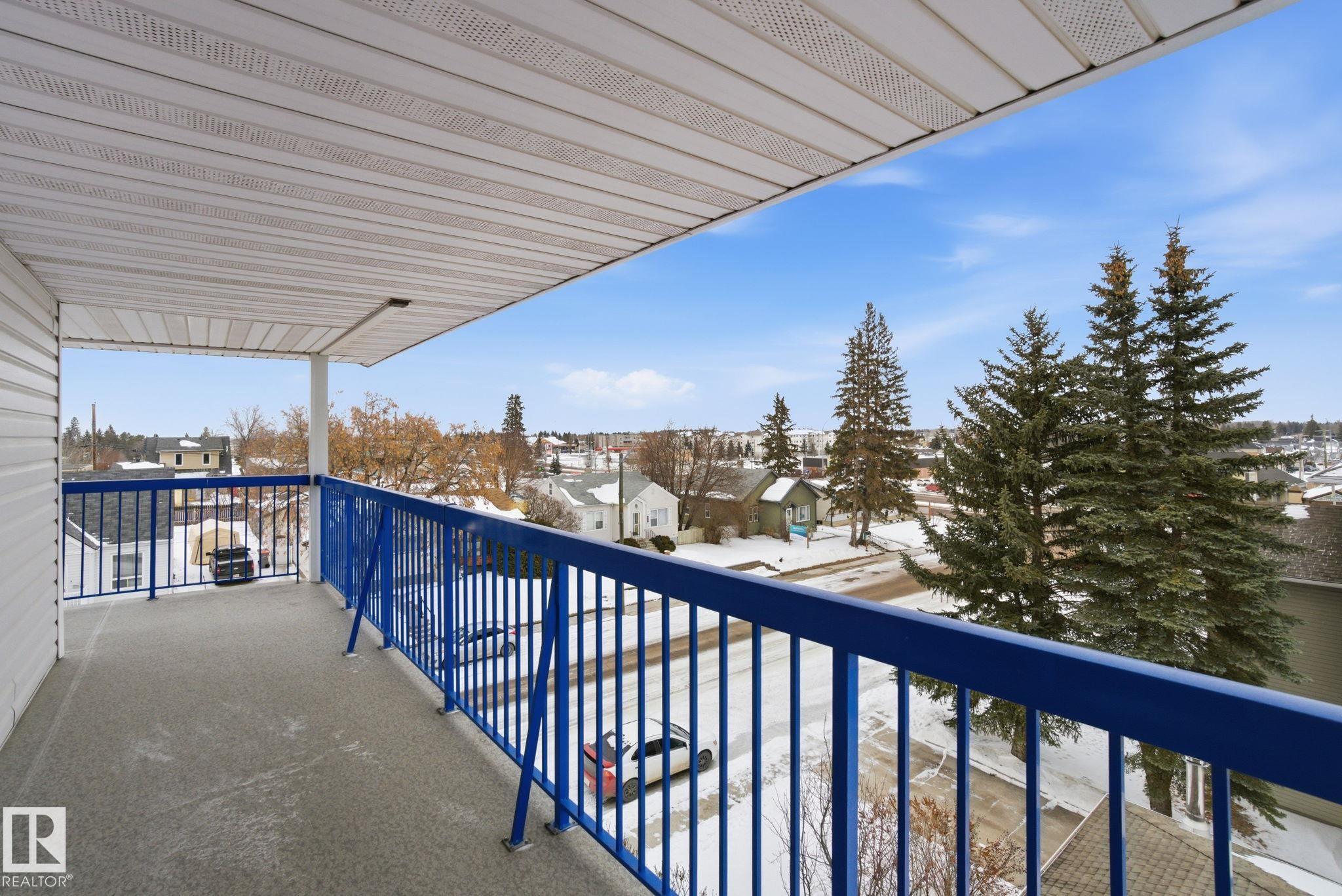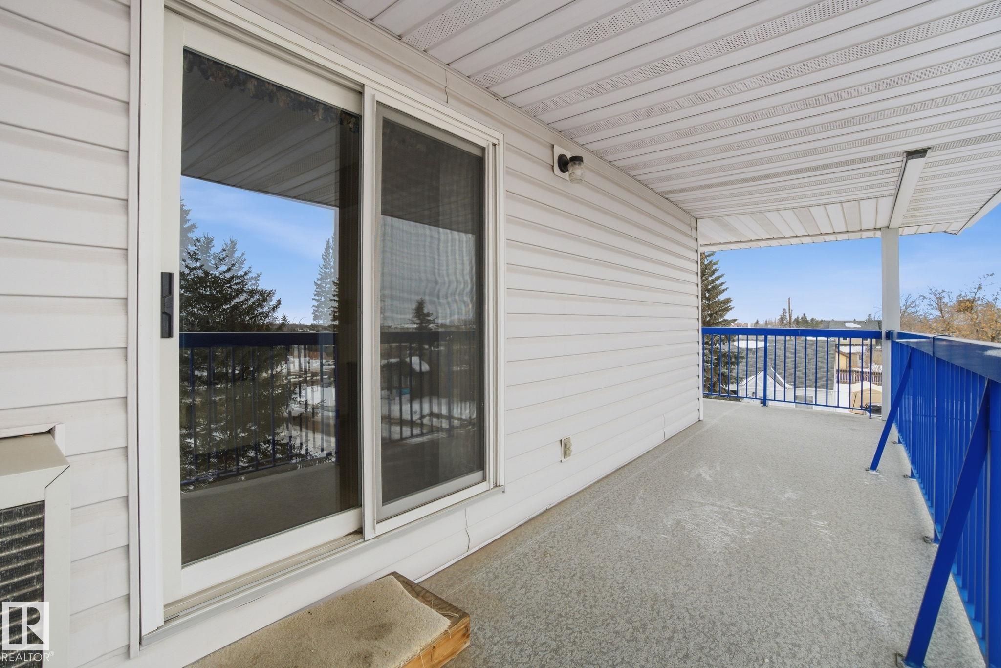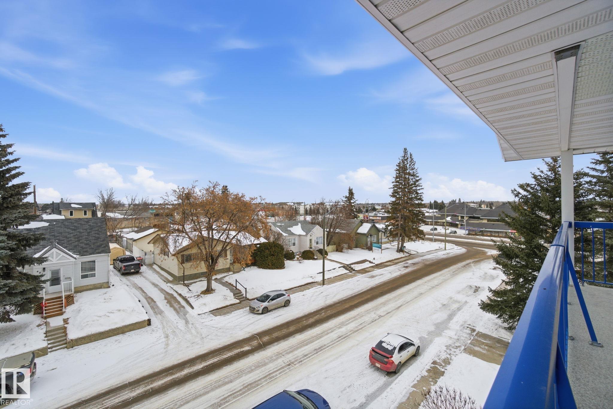 TOP FLOOR - CORNER UNIT 55+ adult living in this great 2 bedroom, 2 bathroom plus den unit in downtown Stony Plain! Feel at home as you walk in the door of this 1100 sq ft home. Very bright with natural light coming in from 2 sides. Kitchen is very functional with good prep space. Dining area is perfect for dinner at home but has room to host family too! Large living room is the perfect spot to watch your favourite show or chat with friends. The den makes a perfect spot to keep a home office or have a private spot to sit and read a book. Master bedroom has room for your furniture plus a walk in closet and 2pc ensuite. Guest bedroom is perfect for anyone from out of town. Additional 4pc bathroom too. Large laundry room has extra space for a freezer and storage in your unit. HUGE corner balcony wraps around with 2 additional storage rooms! Indoor heated parking to keep the snow off and an ADDITIONAL surface parking stall too right outside. Close to shopping, doctor, pharmacy and more!!!