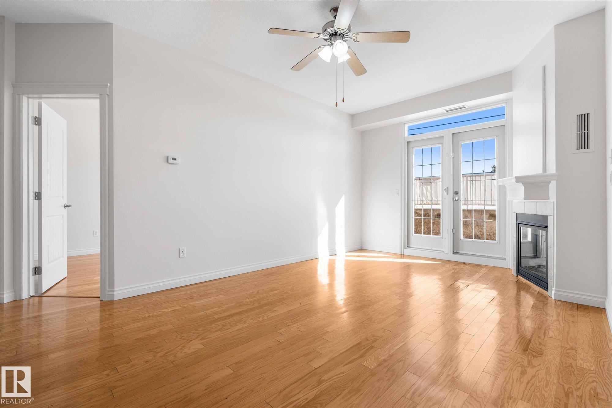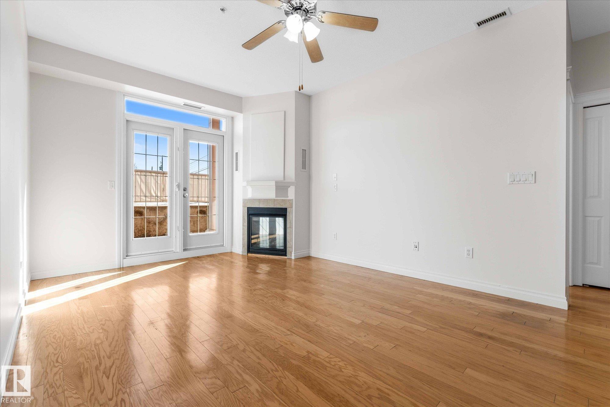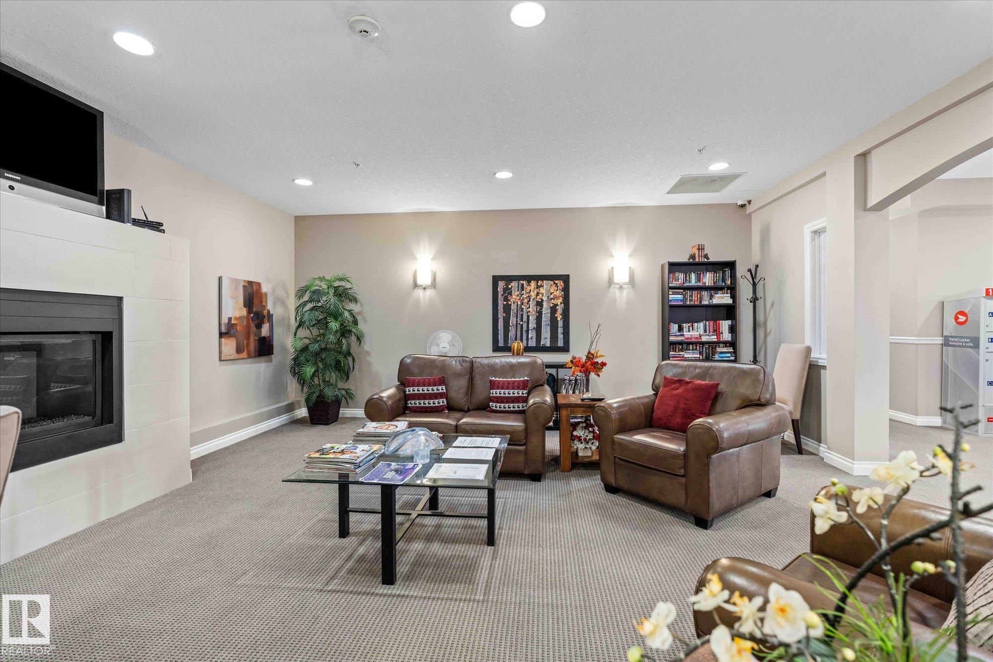 RARE GROUND-FLOOR CONDO in the highly regarded Barth & Gosset Manor downtown Stony Plain! This 2-bed, 2-bath unit offers low-maintenance living in a quiet, secure, concrete-built building. Freshly painted, the bright & functional layout features a corner gas fireplace, granite countertops, s/s appliances & a brand new electric stove. The primary bedroom includes a private 3-piece ensuite w/ an accessible walk-in shower. Step out to the oversized patio, perfect for relaxing without the upkeep of a yard. This ground-floor unit incl. a titled heated underground parking stall w/ storage. The building offers secure entry, a car wash bay & elevator access. Residents enjoy the fireside lounge + two social/activity rooms, incl. one w/ a kitchenette for gatherings. Situated on Main Street, you're steps away from shops, caf‚s & professional services. Ground-floor, solid construction & a well-maintained building--an exceptional opportunity to simplify your lifestyle in the heart of Stony Plain!*Includes VS Images*