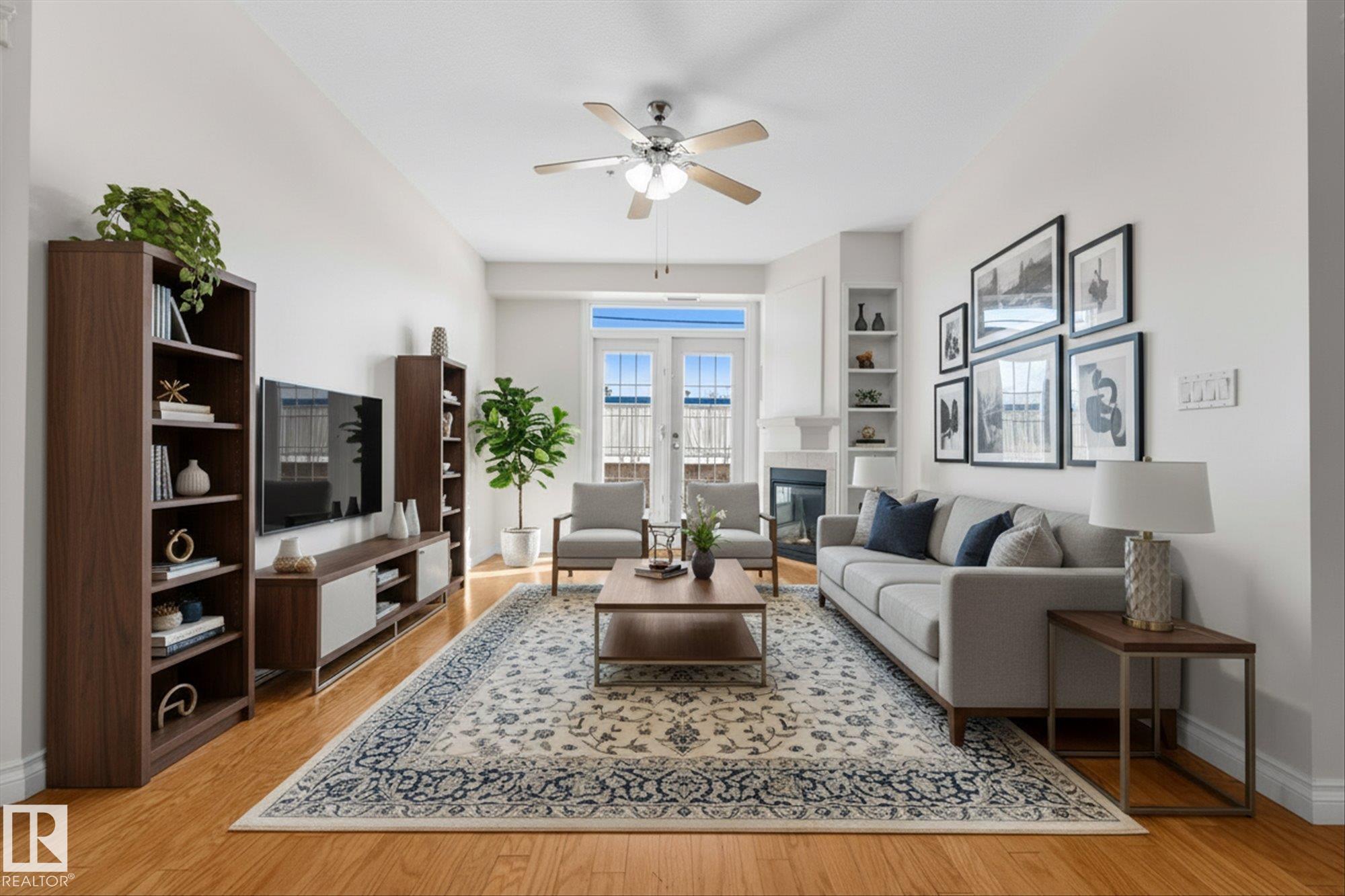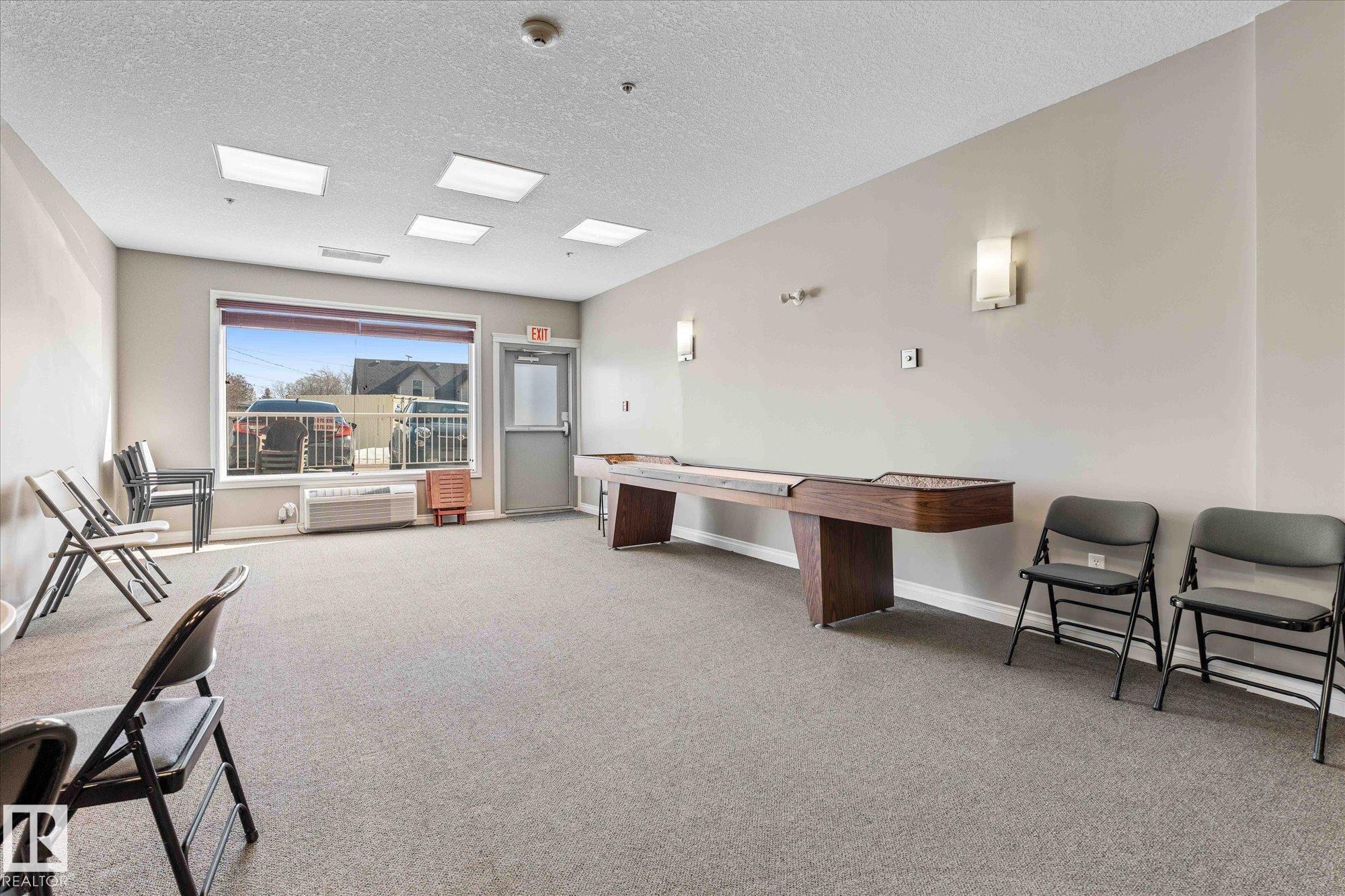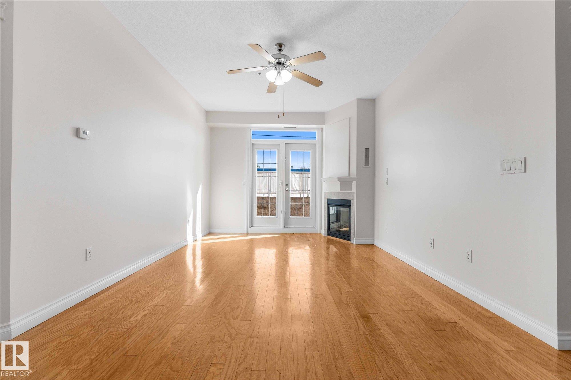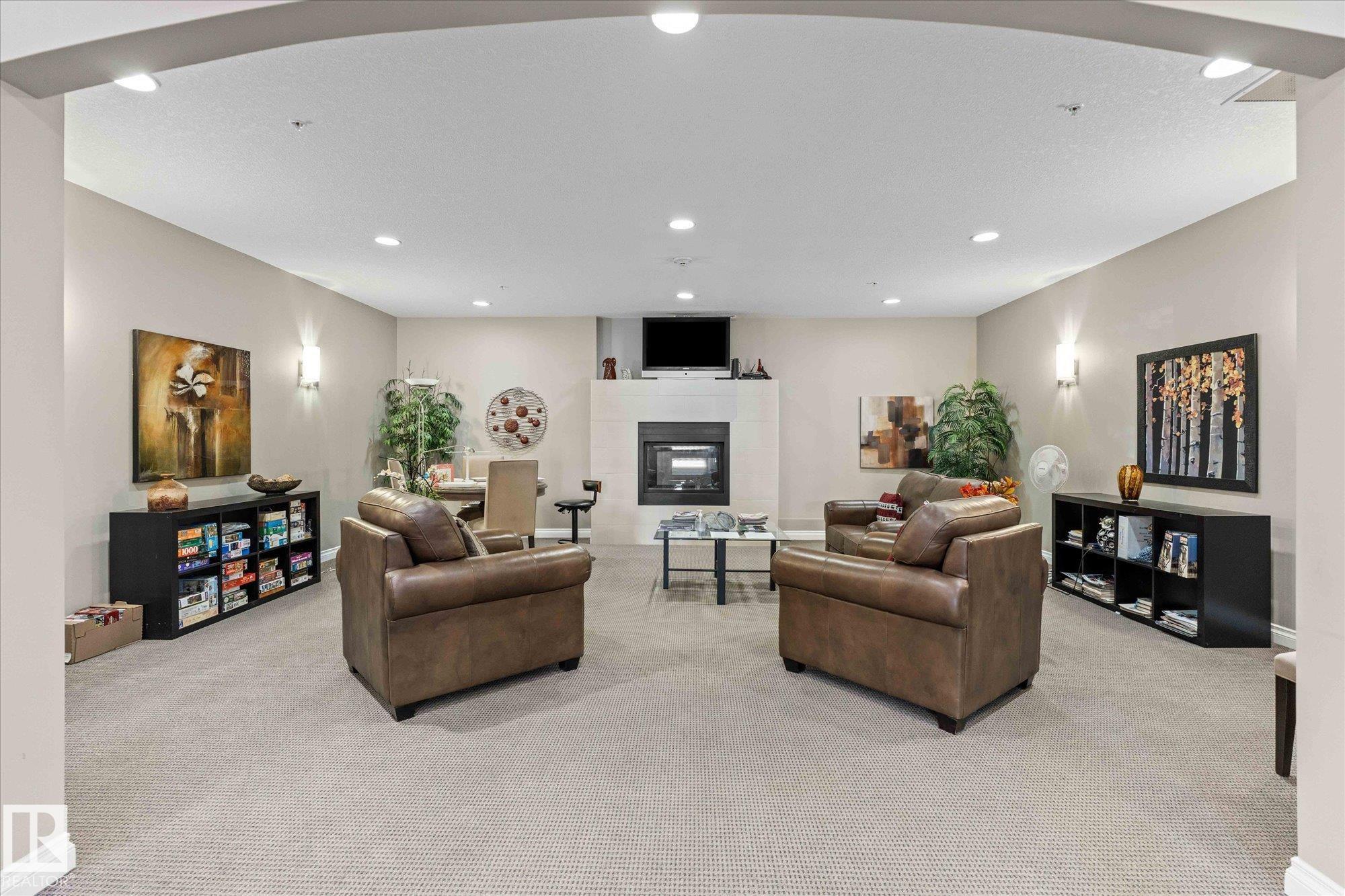 RARE GROUND-FLOOR CONDO in the highly regarded Barth & Gosset Manor downtown Stony Plain! This 2-bed, 2-bath unit offers low-maintenance living in a quiet, secure, concrete-built building. Freshly painted, the bright & functional layout features a corner gas fireplace, granite countertops, s/s appliances & a brand new electric stove. The primary bedroom includes a private 3-piece ensuite w/ an accessible walk-in shower. Step out to the oversized patio, perfect for relaxing without the upkeep of a yard. This ground-floor unit incl. a titled heated underground parking stall w/ storage. The building offers secure entry, a car wash bay & elevator access. Residents enjoy the fireside lounge + two social/activity rooms, incl. one w/ a kitchenette for gatherings. Situated on Main Street, you're steps away from shops, caf‚s & professional services. Ground-floor, solid construction & a well-maintained building--an exceptional opportunity to simplify your lifestyle in the heart of Stony Plain!*Includes VS Images*