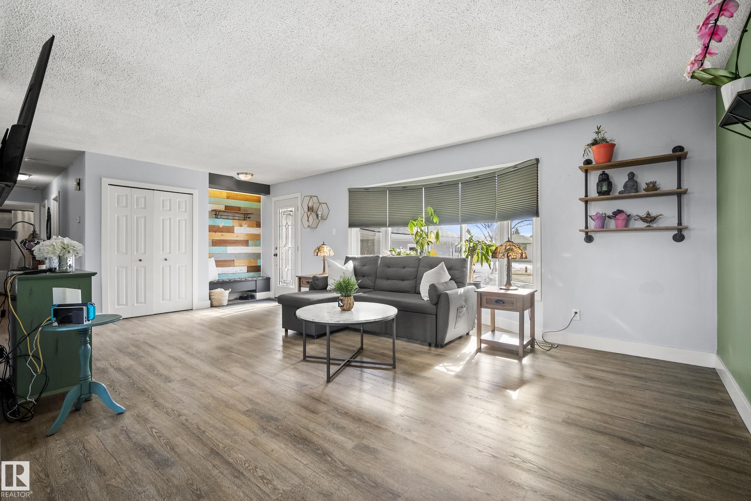 Welcome to the perfect family home in one of Stony Plain's most mature and sought-after neighbourhoods! This warm and inviting 3-bedroom beauty offers an ideal blend of comfort, charm, and functional space for everyday living. The main floor features stylish vinyl plank flooring and a super-convenient main-floor laundry--truly a game changer for busy households. Upstairs, the bedrooms are bright and welcoming, while the fully finished basement adds incredible versatility with a spacious rec room, a quiet den, and a fantastic theatre room, plus loads of extra storage. Love outdoor living? The massive backyard is ready for summer fun, complete with a deck and handy back-lane access. With 3 well-appointed bathrooms and a huge front attached garage measuring 23'10" x 23'6", there's room for everything--from vehicles to hobbies and more. This is the kind of home that just feels right the moment you walk in--warm, roomy, and ready for its next family to love!