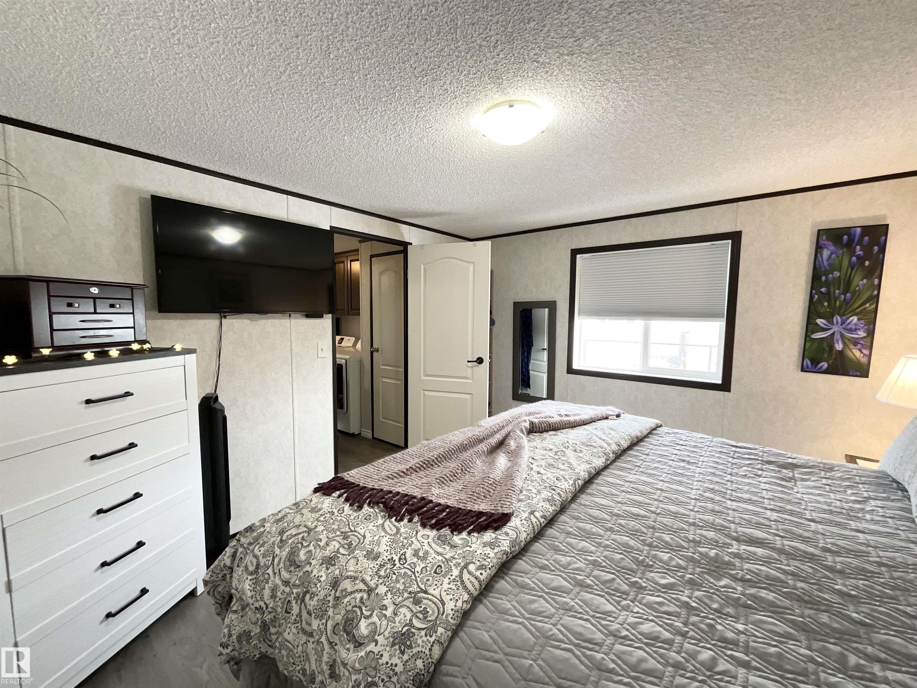 Welcome home to this immaculately maintained bungalow, located on a quiet street in the growing community of Stony Plain. There are ZERO lot fees or condo fees; you own the land! This property resides on a massive 600 square meter lot with a fully fenced backyard, and a huge paved driveway with space for multiple vehicles and an RV. The yard provides plenty of room for future additions, a potential garage, and an abundance of space for children and dogs to play. Upgrades over the past 2 years include: Fence, luxury vinyl flooring, lighting, blinds, fan, stove, fridge, sink, toilet, and front door. The kitchen is large, bright, and has ample cupboard space, while the bathroom is clean and modern. A tremendous location, just down the road from the Stony Plain Golf Course, daycares, grocery stores, and restaurants. If you are an individual, couple, or small family looking for a house with a giant yard to call your own, you won't find better value than this gem.