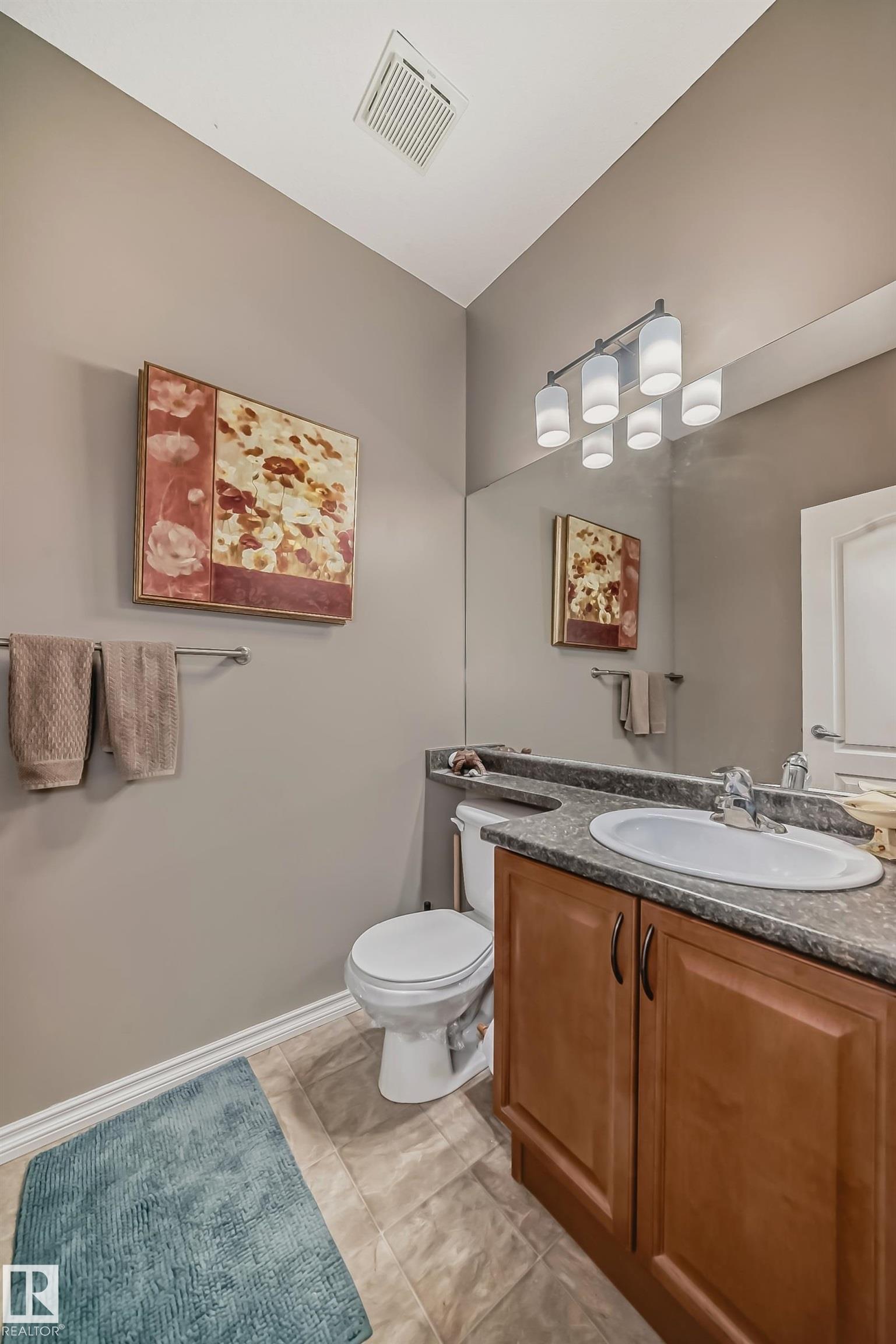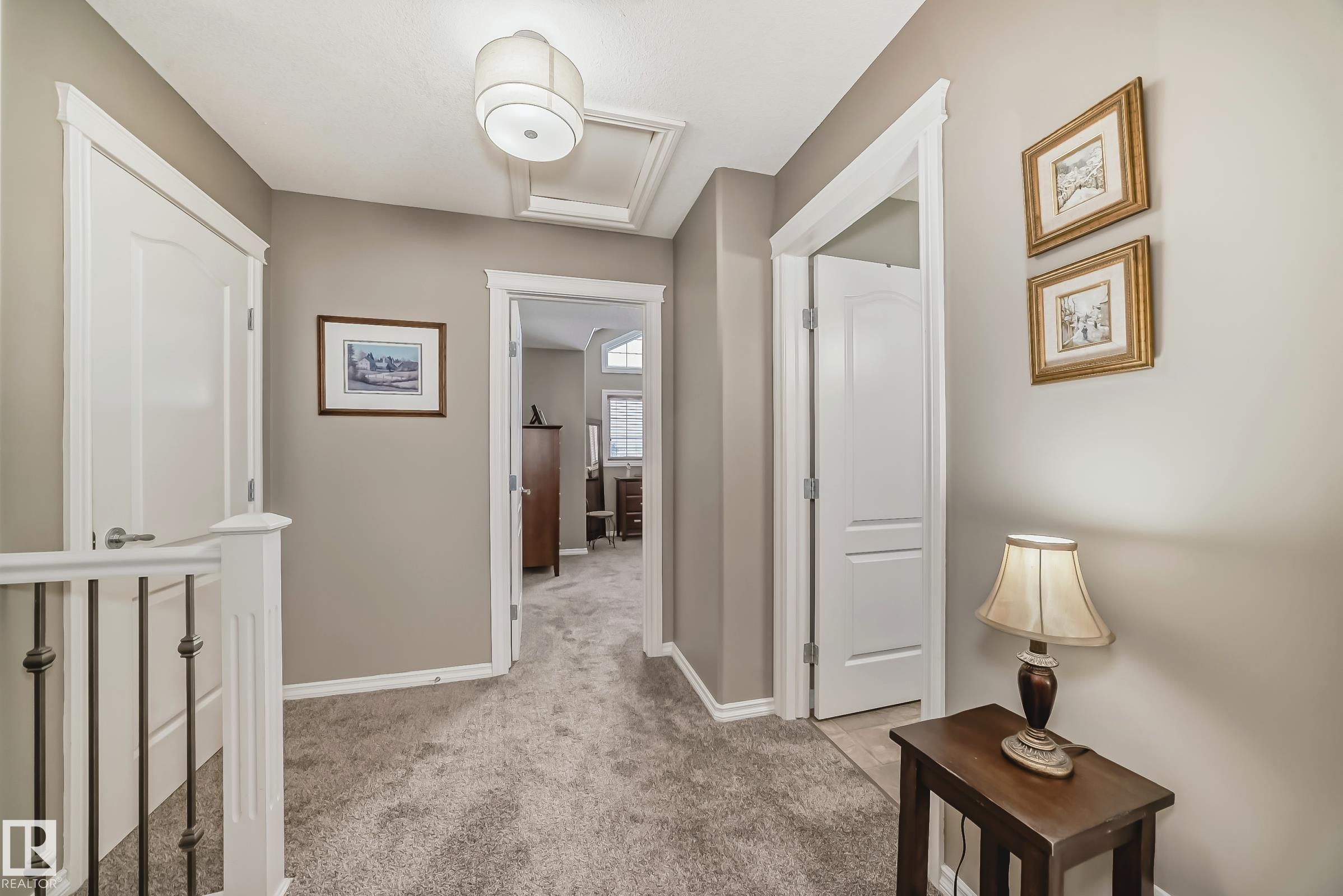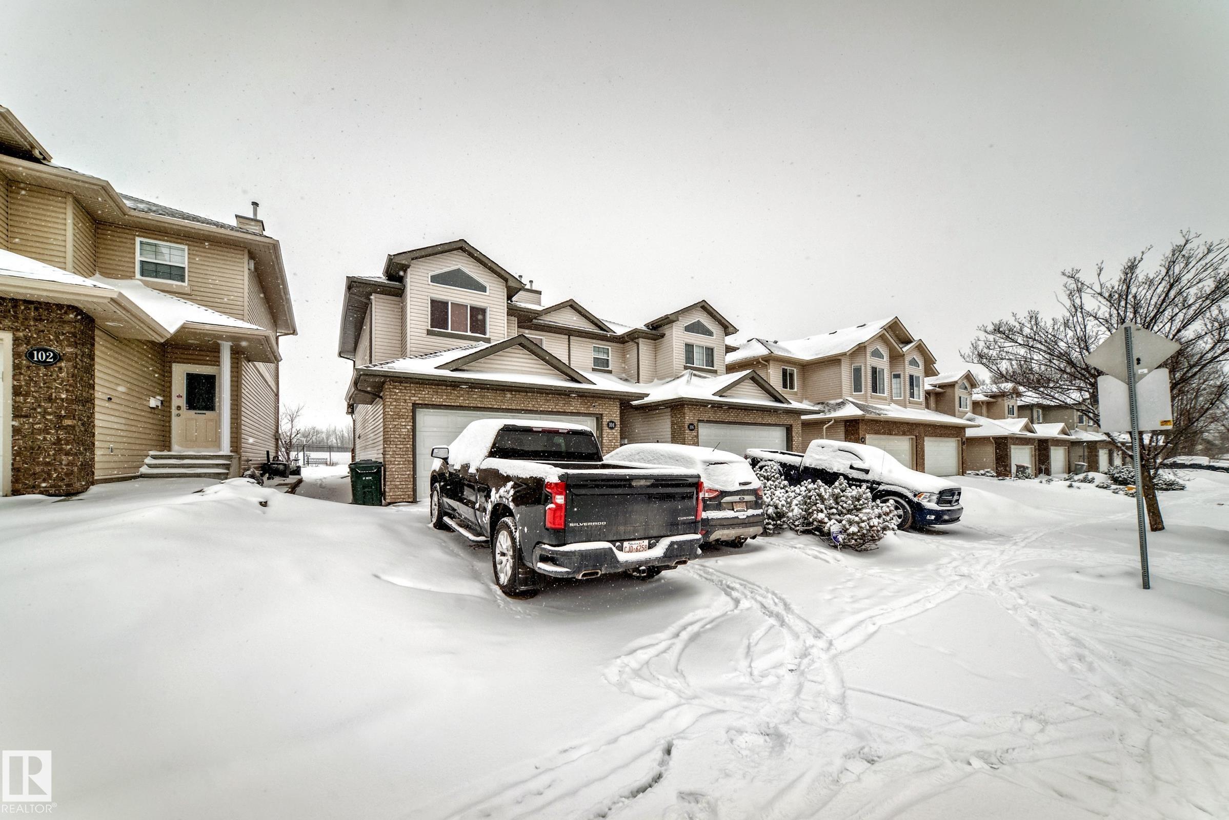 Westerra Community in Stony Plain! Prime Location! This is 1424 sq. ft. 2 story Half Duplex. Fantastic open-concept main floorplan is perfect for the family & entertaining. 9ft ceilings, big windows, super bright & sunny. Large Great Room, cozy gas fireplace, family sized dining area with patio doors. Kitchen has new stainless steel appliances, gas stove, eating bar can fit a few stools, beautiful wood cabinetry, panty. 2 closets and a 2 piece bathroom. Upstairs, massive Primary suite, vaulted ceilings, his & hers closets, full 3 piece ensuite bath, large double shower. With 2 more good sized bedrooms both have double closets & a view of the park. Basement, fully developed, big rec/games room, laundry, storage, 3 piece bathroom, walk-in tiled shower! The deck has a convenient BBQ gas line & backs right onto a beautiful park, facing SW! Double attached insulated garage. Parks, school & golf course close by! Fully air-conditioned, recently painted throughout & updated fixtures & carpets. Move in Ready!