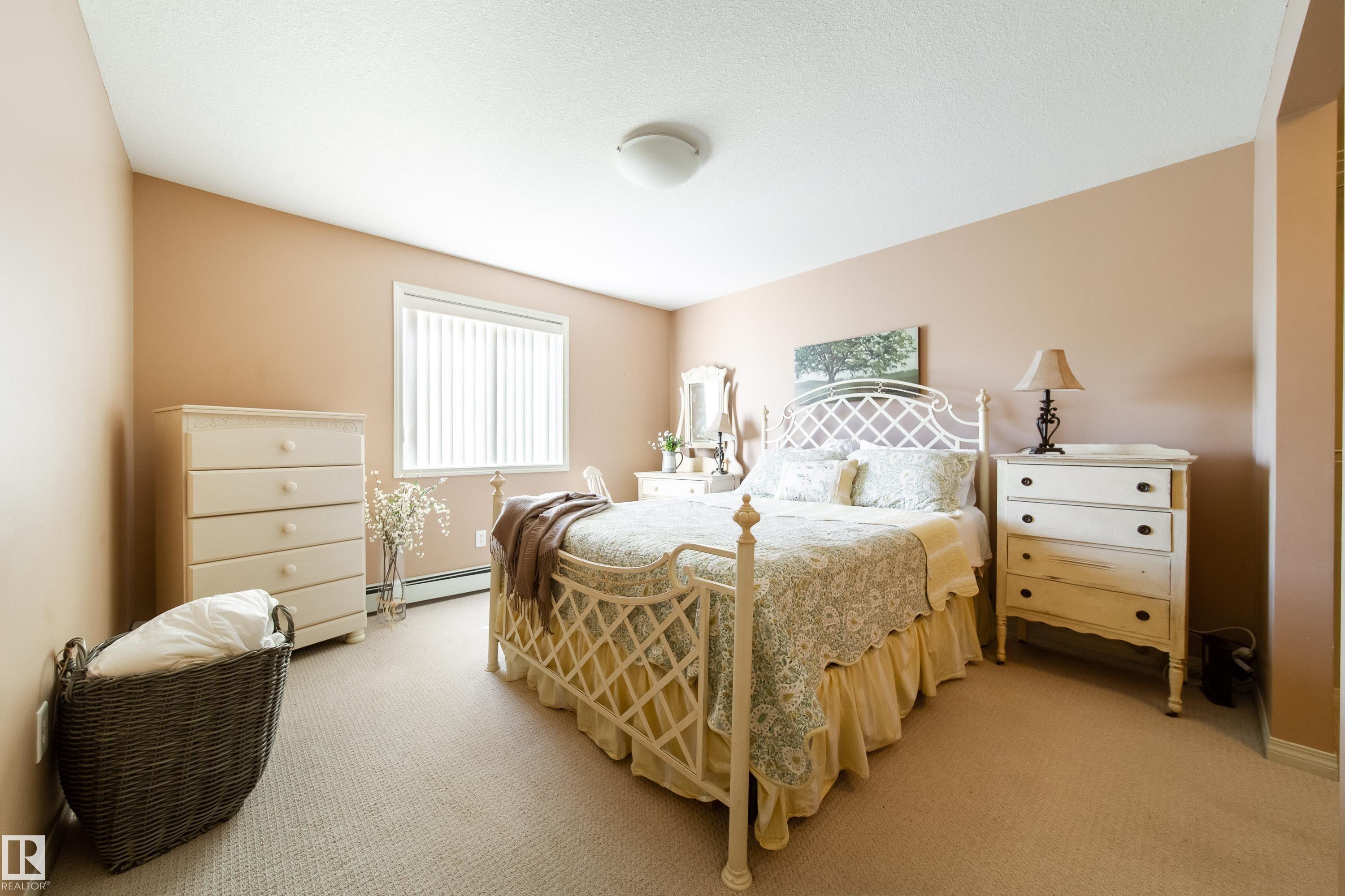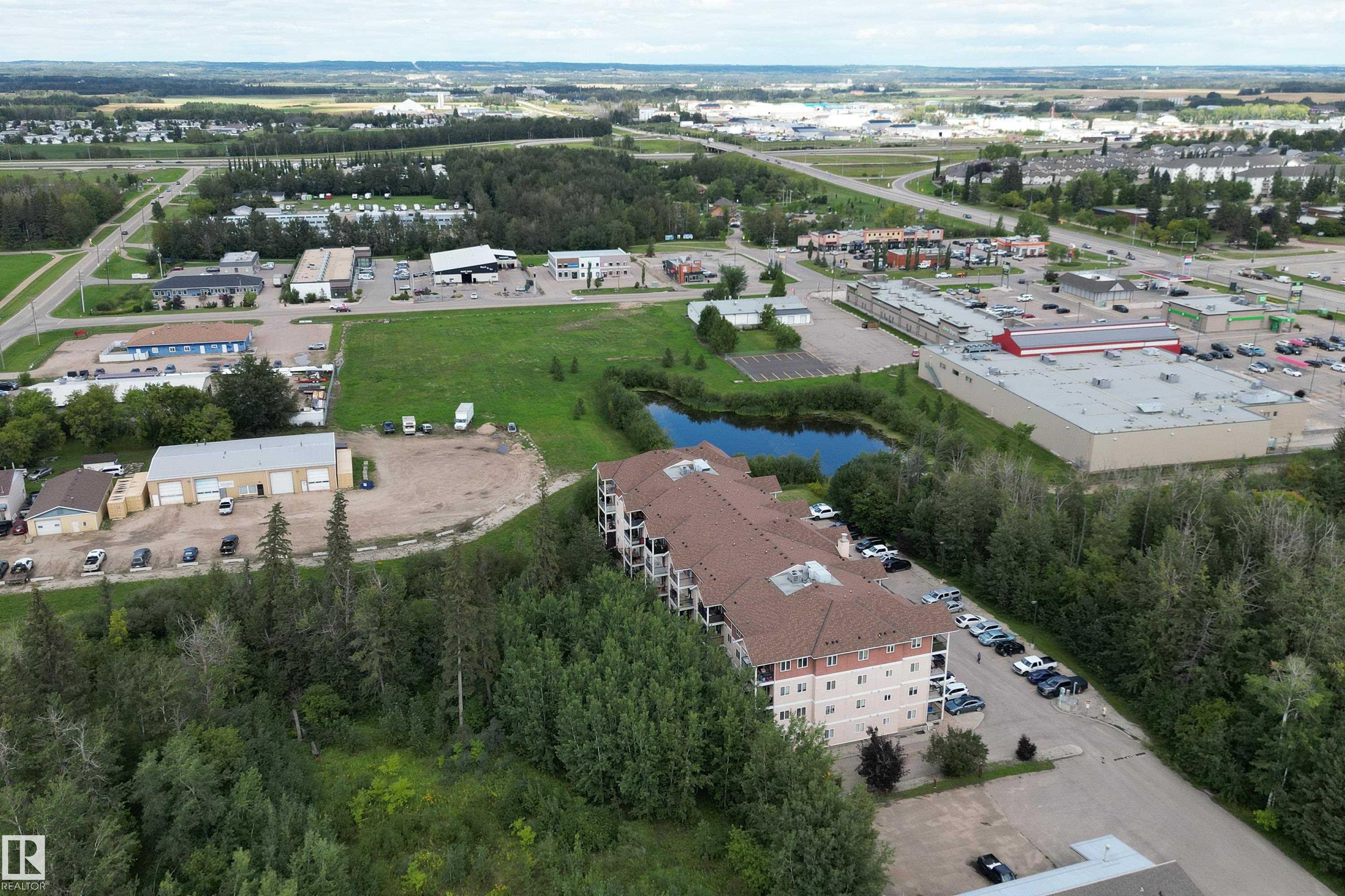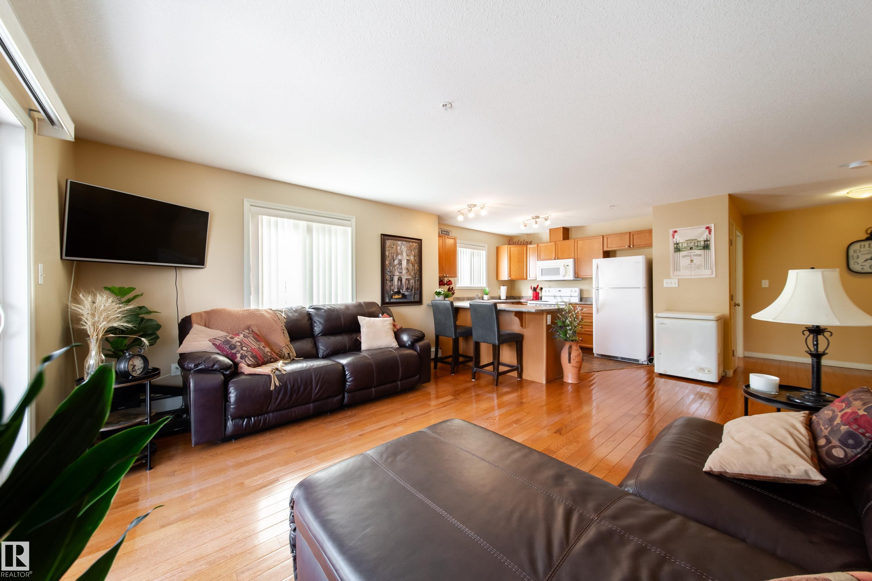 BRIGHT AND WELCOMING CORNER UNIT 2 bedroom, 2 bath condo is an absolute MUST SEE!! This lovely apartment style home is flooded with natural light and maximizes the square footage with a great, open-concept floor plan! Exceptional features include warm and elegant (newer) hardwood floors, large living room with east-facing balcony & beautiful treed views, well appointed kitchen with newer appliances, 2 generous-sized bedrooms, 2 FULL bathrooms, in-suite laundry, heated and secured underground parking, and secured mail delivery. This great condo is tucked away in a great location in Stony Plain - private and treed area with no-thru access road, NORTH of the train tracks (no waiting in train traffic jams!!), EASY walking distance to MAJOR grocery stores, pharmacies, restaurants, and all MAIN STREET has to offer, easy access to commuter roads and SO MUCH MORE! This value-price condo could be the PERFECT fit for your lifestyle.... an opportunity you won't want to miss!