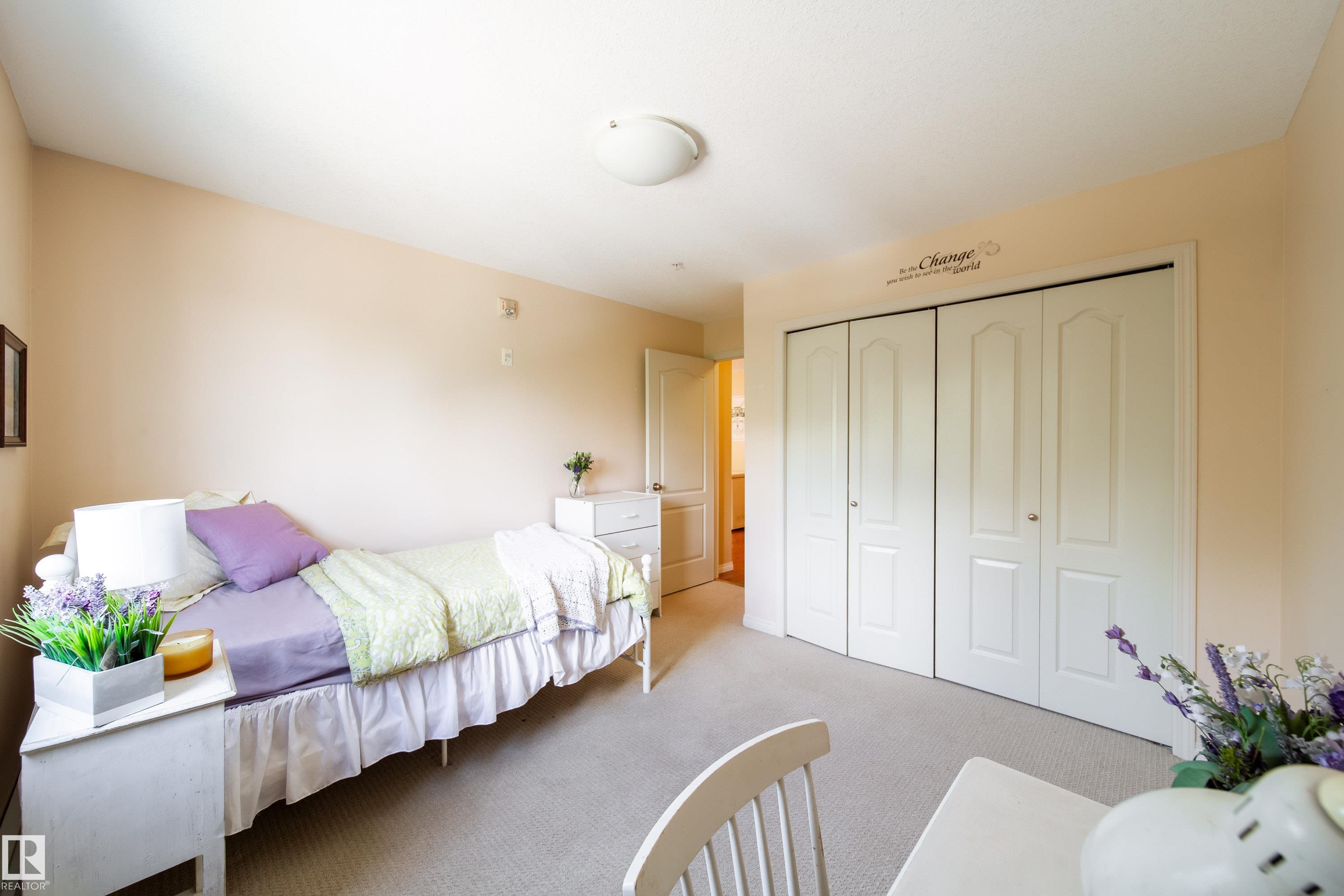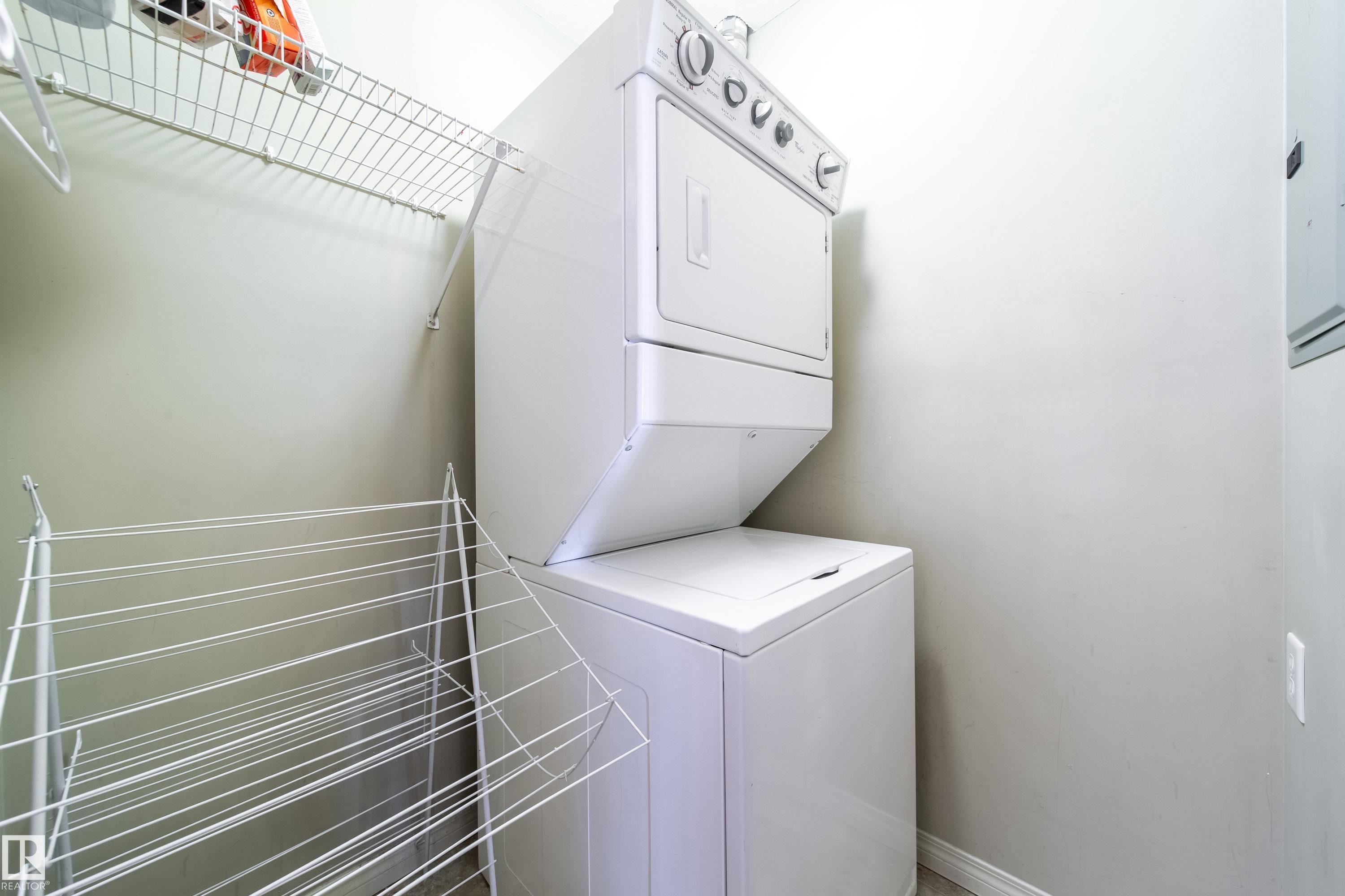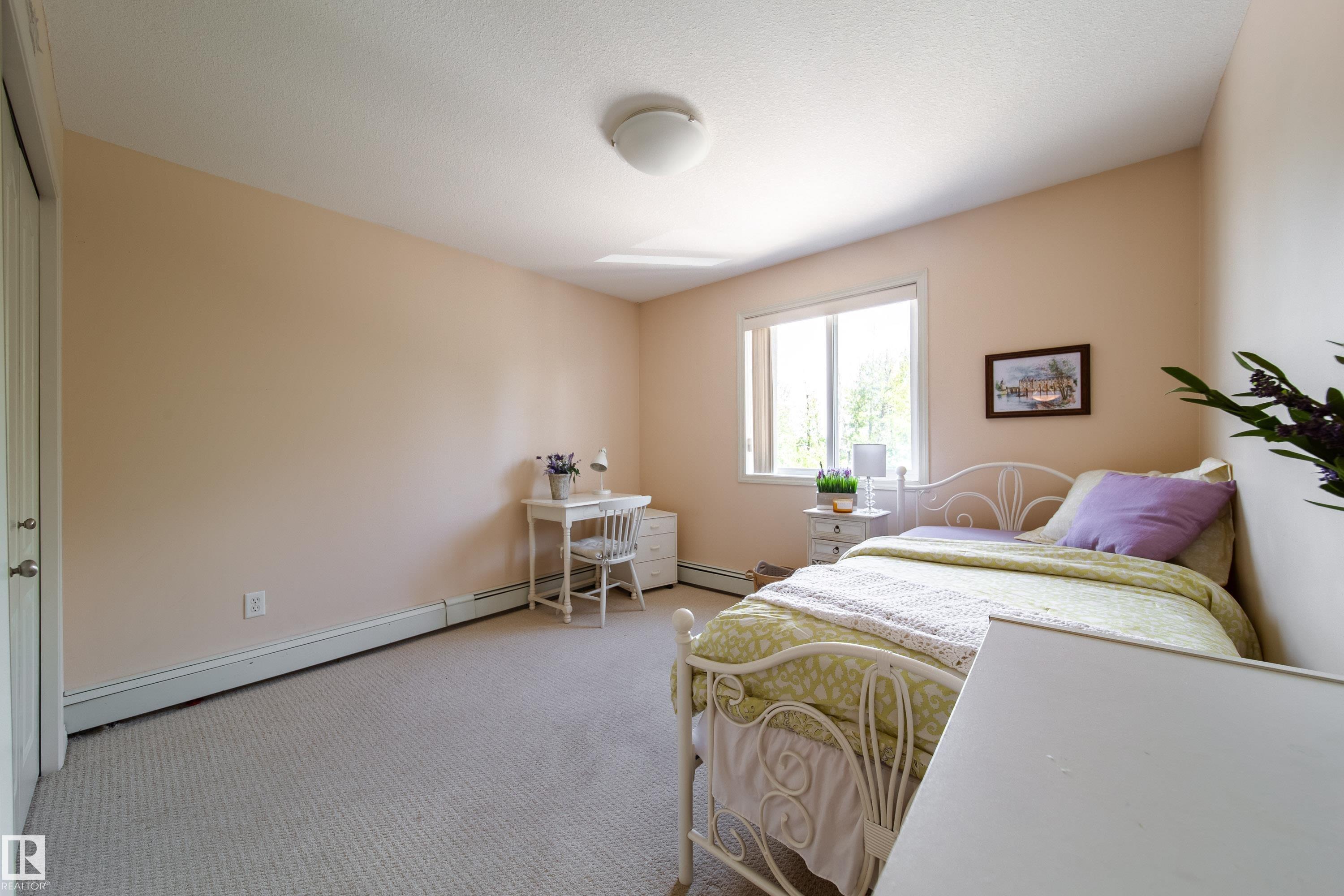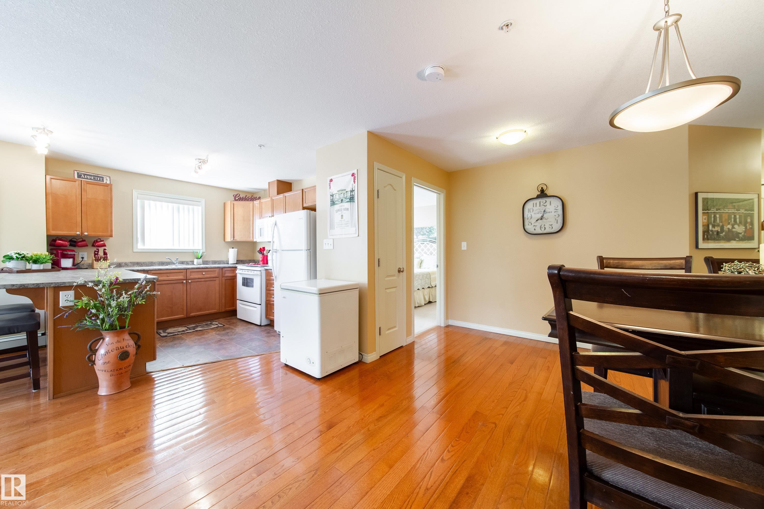 BRIGHT AND WELCOMING CORNER UNIT 2 bedroom, 2 bath condo is an absolute MUST SEE!! This lovely apartment style home is flooded with natural light and maximizes the square footage with a great, open-concept floor plan! Exceptional features include warm and elegant (newer) hardwood floors, large living room with east-facing balcony & beautiful treed views, well appointed kitchen with newer appliances, 2 generous-sized bedrooms, 2 FULL bathrooms, in-suite laundry, heated and secured underground parking, and secured mail delivery. This great condo is tucked away in a great location in Stony Plain - private and treed area with no-thru access road, NORTH of the train tracks (no waiting in train traffic jams!!), EASY walking distance to MAJOR grocery stores, pharmacies, restaurants, and all MAIN STREET has to offer, easy access to commuter roads and SO MUCH MORE! This value-price condo could be the PERFECT fit for your lifestyle.... an opportunity you won't want to miss!
