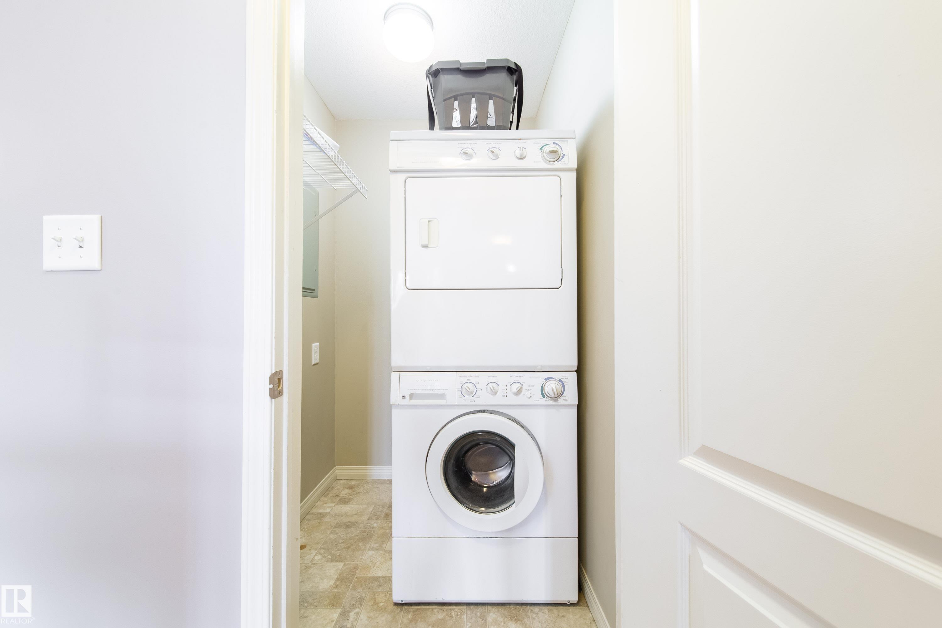Amazing TOP FLOOR Condo in desirable Stony Plain! Fantastic 2 Bed 2 bath condo offers a floor plan that maximizes the square footage with a great, open-concept floor plan. From the well laid out kitchen with breakfast bar to the dining area to the living area that has patio doors leading outside, this unit offers so much! The east-facing deck looks onto trees & is the perfect spot for morning coffee or evening BBQs alike! The primary bedroom has walk thru closets to the full 4pc ensuite. The 2nd bedroom is generous sized & next to the main bath. Other features of this condo are in-suite laundry, heated & secured underground parking, & secured mail delivery. This condo is tucked away in a great location - private & treed area with no-thru access road, NORTH of the train tracks (no waiting in train traffic jams!!), EASY walking distance to MAJOR grocery stores, restaurants, & all MAIN STREET has to offer, easy access to commuter roads & MORE! This value-priced PET FRIENDLY condo could be your PERFECT fit!!
