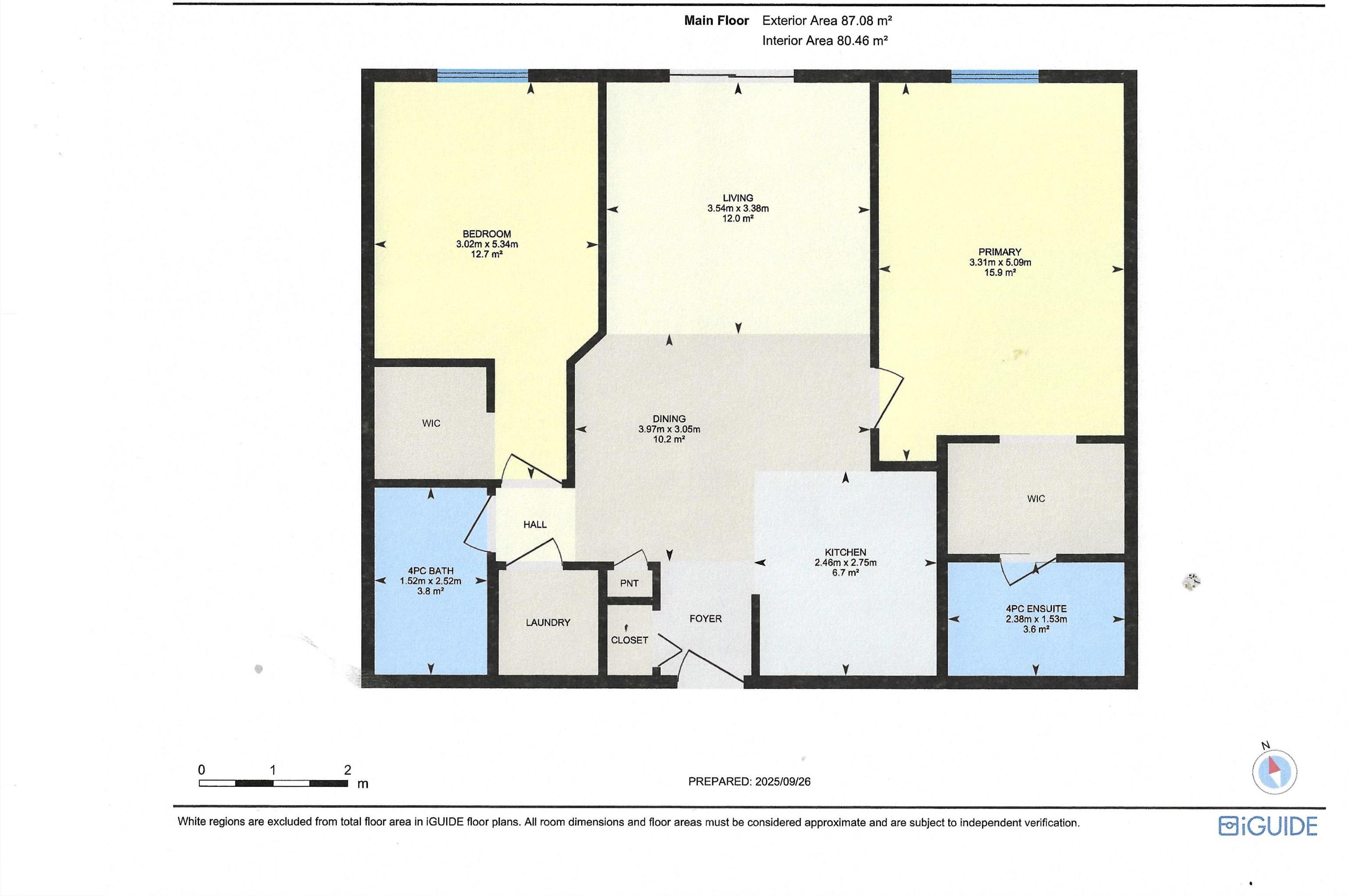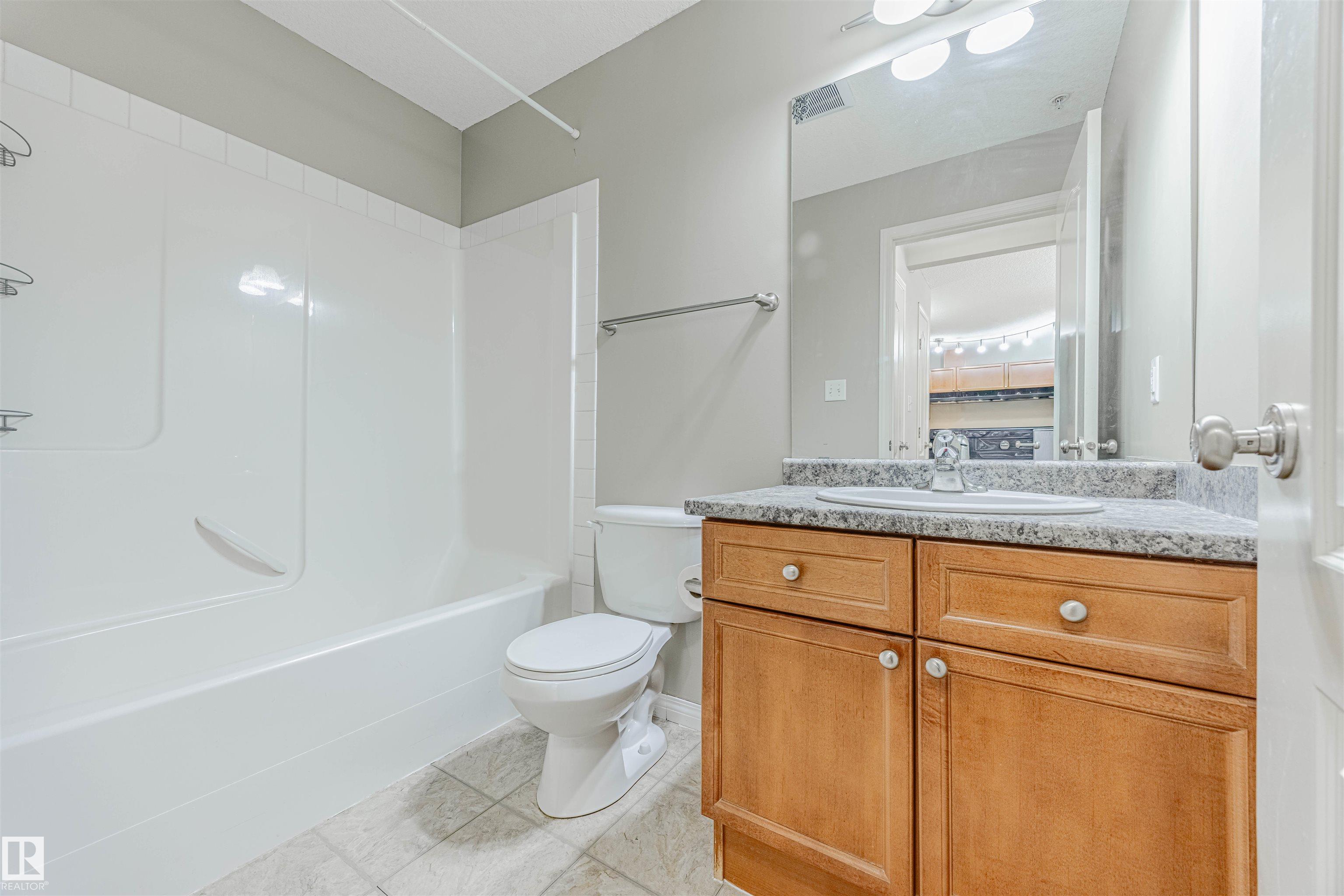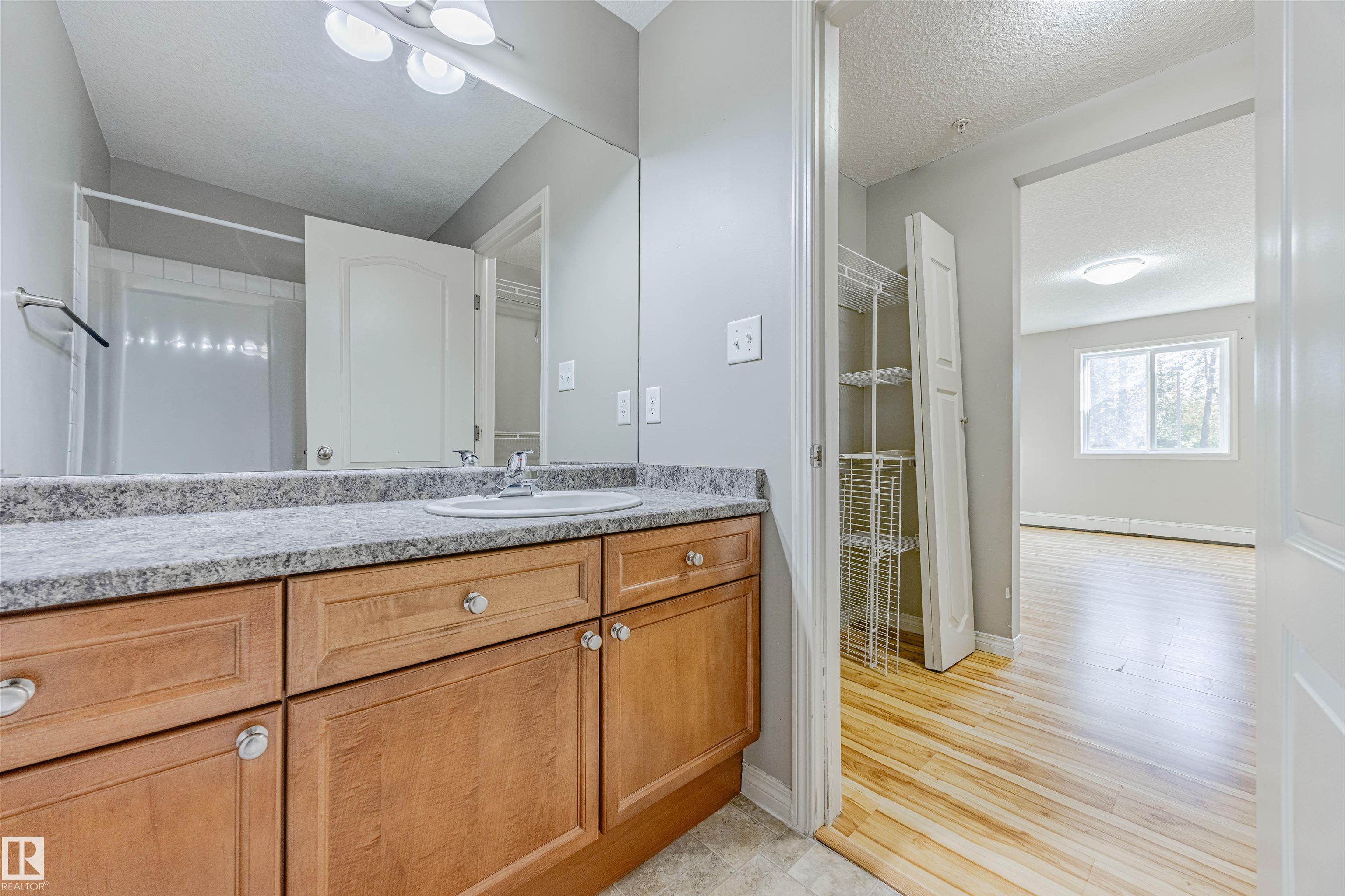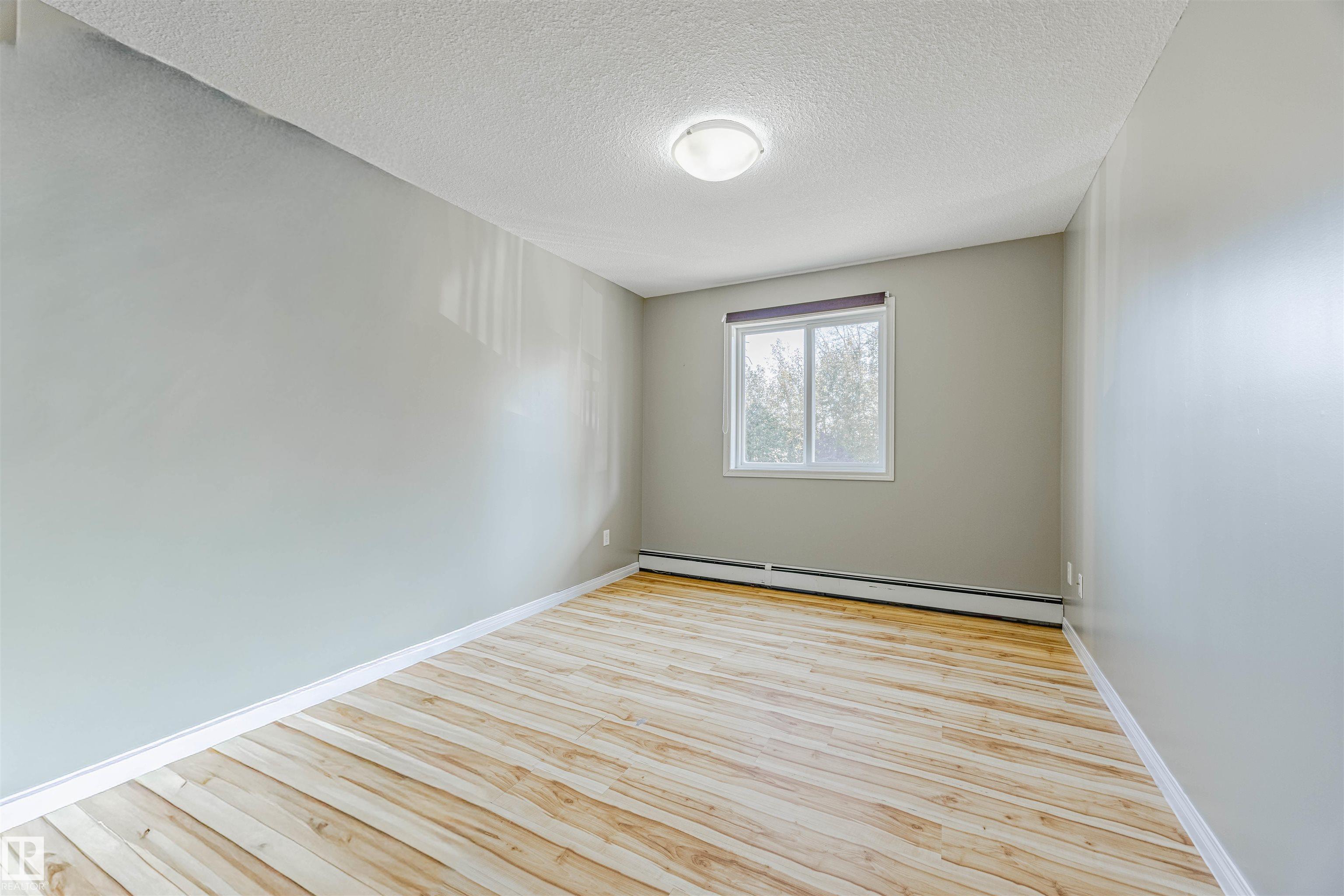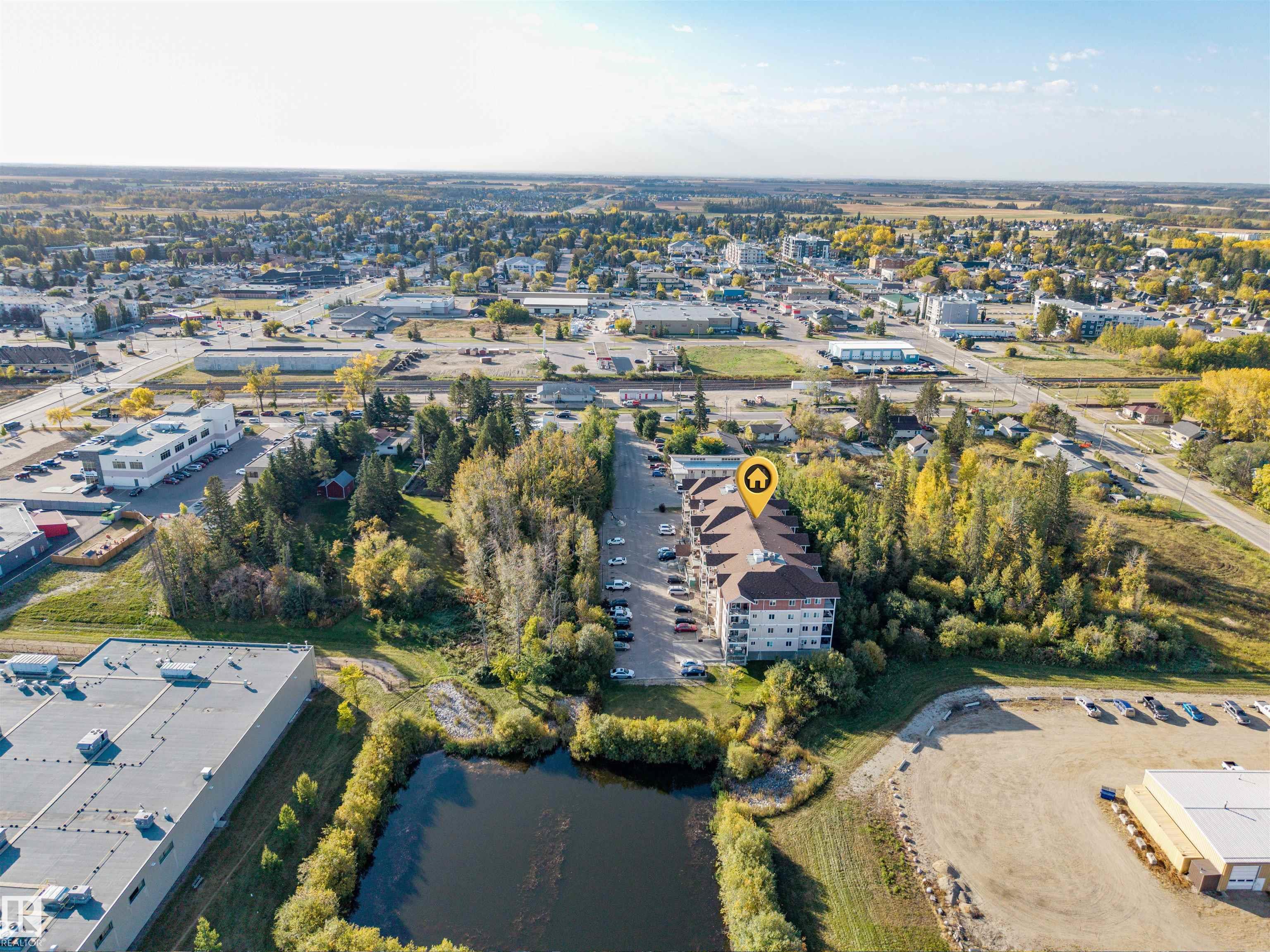 Nestled in a quiet area of Stony Plain, this bright and spacious second floor, 2-bedroom, 2-bathroom condo. The open floor plan features a well-appointed kitchen with plenty of cupboard and counter space, complete with all major appliances and convenient in-suite laundry. The Primary Suite has a walkthrough closet and full 4 piece ensuite. Durable laminate flooring and carpeted unit, with easy-care linoleum in the bathrooms. An assigned parking stall is included for your convenience. Ideally located close to schools, shopping, and all amenities, this unit offers both comfort and accessibility. The empty room pictures are of an identical layout/floor plan in the same building. Note the Microwave has been replaced with a Hood Fan.