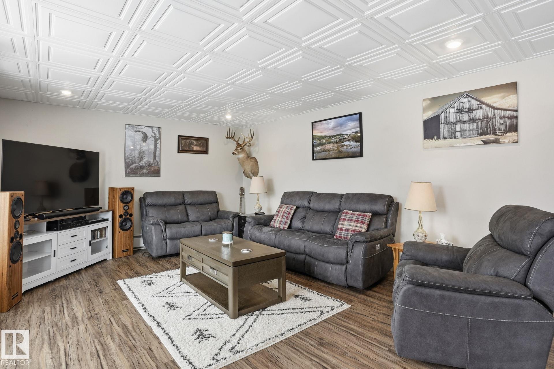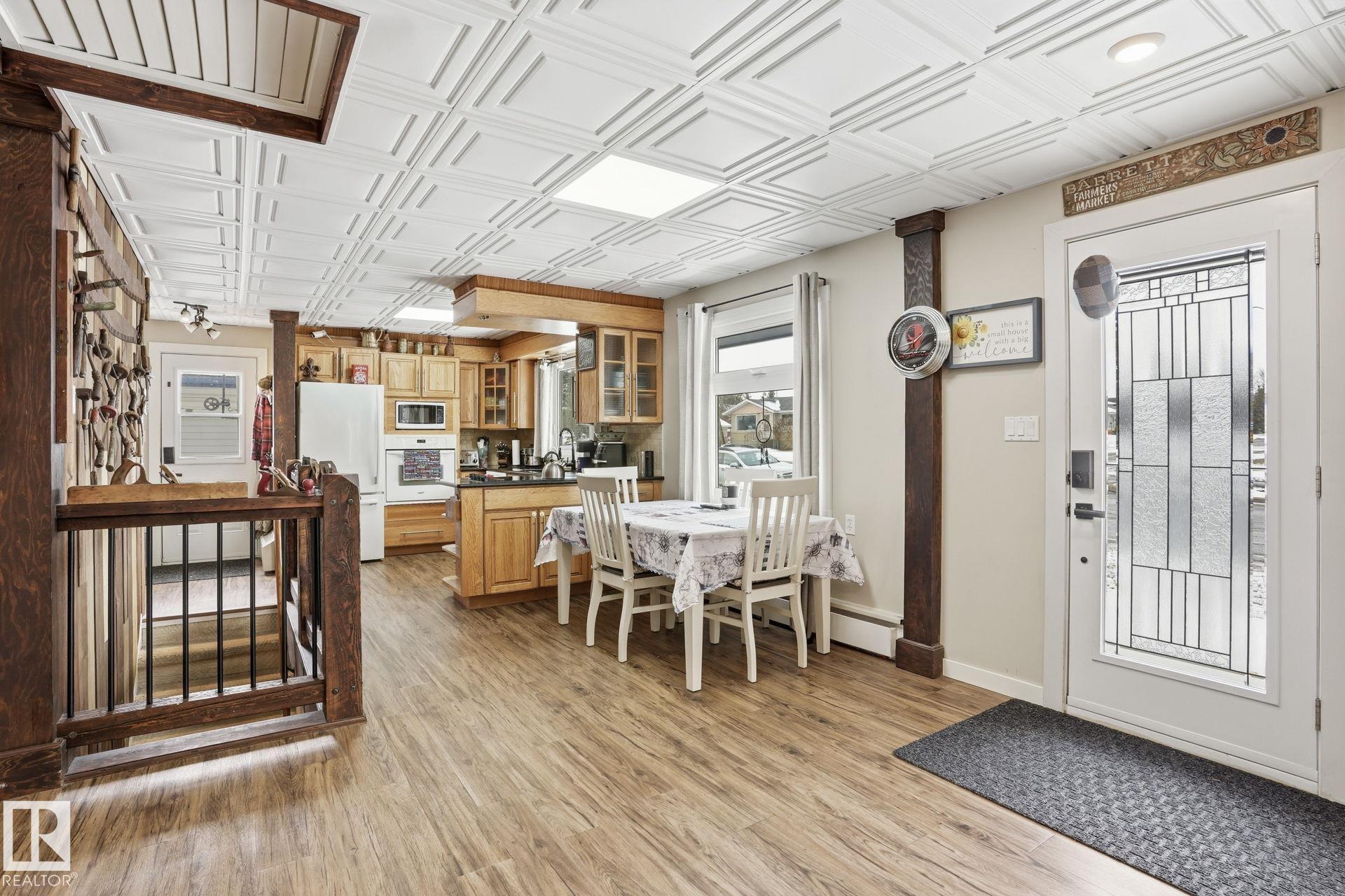 If you've been waiting for a bungalow with space (without giving it all up) this is it. Over 2,000 sqft of total living space that includes a fully finished basement with a bedroom and bathroom, this home features an open main floor with a bright kitchen, dining area, and comfortable living room. There are 3 bedrooms up with a generously sized upgraded bathroom and the basement is equipped with a large family room, flex space, 4th bedroom, 3-piece bath, laundry, and storage, perfect for guests, hobbies, or simply spreading out. No need to sacrifice storage or function here, there's room for everything! Outside, enjoy no rear neighbours and access to green space. The oversized 28x26 heated double detached garage is a standout, plus an attached carport. Updates include some windows/doors (approx. 3 yrs), shingles (approx. 10 yrs), Boiler (Nov 2024). Solid home, great Old Towne Stony Plain location and excellent value!