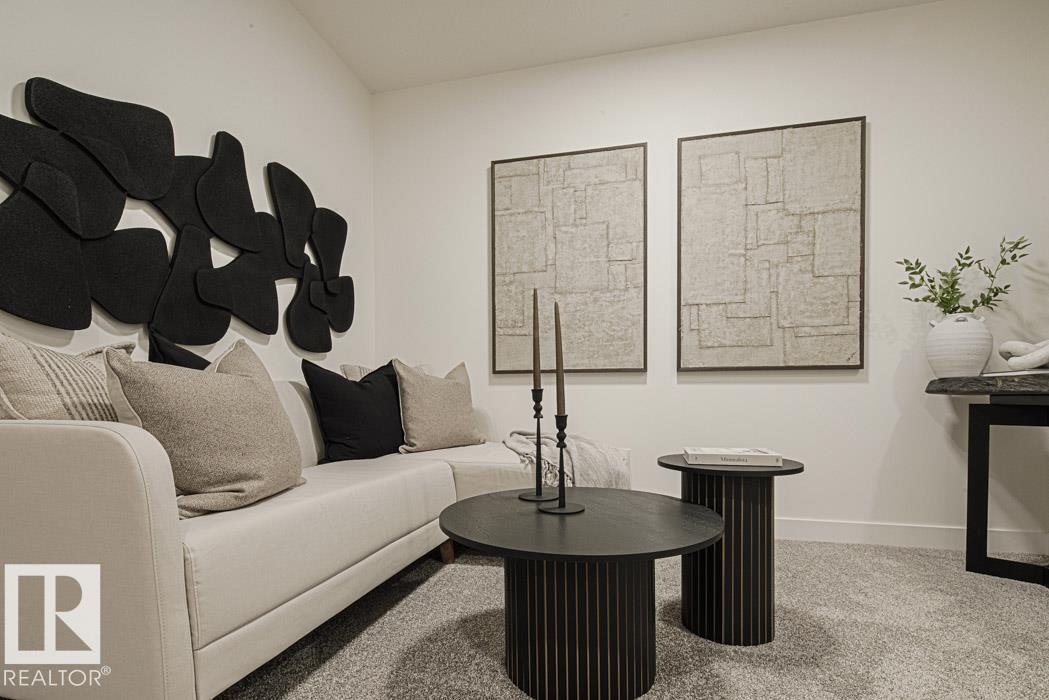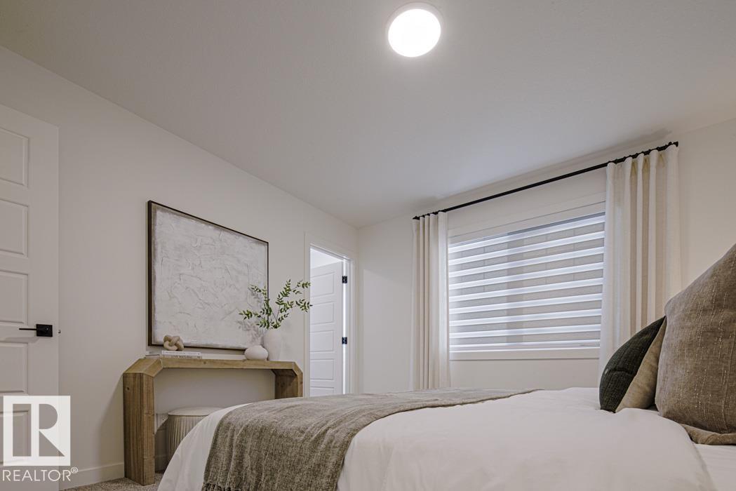 Built by Sterling Homes, this bright duplex in SouthCreek blends modern comfort with the peaceful, open feel that draws people to Stony Plain. Triple pane windows and 9' ceilings create an airy main floor, while warm luxury vinyl plank flooring unifies the living spaces. The front foyer flows into a welcoming great room centered around an electric fireplace--perfect for cozy evenings. The kitchen is thoughtfully designed with quartz countertops, upgraded cabinetry, a corner pantry, chimney hood fan, and a large island that naturally becomes the heart of gatherings. Expansive rear windows and a patio door fill the home with natural light and overlook the future deck and backyard. Upstairs, a versatile bonus room adds flexibility, while the primary suite features a walk-in closet and private ensuite. Two additional bedrooms, a full bath, upper laundry, double attached garage with drain, side entrance, and basement rough-ins complete this well-rounded home.