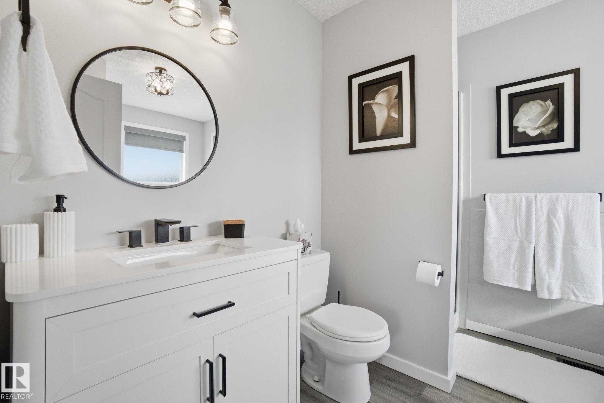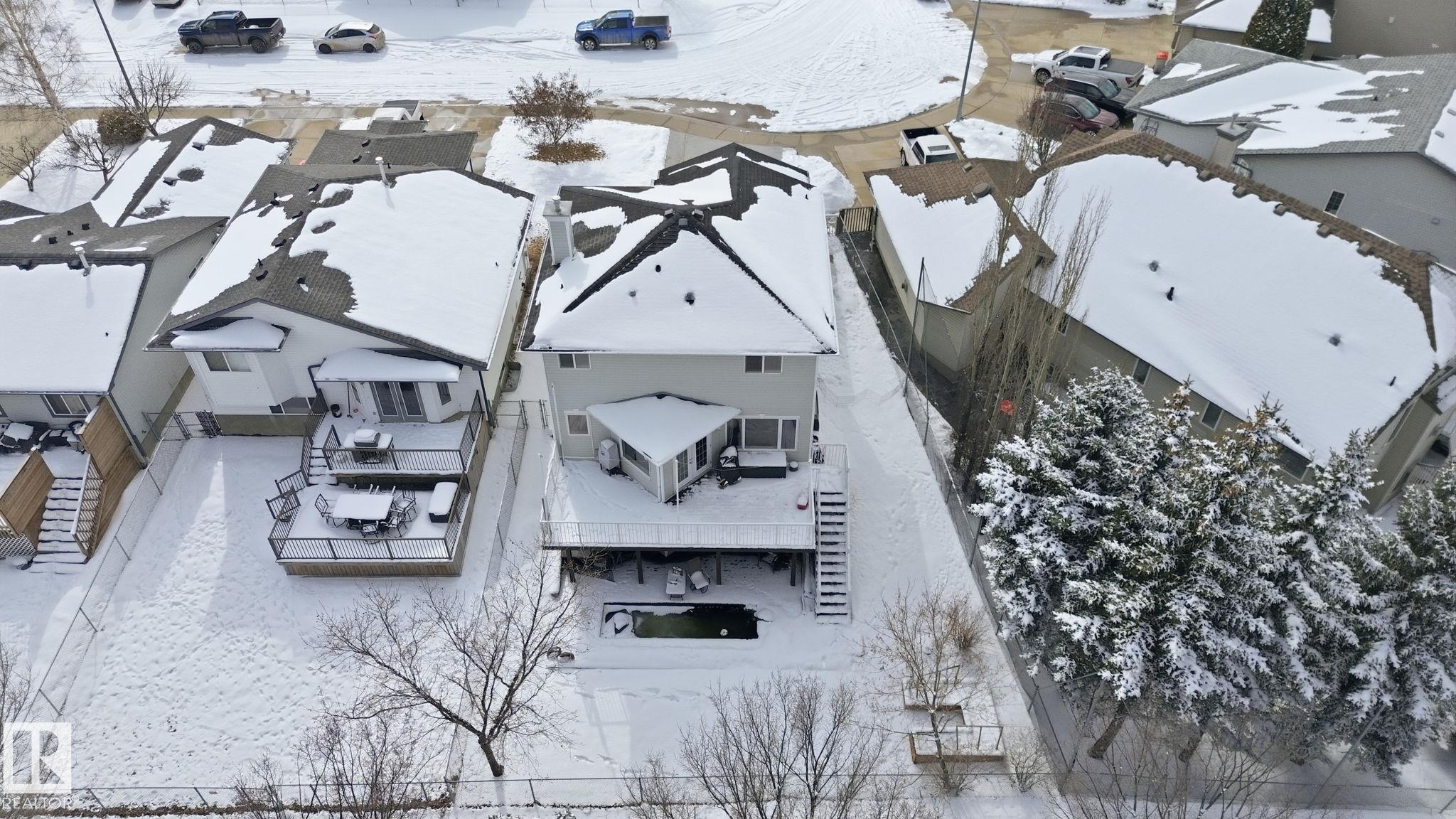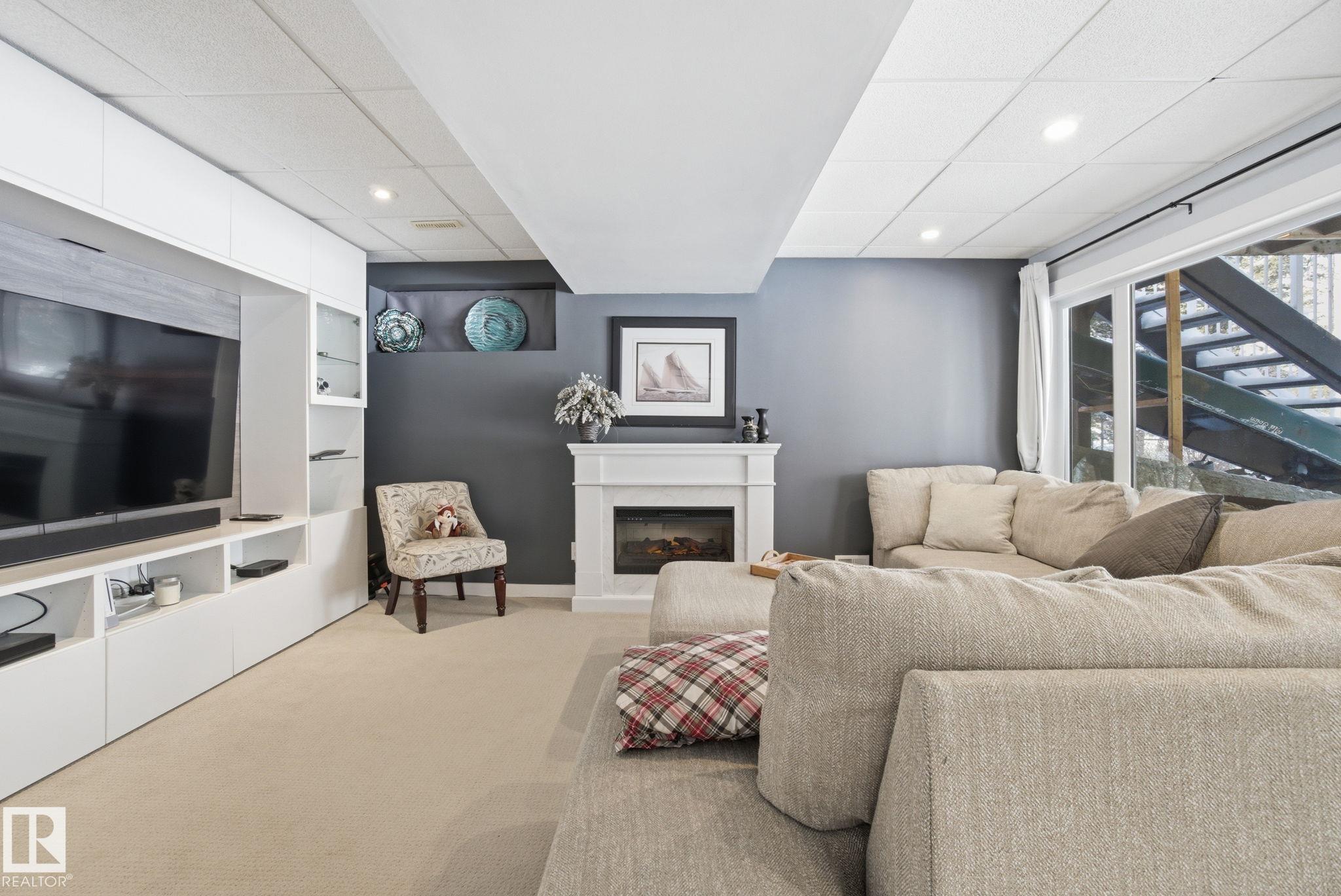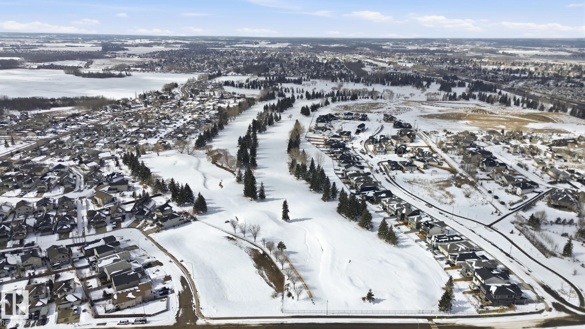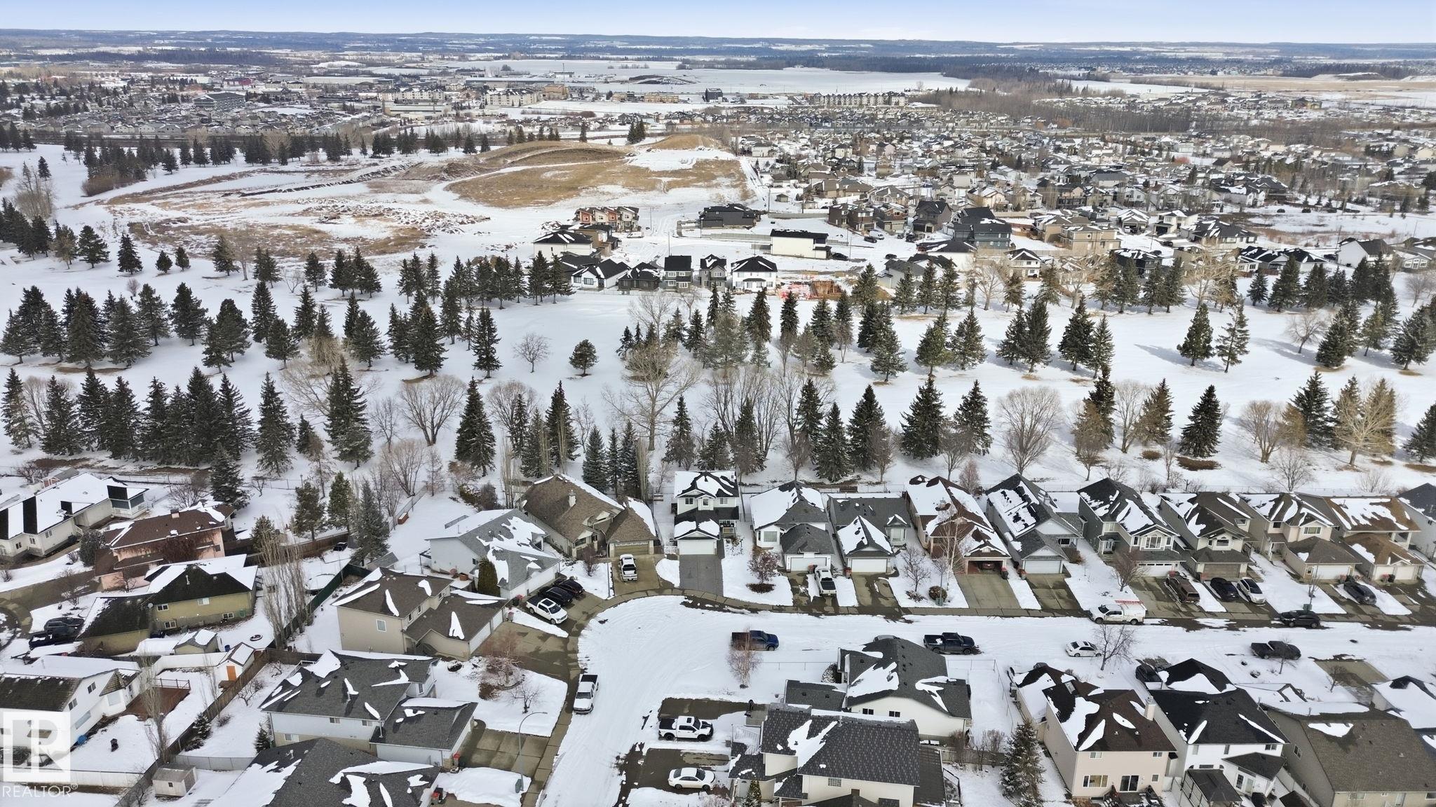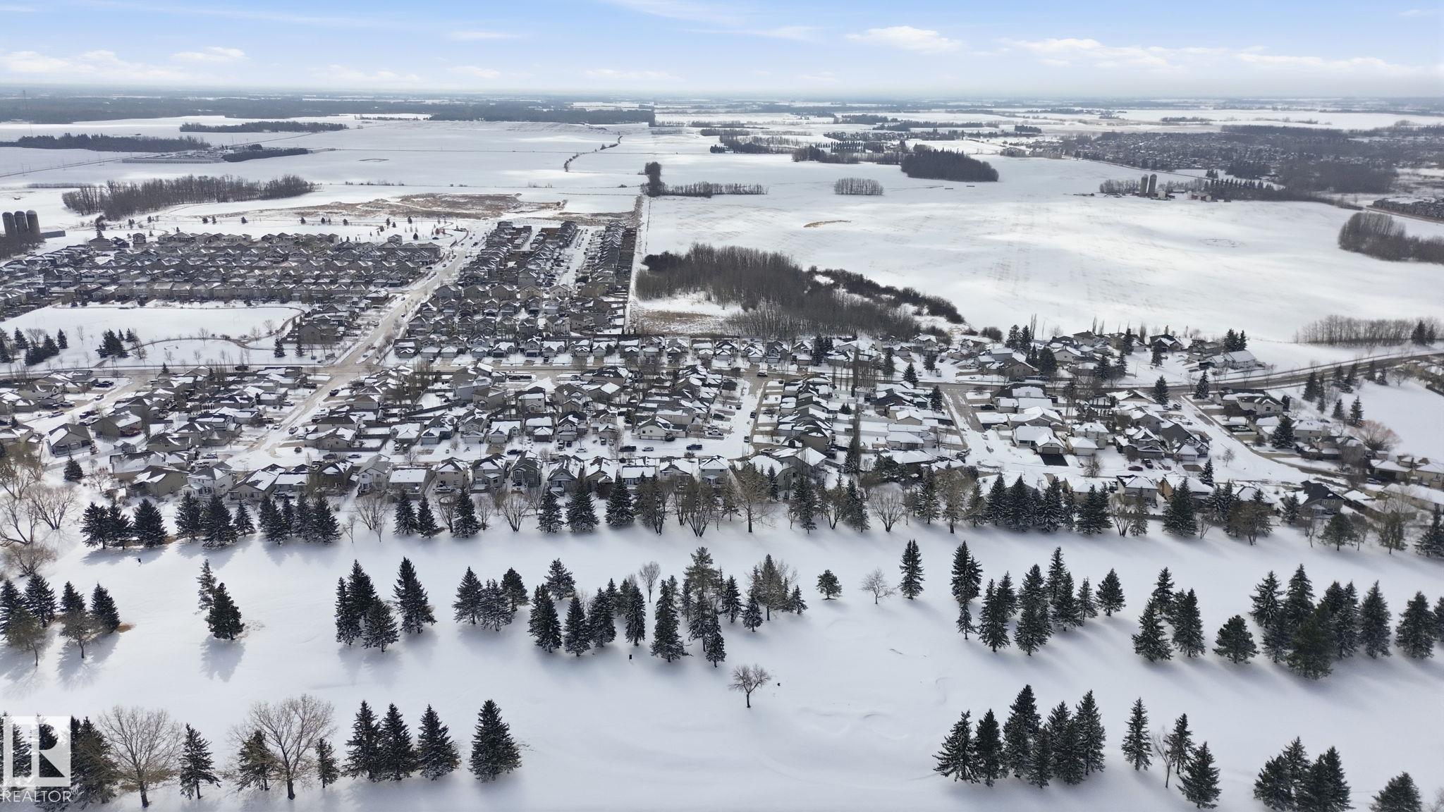 Beautiful WALKOUT 2-storey BACKING the GOLF COURSE in Stony Plain! Over 1500 sq ft PLUS fully finished basement. 18' ceilings greet you as you enter. Front flex room could be a great dining space, home office or formal living room. NEW kitchen is gorgeous with beautiful white cabinets, quartz countertops, corner pantry & updated appliances! Great breakfast nook with room to expand for guests! Large living room for more entertaining with gas fireplace. Tons of natural light through the windows looking onto the mature trees of the golf course. MAIN FLOOR LAUNDRY! Upstairs the master suite is a great size with large walk in closet and newly renovated 4pc ensuite. 2 more bedrooms are great for kids, guests or a home office. Walkout basement has large rec room space. It's even fully plumbed for wet bar or future 2nd kitchen. Another bedroom & 4pc bath. Large deck is great to spend a warm summer evening & yard is fully landscaped including picture, perfect Koi pond. It's your own private oasis!!!