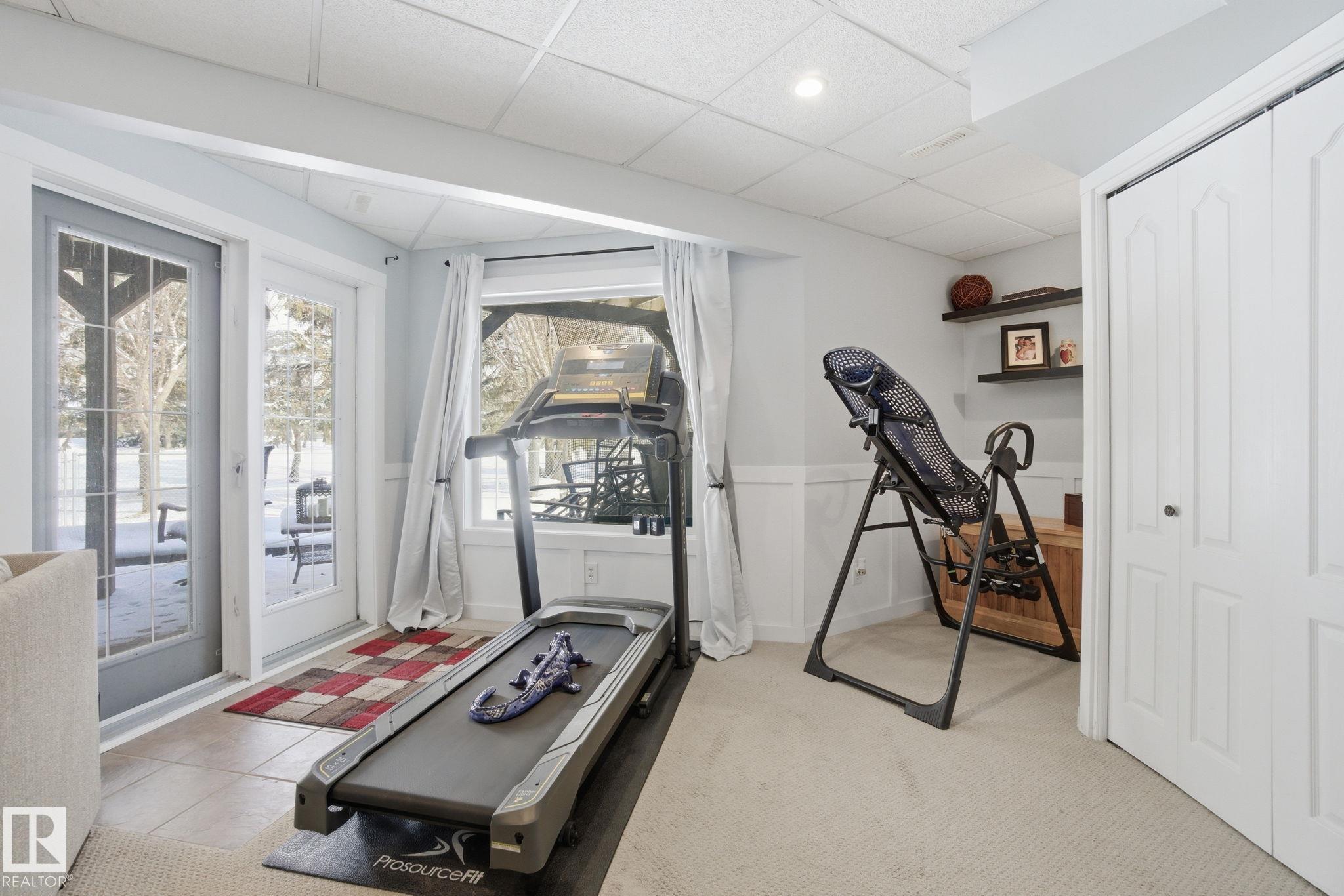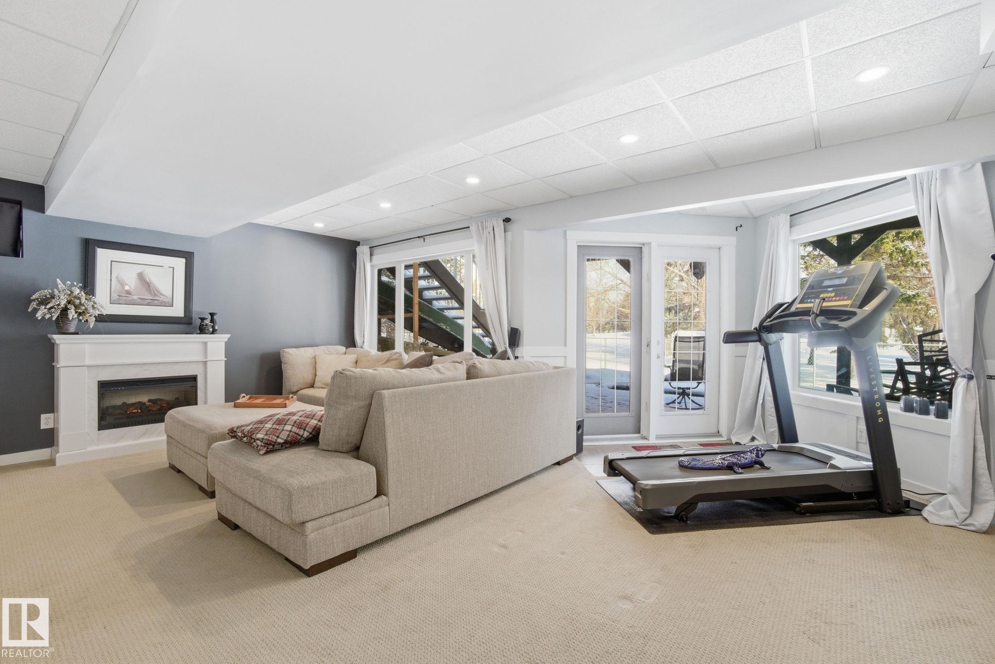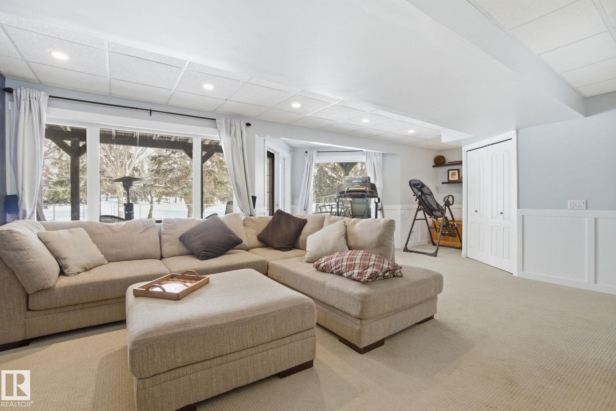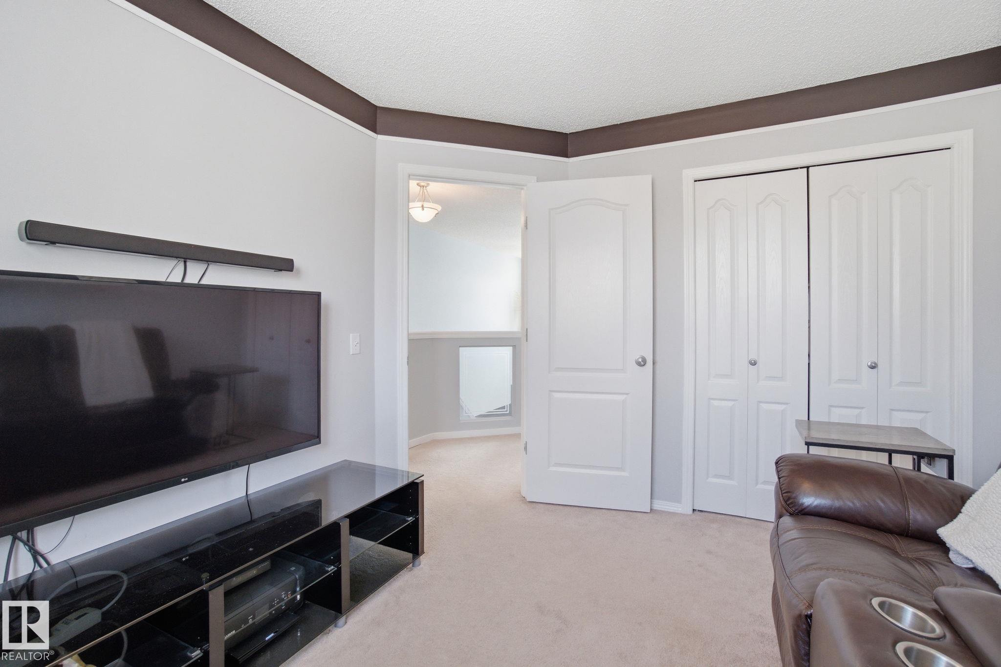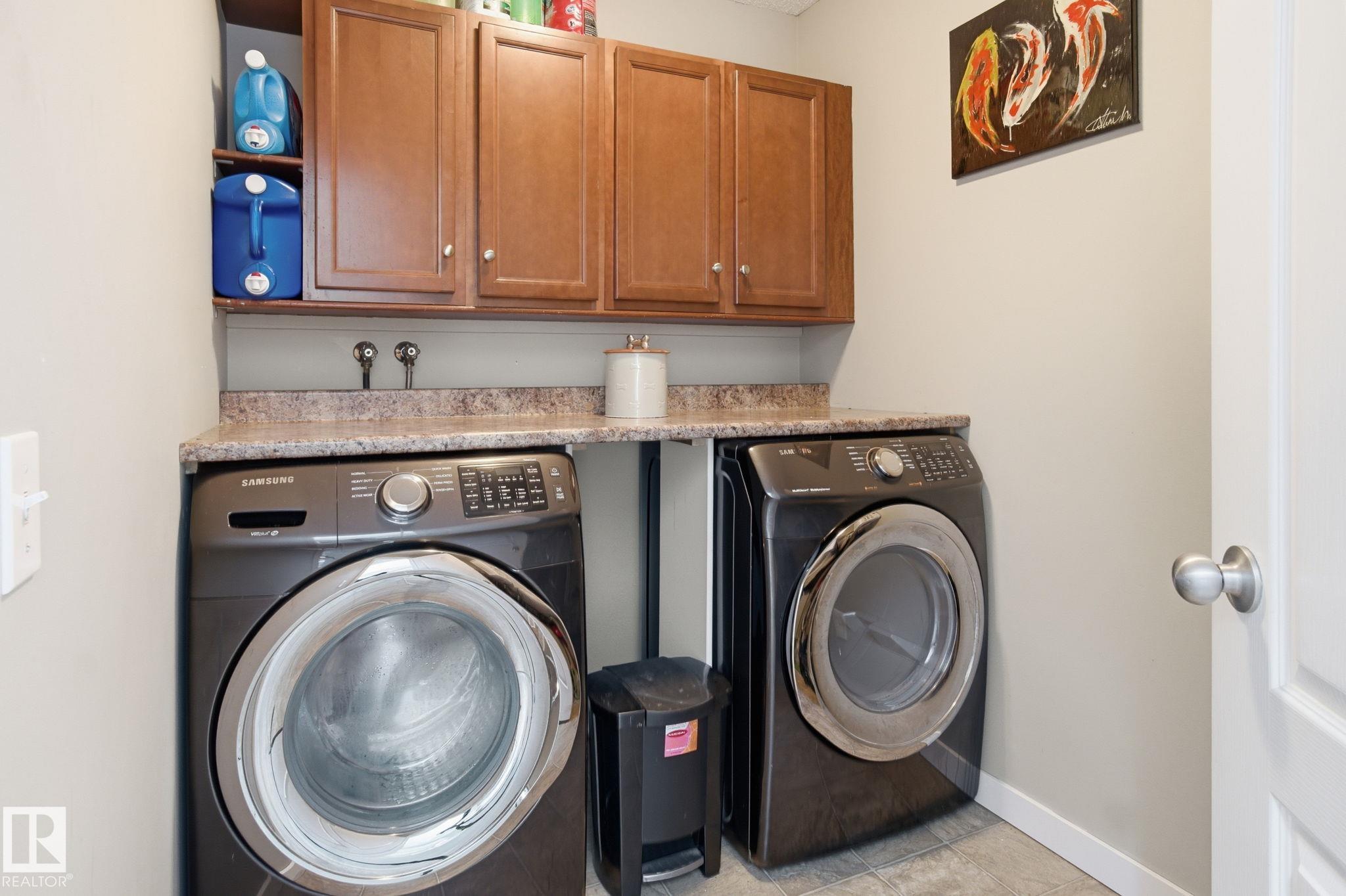 Beautiful WALKOUT 2-storey BACKING the GOLF COURSE in Stony Plain! Over 1500 sq ft PLUS fully finished basement. 18' ceilings greet you as you enter. Front flex room could be a great dining space, home office or formal living room. NEW kitchen is gorgeous with beautiful white cabinets, quartz countertops, corner pantry & updated appliances! Great breakfast nook with room to expand for guests! Large living room for more entertaining with gas fireplace. Tons of natural light through the windows looking onto the mature trees of the golf course. MAIN FLOOR LAUNDRY! Upstairs the master suite is a great size with large walk in closet and newly renovated 4pc ensuite. 2 more bedrooms are great for kids, guests or a home office. Walkout basement has large rec room space. It's even fully plumbed for wet bar or future 2nd kitchen. Another bedroom & 4pc bath. Large deck is great to spend a warm summer evening & yard is fully landscaped including picture, perfect Koi pond. It's your own private oasis!!!