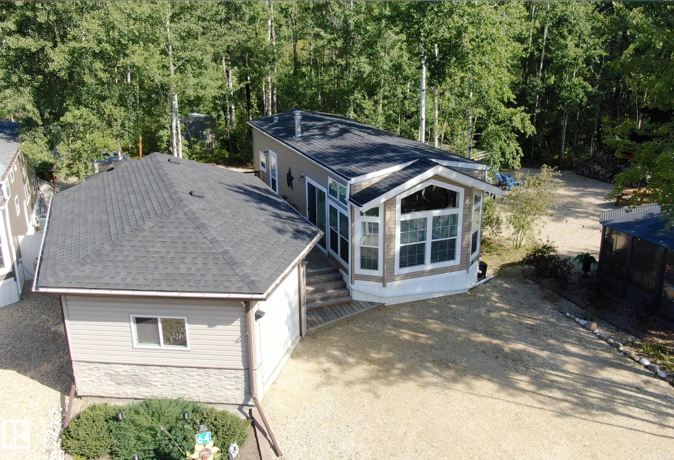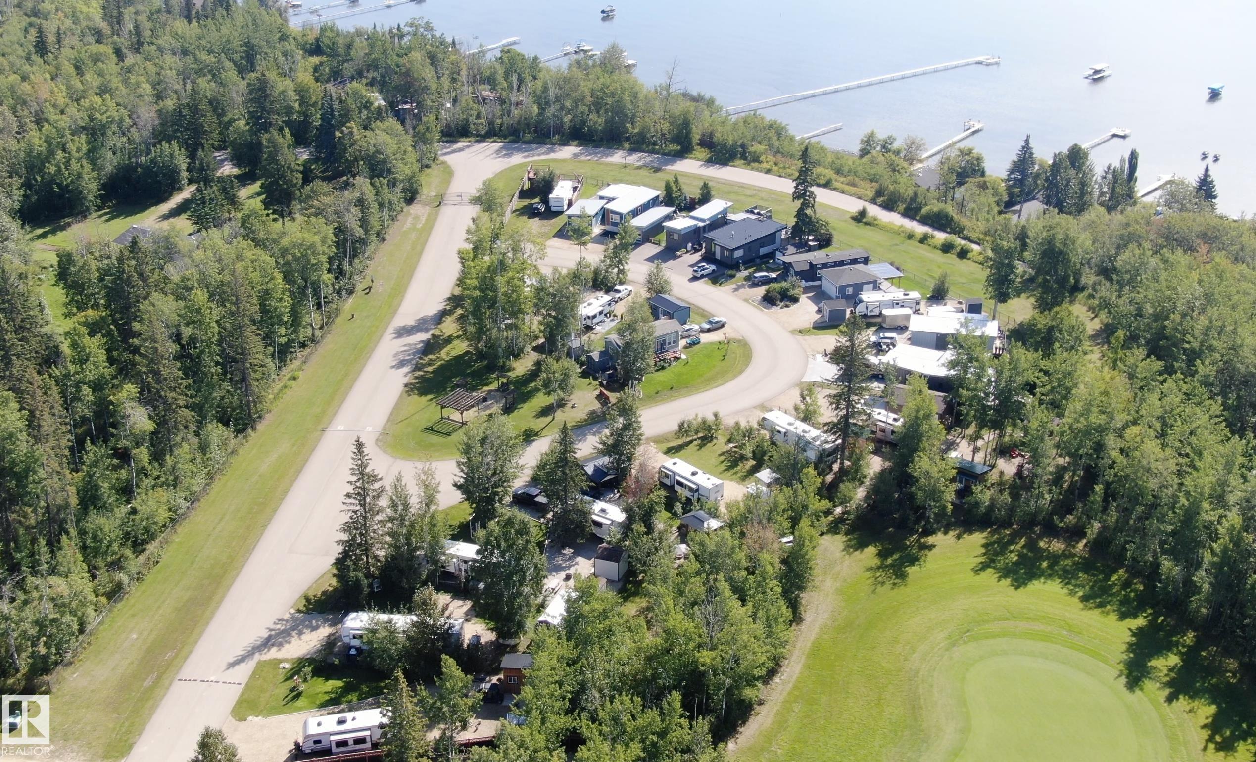 A Weekend Getaway, or a 4-Seasons Peaceful Lifestyle!! This 2-bed park model backs the trees in the Pineridge Golf Course & RV Resort. A bright, sunny kitchen offers an island and tons of cabinets, and huge windows give the living room a beautiful view. Custom cabinets provide the primary with extra storage, and the 2nd bed has bunk beds and a large wardrobe. ALL OF THE FURNITURE IS INCLUDED! The 3-pc bath has a large walk-in shower. Two rooms in the double garage create an opportunity for future bedrooms, a summer kitchen, or to store your toys. A large deck, a gazebo, a fire pit and central air ensure you enjoy every minute. There is so much to do in this gated community! Enjoy the clubhouse, pickleball and basketball courts, playground and trails, Wi-Fi, 50 amp power, full service septic, shower/washroom and laundry facilities, and the 12 hole Pineridge Golf Course. Just a short walk to Wabamun lake, and Seba Beach is minutes away. Trade in your RV for a year-round paradise! 45 min West of Edmonton.