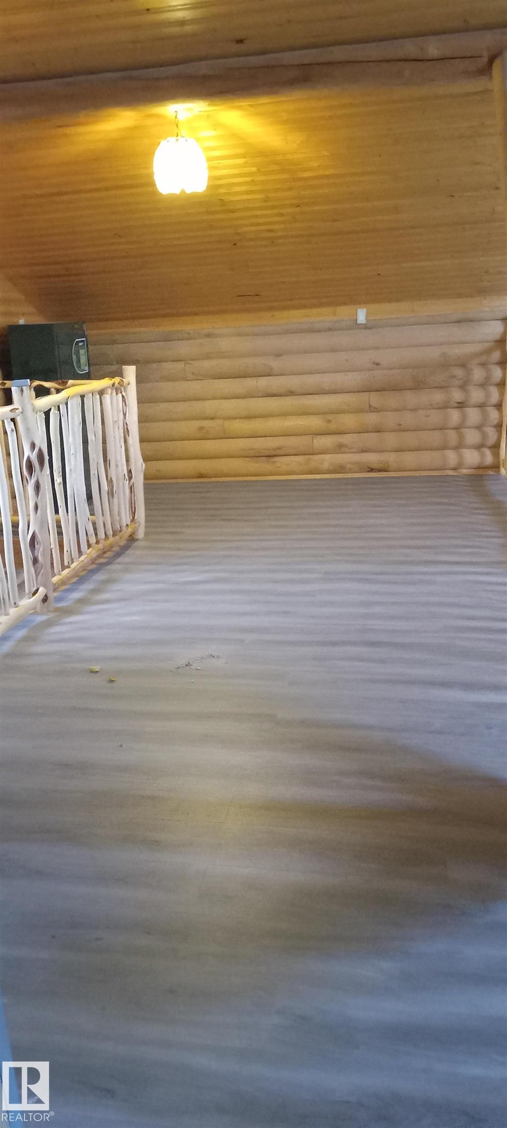 Log cabin with separate bunkhouse, fully renovated over the past three years. The main cabin includes a kitchen, living room, dining area, bathroom, laundry, sitting area, and a loft with two bedrooms and a den, along with storage. The separate bunkhouse accommodates up to eight people and includes a fridge, dining area, and combined bedroom/living space. Double garage with drywalled loft storage area. In-floor heating throughout and large windows providing ample natural light. Wrap-around deck. Space near the bunkhouse allows for a patio with pavers. Approximately a two-minute walk to the lake with access to a boat launch at Sunrise. One-minute drive to Garner Lake Provincial Park offering sandy beach access, island walk, park, boat launch, and campground. Located about 10 minutes from Vilna with access to stores, bank, pharmacy, schools, medical services, and emergency services. Quiet subdivision with no further building permitted.