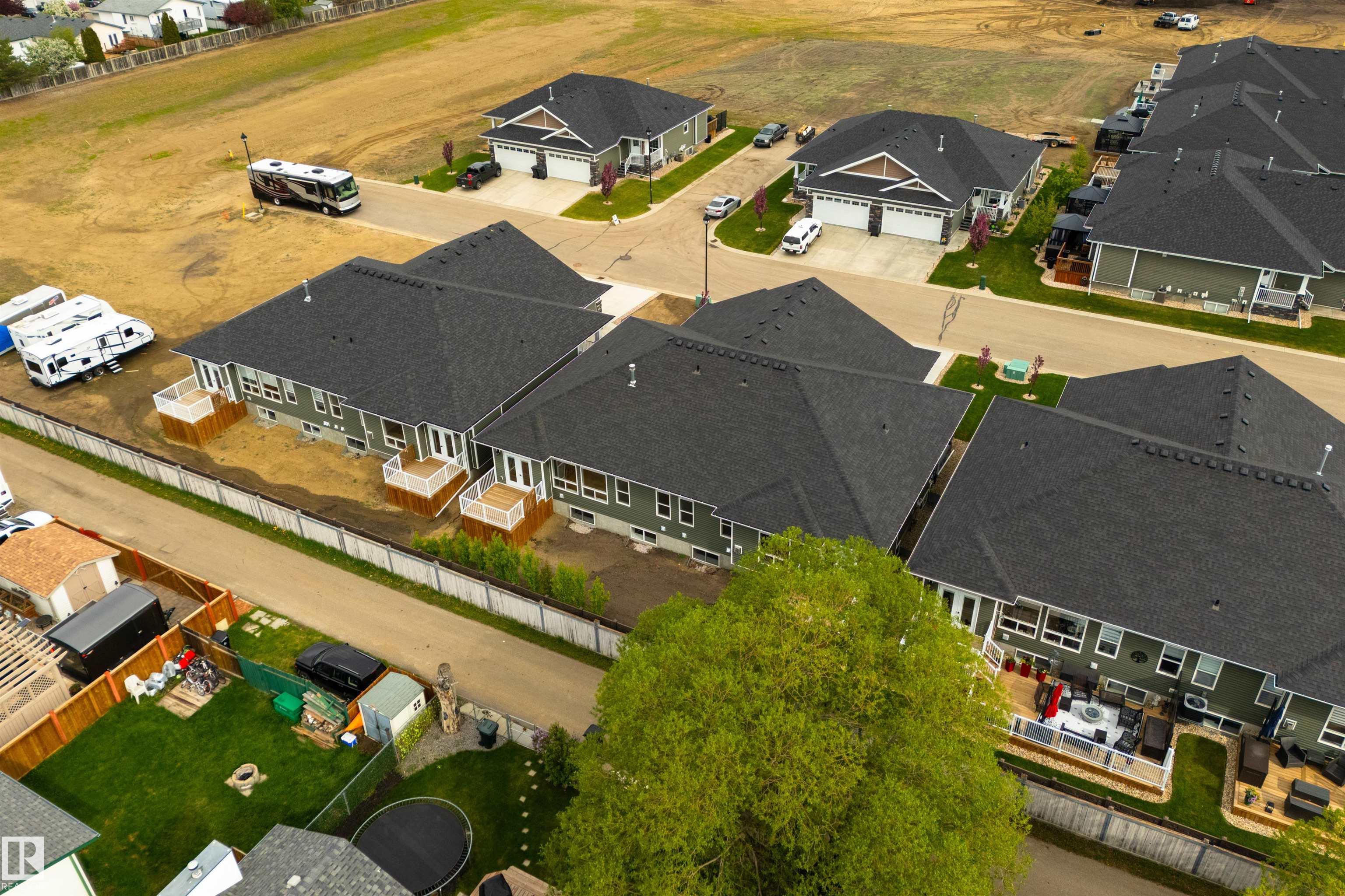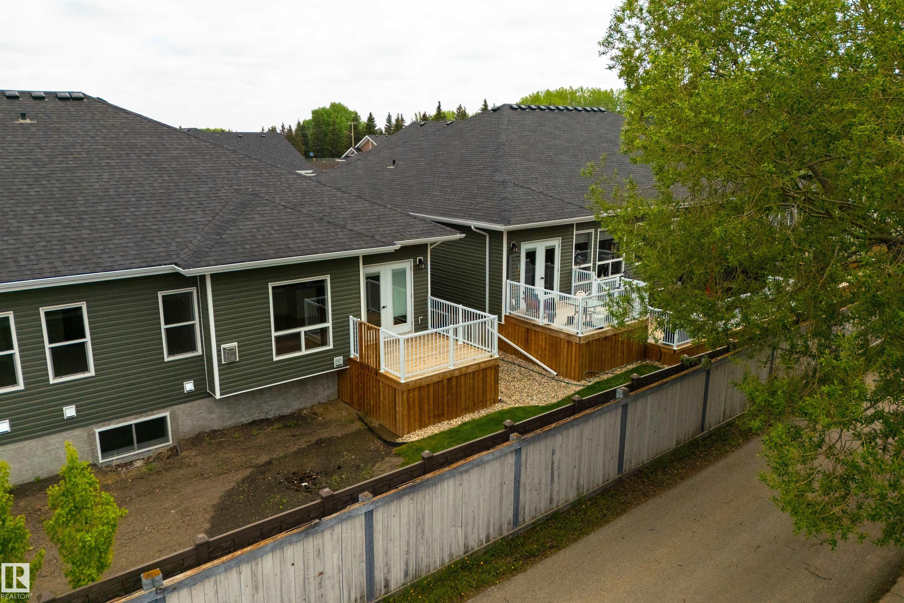 Own the SHOWHOME!! Situated in the GATED community of Centennial Estates, this bungalow has been beautifully finished to include a covered front porch, 9' ceilings, central A/C, engineered-hardwood, a main-floor office/den, dedicated laundry, a lovely kitchen w/ two-toned floor-to-ceiling cabinetry, QUARTZ counters, pendant lighting, center island, smudge-proof appliances, & separate dinette, a cozy living room w/ corner gas fireplace, a king-sized owner's suite w/ walk-in closet & 4pc ensuite, a fully-finished basement, OVERSIZED HEATED double garage (22'x28') w/ floor drain & hot/cold water taps, a SOUTH-FACING exterior deck, & a ground-level patio. Centennial Estates is an exclusive adult community (55+) offering low monthly condo fees, catering to those looking for a relaxed & maintenance-free lifestyle. Whether you're a snowbird, empty-nester, or just ready to downsize, this subdivision will be completed w/ a community greenspace, & is w/in walking distance to The Links Golf Course, parks & trails.