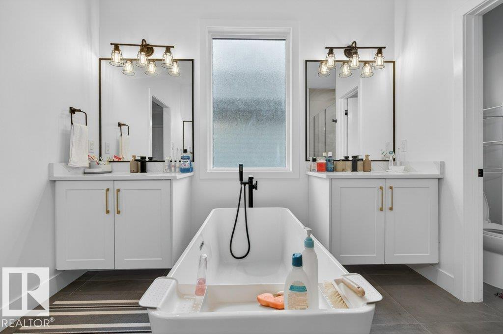 BEAUTIFUL 2-STOREY with OPEN-TO-ABOVE DESIGN backing onto a RAVINE in ASPEN GLEN, SPRUCE GROVE. Welcome to this stunning home offering 2,386.27 SQ. FT. of living space. The bright main floor features an open-to-above design, large windows, a versatile den/office, and a convenient 2-piece bathroom. The kitchen includes a customized gas stove, ample cabinetry, and a functional layout for everyday living and entertaining. Upstairs offers 3 bedrooms and 2 full bathrooms, including a spacious primary bedroom with ensuite, plus a bonus room with TV (included). The fully finished basement features a separate side entrance, 1 bedroom, and 1 full bathroom, offering added flexibility (subject to applicable regulations). Enjoy the ravine backing for added privacy. Additional features include air conditioning, hot tub, and a triple car garage. Located in a quiet neighbourhood minutes from Edmonton, close to schools, parks, playgrounds, and amenities.