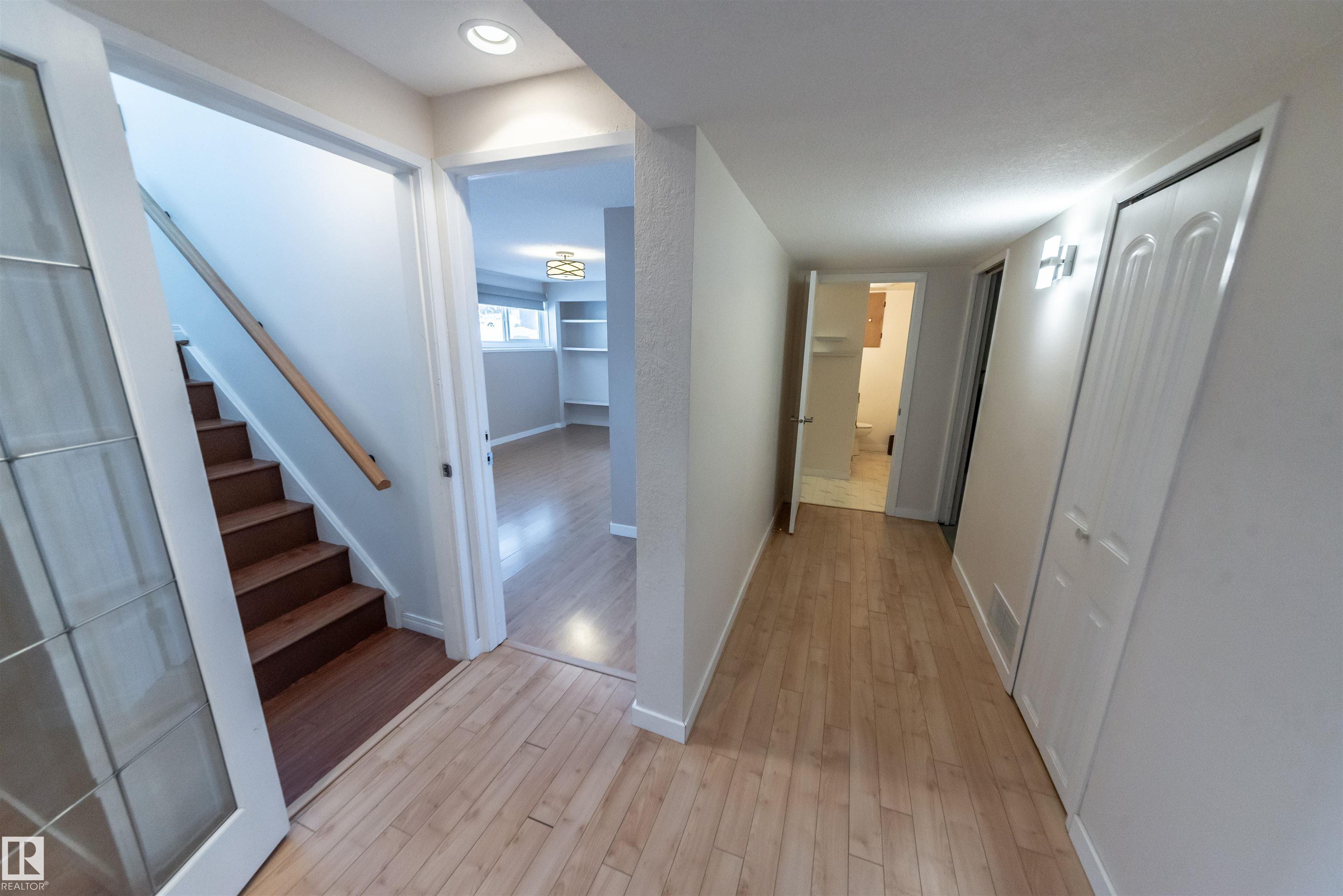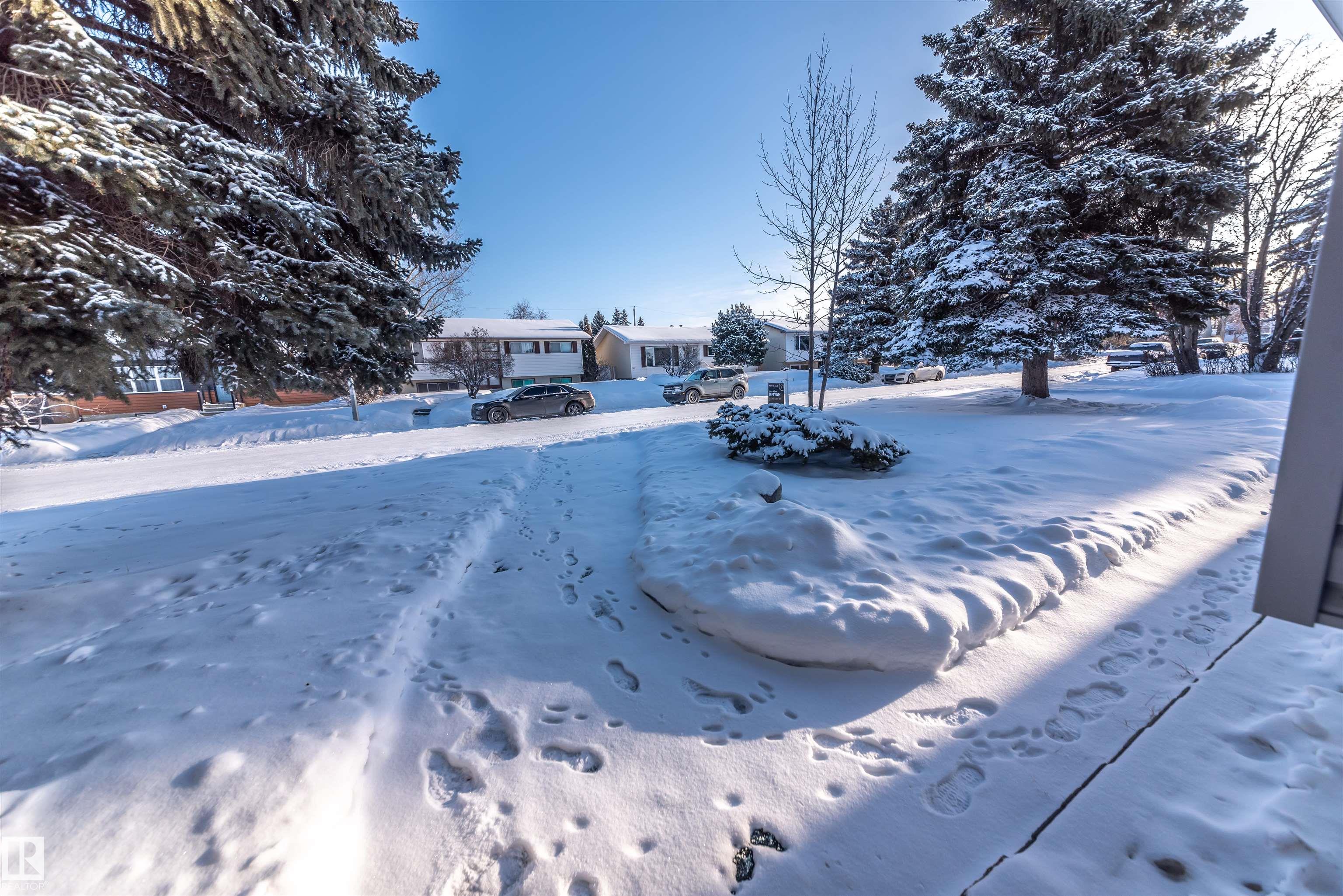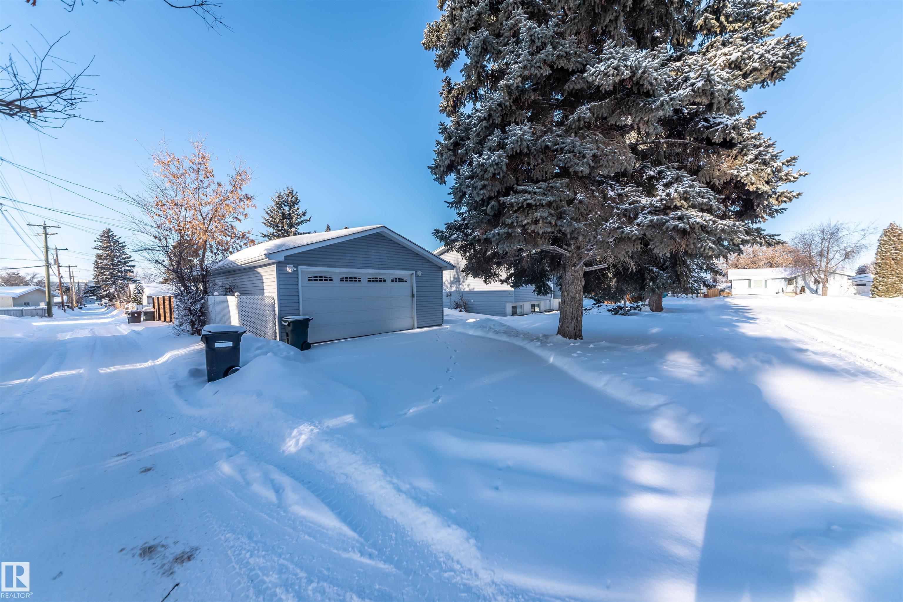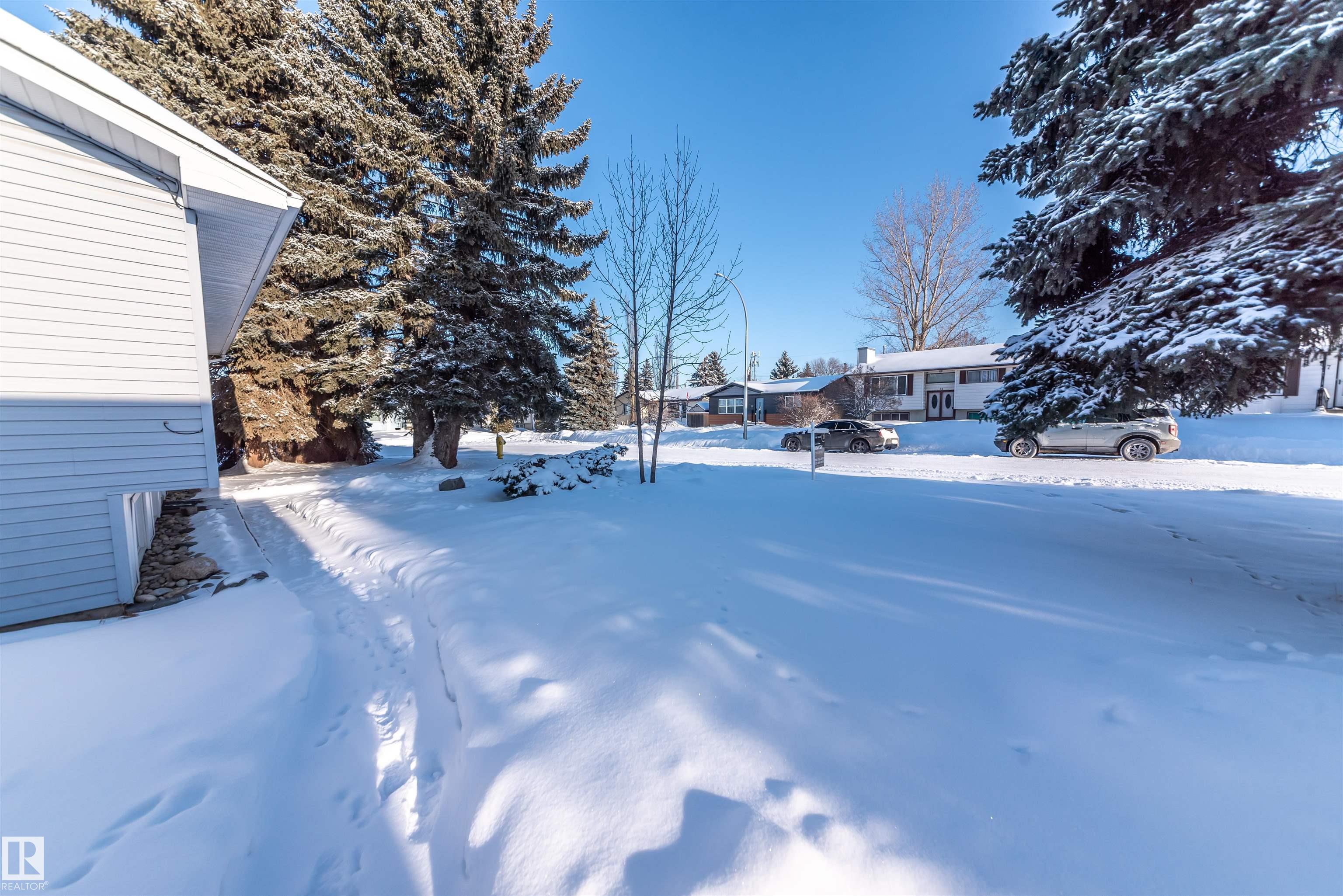 Beautifully renovated 4-bedroom bi-level offering over 2,200 sq ft of fully finished living space. The main floor features an upgraded kitchen with ample cabinetry and counter space, a spacious dining area, and a large, bright living room with plenty of natural light. There are 3 bedrooms and 2.5 baths on this level. The lower level includes a full second kitchen, a comfortable family room, and two additional bedrooms -- perfect for extended family or guests. Updates include newer windows and flooring. Situated on a lovely corner lot surrounded by mature spruce trees, this property also offers an oversized double detached garage and is conveniently close to shopping and restaurants in Spruce Grove.