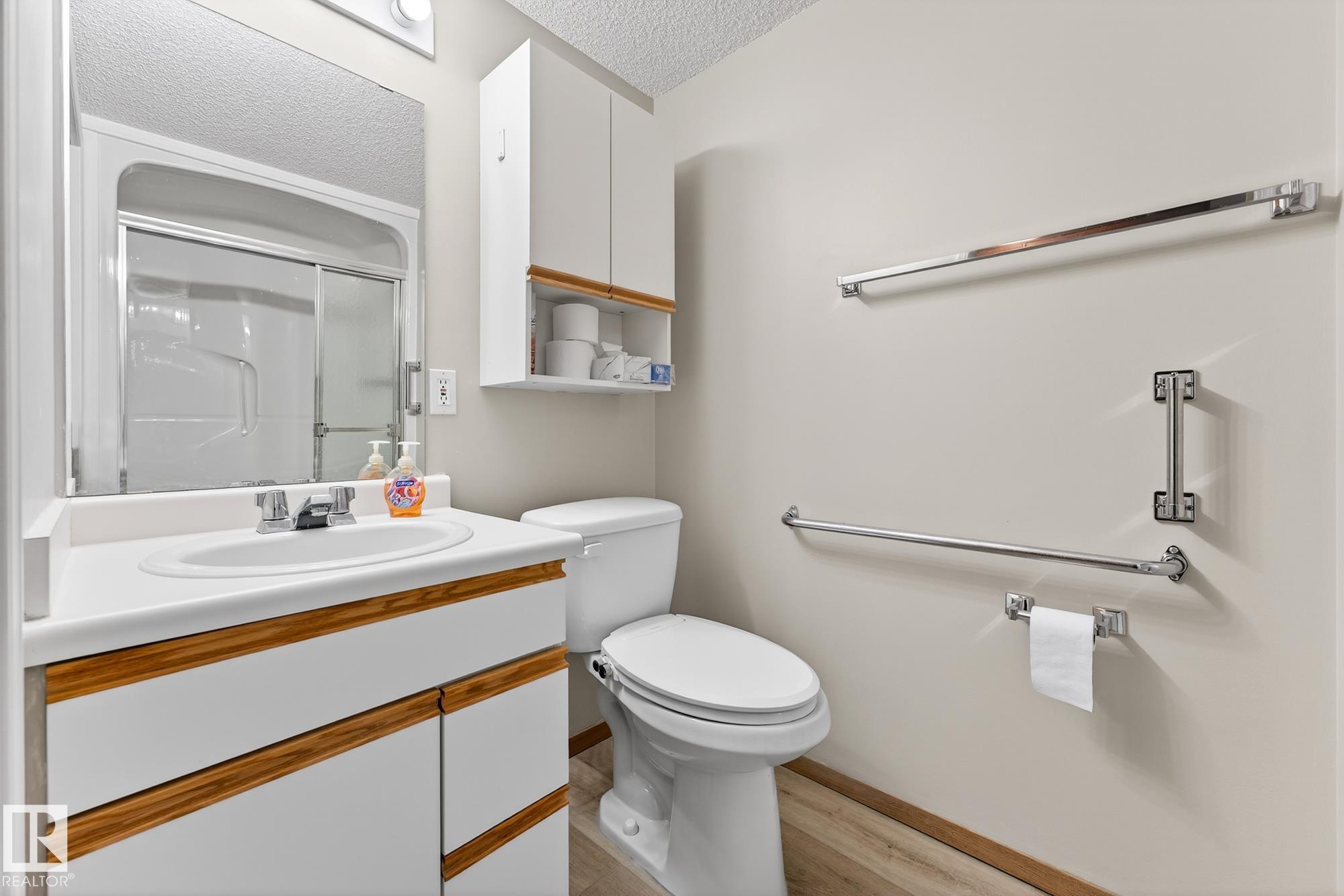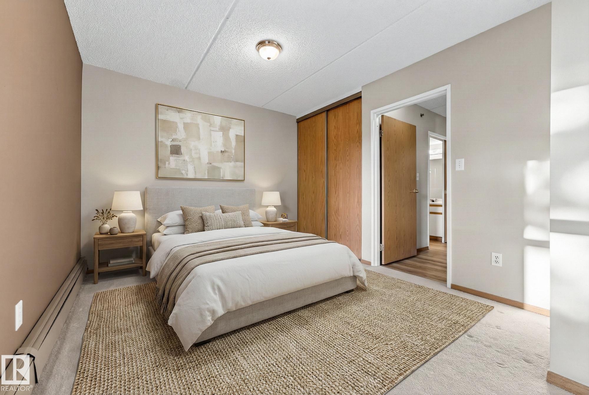 Spacious and well-appointed **corner unit** in a **55+ building (no pets allowed)**. Located on the **third floor**, this **largest suite in the building** features a **large wrap-around balcony** plus an additional **storage room**. Enjoy the comfort of a **steel and concrete construction** with **elevator access**, **wider hallways for wheelchair accessibility**, and a quiet, well-maintained community. The suite offers **newer vinyl plank flooring**, **window coverings included**, **in-suite laundry with storage**, and **A/C**. The functional layout includes a **4-piece main bath** and a **3-piece ensuite with stand-up walk-in shower**. One **assigned parking stall** is included. Within walking distance of all amenities **Condo fees cover cable, heat, water, and sewer**, providing excellent value. The **self-regulated condo board** is made up of resident owners with a strong vested interest in the building. A rare opportunity to own a bright, accessible, and move-in-ready home in a well-run community.