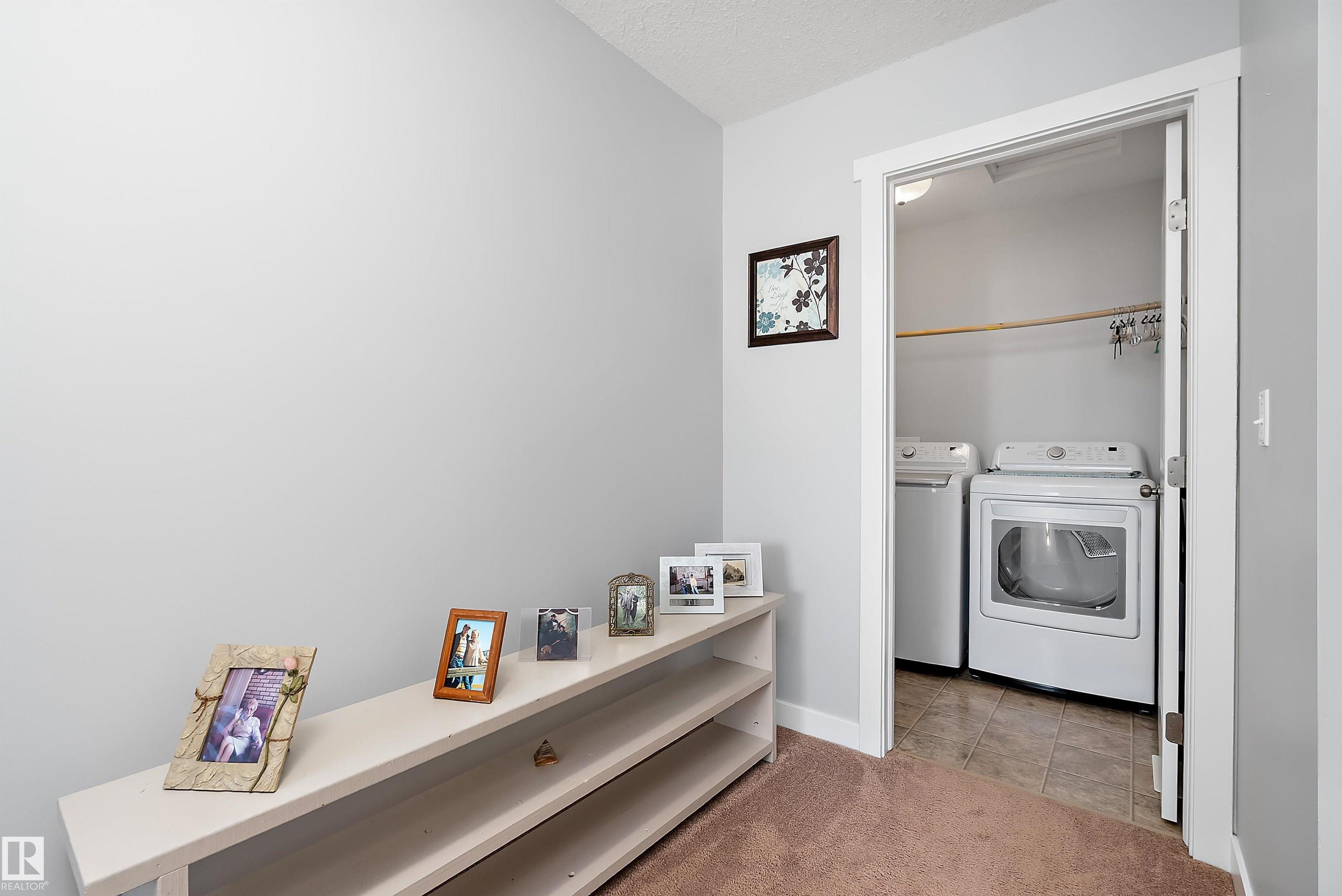 Are you looking for an affordable, air-conditioned, cozy townhouse WITH garage parking to call home? These opportunities don't come available often, but welcome to this beautiful 1400 sq ft unit located right in the heart of Spruce Grove. The main floor features large windows throughout, open concept living, a spacious wrap-around kitchen and separate dining area. Upstairs you'll find a roomy nook (perfect for a desk/workspace), the full laundry room, and two oversized bedrooms each with their own walk in closets & 4 piece ensuites. The basement is unfinished but features an extra large window, should you decide to build a 3rd bedroom or develop the space. Not only is this unit affordably priced, but the hot water tank, refrigerator, dishwasher, washer & dryer have all been recently replaced allowing for peace of mind on potential upcoming costs. All of this with a private back balcony, no rear neighbours, an attached garage, near public transportation, amenities & walking trails. Welcome home!