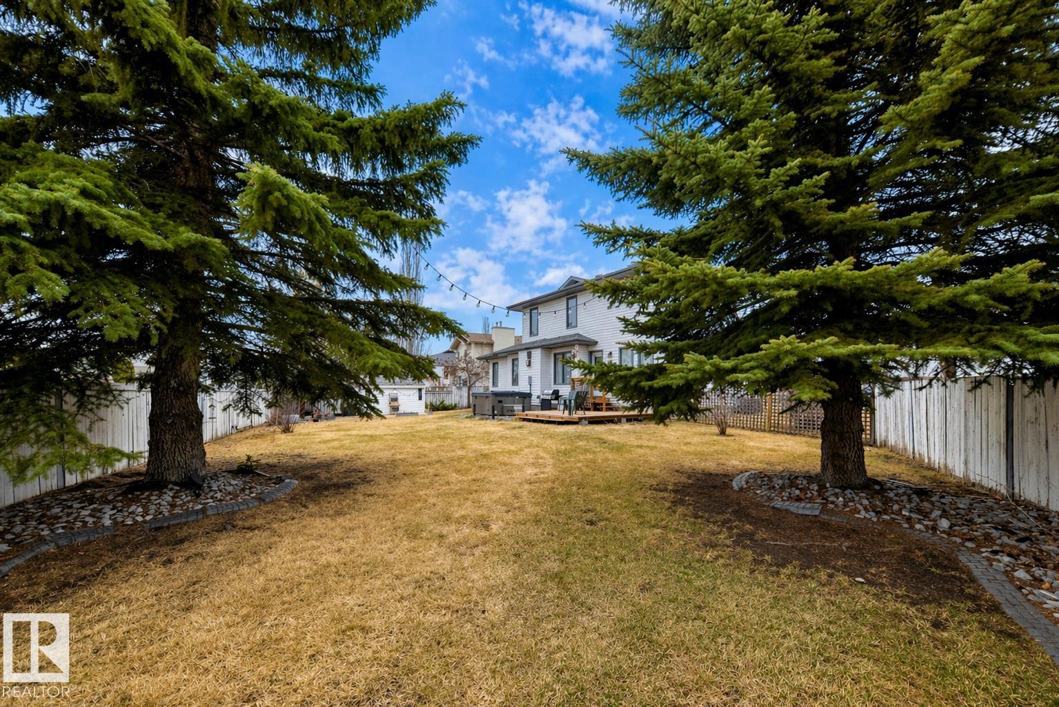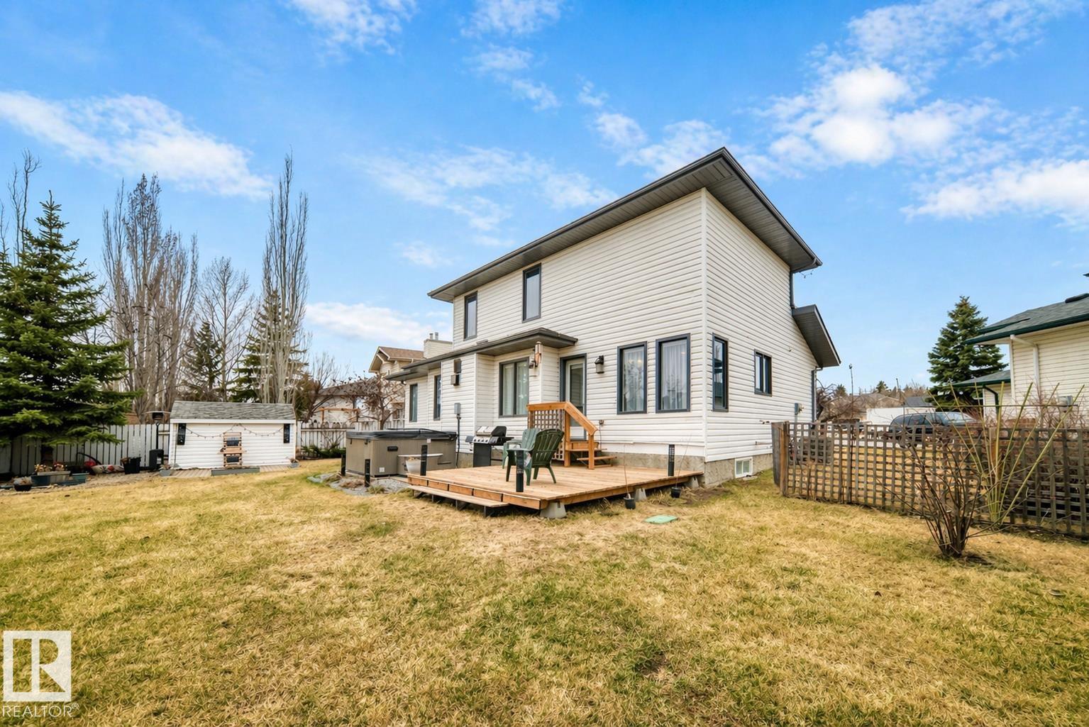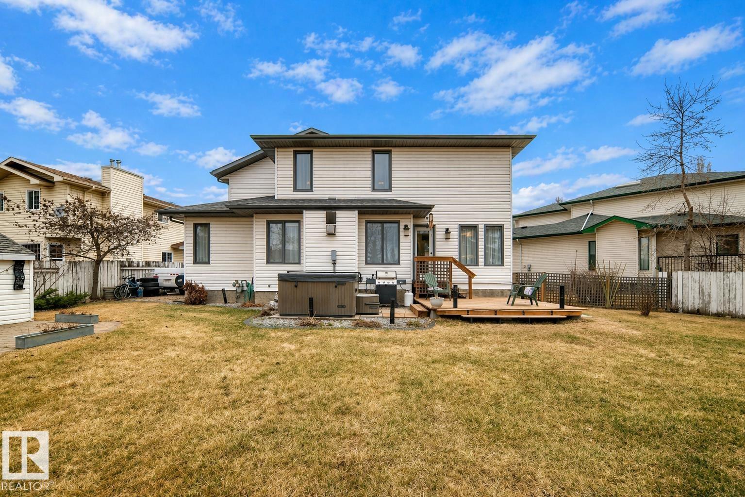 Beautiful in Grove Meadows! This exceptional family home features 3+2 bedroom, 2 full, 2 half bath with a versatile den (ideal as a 6th bedroom) nestled nicely on one of the largest lots in the neighbourhood, backing onto serene greenspace with a pond and scenic walking trails. The thoughtfully designed layout offers the perfect blend of open-concept living and functional privacy. The kitchen, dining, and living areas feature rich Brazilian Tigerwood hardwood, a cozy gas fireplace, and central A/C for year-round comfort. The spacious primary retreat includes a walk-in closet, 4-piece ensuite, and room for a sitting area. Step outside to your private, professionally landscaped oasis with cobblestone accents, fire pit, large deck, hot tub, and lush gardens--perfect for relaxing or entertaining. The fully finished basement offers a theatre area, two bedrooms, and ample storage. Complete with an oversized double attached heated garage--this home truly has it all!