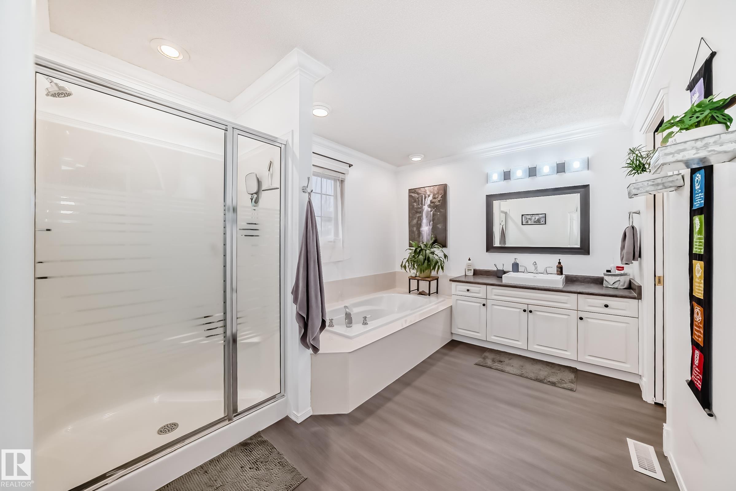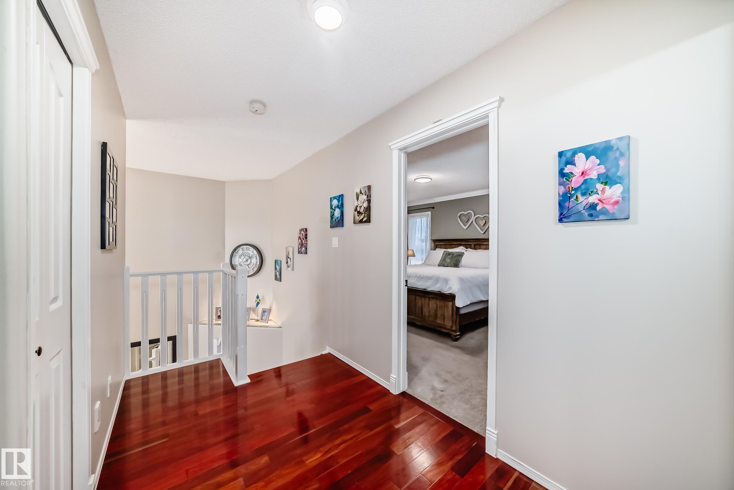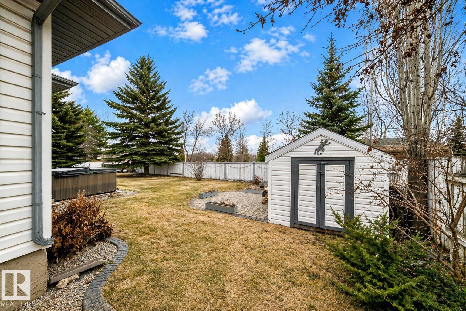 Beautiful in Grove Meadows! This exceptional family home features 3+2 bedroom, 2 full, 2 half bath with a versatile den (ideal as a 6th bedroom) nestled nicely on one of the largest lots in the neighbourhood, backing onto serene greenspace with a pond and scenic walking trails. The thoughtfully designed layout offers the perfect blend of open-concept living and functional privacy. The kitchen, dining, and living areas feature rich Brazilian Tigerwood hardwood, a cozy gas fireplace, and central A/C for year-round comfort. The spacious primary retreat includes a walk-in closet, 4-piece ensuite, and room for a sitting area. Step outside to your private, professionally landscaped oasis with cobblestone accents, fire pit, large deck, hot tub, and lush gardens--perfect for relaxing or entertaining. The fully finished basement offers a theatre area, two bedrooms, and ample storage. Complete with an oversized double attached heated garage--this home truly has it all!