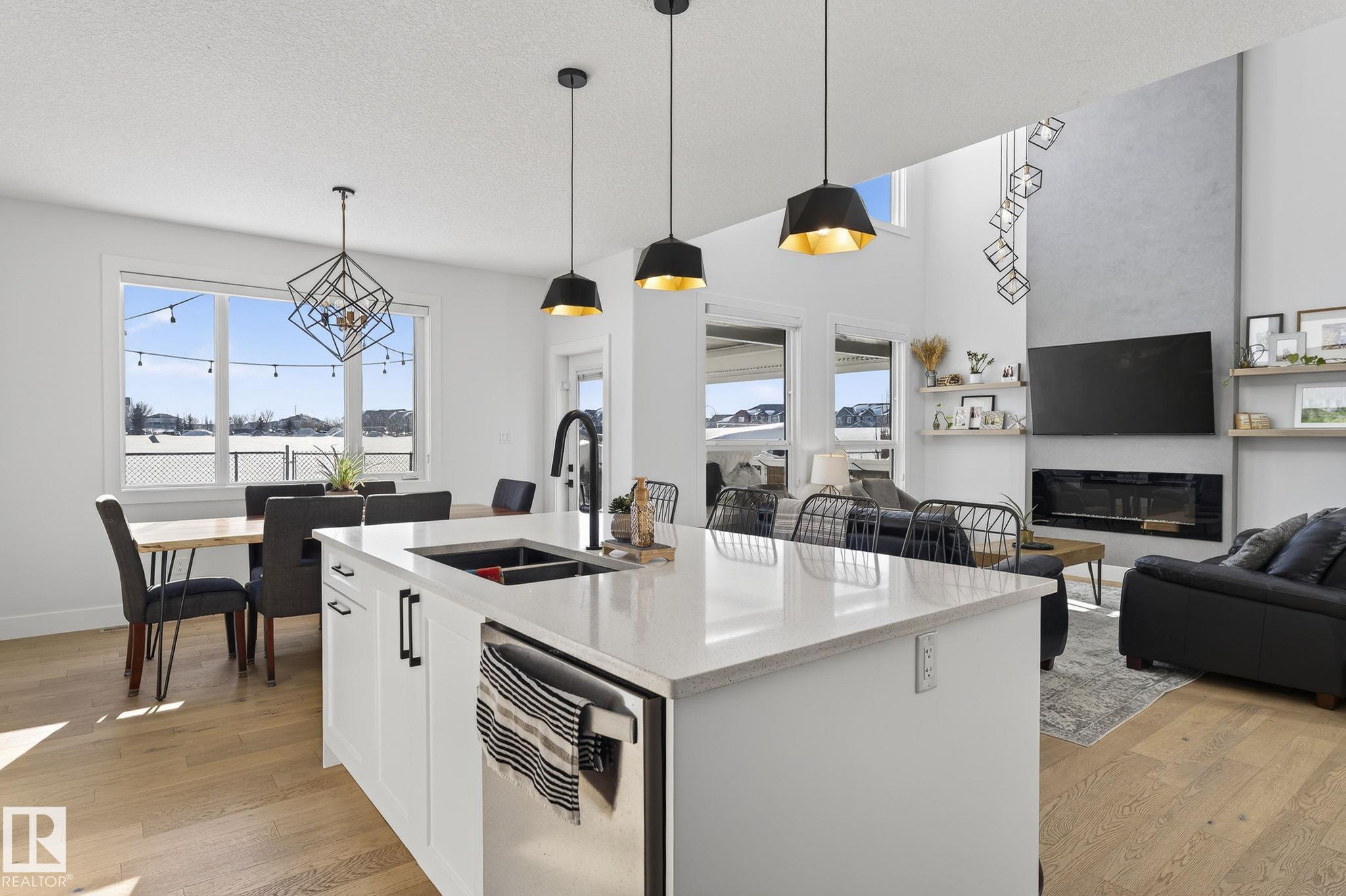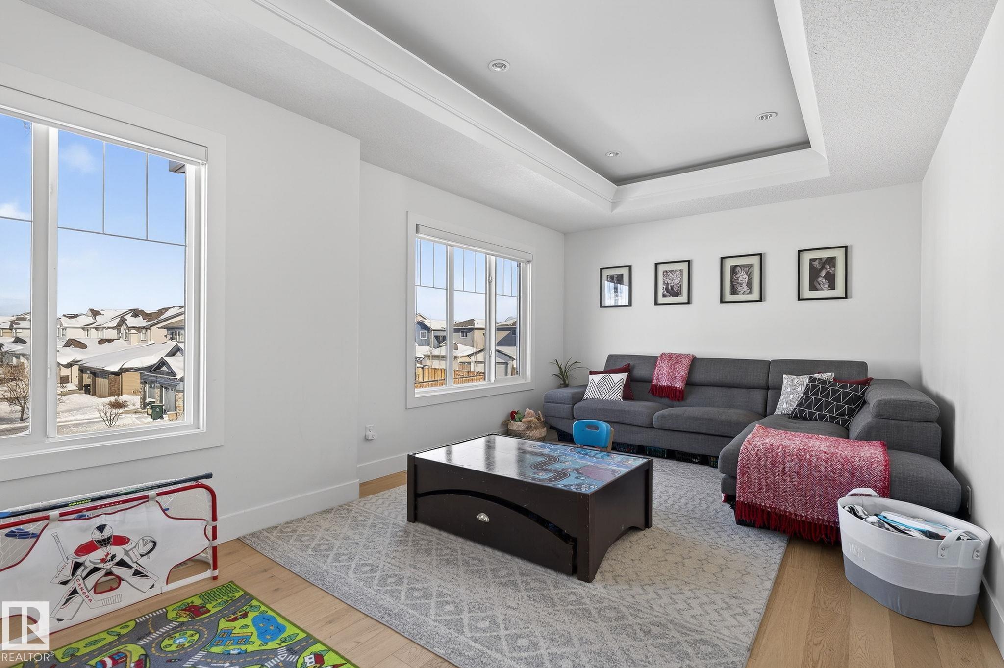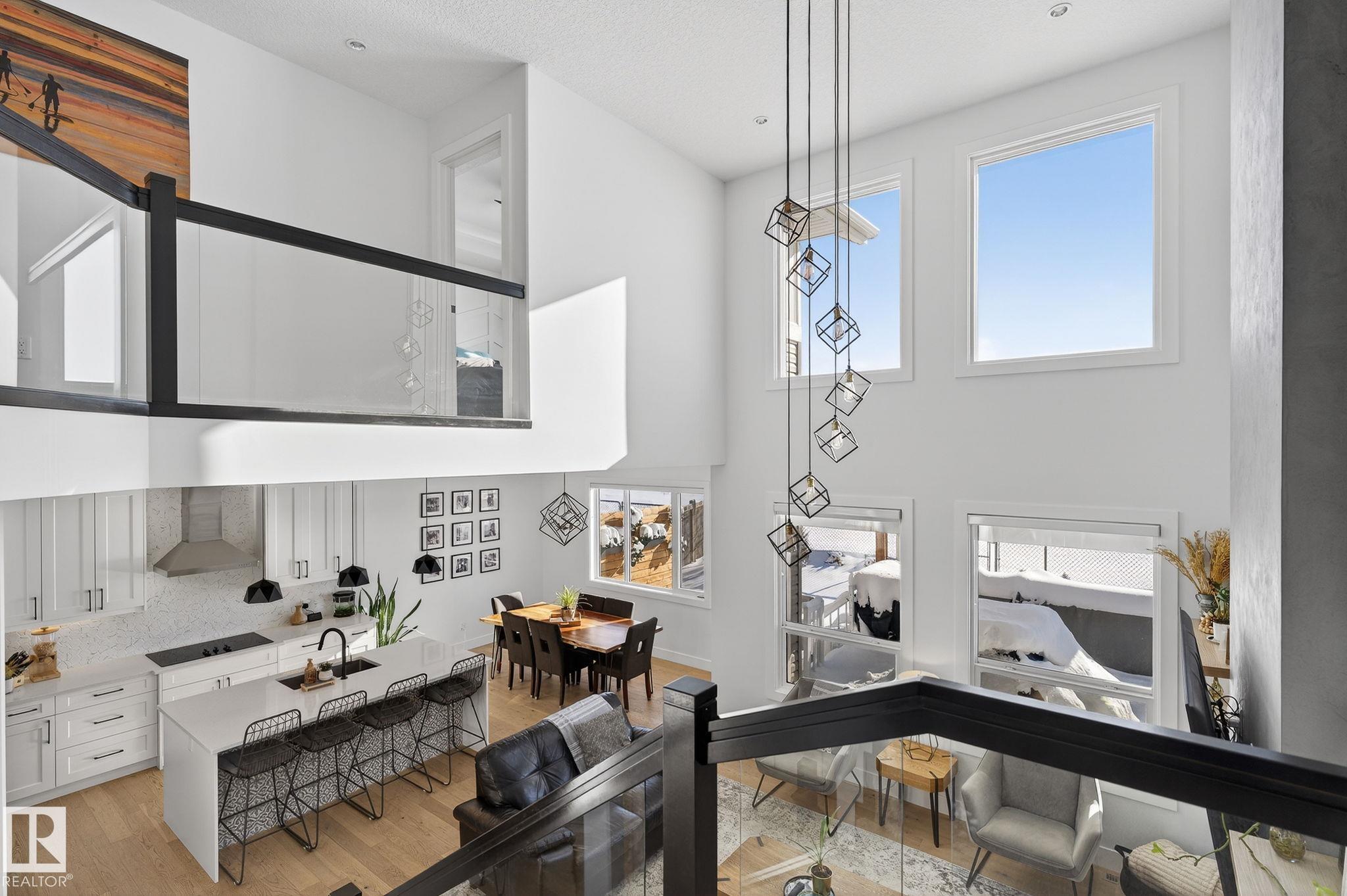 Situated in the established, family-friendly community of Harvest Ridge in Spruce Grove, this beautifully appointed two-storey offers 5 bedrooms, 3.5 bathrooms, and 2,312 sq ft of thoughtfully designed living space where comfort meets elevated everyday living. Soaring ceilings and an open-to-below design flood the home with natural light, creating an airy feel while maintaining warm, connected spaces for entertaining and family life. Rich hardwood flooring spans the main and upper levels, adding timeless character throughout.The main floor features a dedicated den ideal for a home office, while upstairs offers a spacious bonus room perfect for movie nights or a kids' retreat. Enjoy seamless indoor-outdoor living with a composite deck and paved patio backing green space. The primary suite boasts a spa-inspired ensuite with heated floors, and the fully finished basement provides flexible space for recreation or guests. Double attached garage, close to parks, trails & shopping.