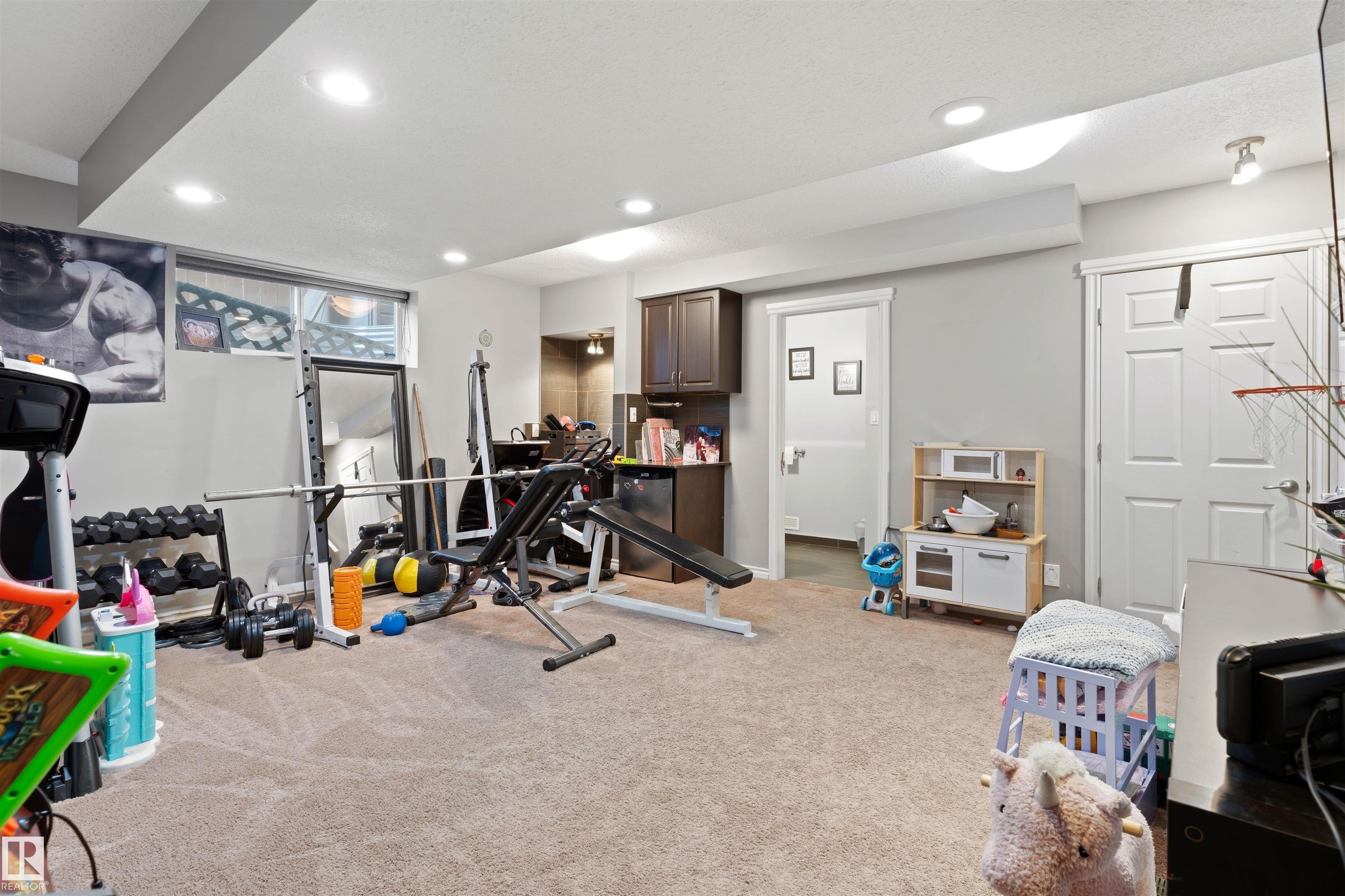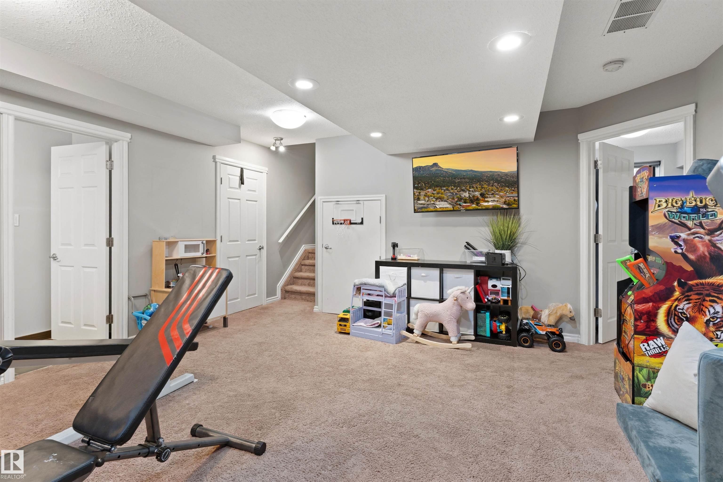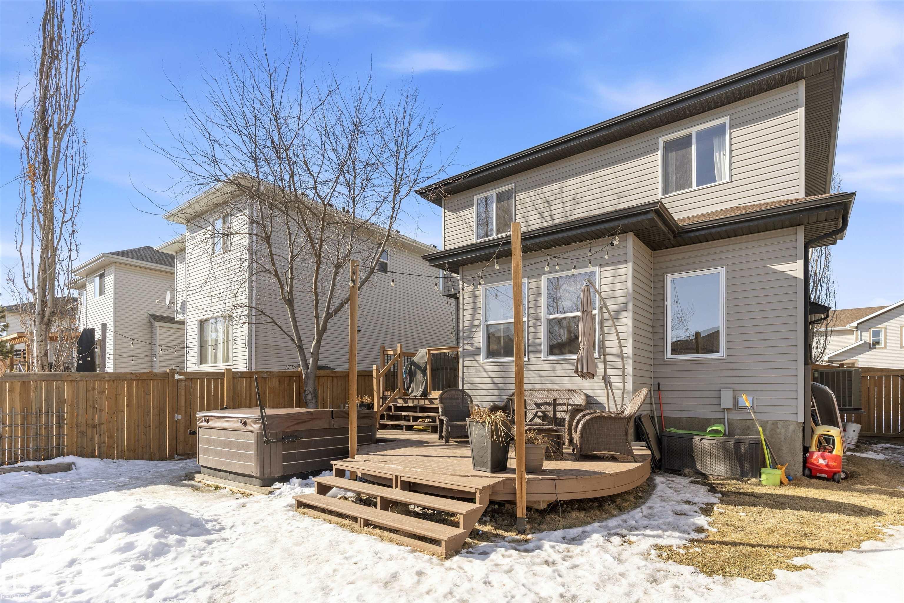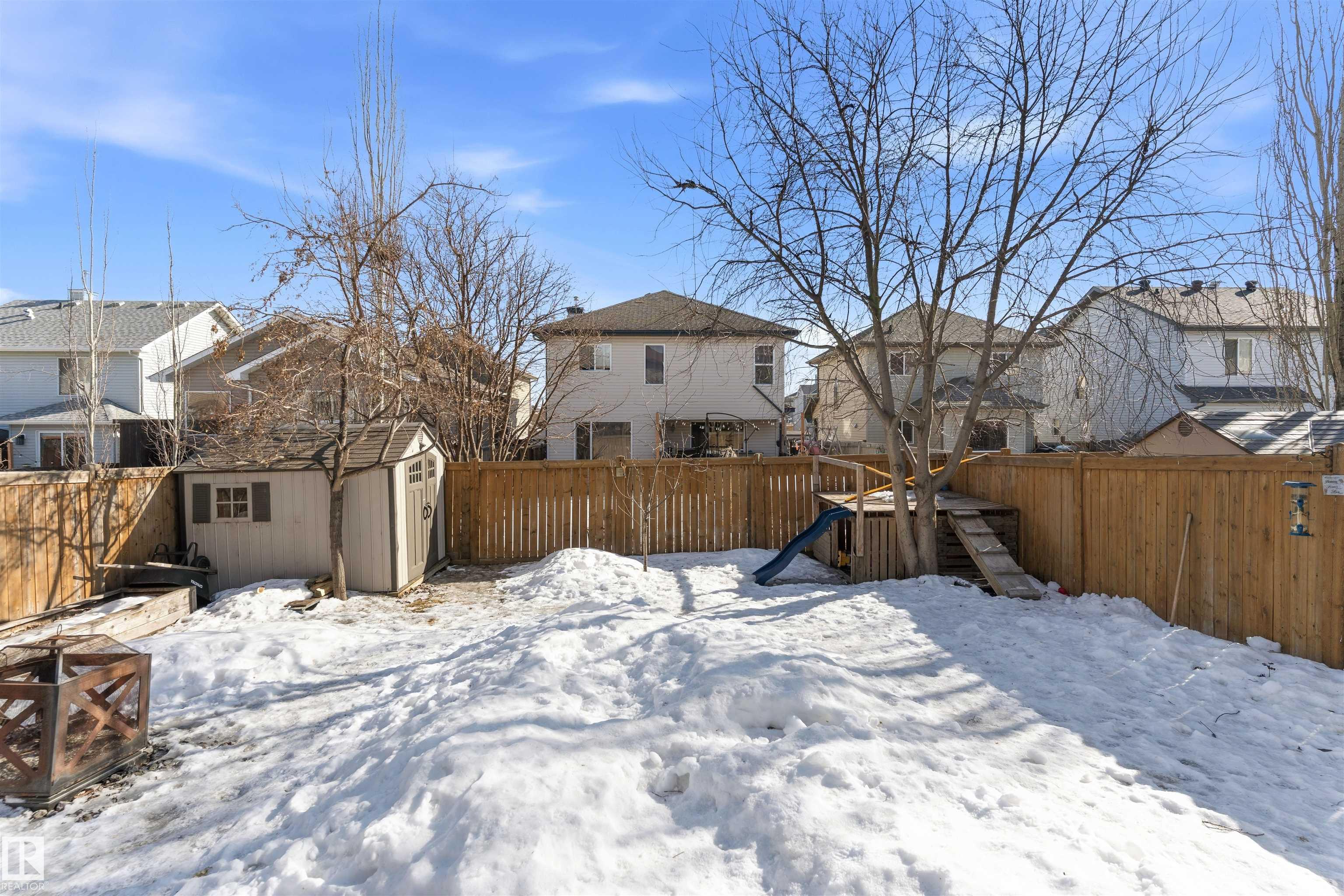 Permanent Gemstone (year round Christmas) lighting, a fully developed heated garage, whole-home speaker system, A/C, newer roof (2021), and a beautifully landscaped yard with sprinkler system, shed and charming treehouse set this exceptional, fully finished 2-storey apart. Step inside to 9' ceilings, a vaulted entry with open staircase, and a bright living room with gas fireplace. The kitchen features stainless steel appliances, updated backsplash, corner pantry, and views of the mature south-facing backyard. Upstairs offers 3 bedrooms, convenient 2ND FLOOR laundry, and a spacious primary retreat with walk-in closet and 4pc ensuite. The fully finished basement includes a rec room with wet bar, 4th bedroom, and full bath. Enjoy the two-tier deck with BBQ gas line (hot tub negotiable). Close to schools, parks and the Tri-Leisure Centre. Homes with this level of finish and outdoor space rarely come available