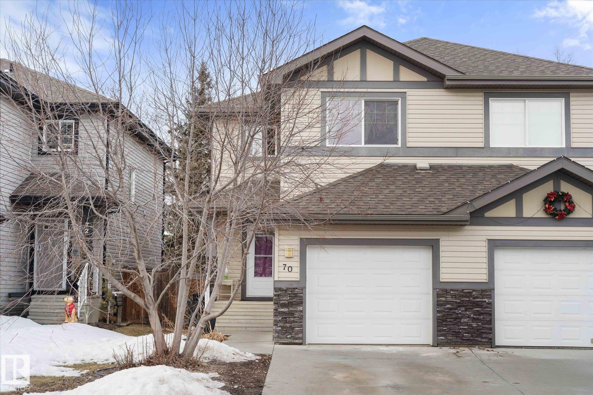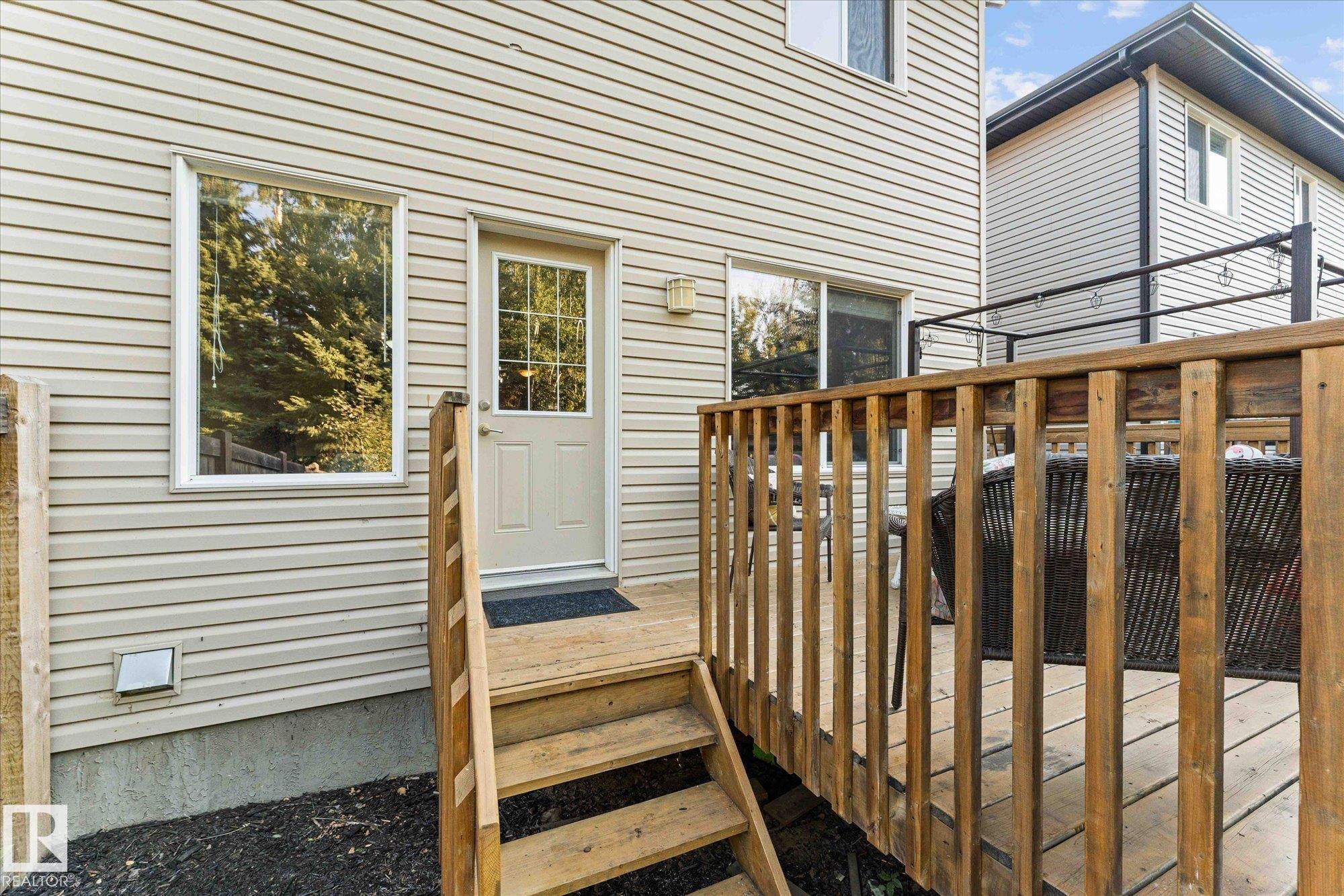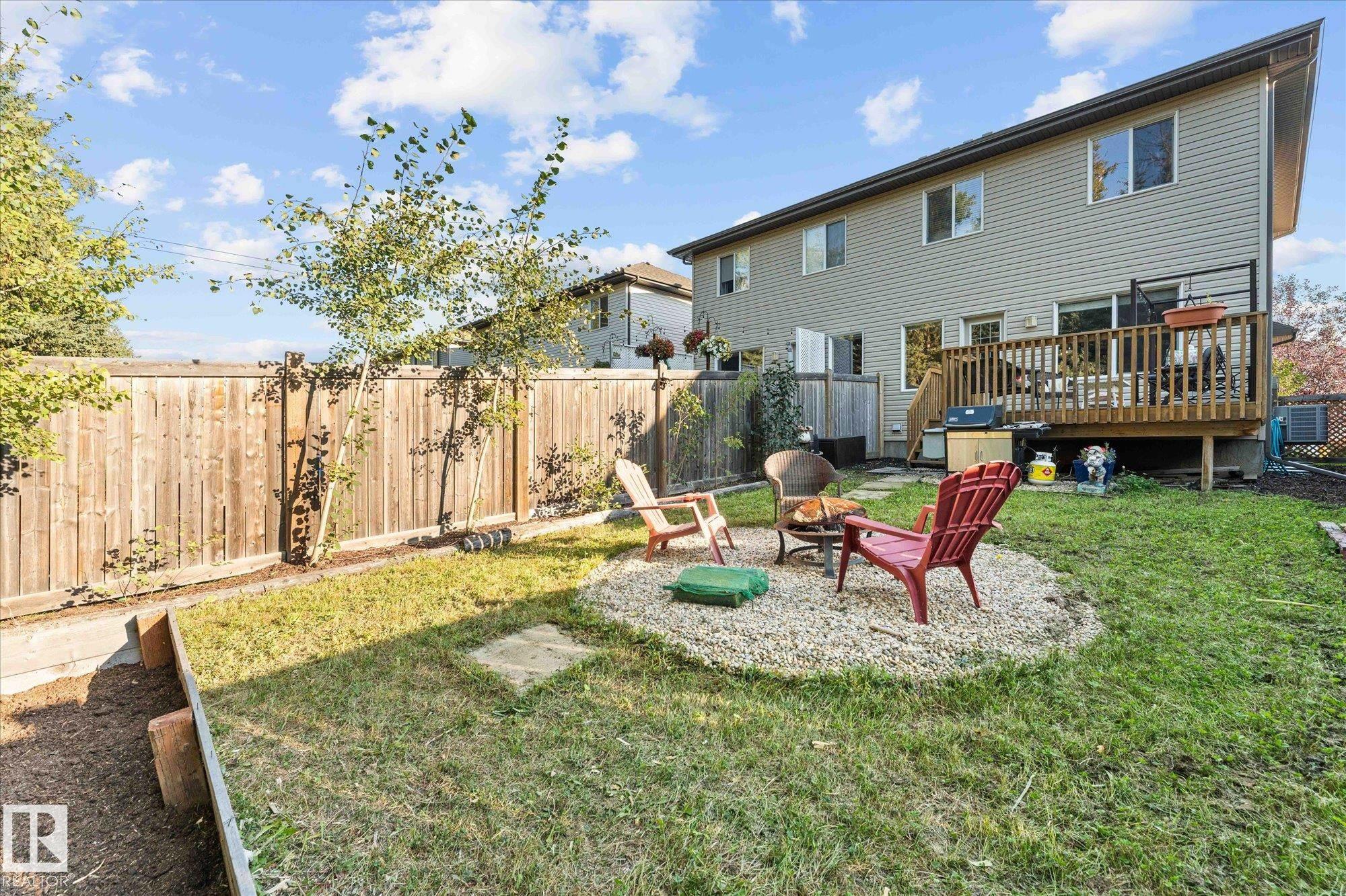 Welcome to the perfect family home in Harvest Ridge! This bright and inviting half duplex is complete with 3 bedrooms and 3.5 baths. The main floor offers an open-concept layout where the living, dining, and kitchen spaces flow seamlessly together, enhanced by large windows that fill the home with natural light. The kitchen features beautiful wood cabinetry and ample storage, making it as functional as it is stylish. Upstairs, you'll find three generously sized bedrooms, including a comfortable primary that features a large ensuite and walk-in closet. The lower level offers extra living space with a full bathroom, perfect for a family room, home office, or guest area. Step outside to enjoy a private back deck and fully fenced backyard, backing trees, ideal for relaxing or entertaining. One of the many highlights of this home is the proximity to playgrounds, the Tri-Leisure, shopping and many more amenities. A perfect blend of comfort and convenience, this home is move-in ready and waiting for you!