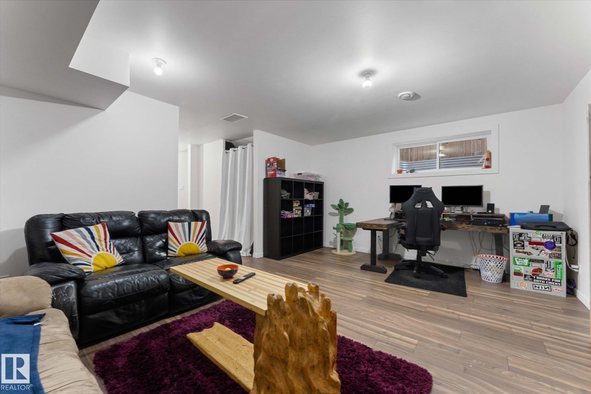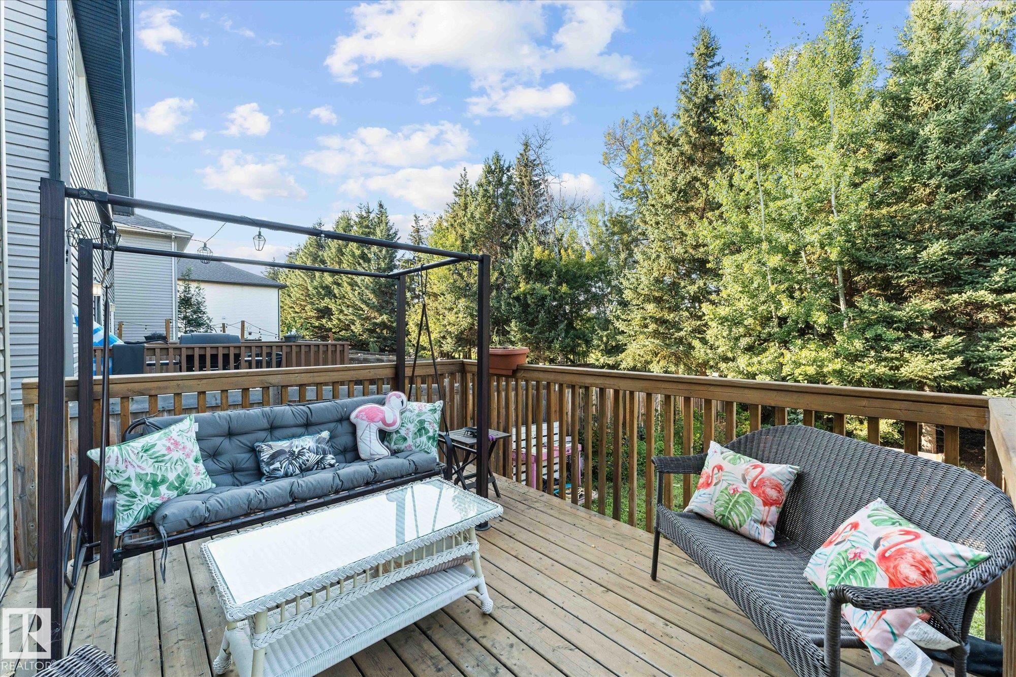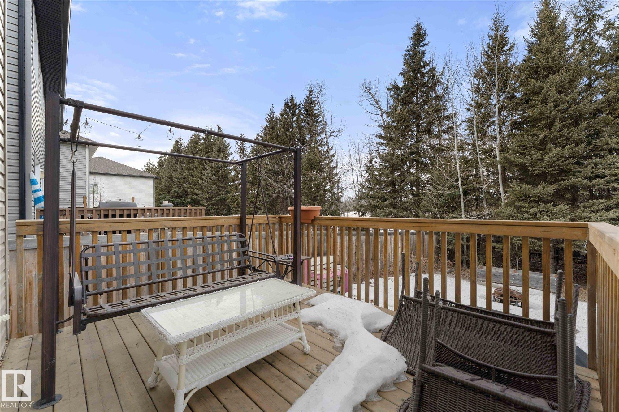 Welcome to the perfect family home in Harvest Ridge! This bright and inviting half duplex is complete with 3 bedrooms and 3.5 baths. The main floor offers an open-concept layout where the living, dining, and kitchen spaces flow seamlessly together, enhanced by large windows that fill the home with natural light. The kitchen features beautiful wood cabinetry and ample storage, making it as functional as it is stylish. Upstairs, you'll find three generously sized bedrooms, including a comfortable primary that features a large ensuite and walk-in closet. The lower level offers extra living space with a full bathroom, perfect for a family room, home office, or guest area. Step outside to enjoy a private back deck and fully fenced backyard, backing trees, ideal for relaxing or entertaining. One of the many highlights of this home is the proximity to playgrounds, the Tri-Leisure, shopping and many more amenities. A perfect blend of comfort and convenience, this home is move-in ready and waiting for you!