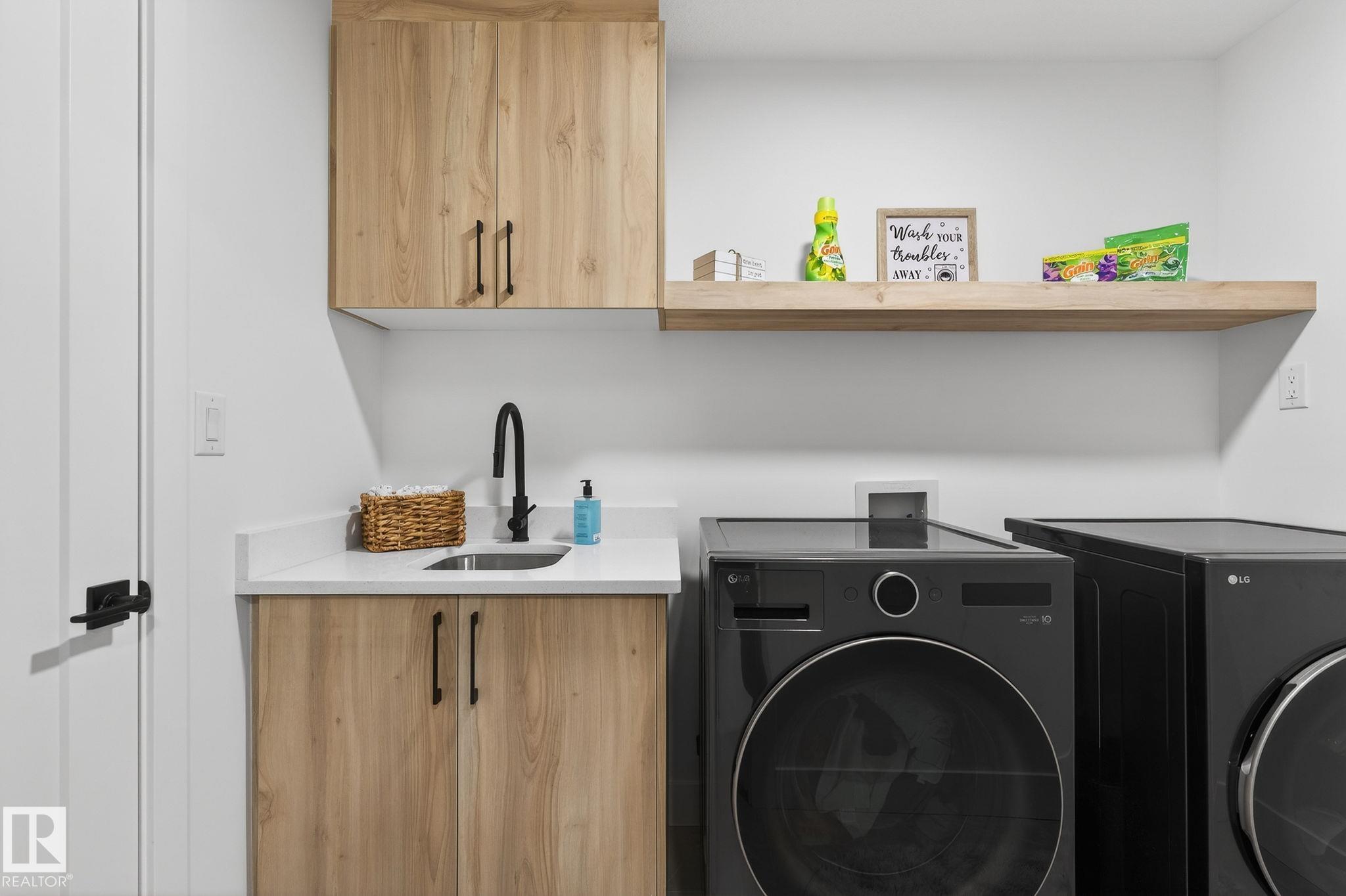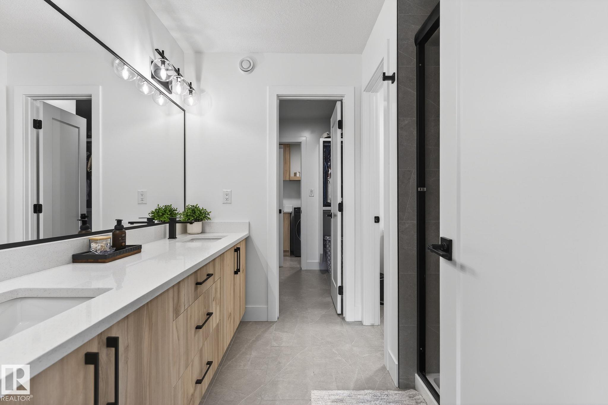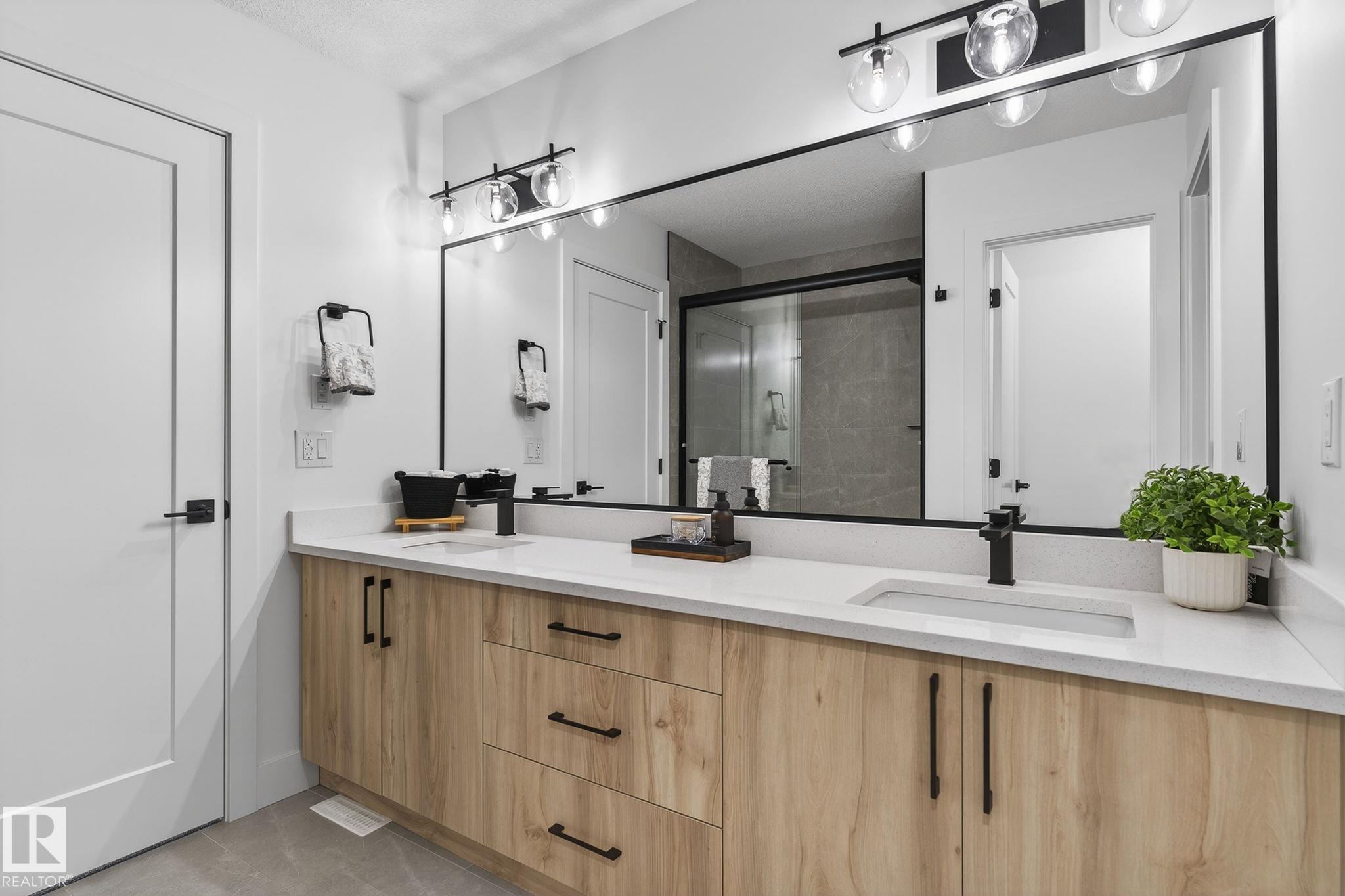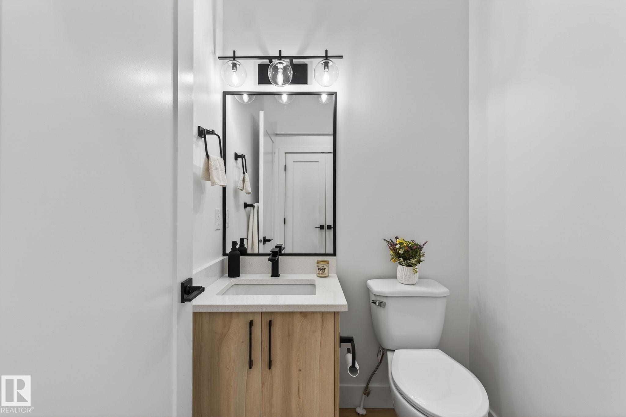 Welcome to this beautiful half duplex in Harvest Ridge, perfectly positioned backing onto mature trees. The main floor is thoughtfully designed with a bright, open-concept filled with natural light, which makes an immediate impression with its modern floor-to-ceiling feature wall and sleek electric fireplace. The kitchen is beautifully appointed with quartz countertops, soft-close cabinetry, and a walk-through pantry. Upstairs, a spacious bonus room offers flexible living space, while the primary suite offers a 4-piece ensuite and a generous walk-in closet that conveniently connects to the laundry room. Two additional bedrooms and a second 4-piece bath complete this level. Thoughtfully designed with MDF shelving throughout every closet, pantry, and mudroom, plus upgrades like a garage drain and BBQ gas line, blending style with function. A fully fenced backyard and an unfinished basement with a side entrance offer incredible future potential. This home is move-in ready and beautifully finished!
