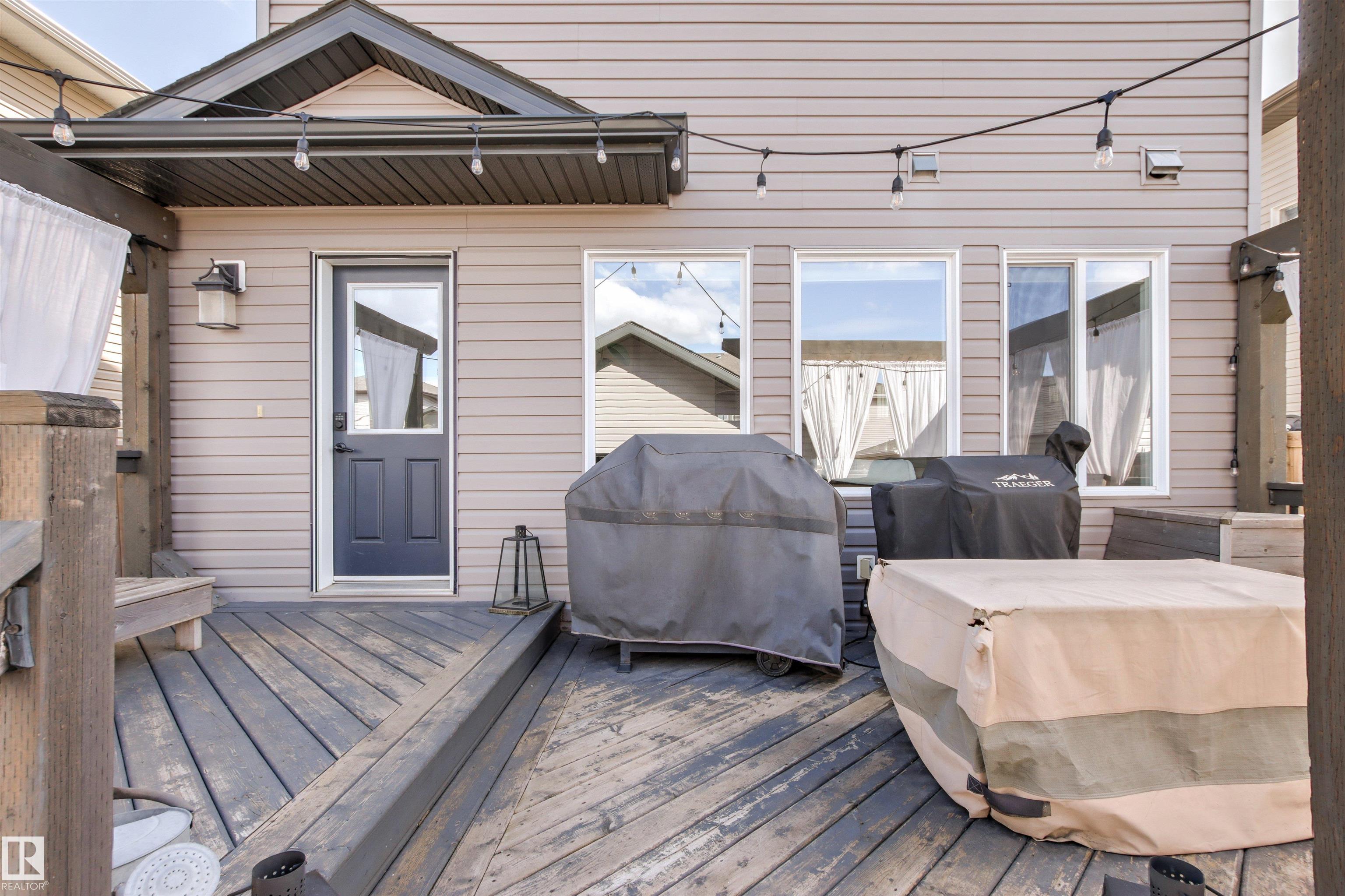Welcome Home! Functional main floor features a modern kitchen with ample counter space, stainless steel appliances, counter-height seating, and a walk-in pantry. Upstairs offers two spacious primary bedrooms, each with a walk-in closet and private ensuite with double sinks. Convenient second-floor laundry with cabinetry and shelving. High-quality blinds throughout. Beautifully landscaped yard and large custom-built deck welcome you to this well-maintained two-storey home. Unfinished basement is roughed in for an additional bathroom and ready for future development. Double Detached garage 20 x 20 in size.