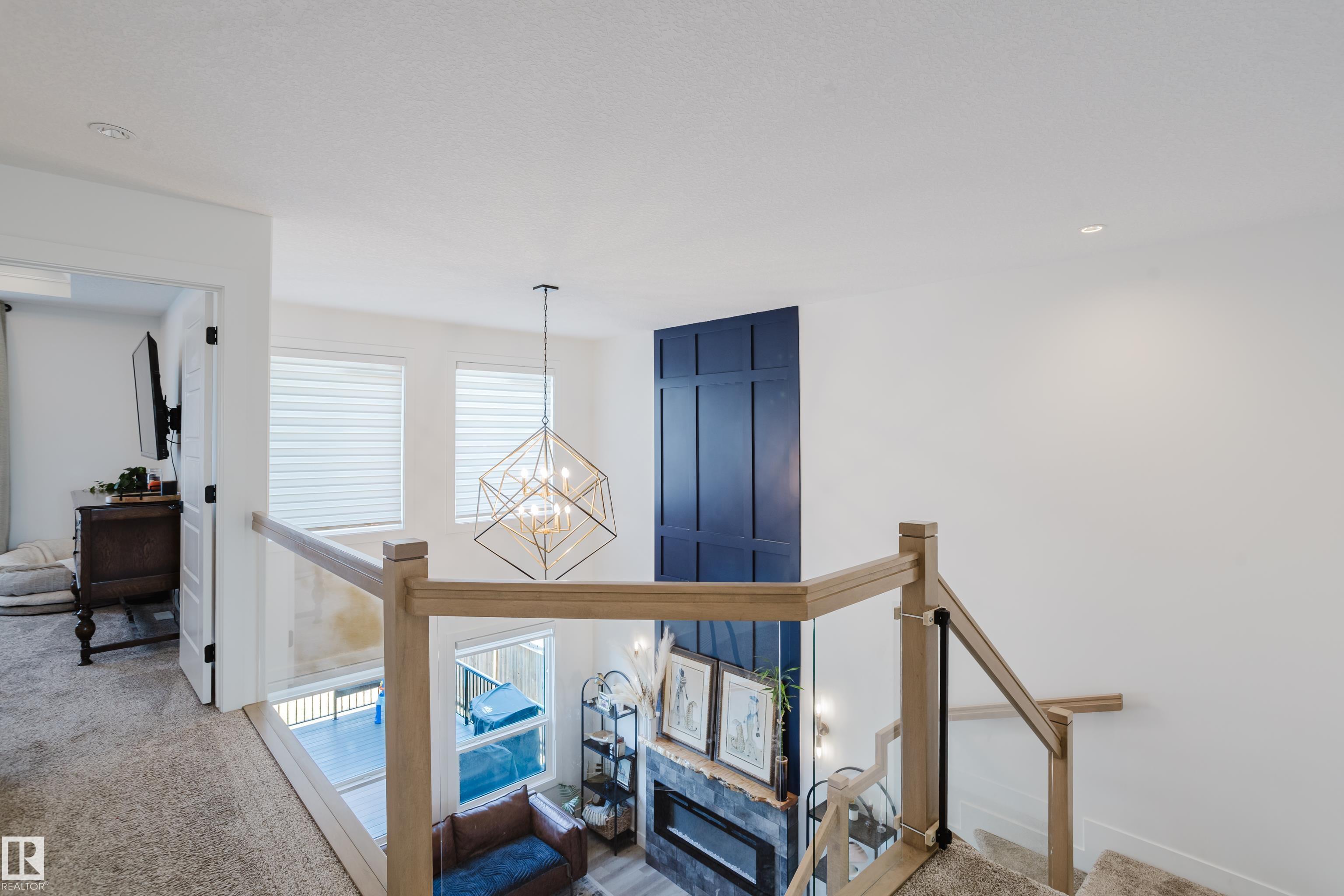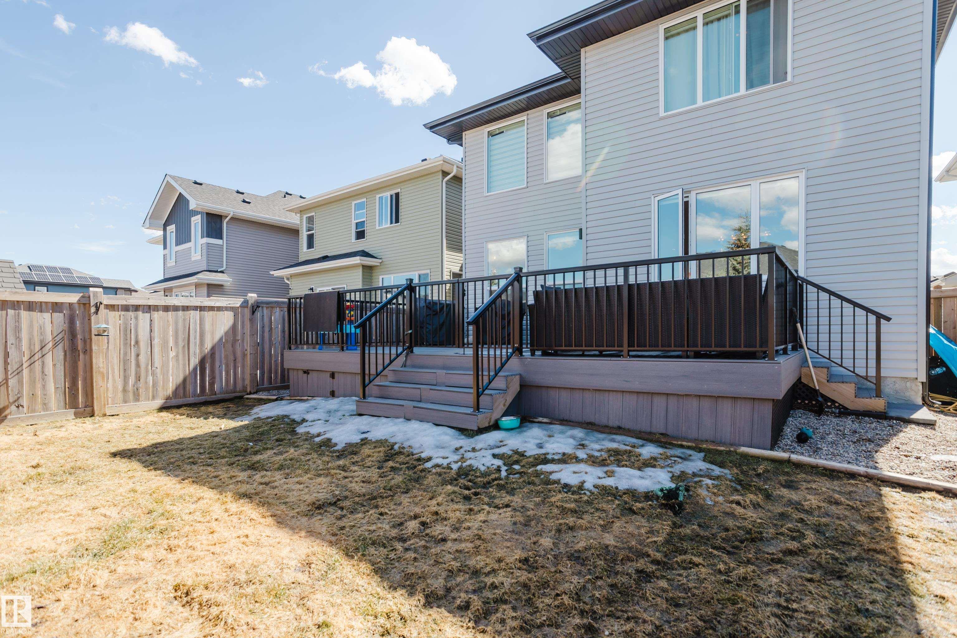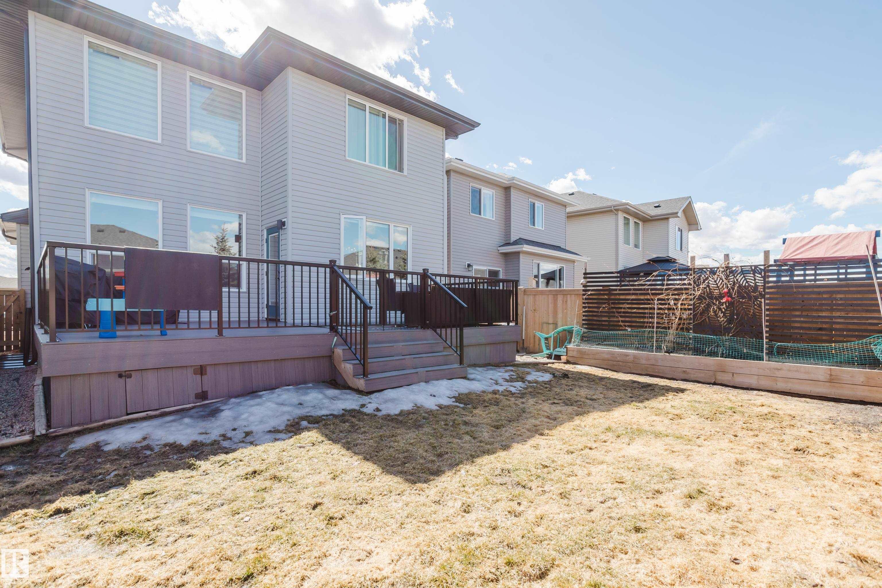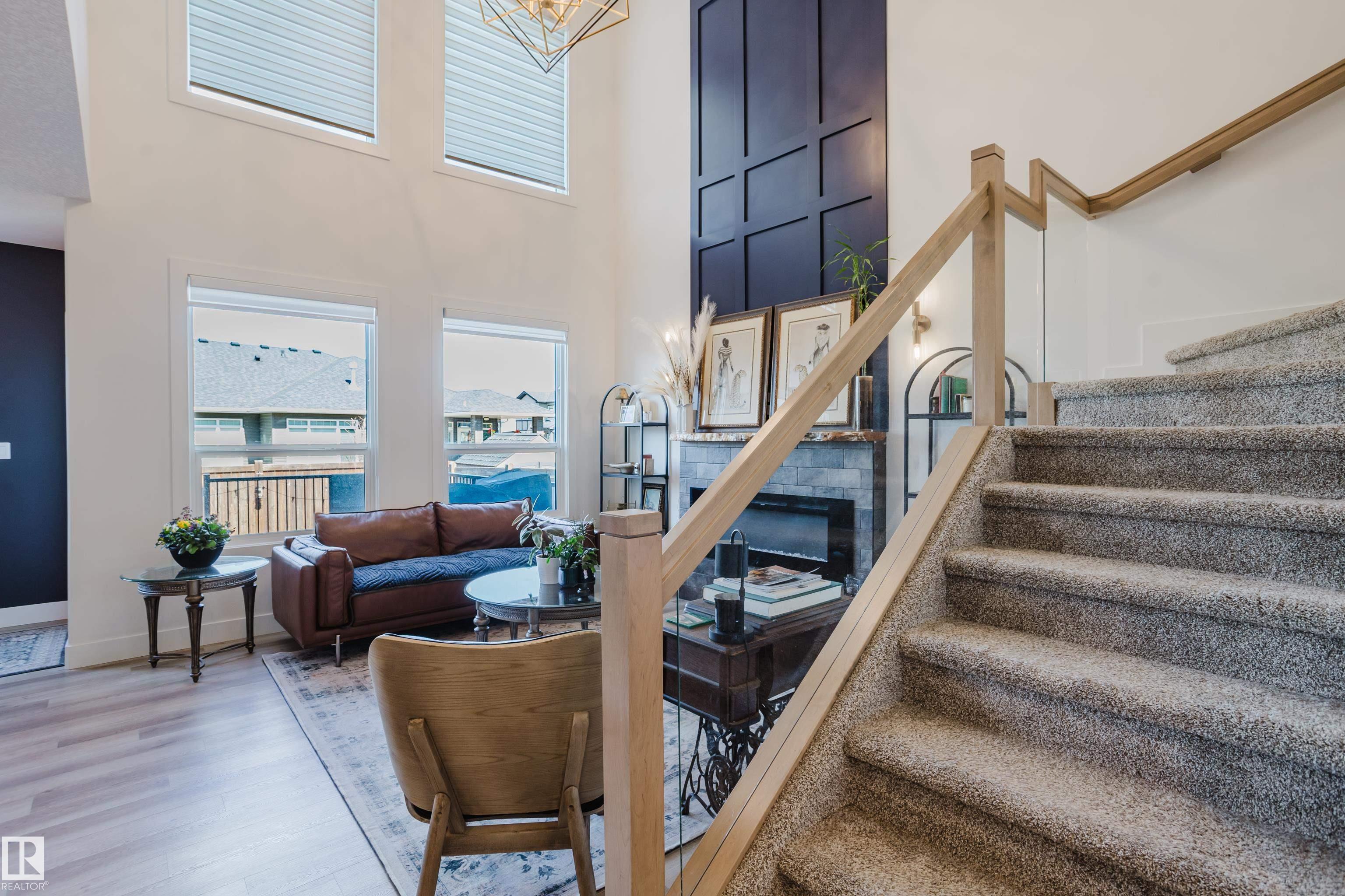 MODERN 2-STOREY with OPEN-TO-ABOVE DESIGN in a FAMILY-FRIENDLY LOCATION Welcome to this stunning home offering over 2,250 SQ. FT. with a bright OPEN-CONCEPT LAYOUT and a show-stopping OPEN-TO-ABOVE GREAT ROOM featuring a FLOOR-TO-CEILING FEATURE WALL with ELECTRIC FIREPLACE. Large windows fill the space with natural light. The main floor features 9' CEILINGS, a versatile DEN/FLEX SPACE, and a CHEF-INSPIRED KITCHEN with QUARTZ COUNTERTOPS, FULL-HEIGHT CABINETRY, LARGE ISLAND, and a WALK-THROUGH PANTRY to the mudroom. The SEPARATE SIDE ENTRANCE offers added flexibility and FUTURE SUITE POTENTIAL. Upstairs offers a BONUS ROOM WITH TRAY CEILINGS, 3 BEDROOMS, and convenient laundry. The PRIMARY SUITE includes a SPA-STYLE ENSUITE with DUAL SINKS, FREESTANDING SOAKER TUB, and a WALK-IN TILED SHOWER. Enjoy the MASSIVE LOW-MAINTENANCE DECK and stay comfortable with CENTRAL A/C. Located near K-9 SCHOOLS, HIGH SCHOOL, PARKS, and AMENITIES, this home delivers STYLE, SPACE, and FUNCTION.