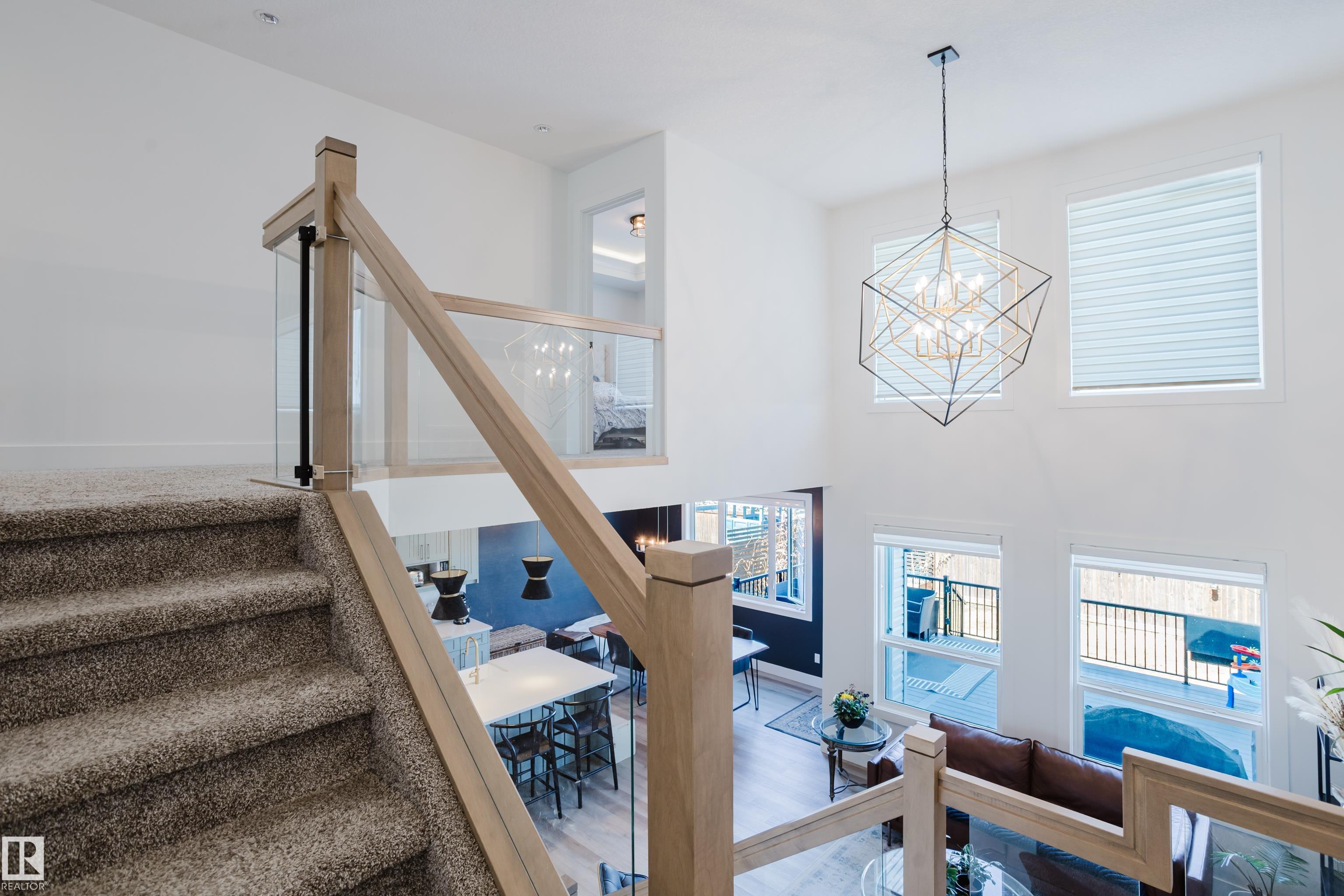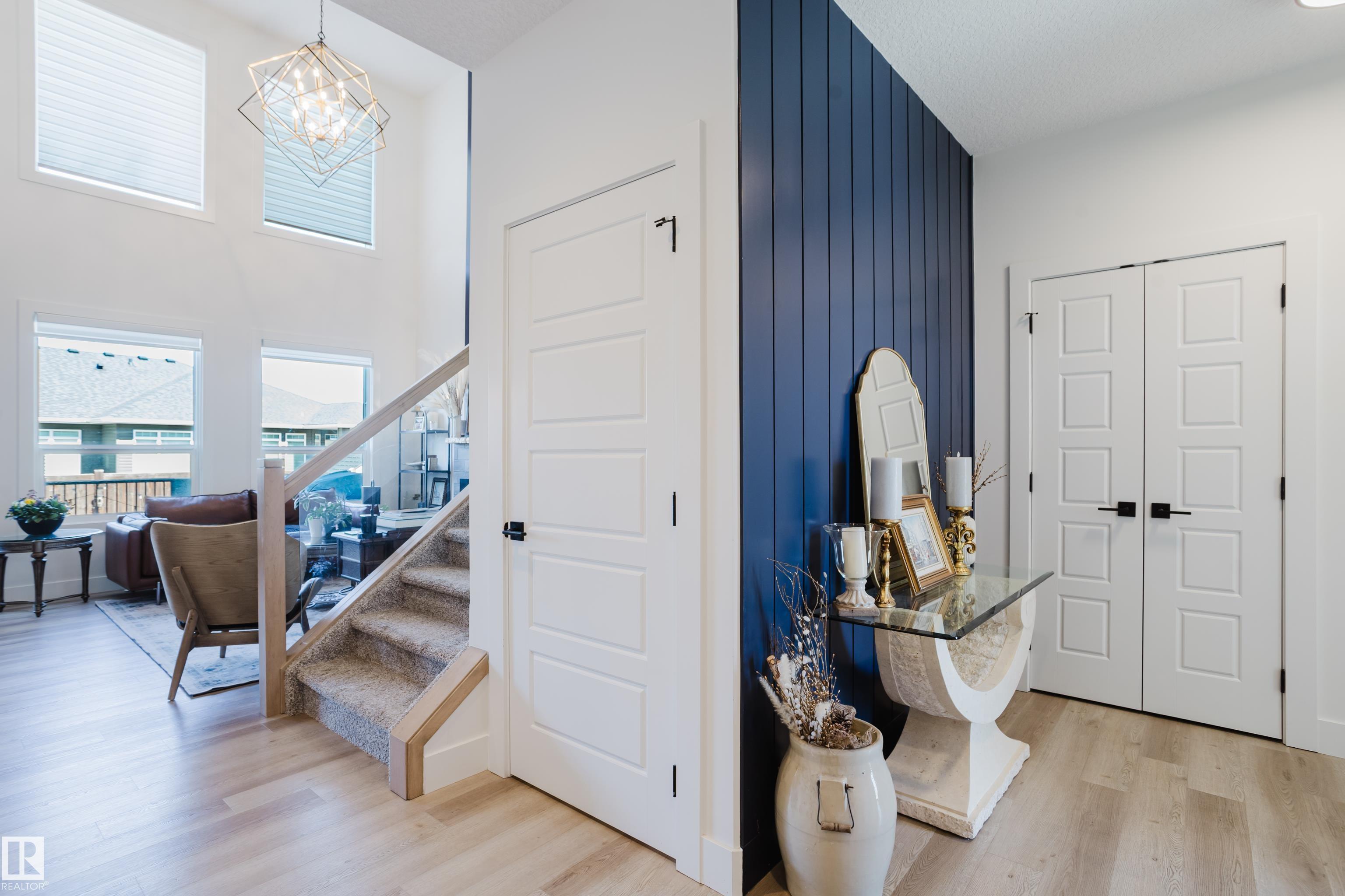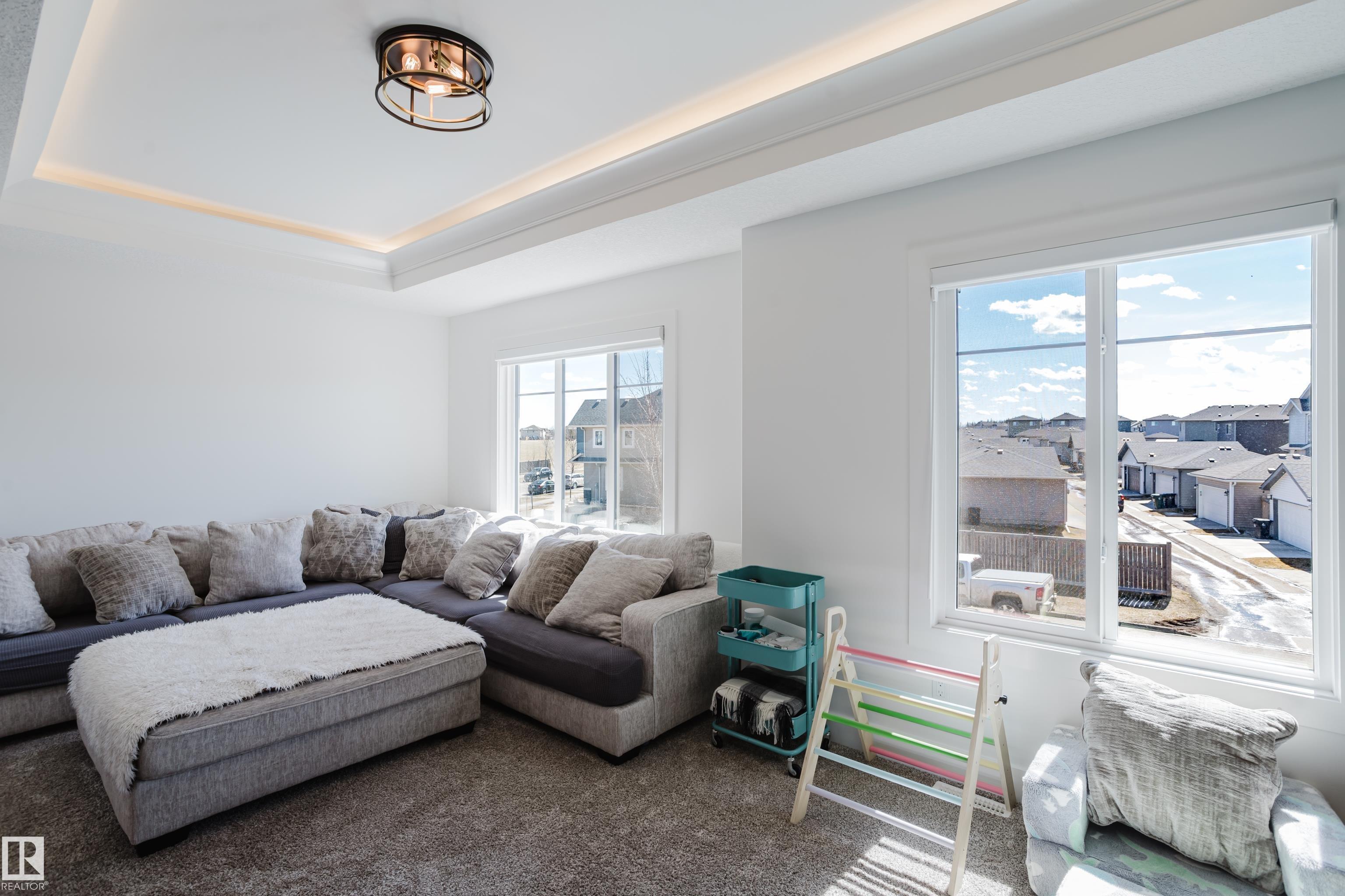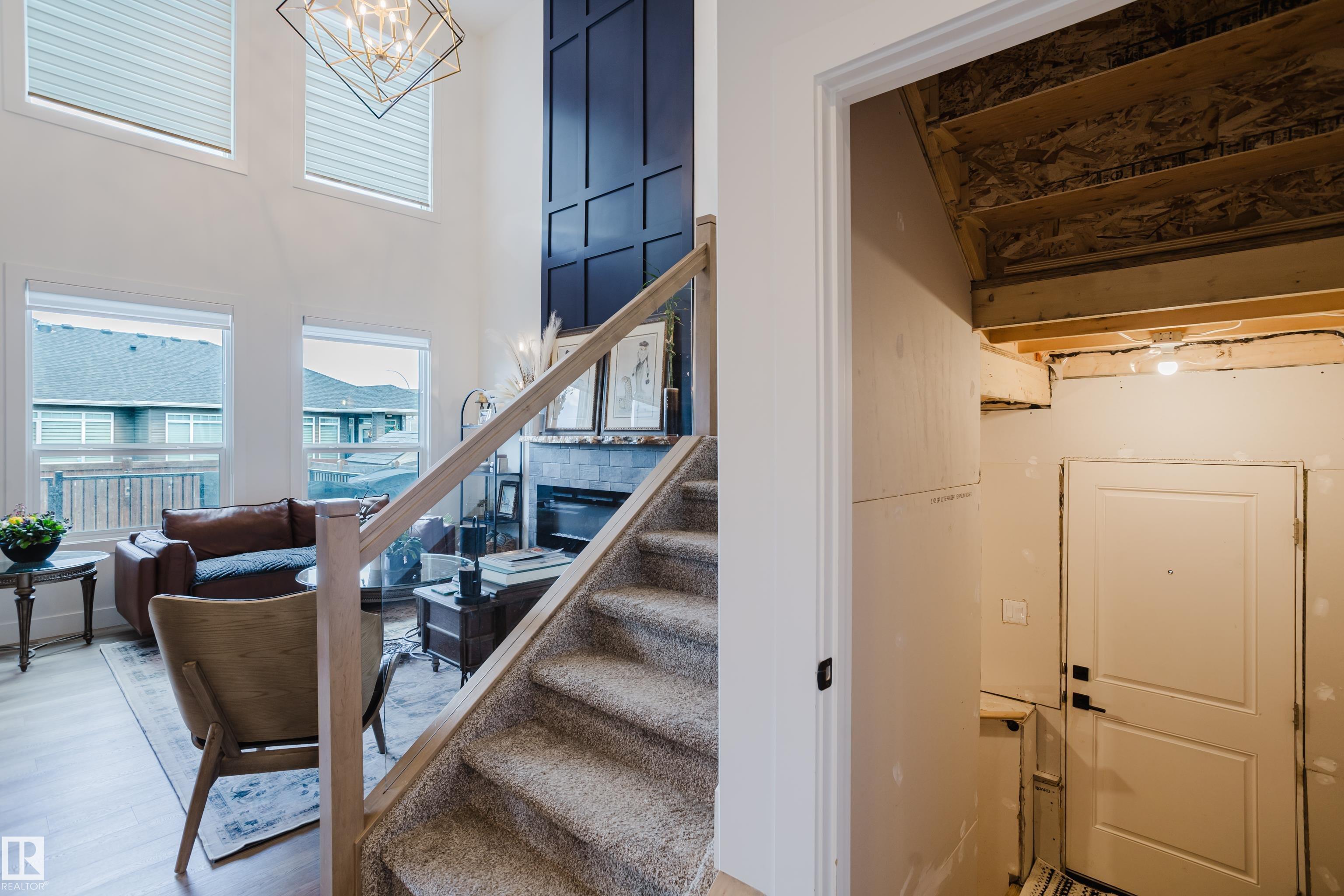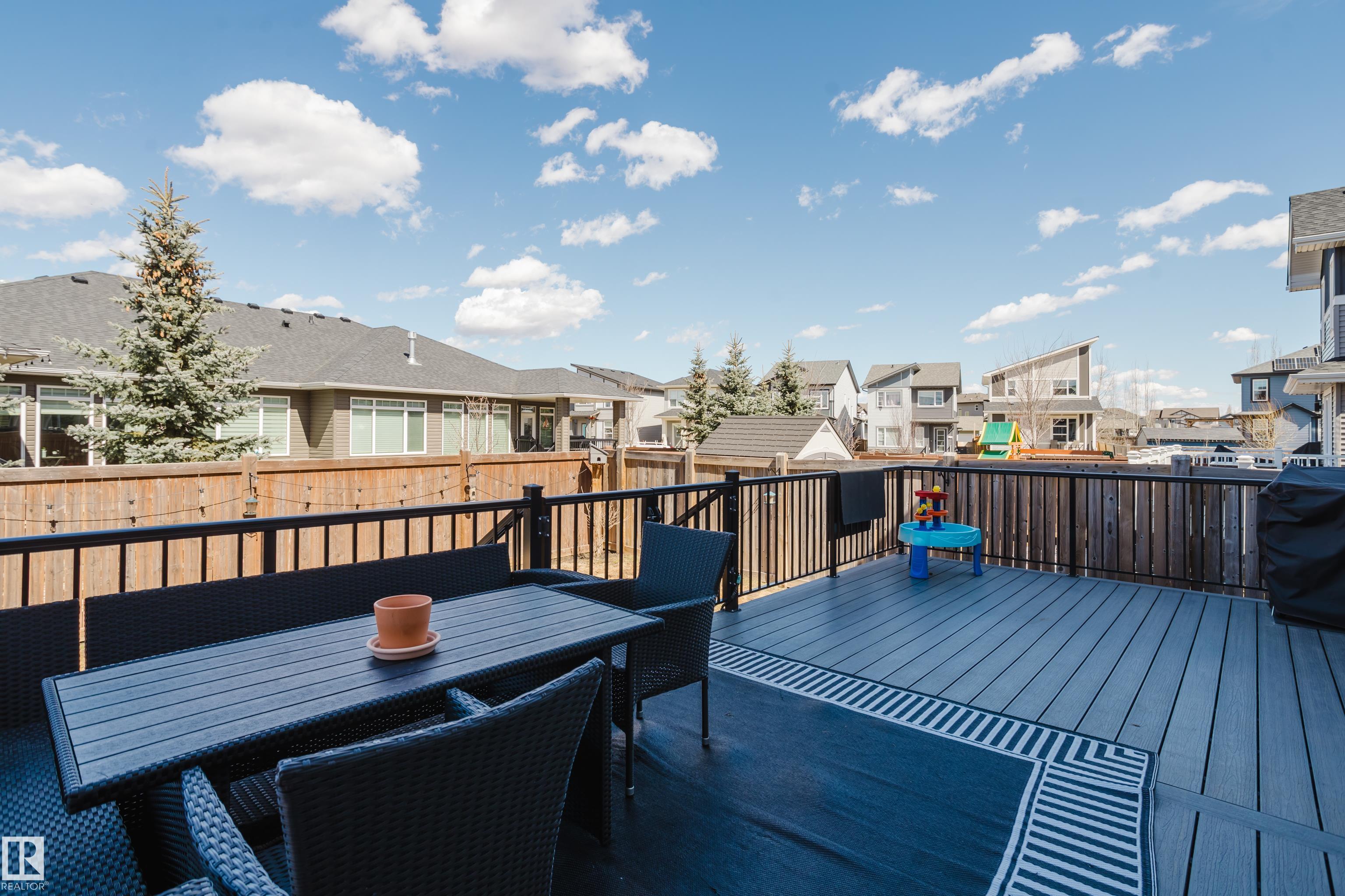 MODERN 2-STOREY with OPEN-TO-ABOVE DESIGN in a FAMILY-FRIENDLY LOCATION Welcome to this stunning home offering over 2,250 SQ. FT. with a bright OPEN-CONCEPT LAYOUT and a show-stopping OPEN-TO-ABOVE GREAT ROOM featuring a FLOOR-TO-CEILING FEATURE WALL with ELECTRIC FIREPLACE. Large windows fill the space with natural light. The main floor features 9' CEILINGS, a versatile DEN/FLEX SPACE, and a CHEF-INSPIRED KITCHEN with QUARTZ COUNTERTOPS, FULL-HEIGHT CABINETRY, LARGE ISLAND, and a WALK-THROUGH PANTRY to the mudroom. The SEPARATE SIDE ENTRANCE offers added flexibility and FUTURE SUITE POTENTIAL. Upstairs offers a BONUS ROOM WITH TRAY CEILINGS, 3 BEDROOMS, and convenient laundry. The PRIMARY SUITE includes a SPA-STYLE ENSUITE with DUAL SINKS, FREESTANDING SOAKER TUB, and a WALK-IN TILED SHOWER. Enjoy the MASSIVE LOW-MAINTENANCE DECK and stay comfortable with CENTRAL A/C. Located near K-9 SCHOOLS, HIGH SCHOOL, PARKS, and AMENITIES, this home delivers STYLE, SPACE, and FUNCTION.