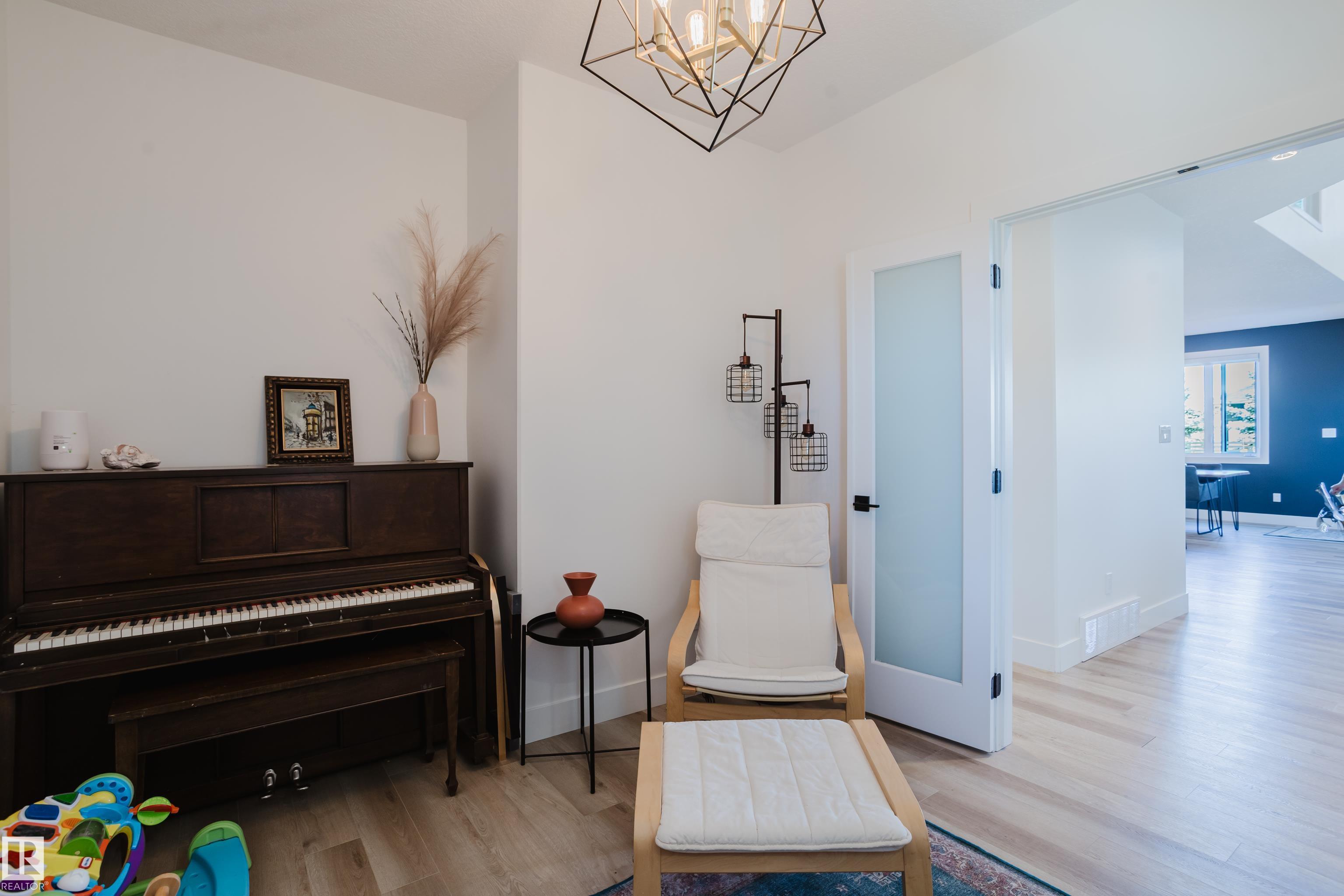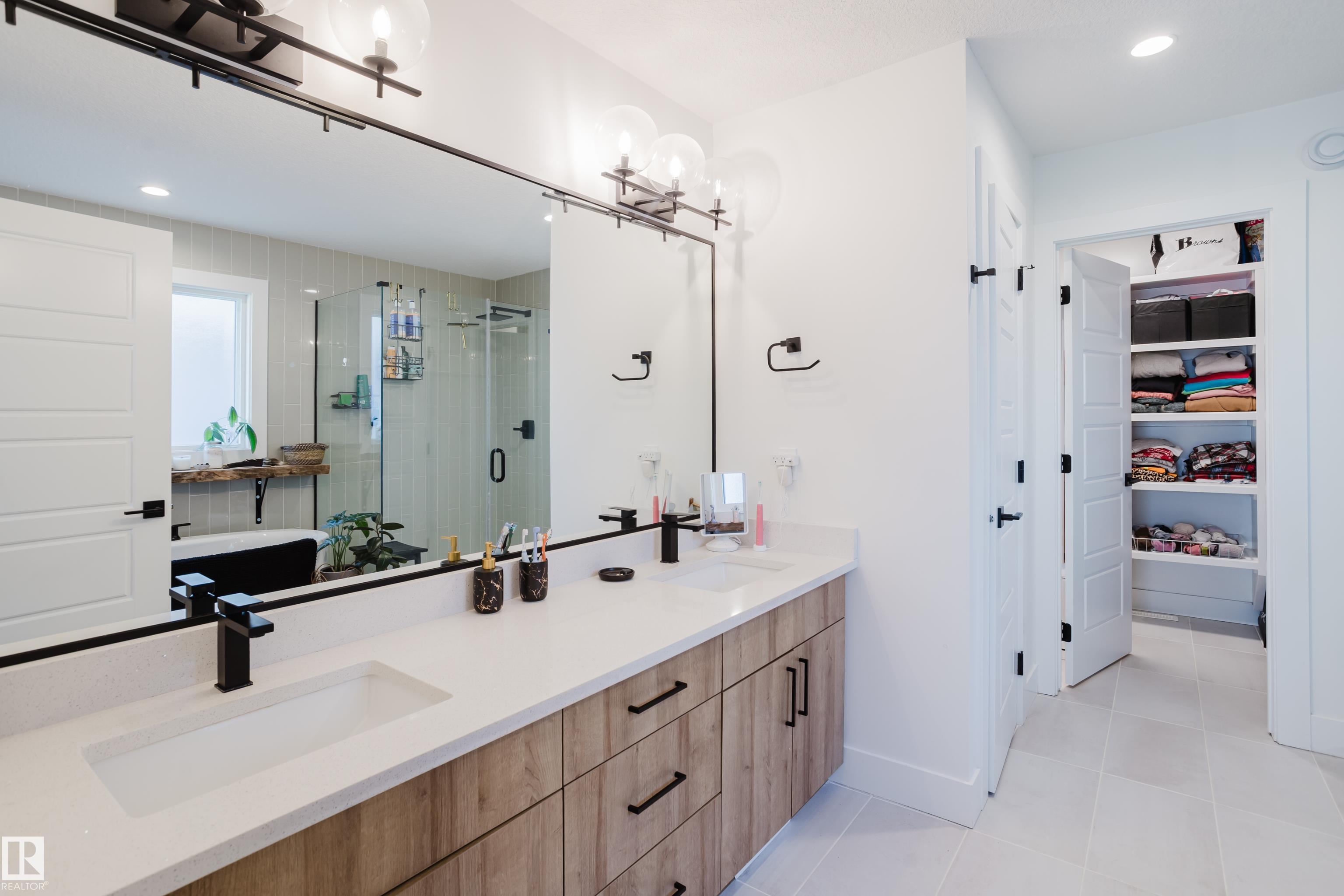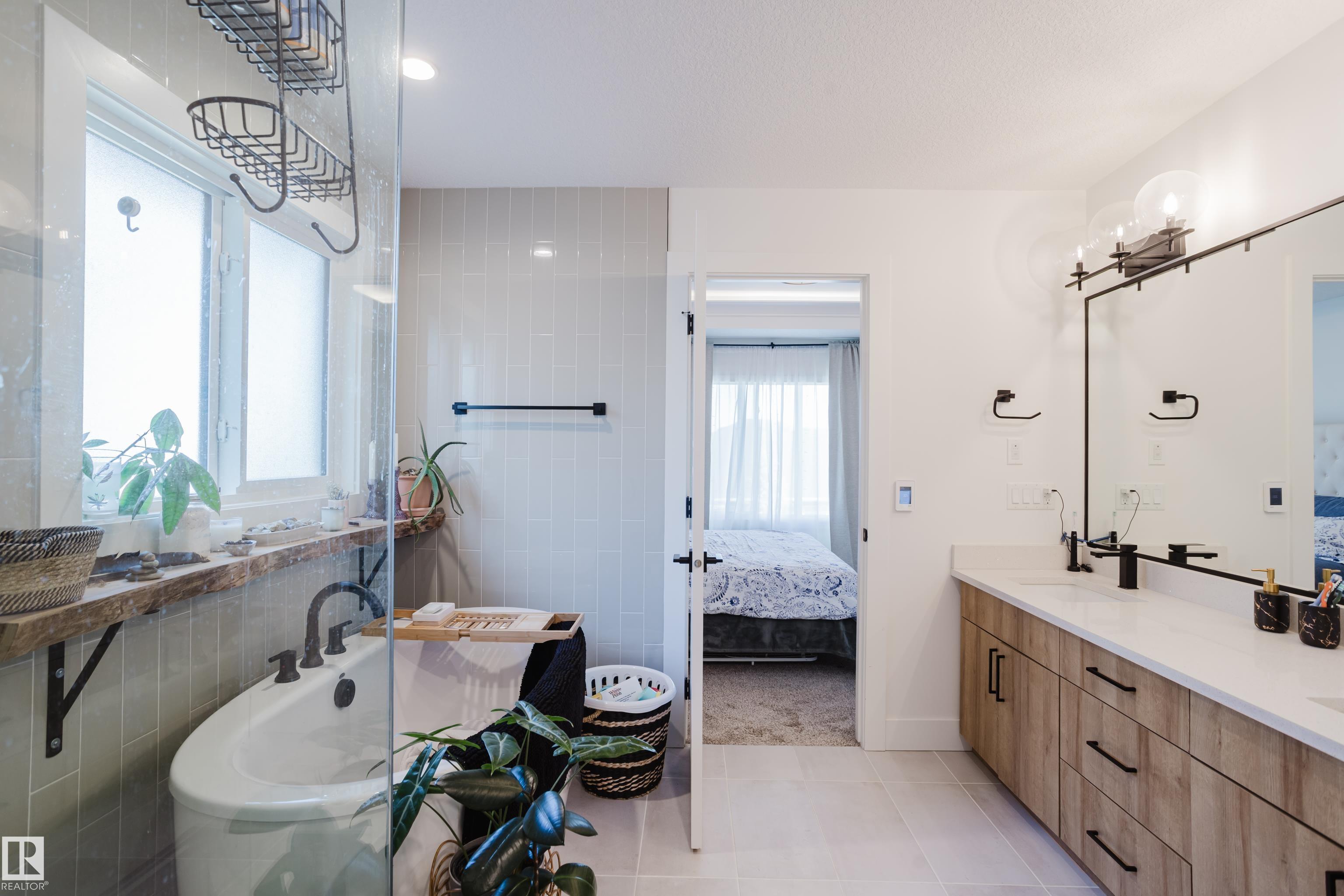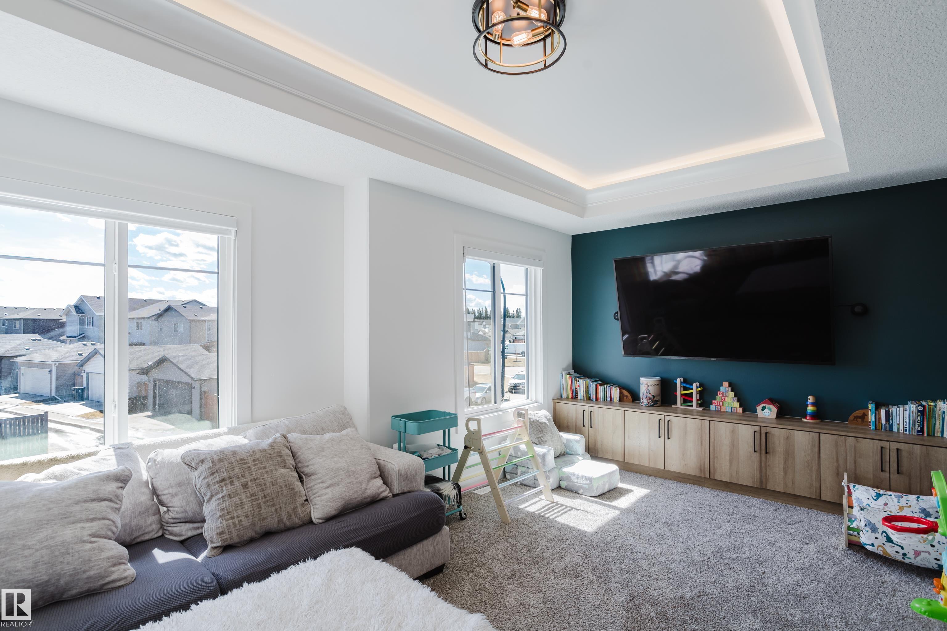 MODERN 2-STOREY with OPEN-TO-ABOVE DESIGN in a FAMILY-FRIENDLY LOCATION Welcome to this stunning home offering over 2,250 SQ. FT. with a bright OPEN-CONCEPT LAYOUT and a show-stopping OPEN-TO-ABOVE GREAT ROOM featuring a FLOOR-TO-CEILING FEATURE WALL with ELECTRIC FIREPLACE. Large windows fill the space with natural light. The main floor features 9' CEILINGS, a versatile DEN/FLEX SPACE, and a CHEF-INSPIRED KITCHEN with QUARTZ COUNTERTOPS, FULL-HEIGHT CABINETRY, LARGE ISLAND, and a WALK-THROUGH PANTRY to the mudroom. The SEPARATE SIDE ENTRANCE offers added flexibility and FUTURE SUITE POTENTIAL. Upstairs offers a BONUS ROOM WITH TRAY CEILINGS, 3 BEDROOMS, and convenient laundry. The PRIMARY SUITE includes a SPA-STYLE ENSUITE with DUAL SINKS, FREESTANDING SOAKER TUB, and a WALK-IN TILED SHOWER. Enjoy the MASSIVE LOW-MAINTENANCE DECK and stay comfortable with CENTRAL A/C. Located near K-9 SCHOOLS, HIGH SCHOOL, PARKS, and AMENITIES, this home delivers STYLE, SPACE, and FUNCTION.