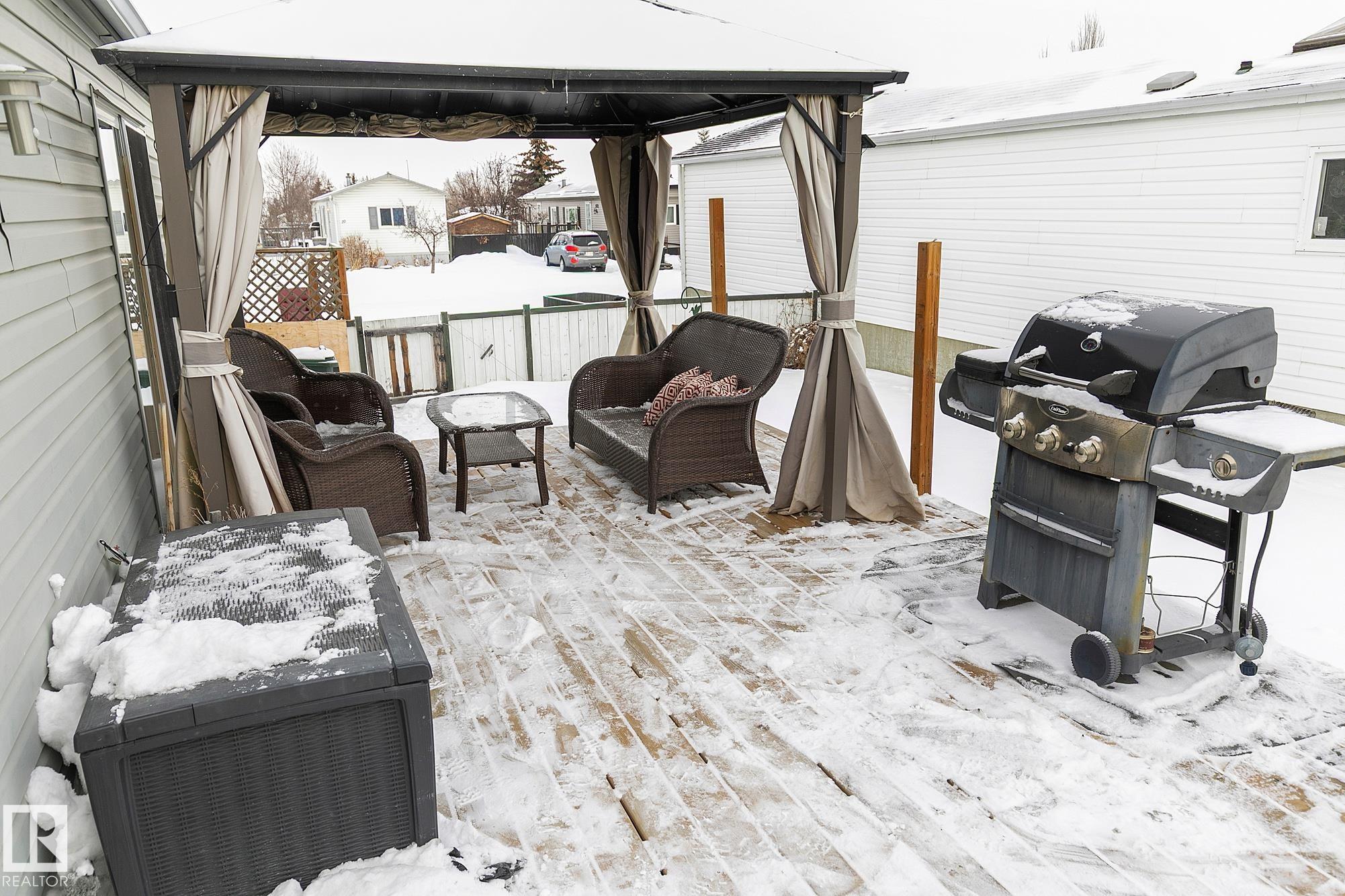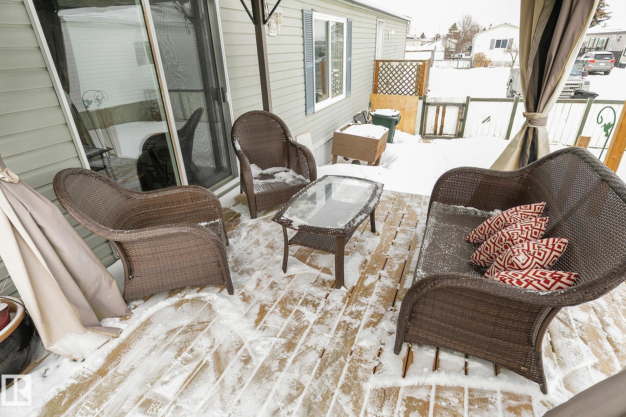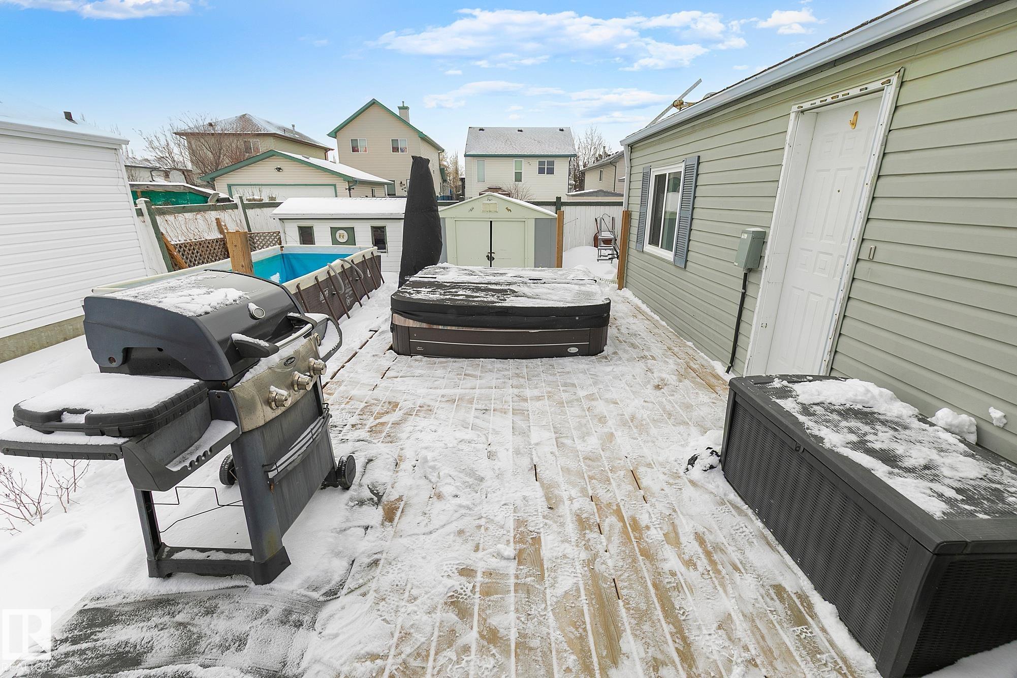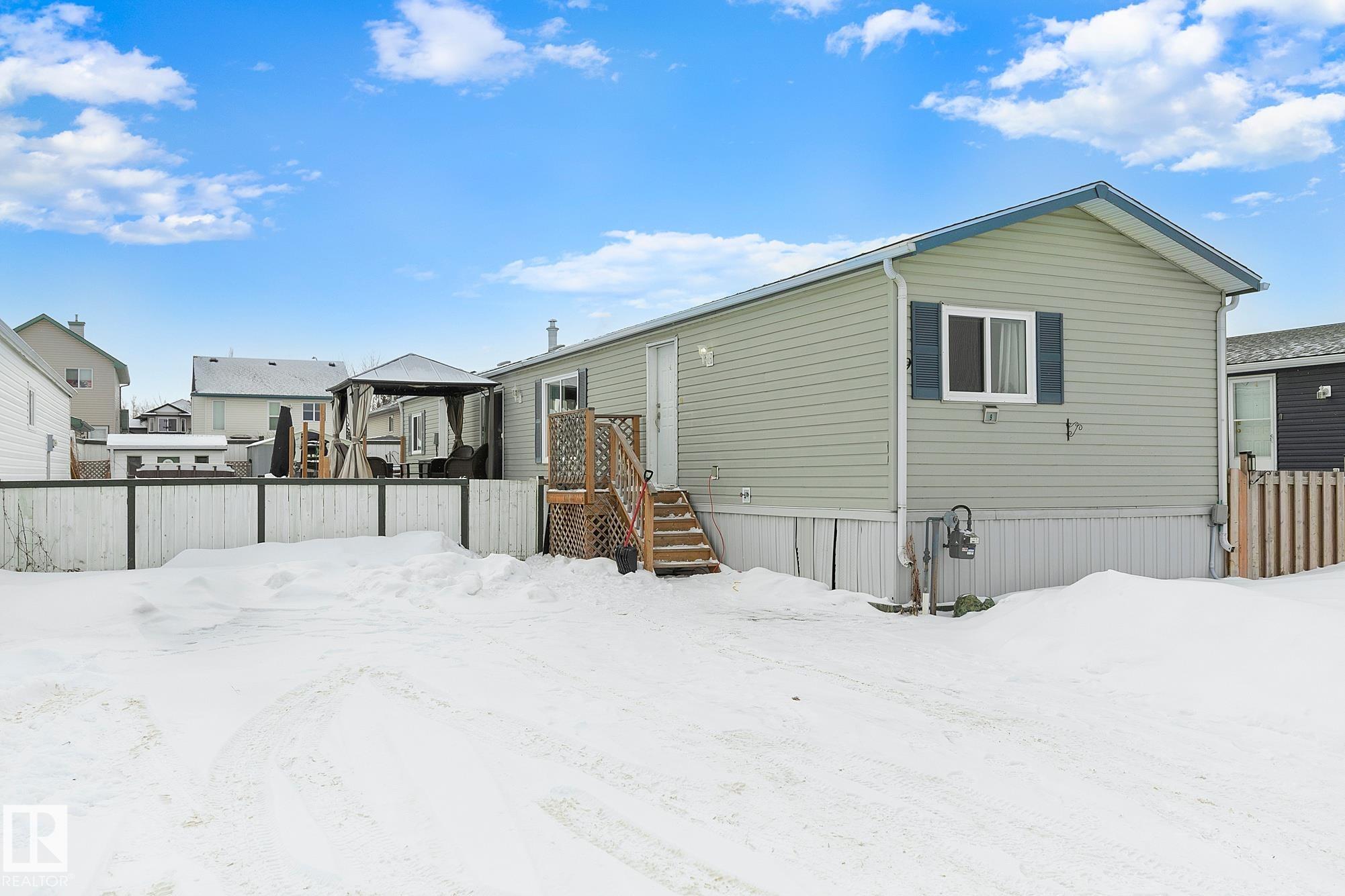RUN...don't walk to this fantastic 3 bed, 2 bath home on titled land! Perfect for first-time buyers or downsizers, to own your land and home. Stop renting. Enjoy the bright, open-concept layout with large windows, a spacious living area, and great entertaining flow. The primary bedroom offers a 4-pc ensuite, while the 2 additional bedrooms sit at the opposite end for added privacy. Relax on your new deck, sit back and enjoy the pool & hottub. Newer furnace, hot water tank, countertops, and flooring; brand-new shingles on Monday! Bonus features include a heated aboveground pool with a new pump and heater, a 6 person hot tub, a gazebo, 3 sheds, 220 volt wiring in one patio furniture set, and a mostly furnished interior. Walk to amenities with easy transit access. Act fast, affordability is rare; it's your prime opportunity to own your own home and land.