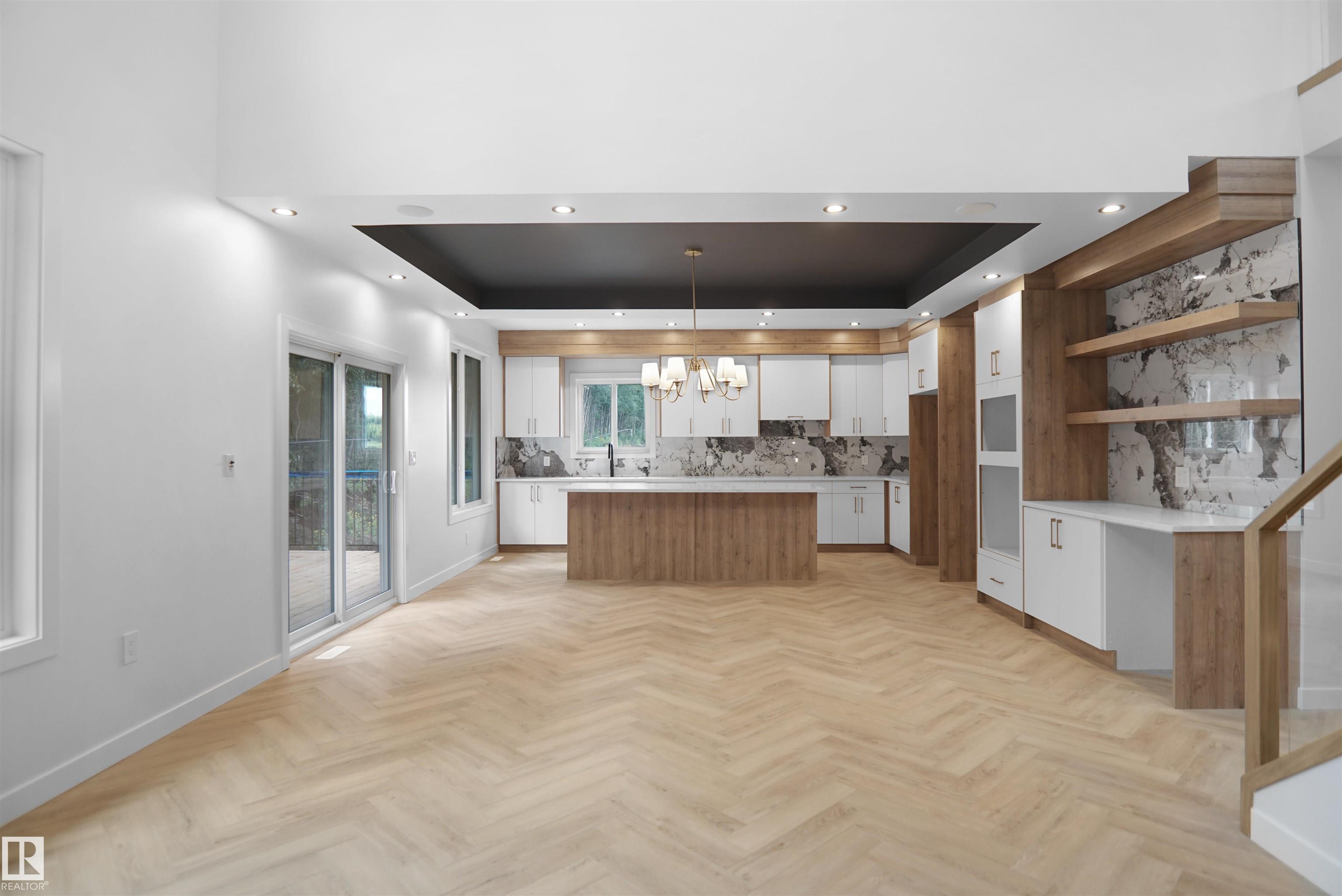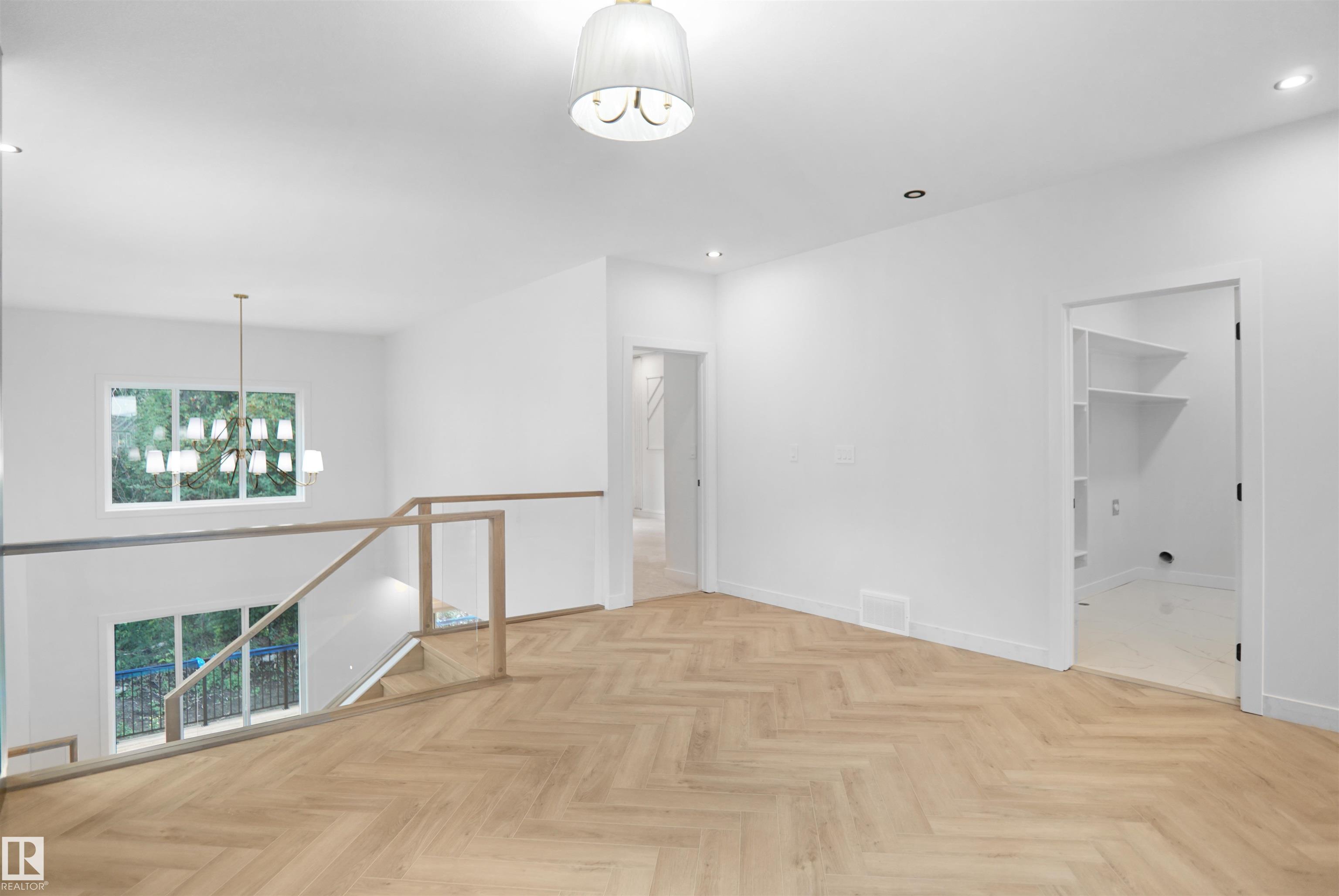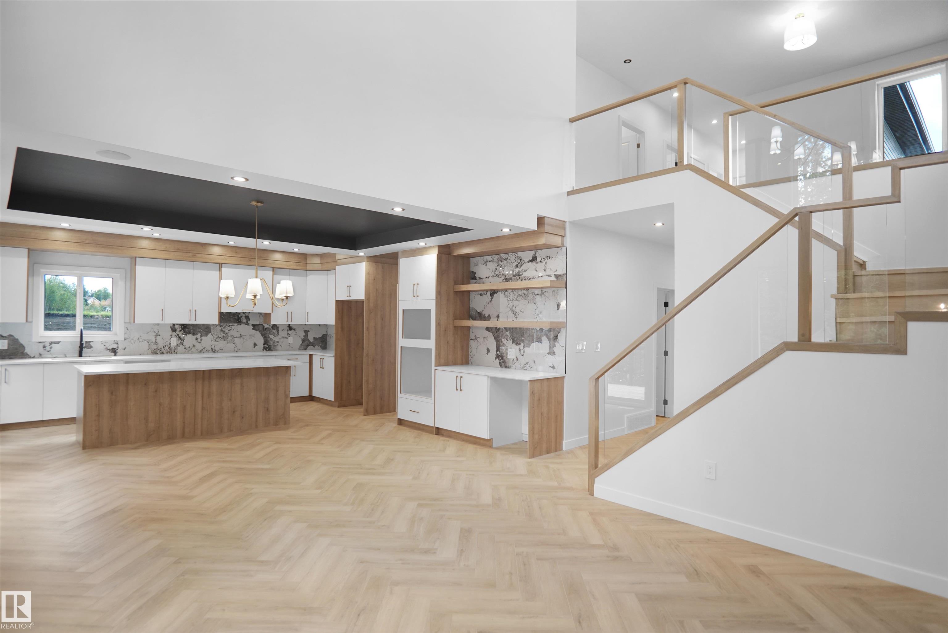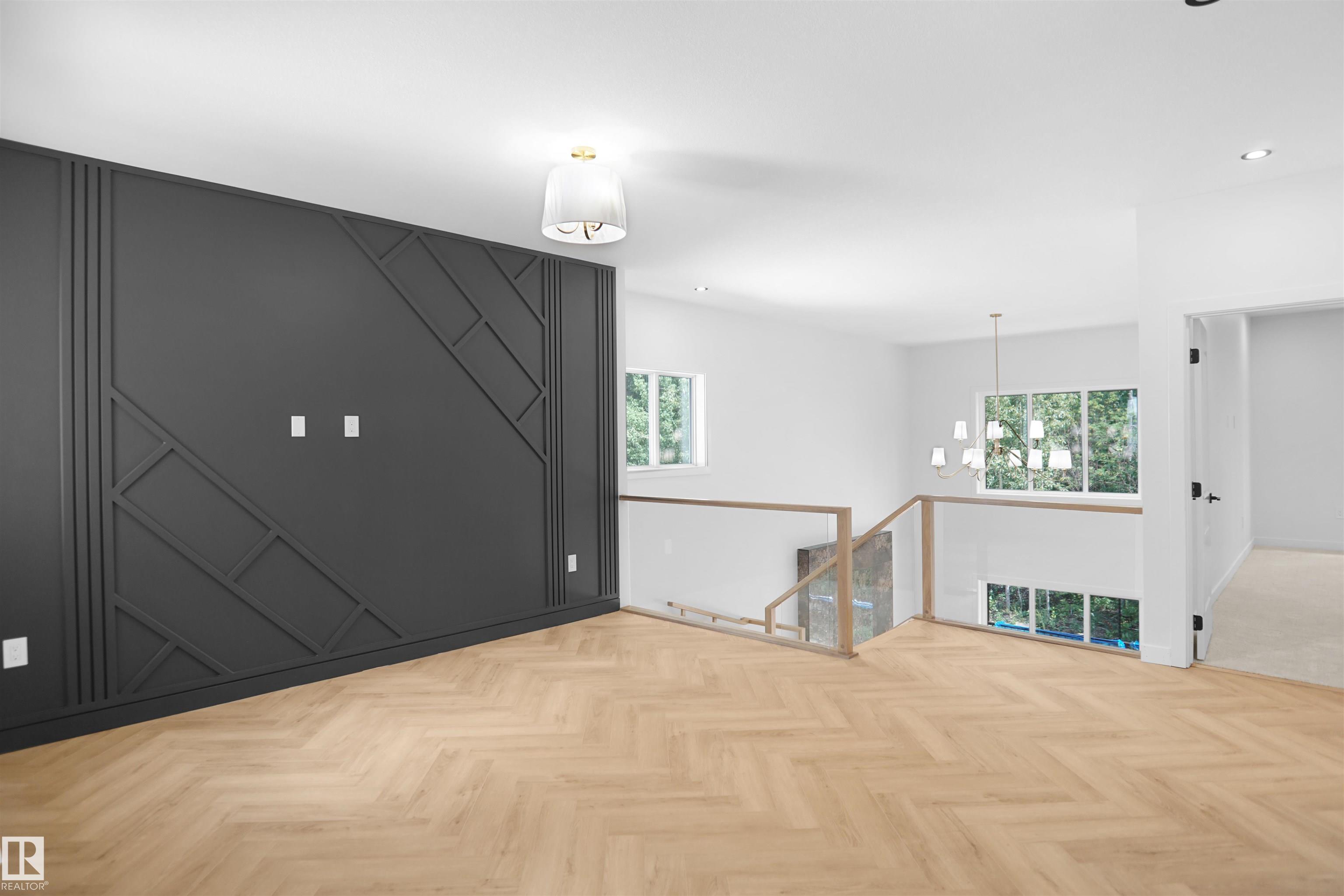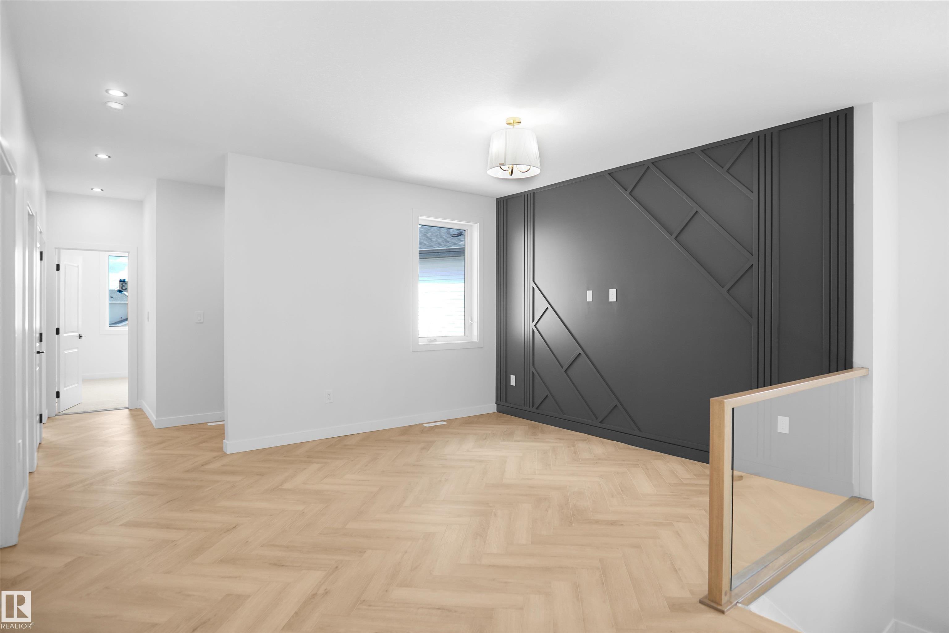 UPGRADED HOME BACKING GREENSPACE IN THE COMMUNITY OF MCLAUGHLIN! This home boasts 28 ft Long Deck with 4 bedrooms, 3 full baths, bonus room & 9ft ceilings on all three levels. Main floor offers vinyl plank flooring, bedroom/den, family room with 18ft ceiling, fireplace. Kitchen, with modern high cabinetry, quartz countertops, island & BUTLERS PANTRY/SPICE KITCHEN, is made for cooking family meals and entertaining. Spacious dinning area with ample sunlight is perfect for get togethers. The 3 piece bath finishes the main level. Walk up stairs to master bedroom with 5 piece ensuite & spacious walk in closet, 2 bedrooms with walk in closets, full bath, laundry and bonus room. Unfinished basement with separate entrance and roughed in bathroom is waiting for creative ideas. Public transit to Edmonton, & more than 40 km of trails, your dream home home awaits. Includes: DECK/TRIPLE PANE WINDOWS/ WIRELESS SPEAKERS/ GAS HOOKUP ON DECK