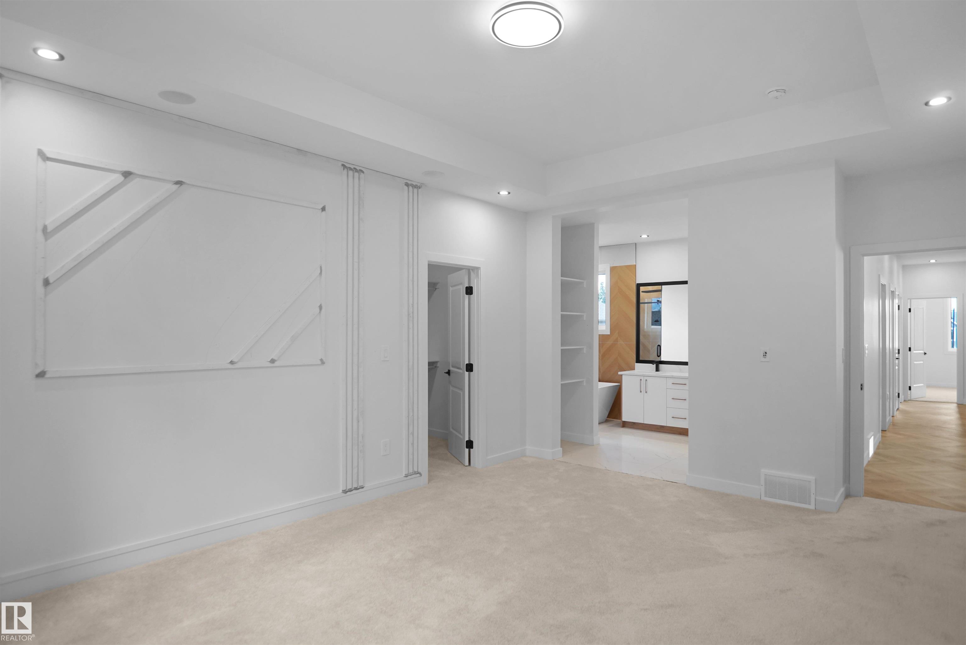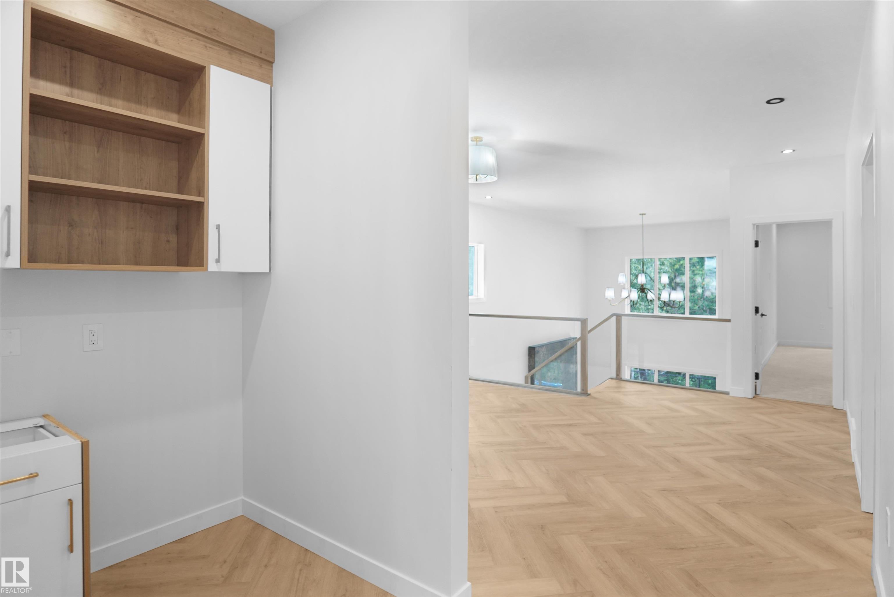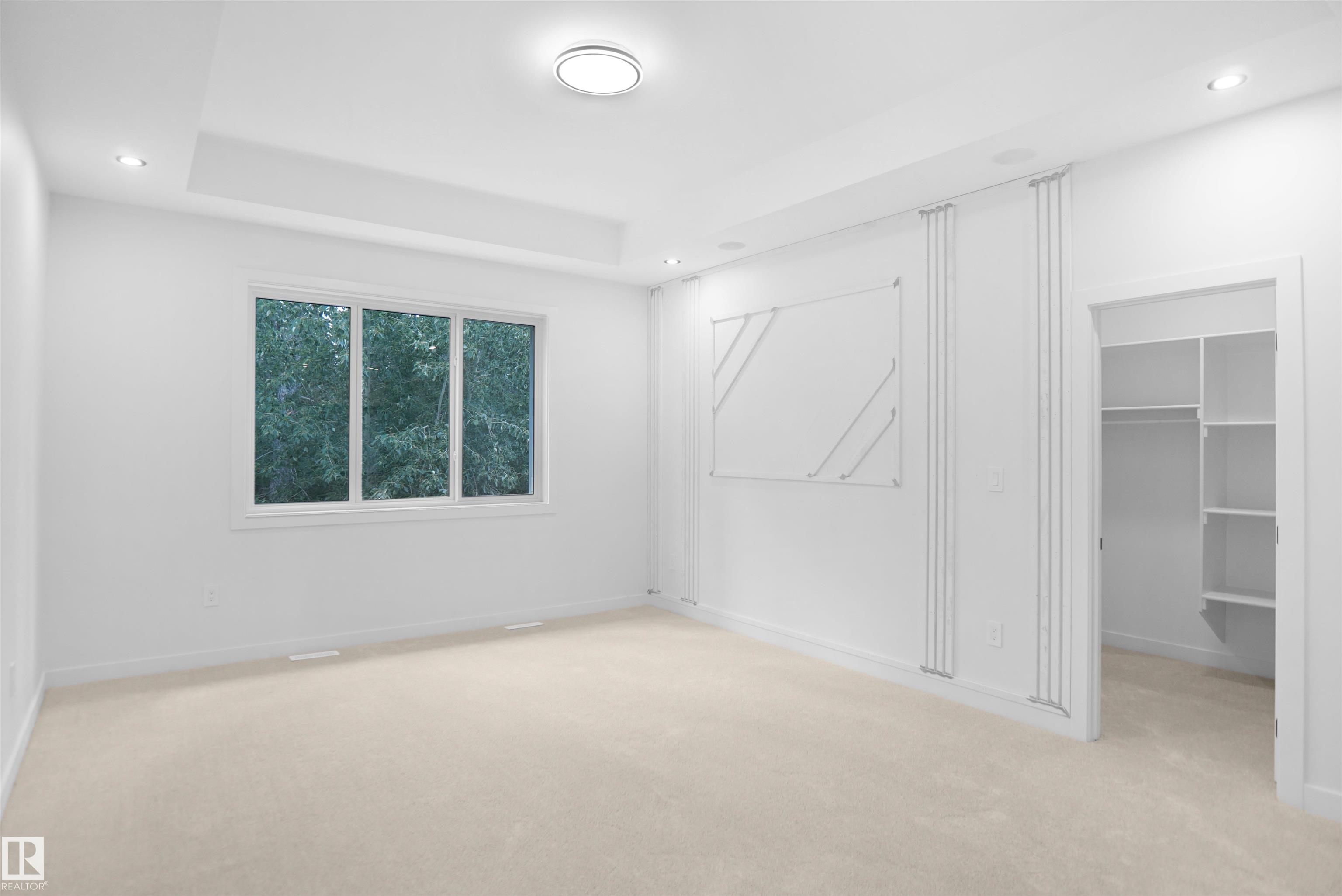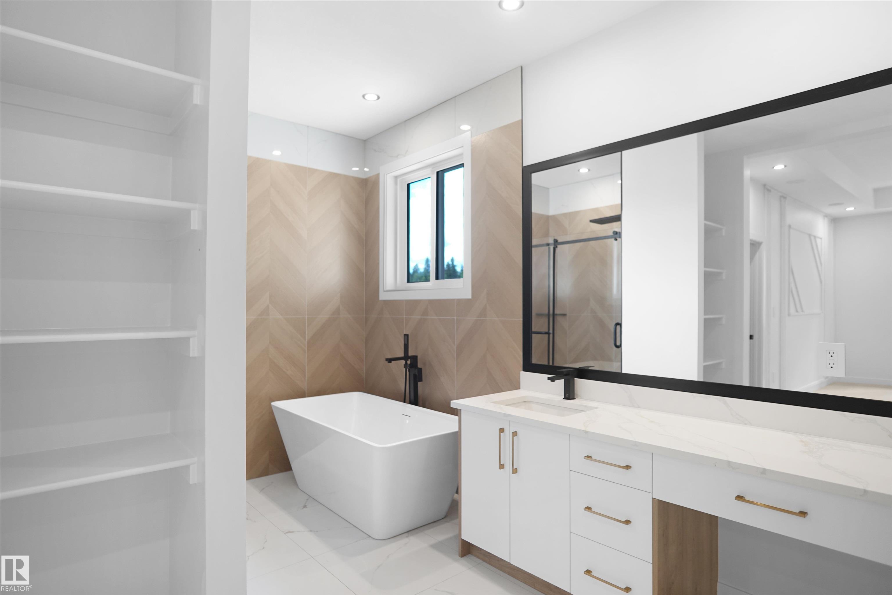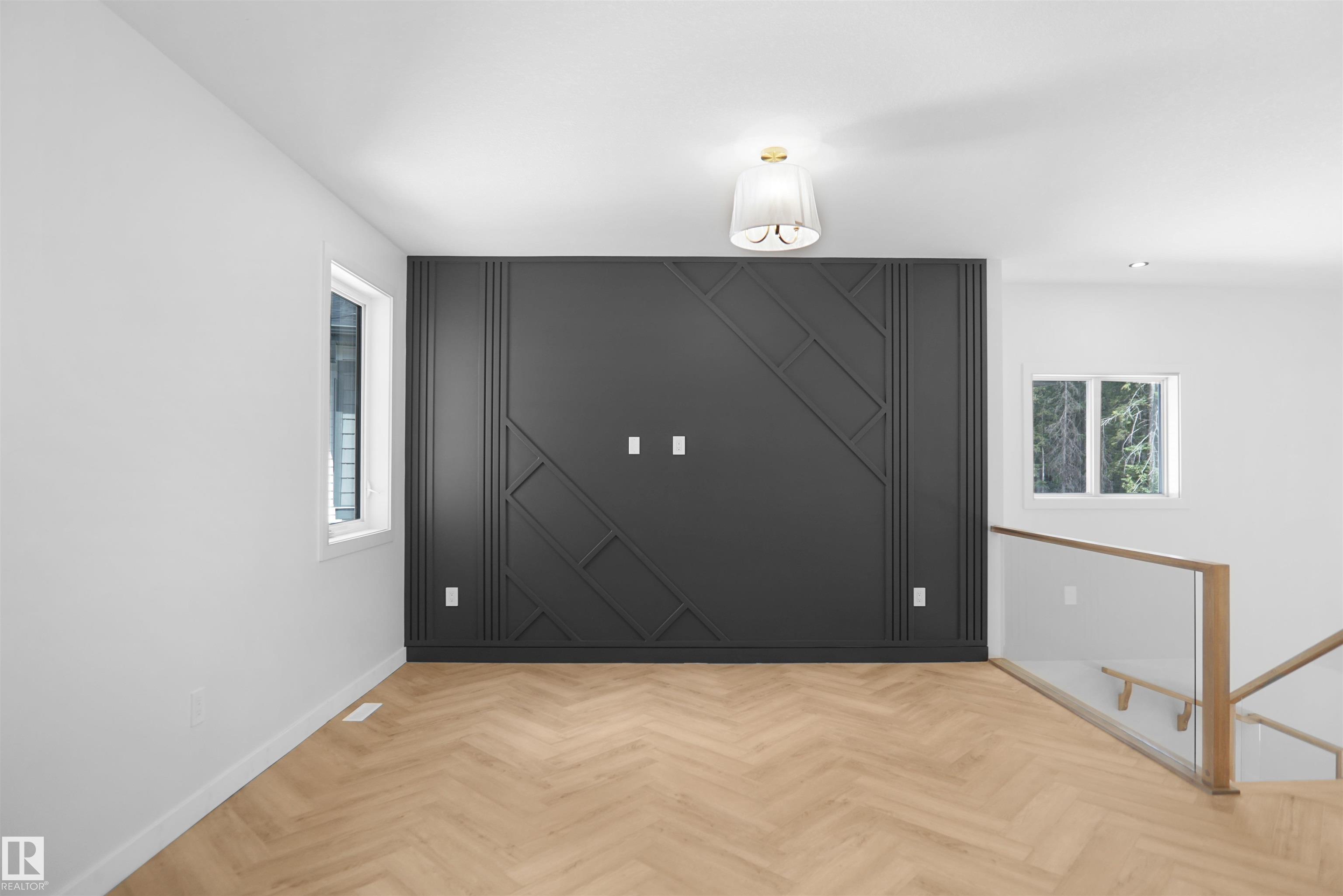UPGRADED HOME BACKING GREENSPACE IN THE COMMUNITY OF MCLAUGHLIN! This home boasts 28 ft Long Deck with 4 bedrooms, 3 full baths, bonus room & 9ft ceilings on all three levels. Main floor offers vinyl plank flooring, bedroom/den, family room with 18ft ceiling, fireplace. Kitchen, with modern high cabinetry, quartz countertops, island & BUTLERS PANTRY/SPICE KITCHEN, is made for cooking family meals and entertaining. Spacious dinning area with ample sunlight is perfect for get togethers. The 3 piece bath finishes the main level. Walk up stairs to master bedroom with 5 piece ensuite & spacious walk in closet, 2 bedrooms with walk in closets, full bath, laundry and bonus room. Unfinished basement with separate entrance and roughed in bathroom is waiting for creative ideas. Public transit to Edmonton, & more than 40 km of trails, your dream home home awaits. Includes: DECK/TRIPLE PANE WINDOWS/ WIRELESS SPEAKERS/ GAS HOOKUP ON DECK