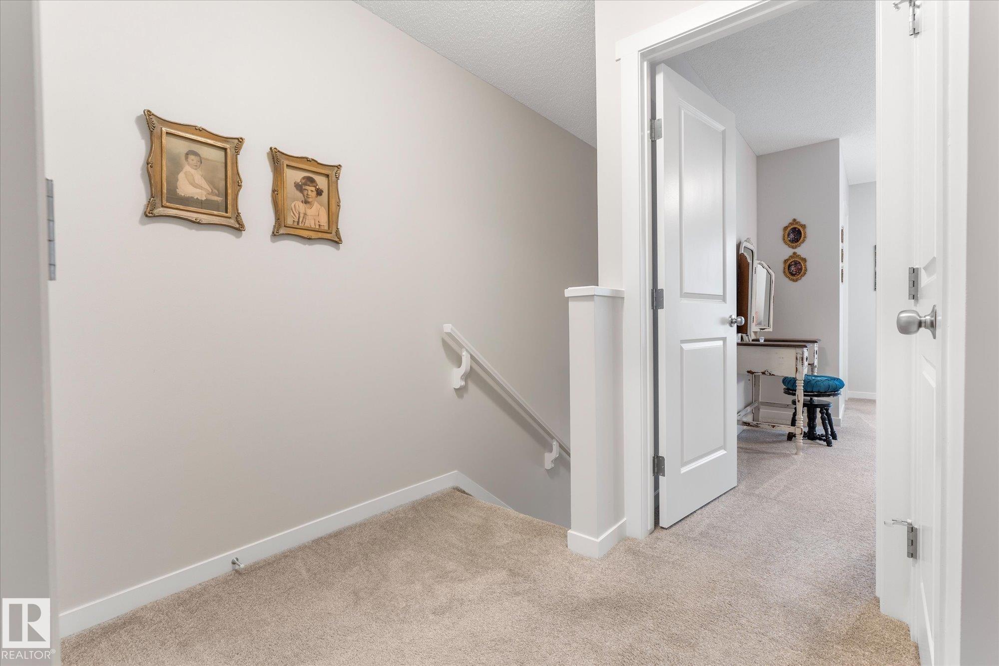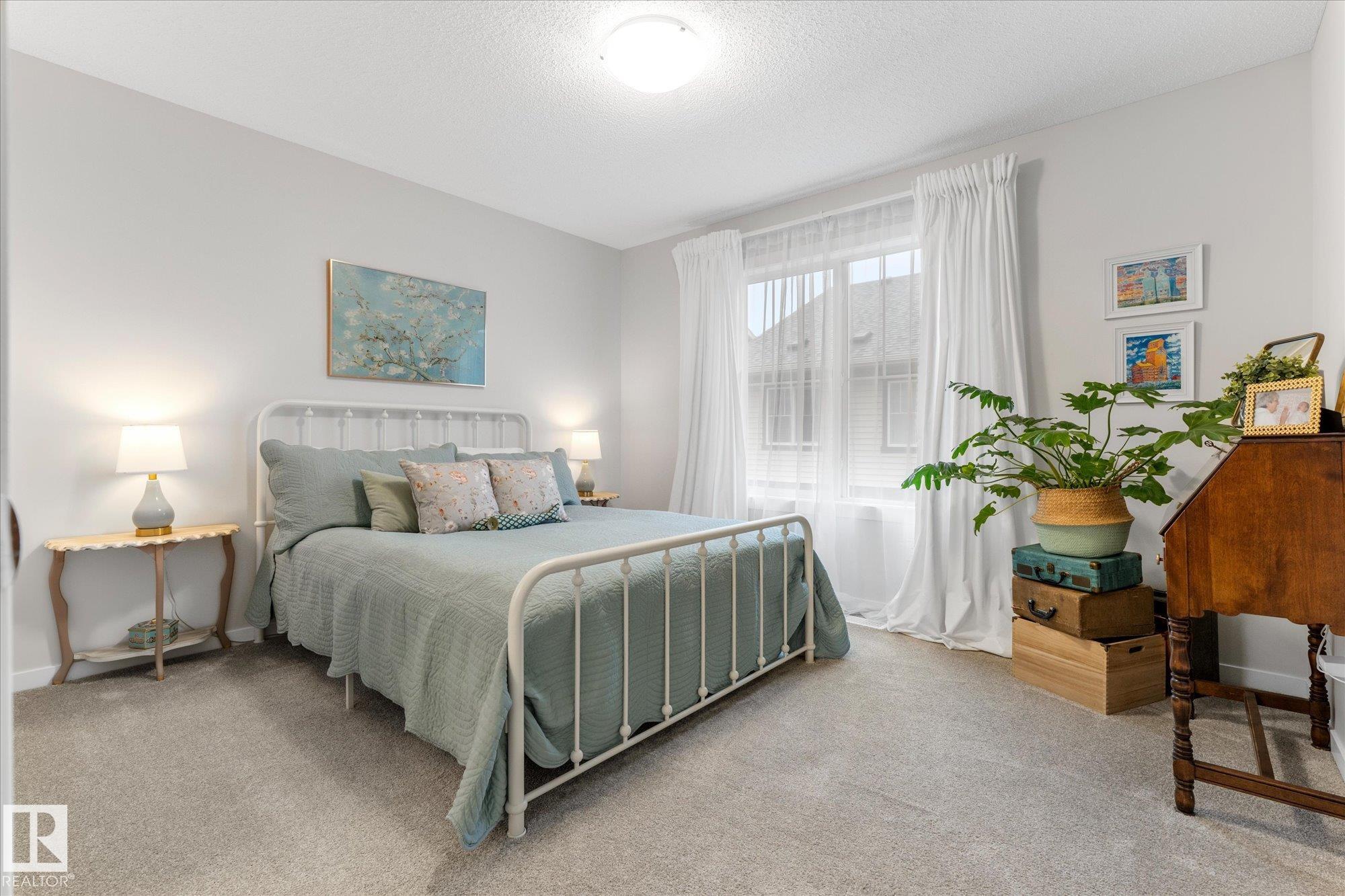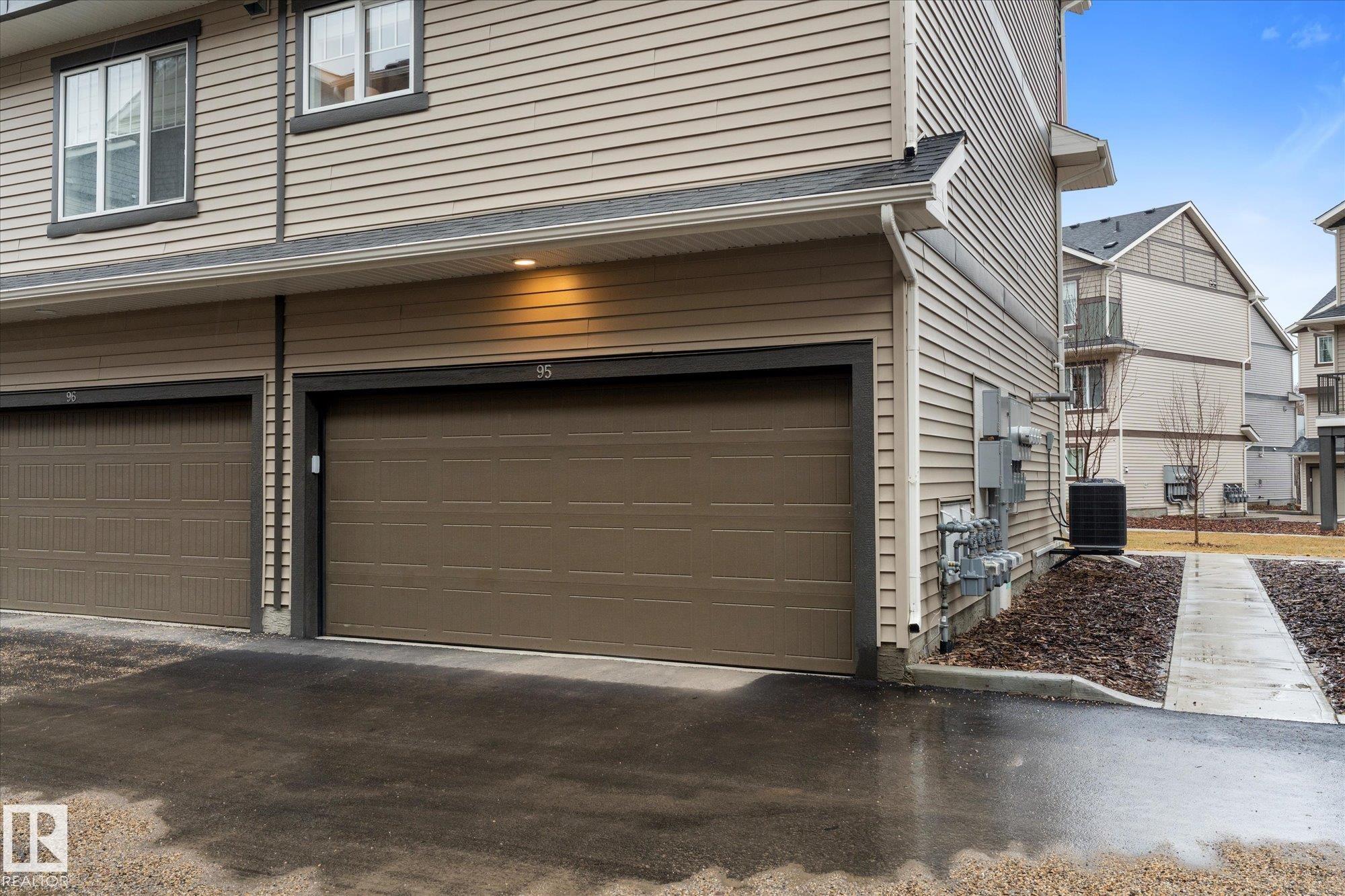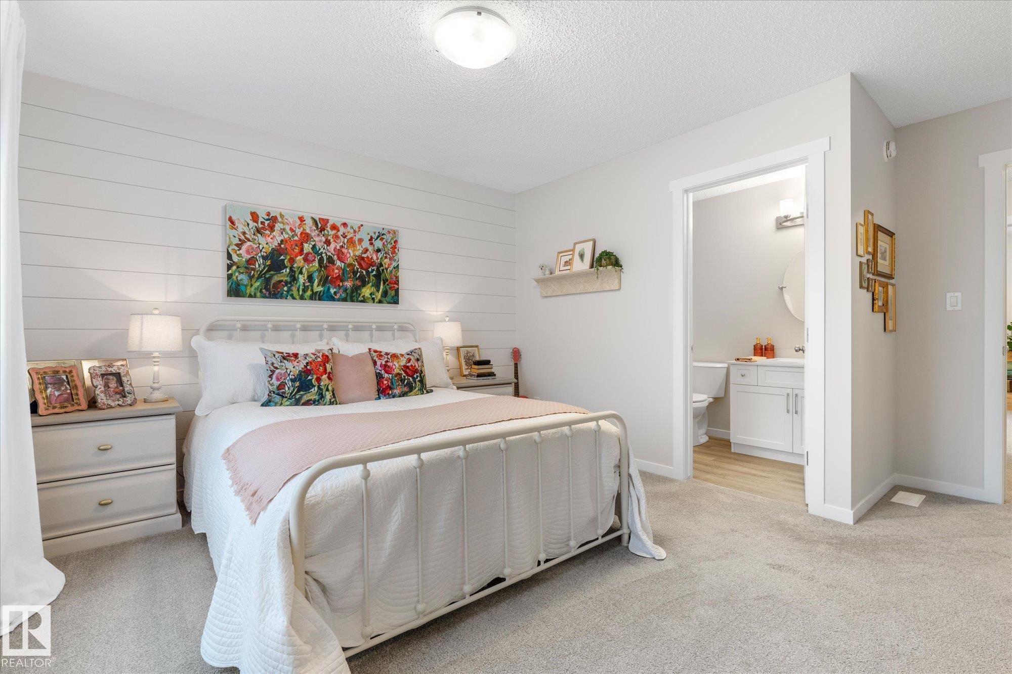 Elegant and beautifully appointed executive-style 2-storey townhouse in McLaughlin, Spruce Grove. This 2024-built, 1,323 sq ft home offers 2 bedrooms and 2.5 baths, plus an attached heated and insulated double garage. Perfectly situated steps from Heritage Grove Park and its scenic trail system, it blends refined living with everyday ease. The main floor showcases upgraded luxury vinyl plank flooring, central air conditioning, and a bright, open-concept layout filled with natural light. The gourmet kitchen impresses with upgraded cabinetry, quartz countertops, and premium sink and fixtures, flowing seamlessly into the dining area and elegant living room with balcony overlooking the courtyard. Custom draperies and stylish upgraded lighting elevate the space throughout. Upstairs features convenient top-floor laundry and two spacious primary suites, each offering a walk-in closet and a beautifully finished private ensuite. Close to the TransAlta Tri Leisure Centre with quick access to Hwy 16 and 16A.