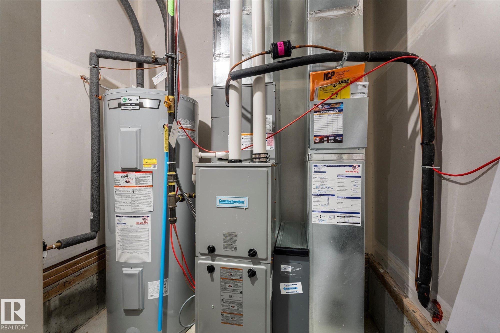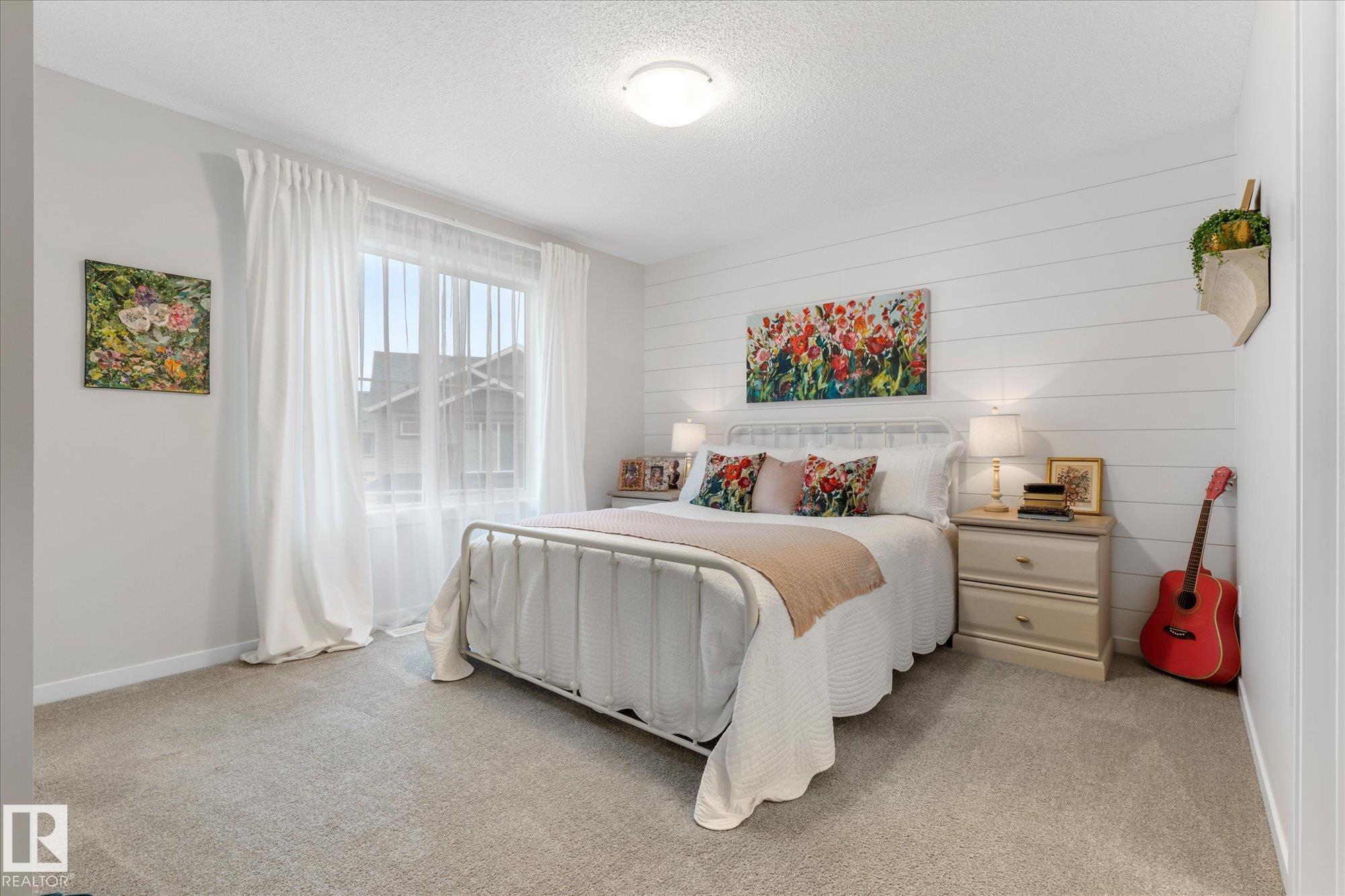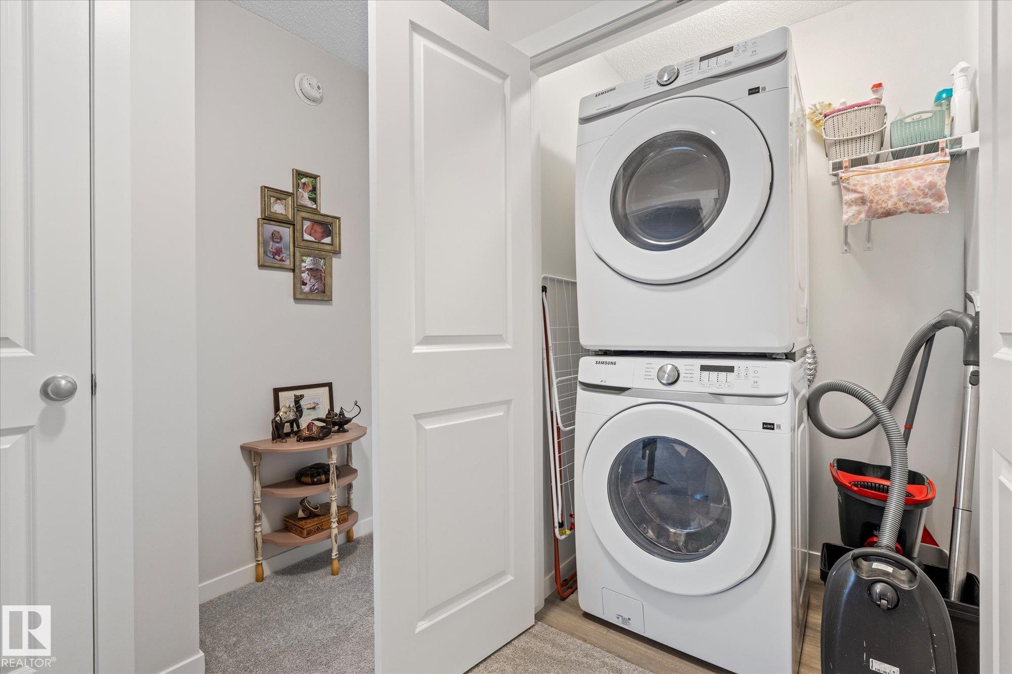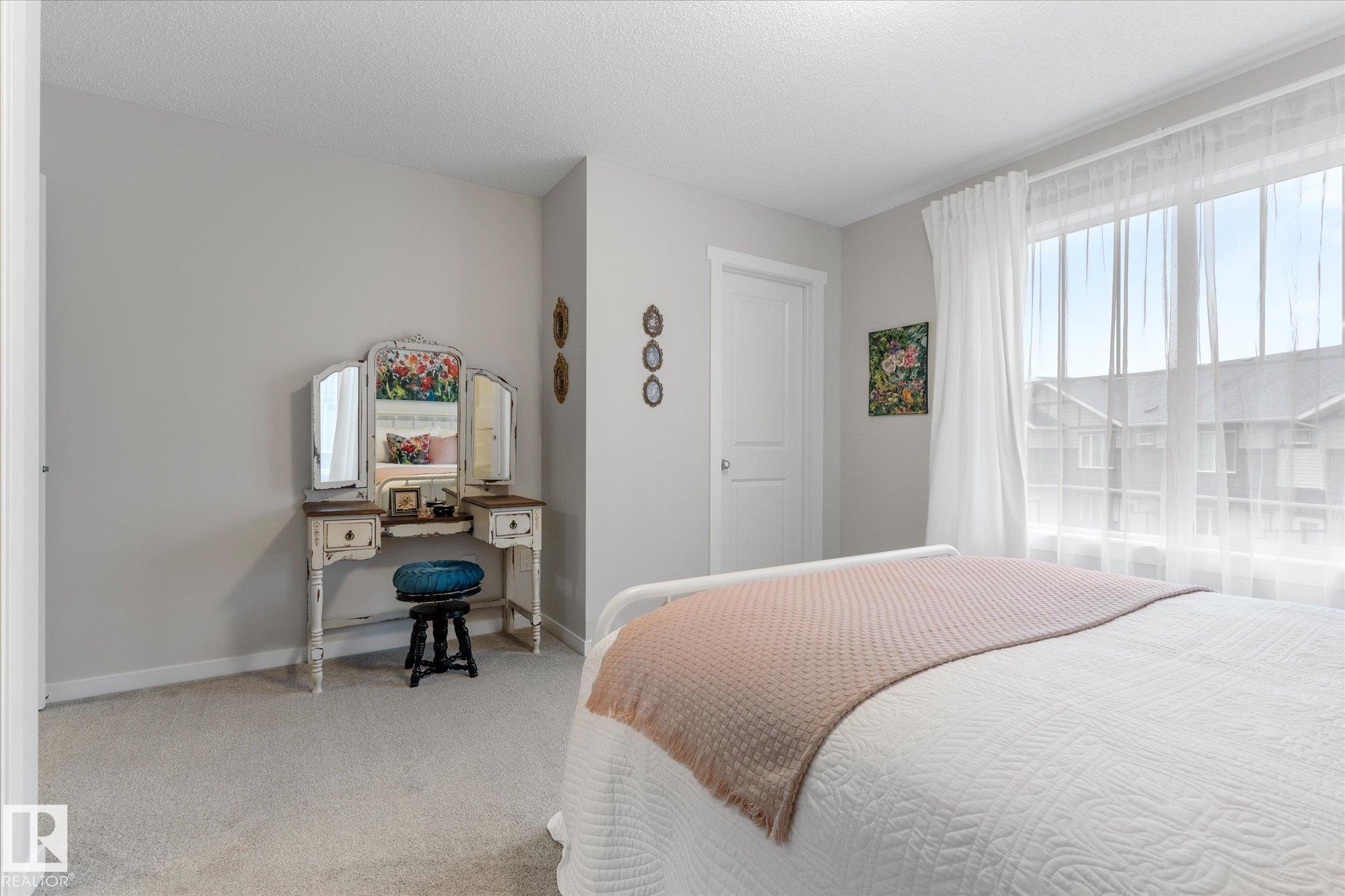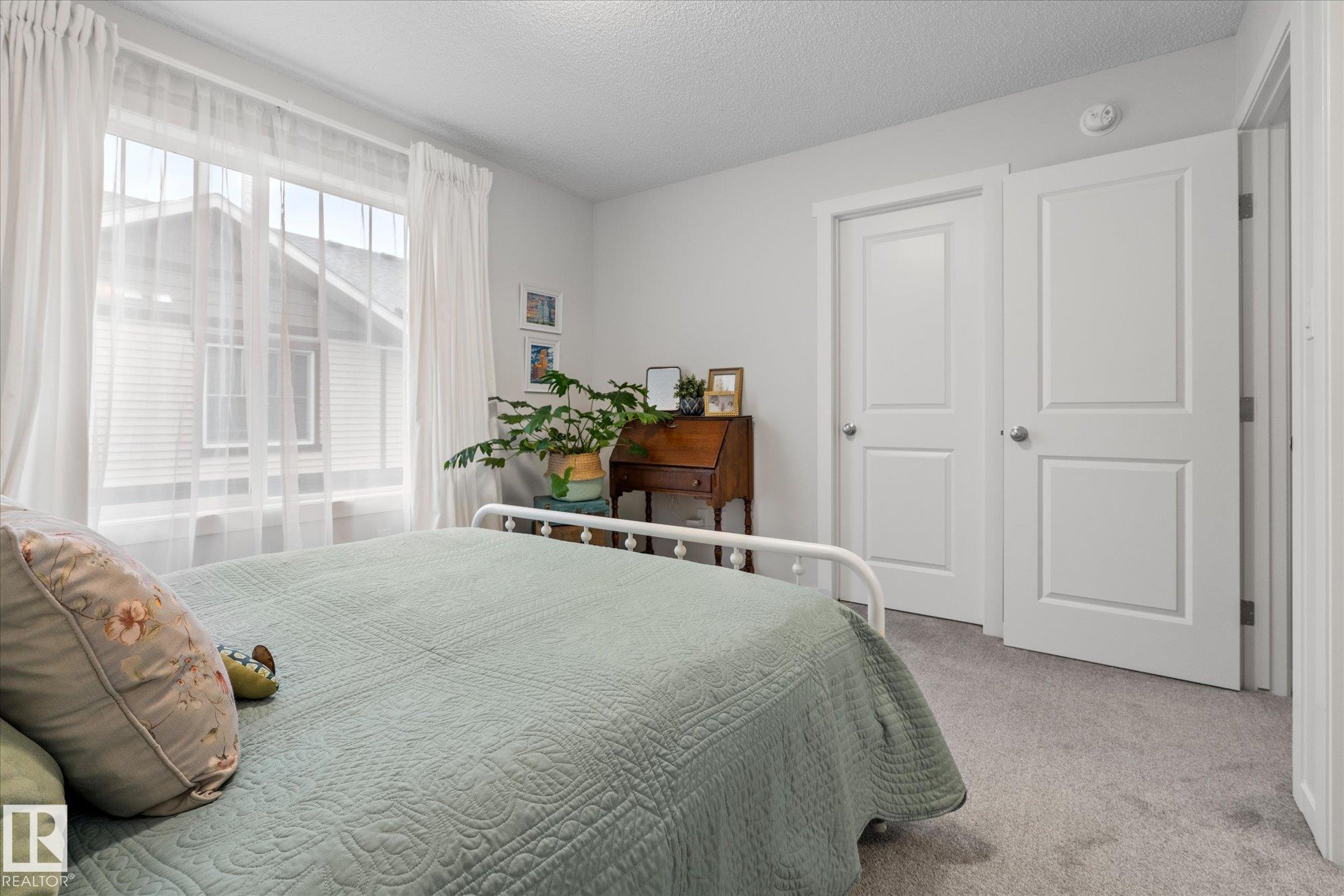 Elegant and beautifully appointed executive-style 2-storey townhouse in McLaughlin, Spruce Grove. This 2024-built, 1,323 sq ft home offers 2 bedrooms and 2.5 baths, plus an attached heated and insulated double garage. Perfectly situated steps from Heritage Grove Park and its scenic trail system, it blends refined living with everyday ease. The main floor showcases upgraded luxury vinyl plank flooring, central air conditioning, and a bright, open-concept layout filled with natural light. The gourmet kitchen impresses with upgraded cabinetry, quartz countertops, and premium sink and fixtures, flowing seamlessly into the dining area and elegant living room with balcony overlooking the courtyard. Custom draperies and stylish upgraded lighting elevate the space throughout. Upstairs features convenient top-floor laundry and two spacious primary suites, each offering a walk-in closet and a beautifully finished private ensuite. Close to the TransAlta Tri Leisure Centre with quick access to Hwy 16 and 16A.
