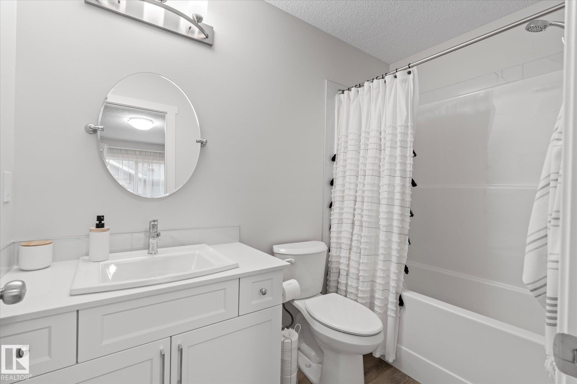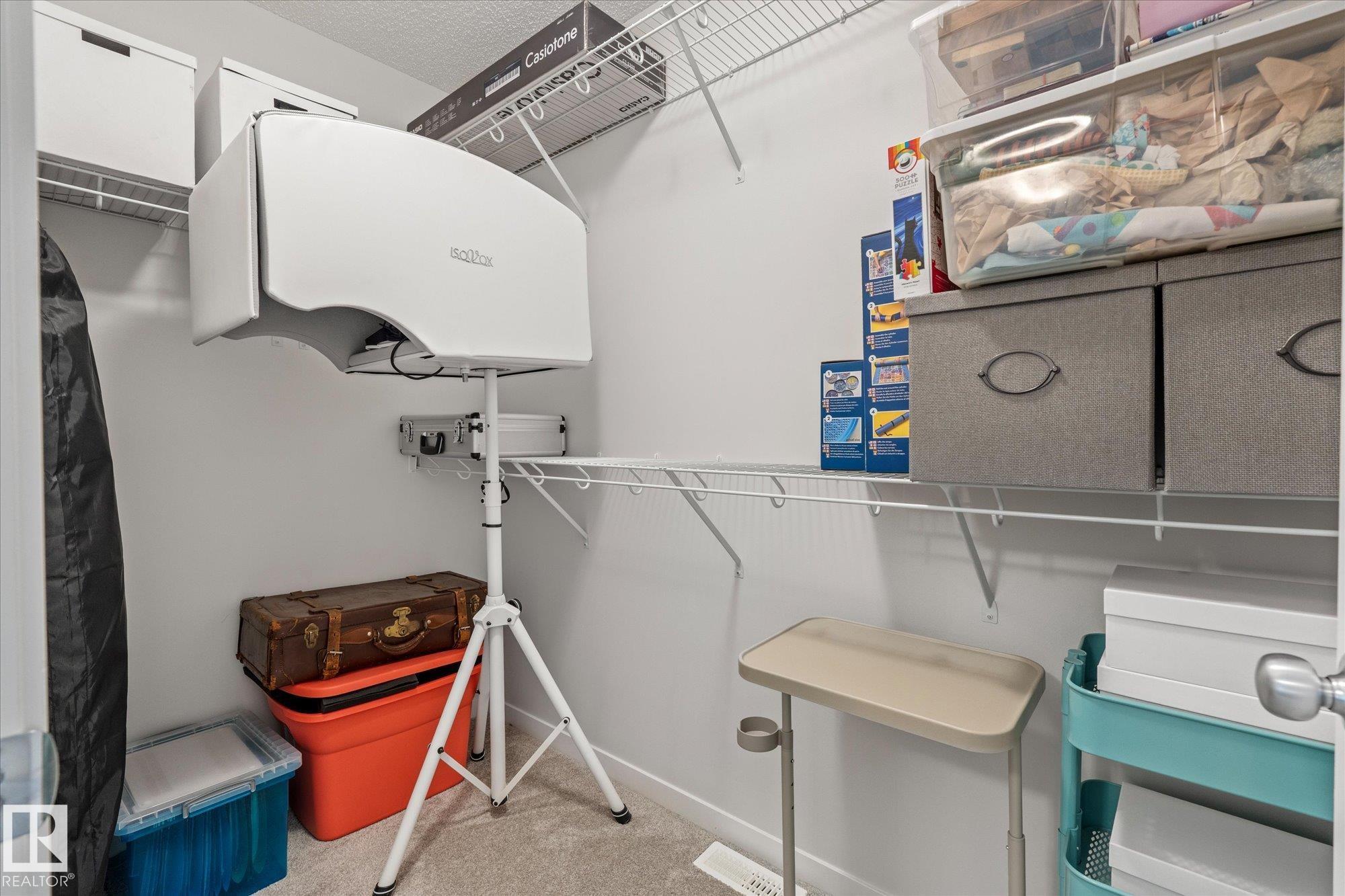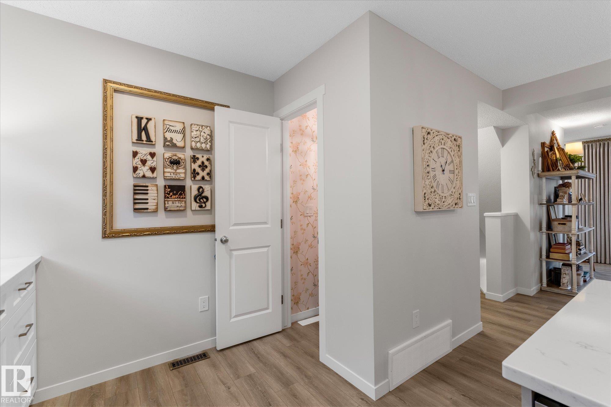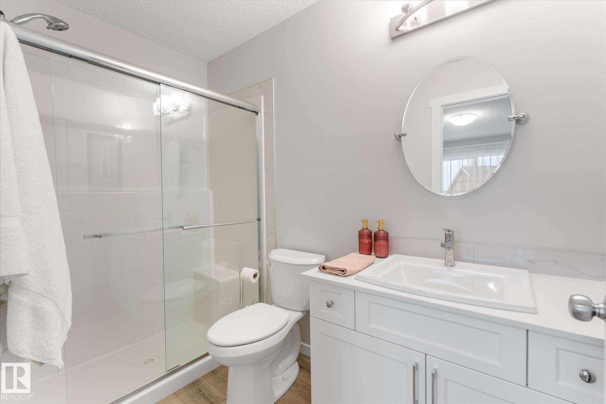 Elegant and beautifully appointed executive-style 2-storey townhouse in McLaughlin, Spruce Grove. This 2024-built, 1,323 sq ft home offers 2 bedrooms and 2.5 baths, plus an attached heated and insulated double garage. Perfectly situated steps from Heritage Grove Park and its scenic trail system, it blends refined living with everyday ease. The main floor showcases upgraded luxury vinyl plank flooring, central air conditioning, and a bright, open-concept layout filled with natural light. The gourmet kitchen impresses with upgraded cabinetry, quartz countertops, and premium sink and fixtures, flowing seamlessly into the dining area and elegant living room with balcony overlooking the courtyard. Custom draperies and stylish upgraded lighting elevate the space throughout. Upstairs features convenient top-floor laundry and two spacious primary suites, each offering a walk-in closet and a beautifully finished private ensuite. Close to the TransAlta Tri Leisure Centre with quick access to Hwy 16 and 16A.