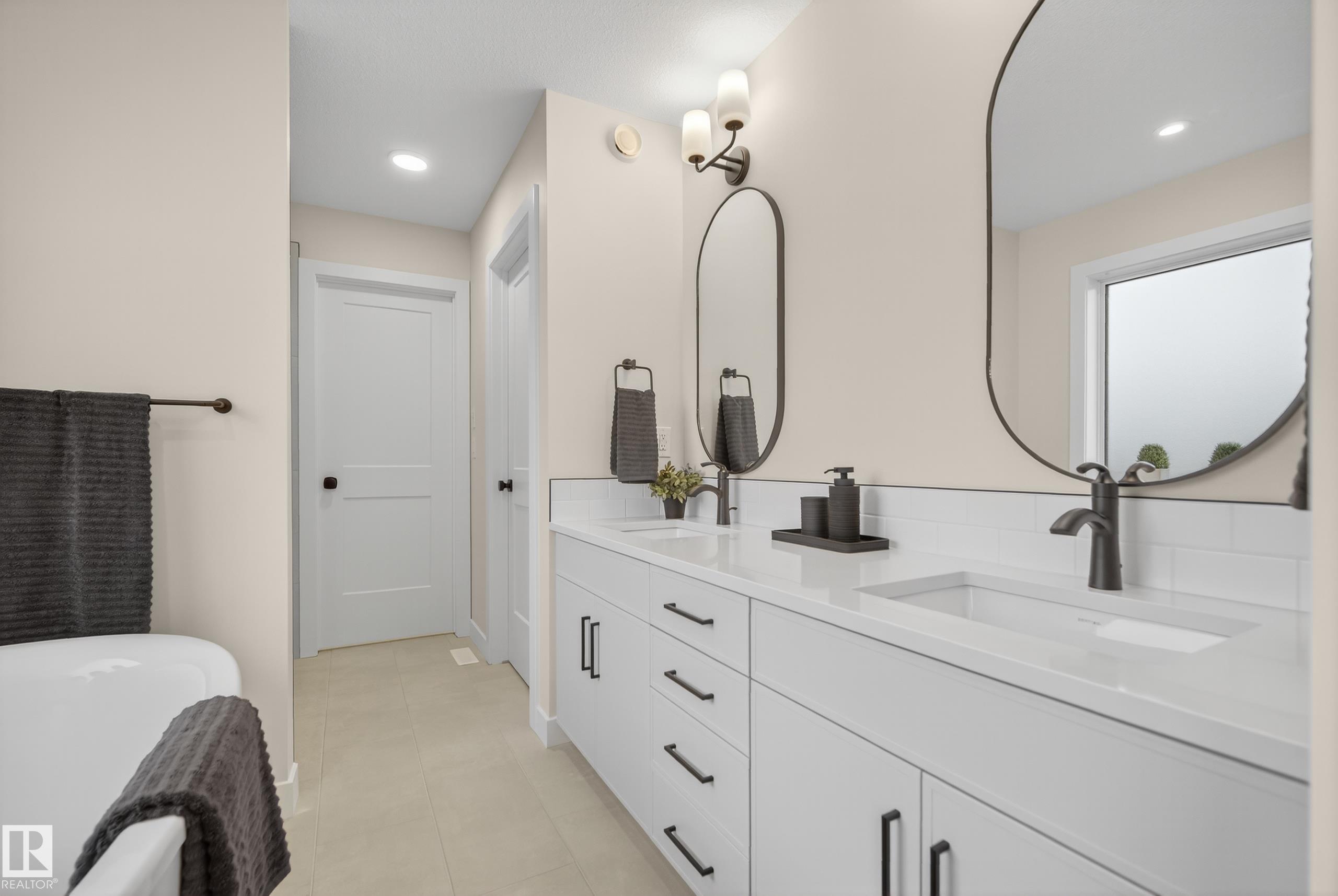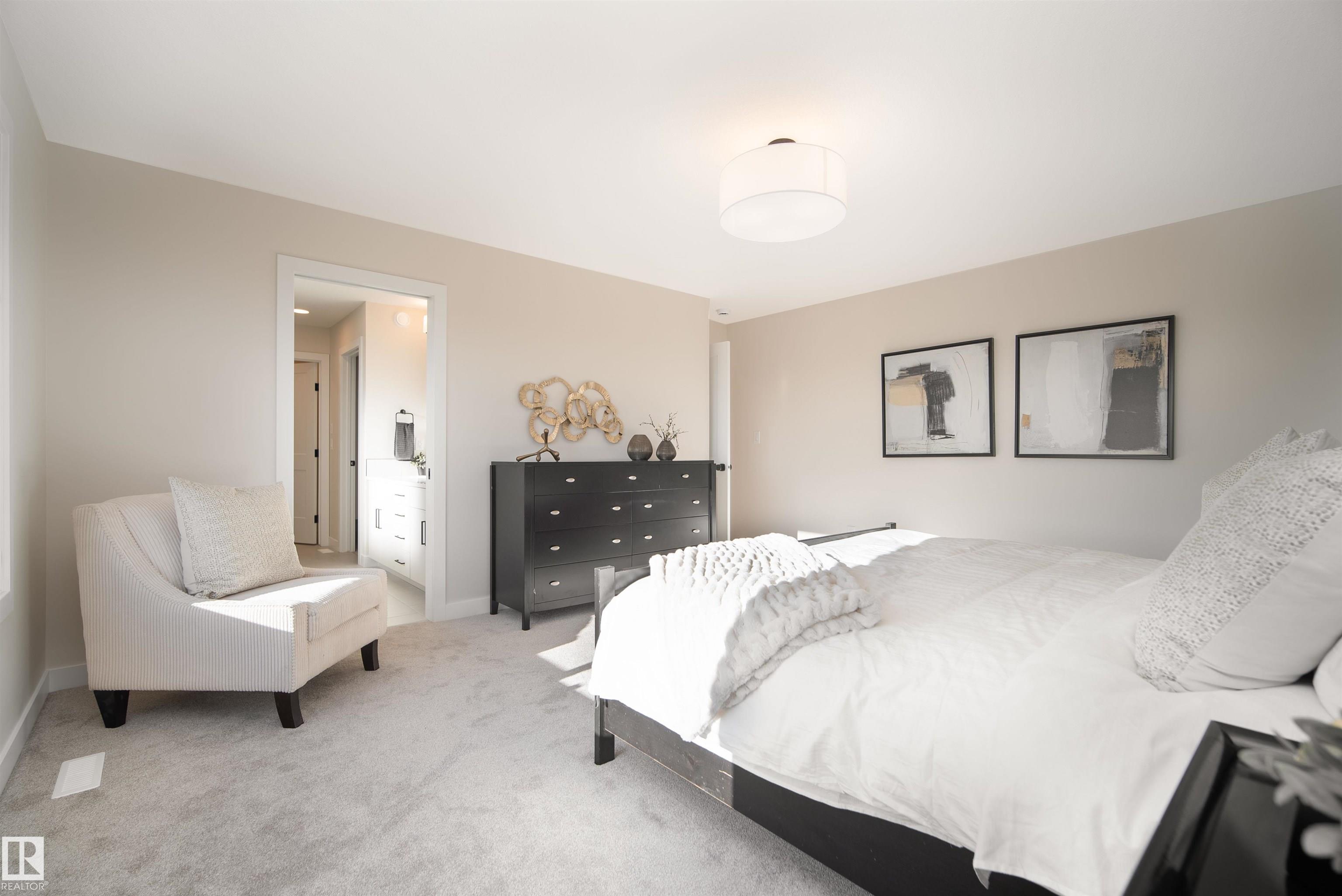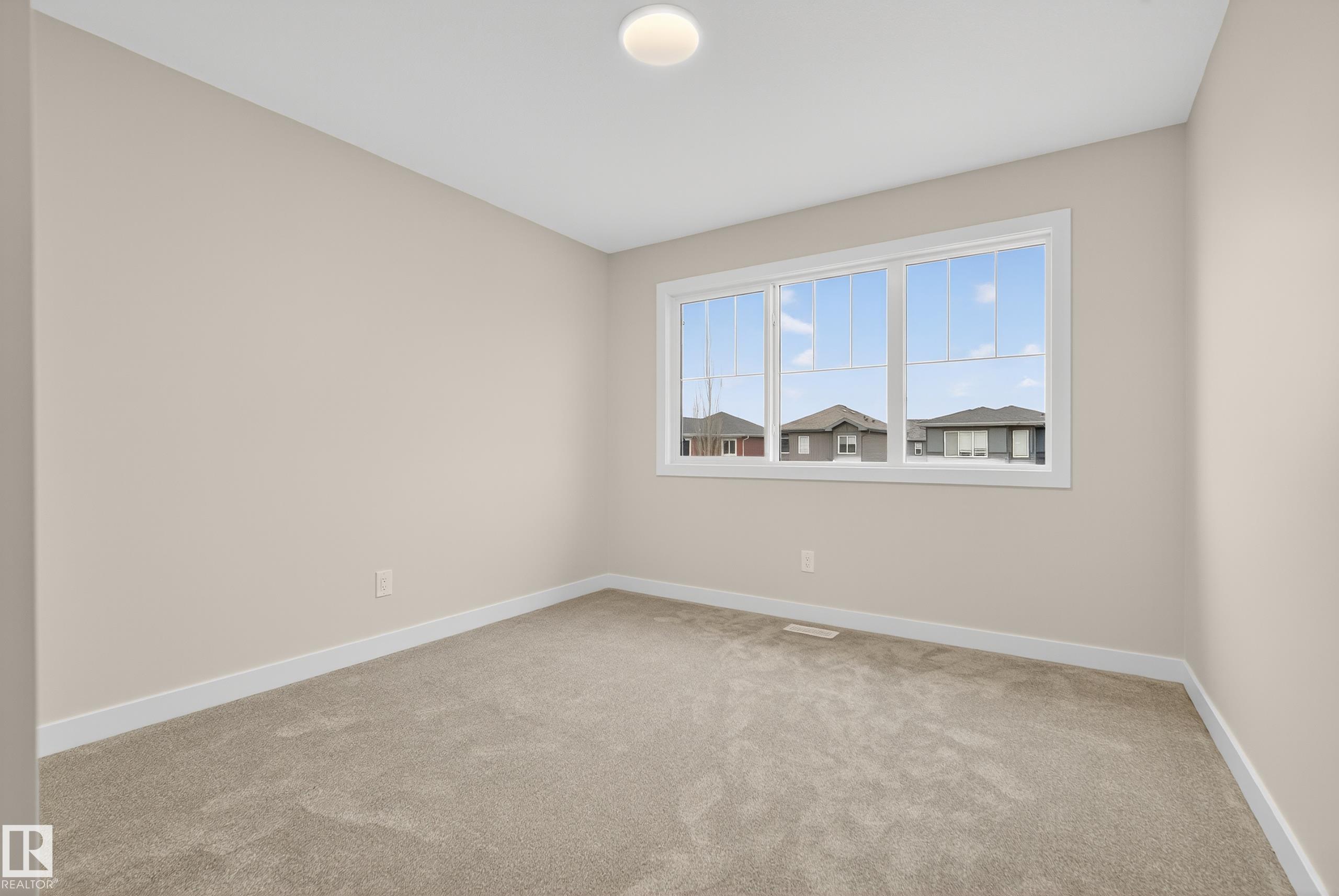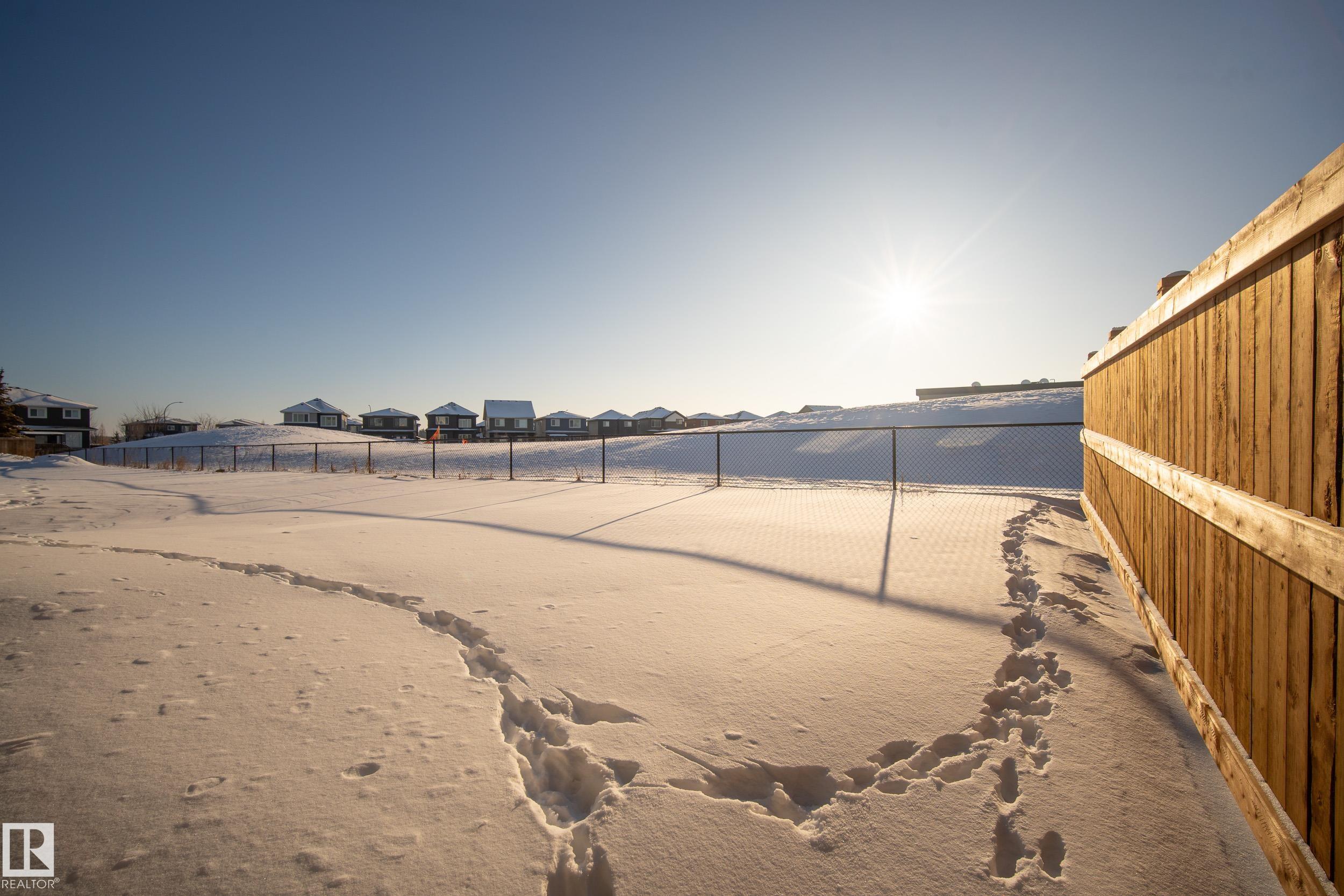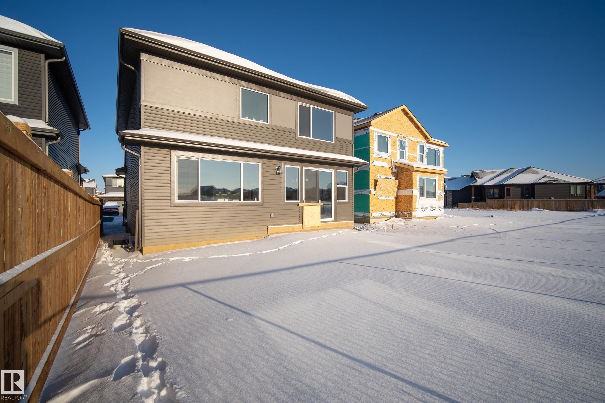 Beautiful brand new home by Legacy Signature Homes on a 34' pocket lot, loaded with upgrades and designed for modern living. Features an attached TRIPLE garage with floor drain, open concept main floor with a den, bright living room with electric fireplace, walkthrough pantry, and a custom mudroom with built-in storage. The kitchen and dining area flow seamlessly for both everyday living and entertaining. Upstairs offers a spacious bonus room, convenient laundry, and two bedrooms with a full 4-piece bath. The impressive primary suite includes a 5-piece ensuite with freestanding tub, walk-in shower, private water closet, and generous walk-in closet. Backing onto a field, this home offers peaceful views with walking access to the local school. Ideally located close to everyday amenities and still a short drive to all that Edmonton has to offer, this home perfectly blends comfort, style, and function.